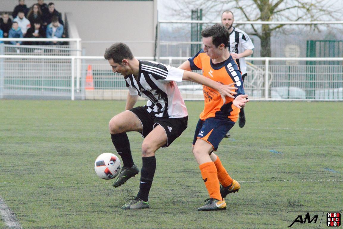A l’occasion d’un match en retard comptant pour le tour intermédiaire de la Coupe Decathlon, les doublures de l’AS Betschdorf offraient l’hospitalité à l’US Oberlauterbach 3 sur la pelouse synthétique de Hatten. Après une première période de soldant par un score nul et vierge, les “Oranges” parvinrent à se sublimer lors du second acte avant de s’adjuger une qualification pour les 1/8e de finale de la compétition sur le score de 1-3. Retrouvez les images de la rencontre et, pour en apprécier le contenu, veuillez cliquer sur l’une d’entre-elles pour lancer le diaporama.