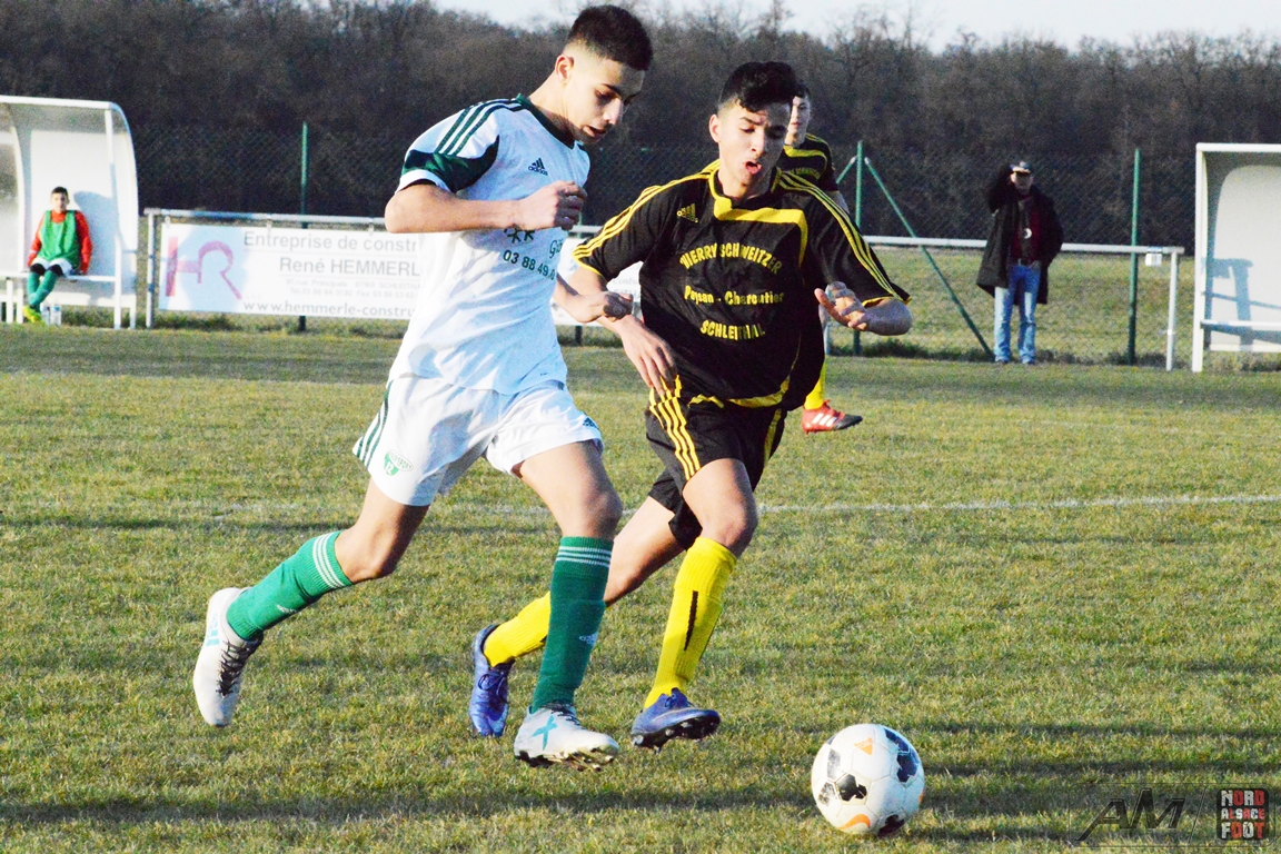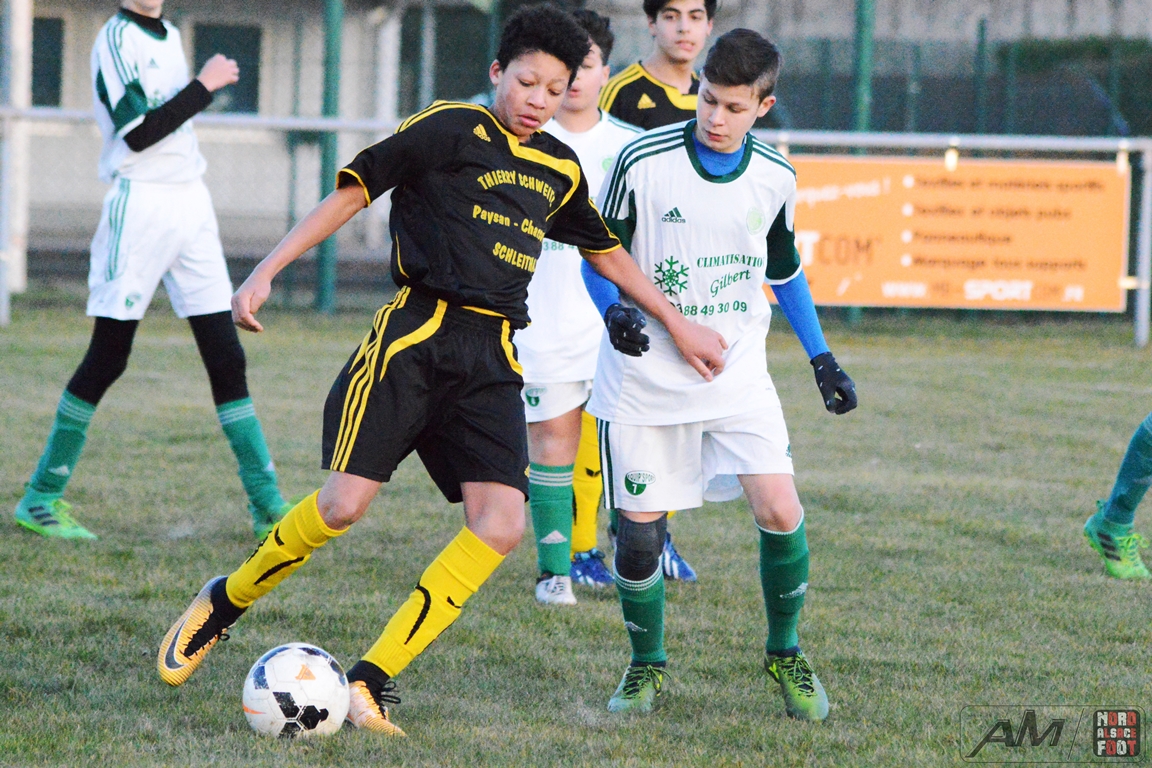 A l’occasion d’un match en retard comptant pour la 10e journée de championnat chez les U15/A, les doublures de l’entente EVAN accueillaient celles de l’ASL Robertsau afin d’entamer une opération reconquête devant leur public en vue de finir éventuellement dans la première partie de tableau avant le clap de fin. Après une rencontre d’un niveau moyen, les noirs et jaunes décrochèrent une victoire méritée qui leur permet de rêver d’un avenir plus clément. Retrouvez les images de la rencontre et, pour en apprécier le contenu, veuillez cliquer sur l’une d’entre-elles pour lancer le diaporama.