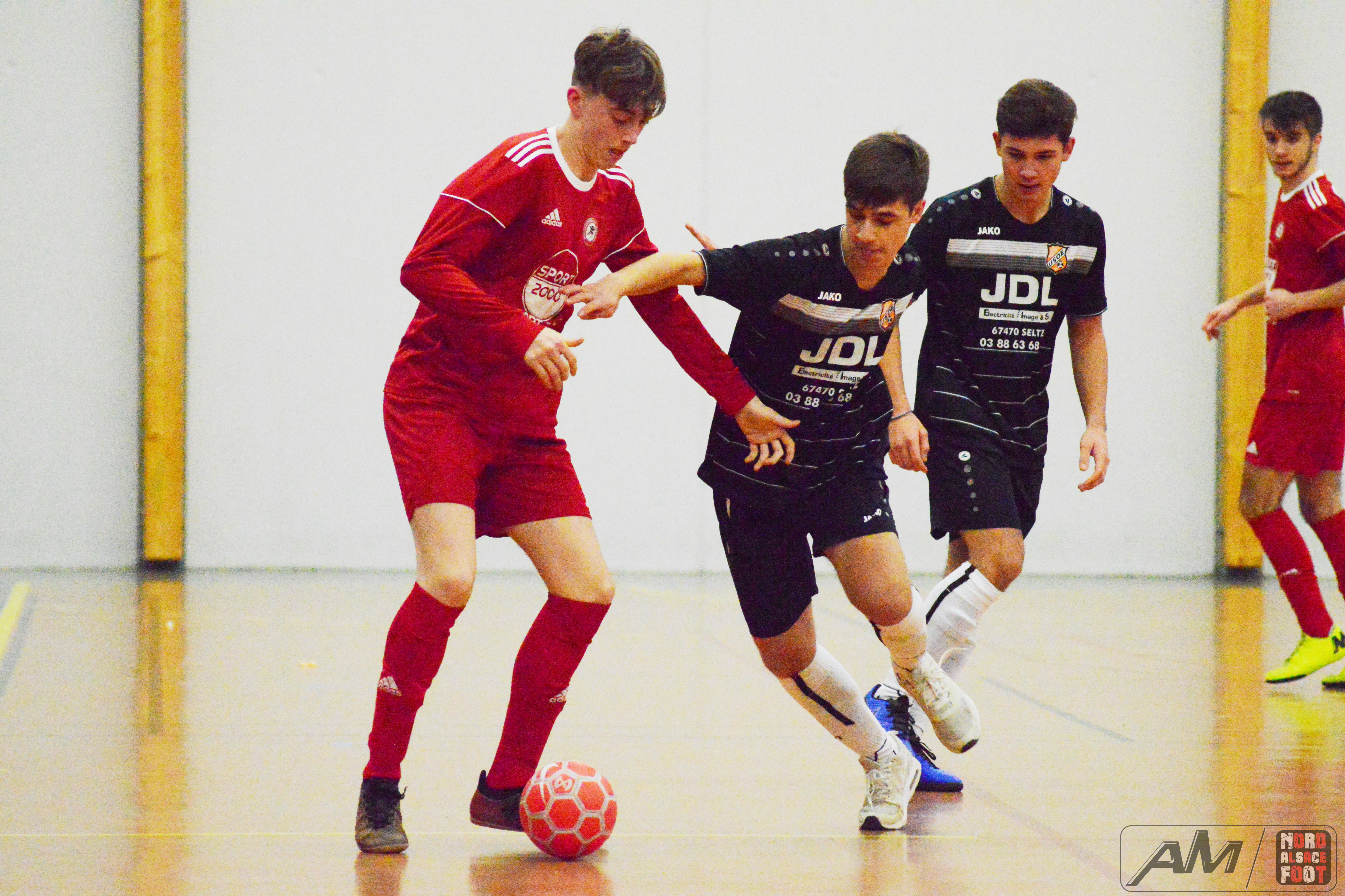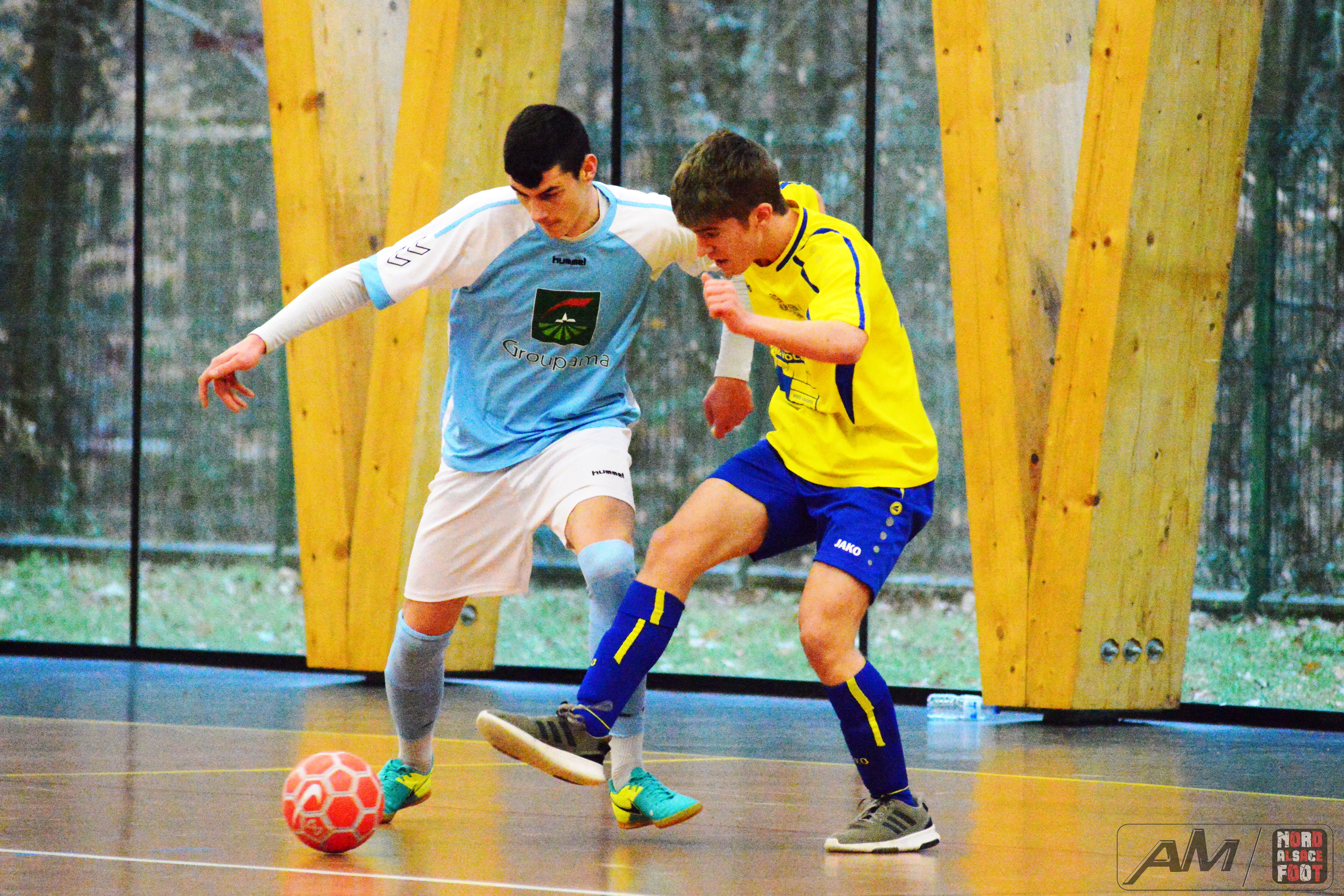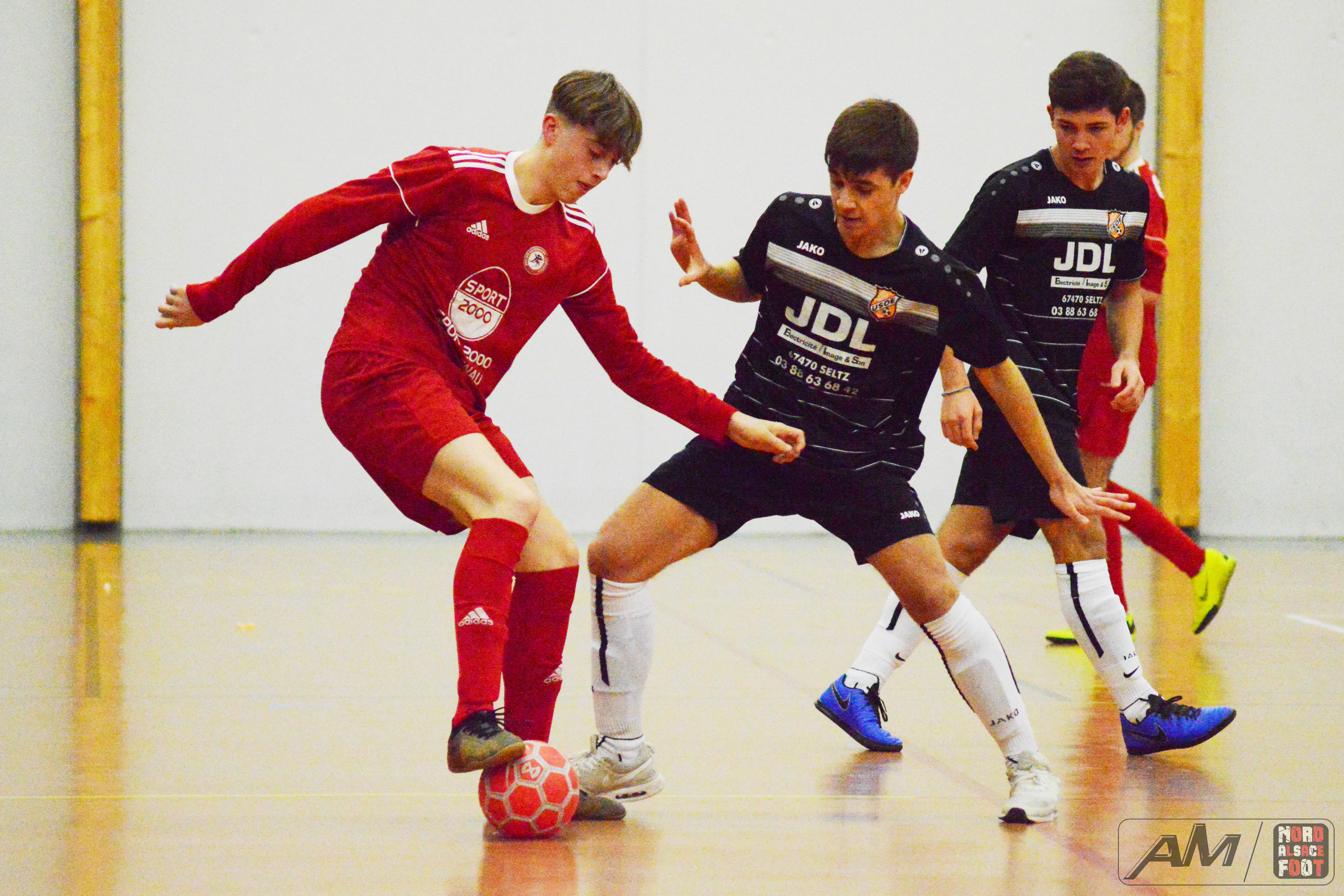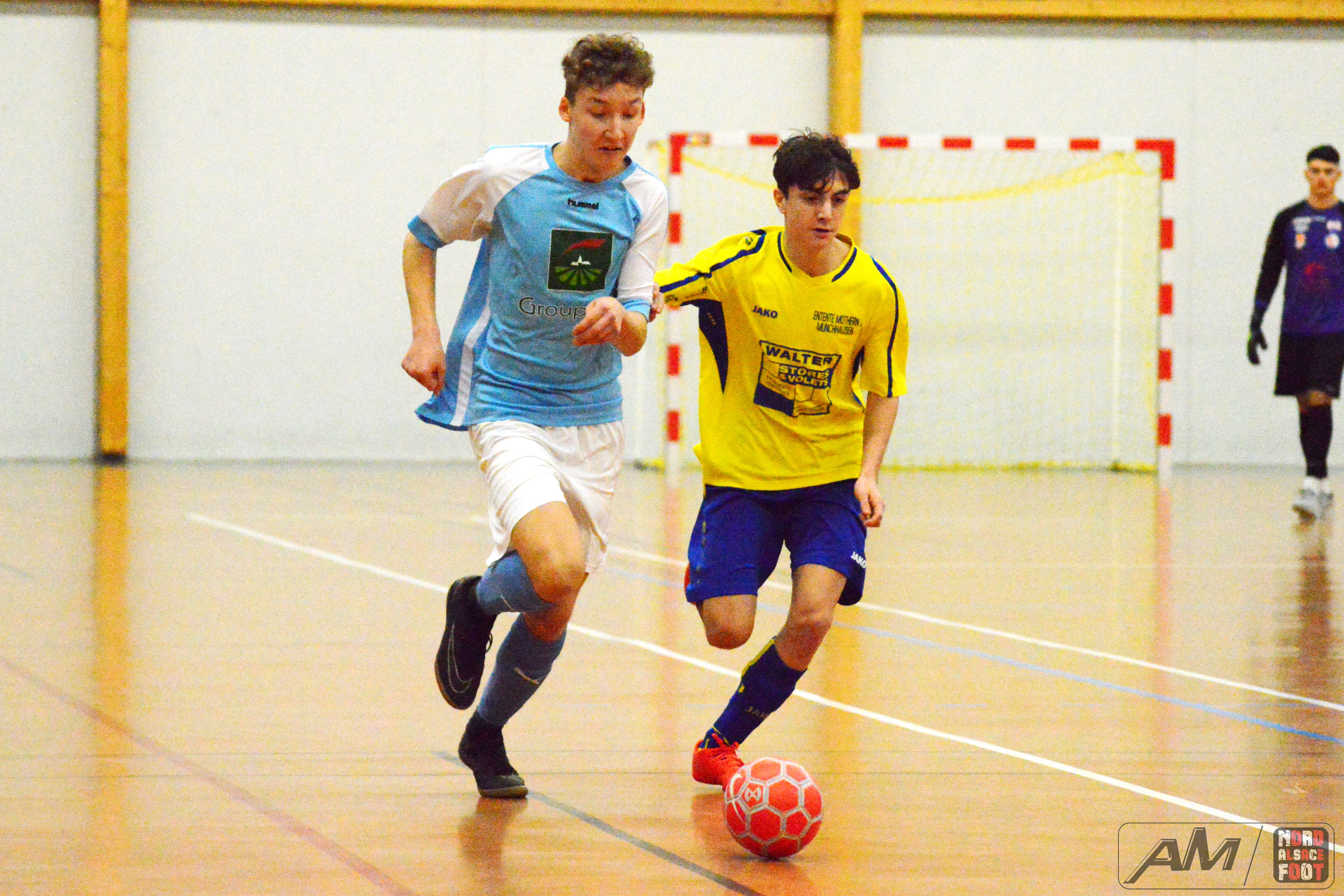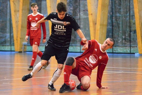 A l’occasion de la deuxième journée comptant pour le Championnat Fustal U18 (Groupe 5), le FC Soufflenheim accueillait pas moins de huit équipes au CERAM afin de connaître les deux qualifiés pour la finale à l’issue de cette journée. Après un peu plus de deux heures de débats, le FCE Schirrhein s’adjugea la première place (23pts) juste devant Oberlauterbach/Eevan (20pts). Retrouvez quelques images de ce rendez-vous et, pour en apprécier le contenu, veuillez cliquer sur l’une d’entre-elles pour afficher le diaporama.
