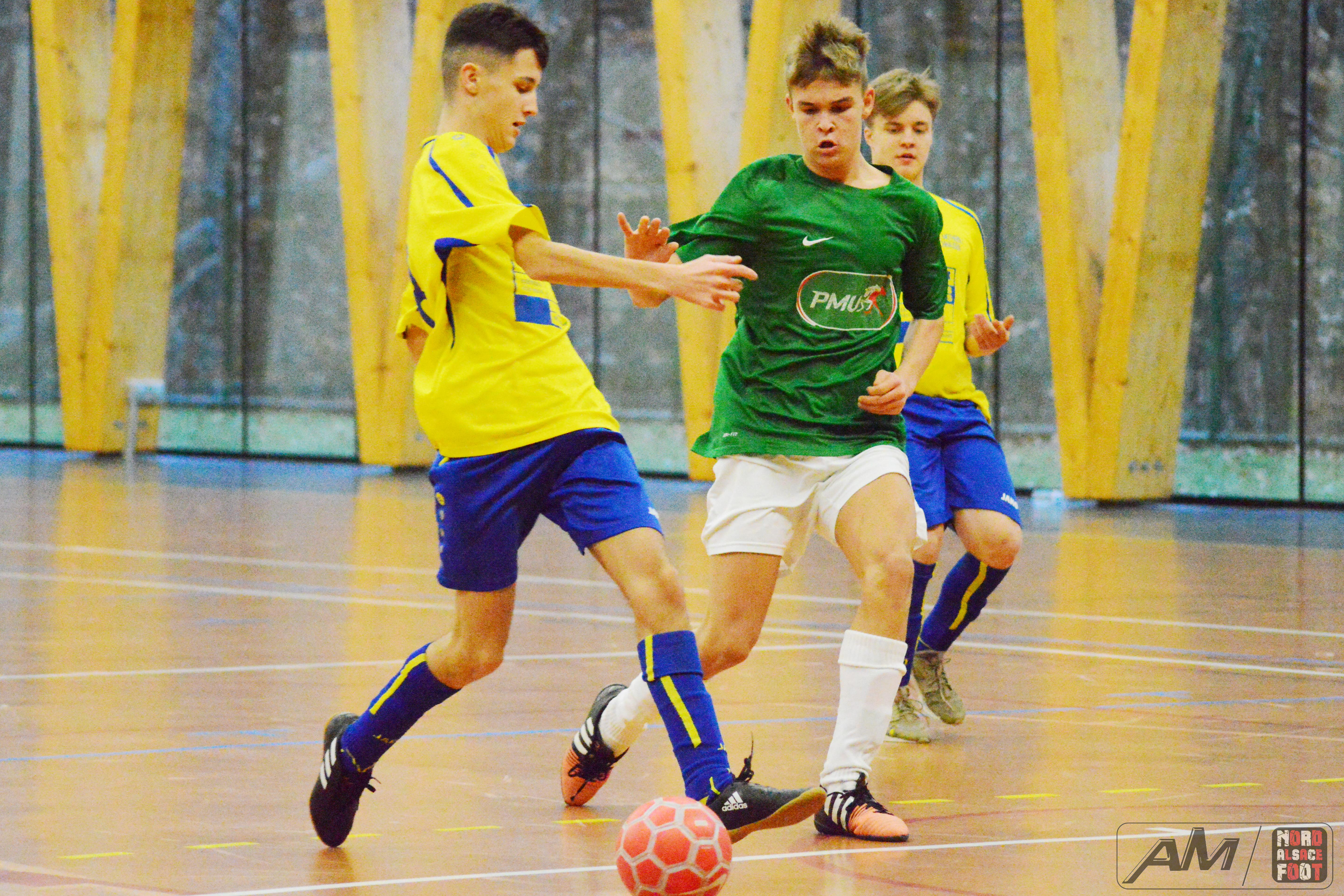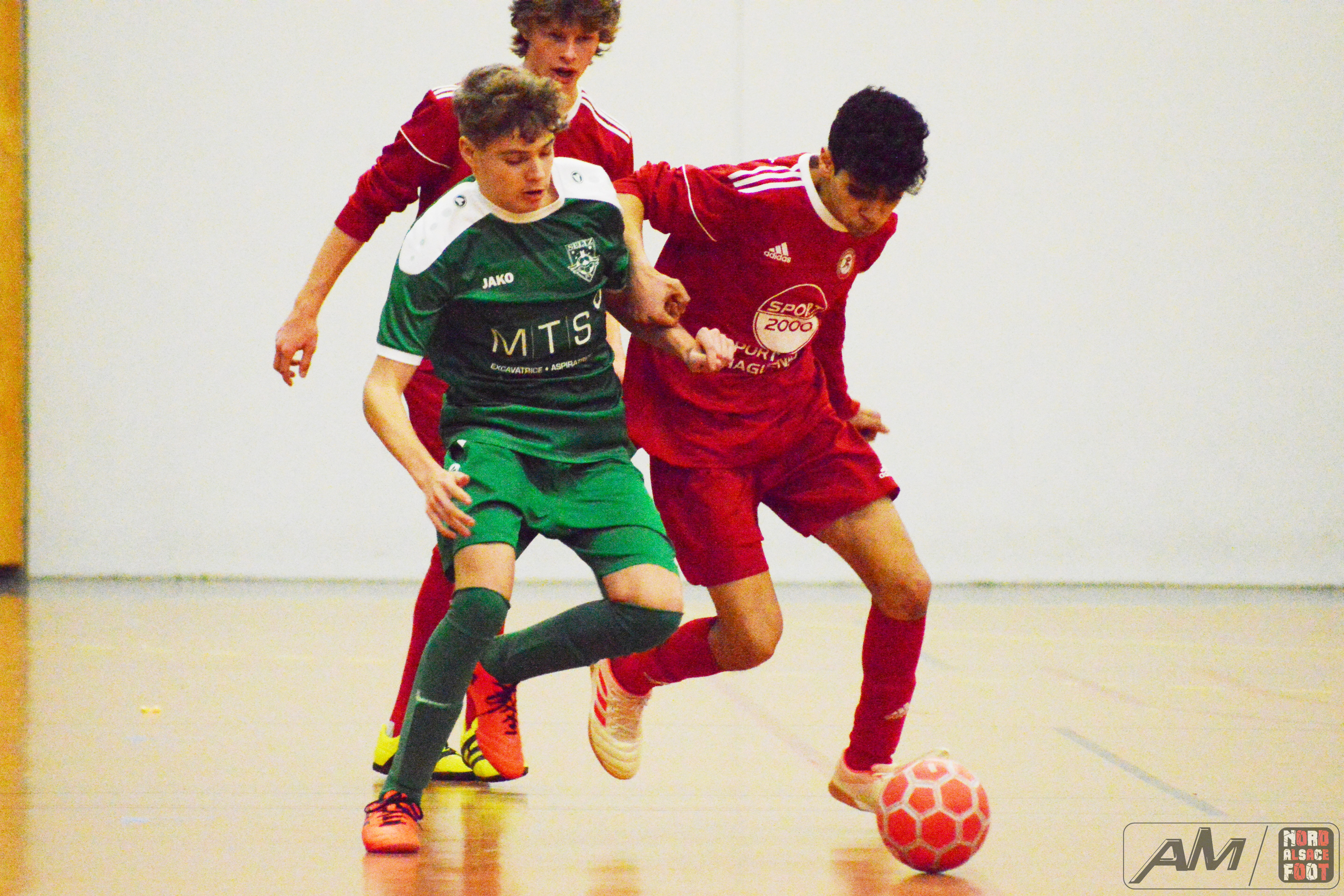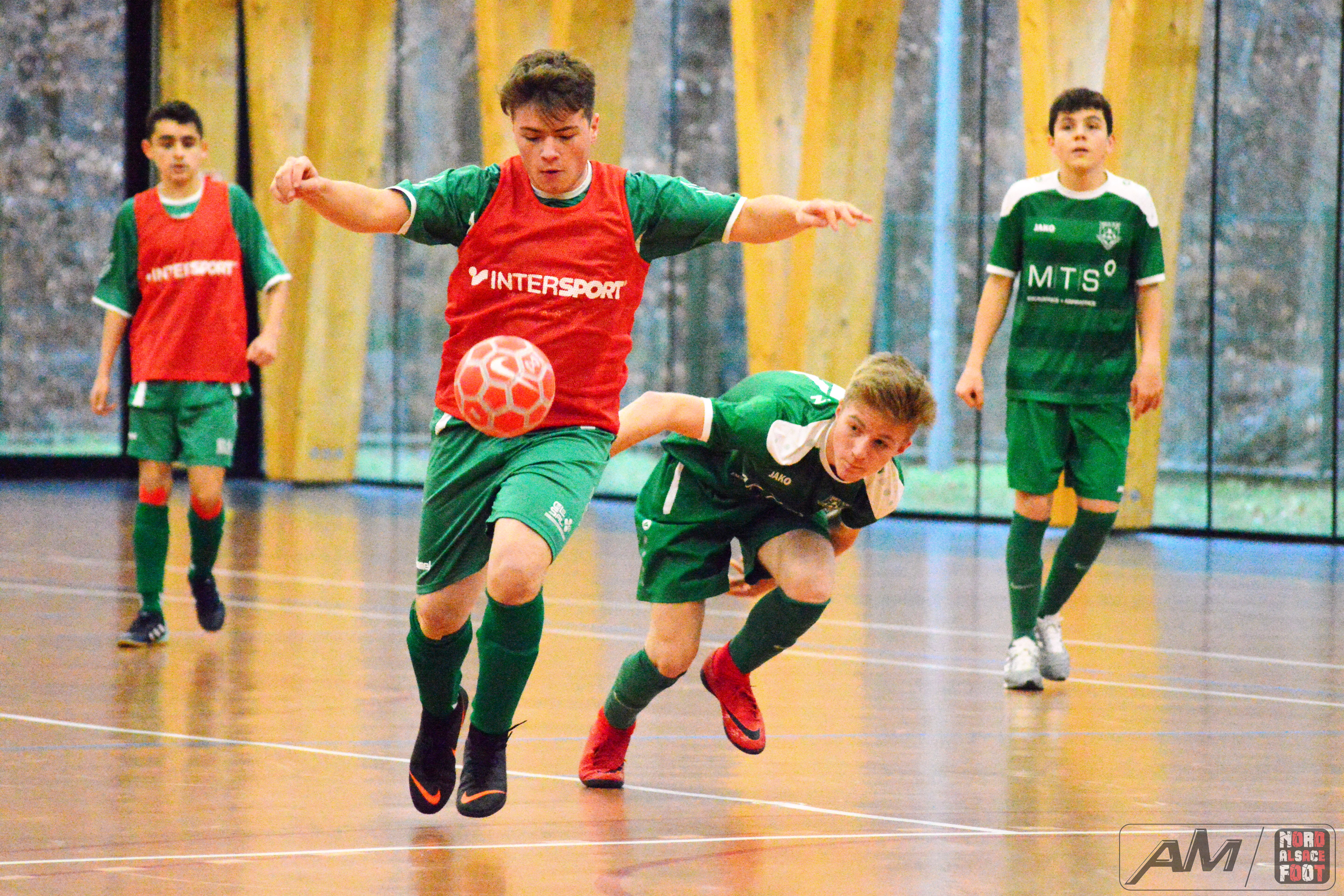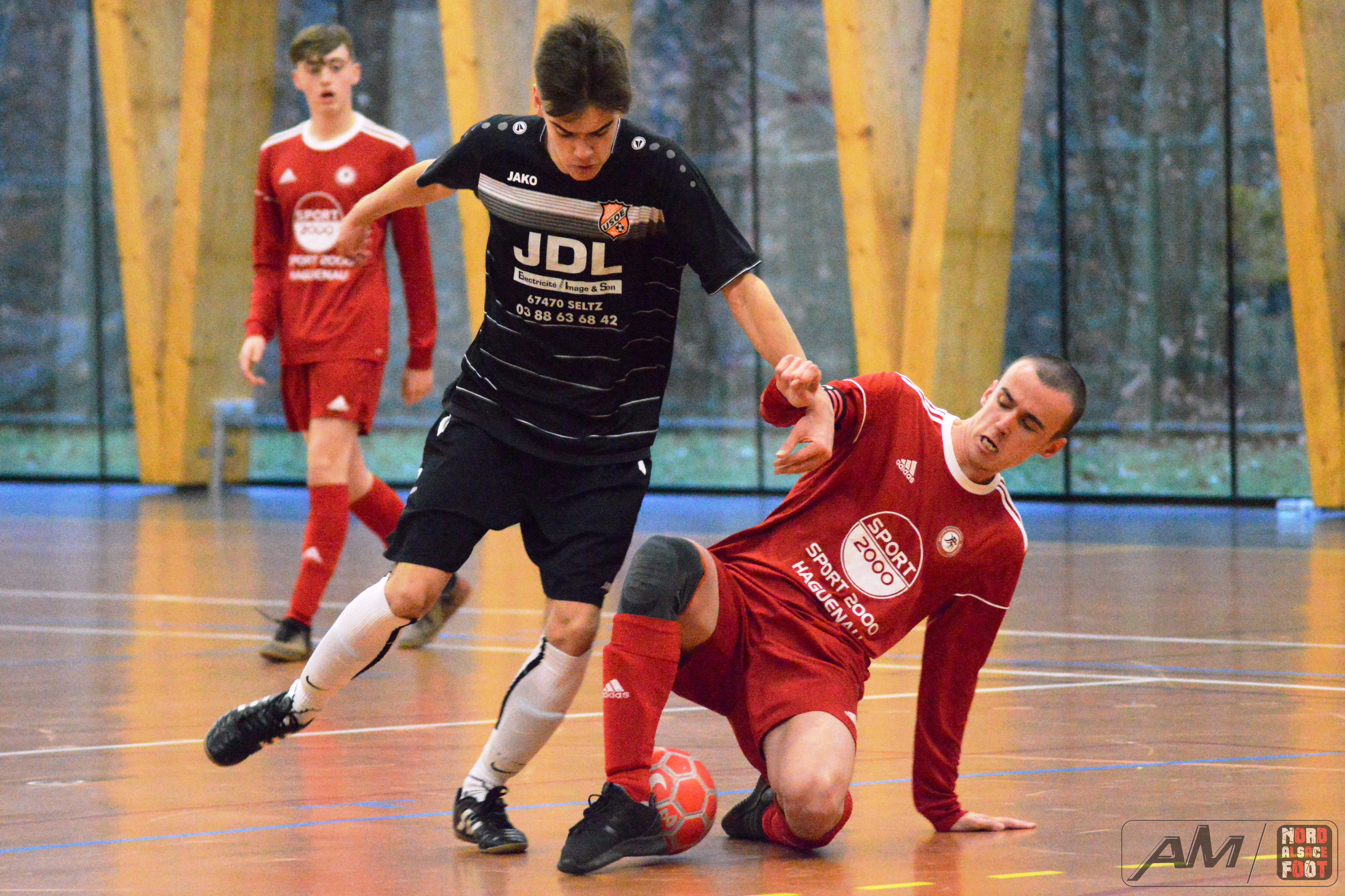 A l’occasion de la deuxième journée comptant pour le Championnat Fustal U18 (Groupe 5), le FC Soufflenheim accueillait pas moins de huit équipes au CERAM afin de connaître les deux qualifiés pour la finale à l’issue de cette journée. Après un peu plus de deux heures de débats, le FCE Schirrhein s’adjugea la première place (23pts) juste devant Oberlauterbach/Eevan (20pts). Retrouvez quelques images de ce rendez-vous et, pour en apprécier le contenu, veuillez cliquer sur l’une d’entre-elles pour afficher le diaporama.