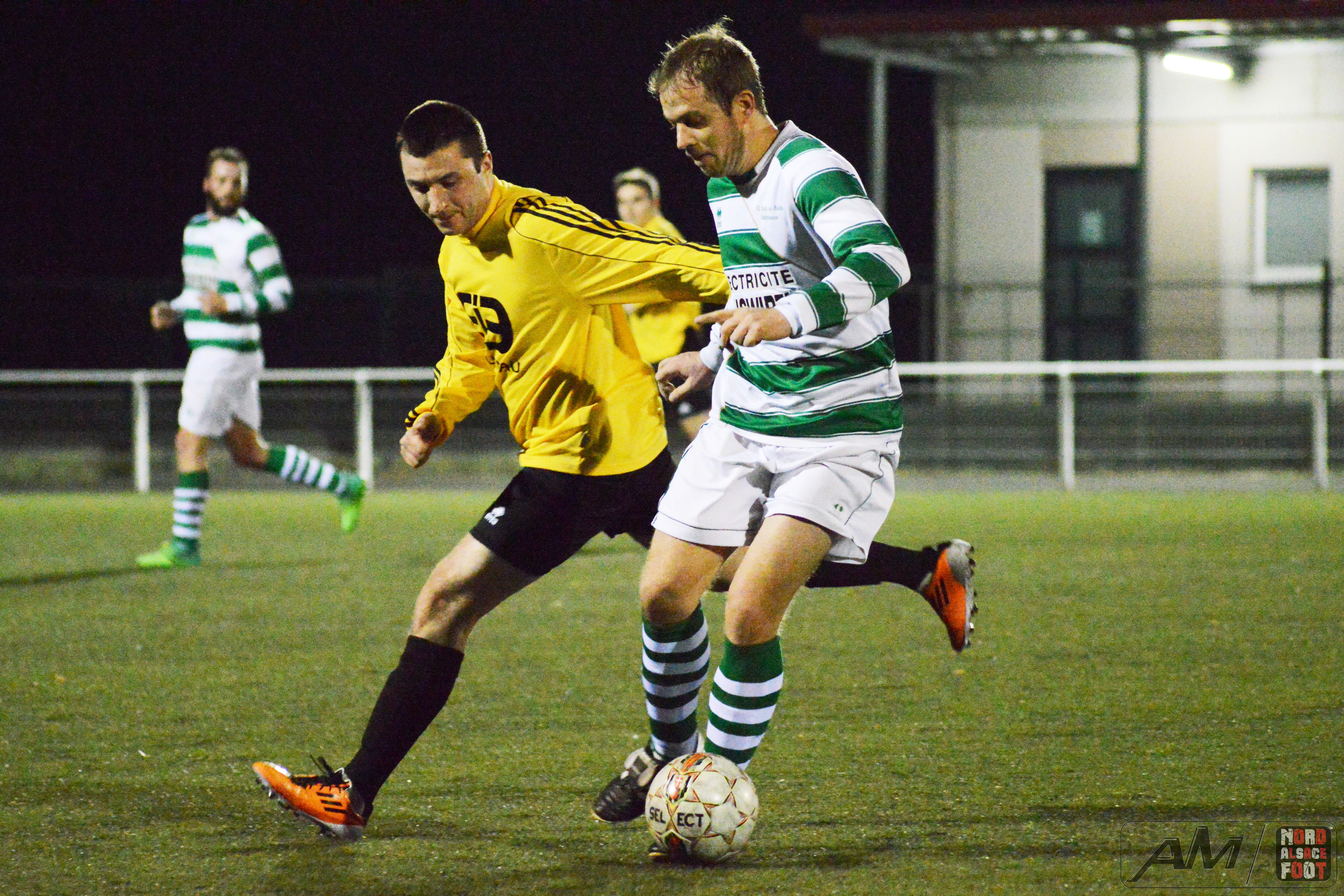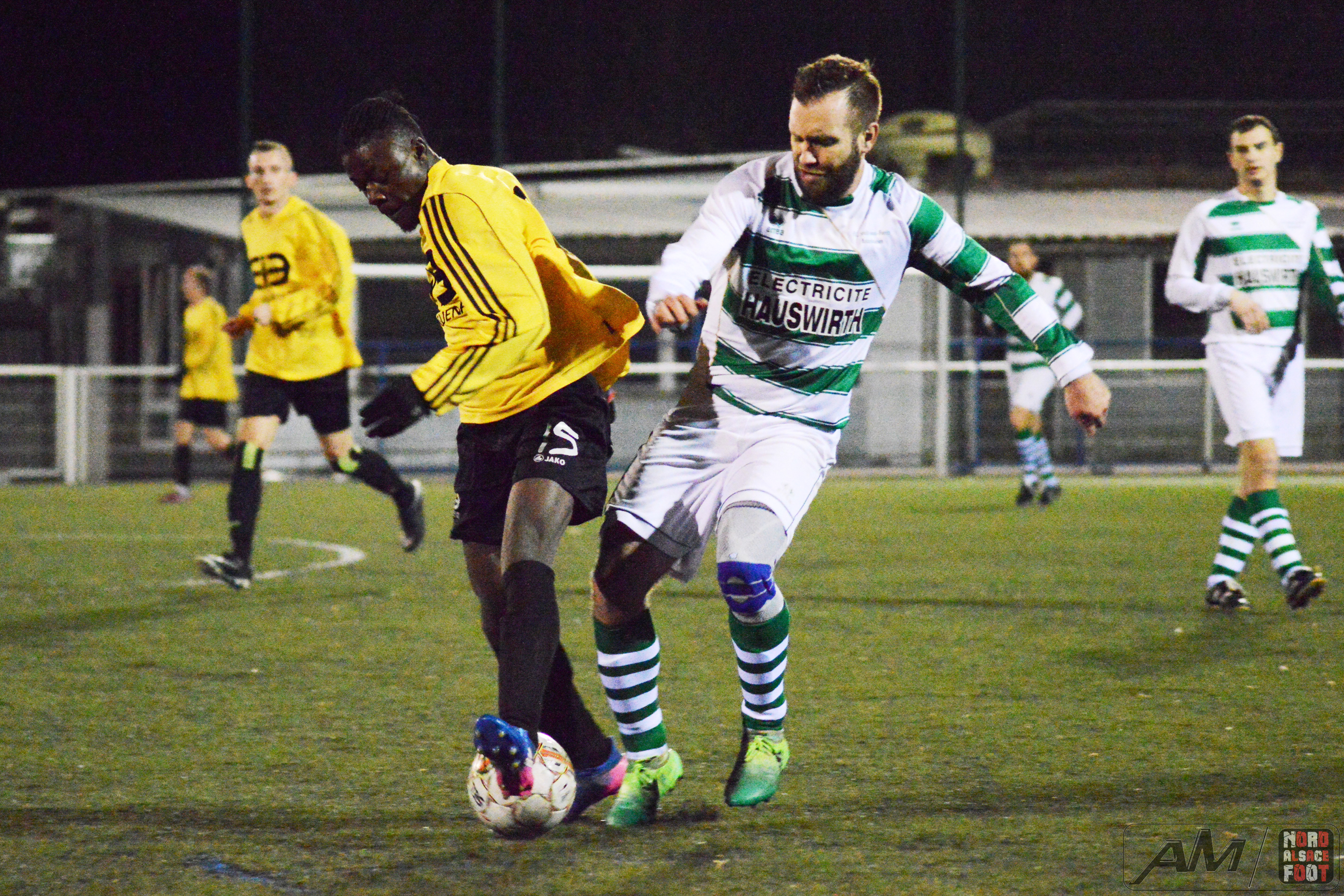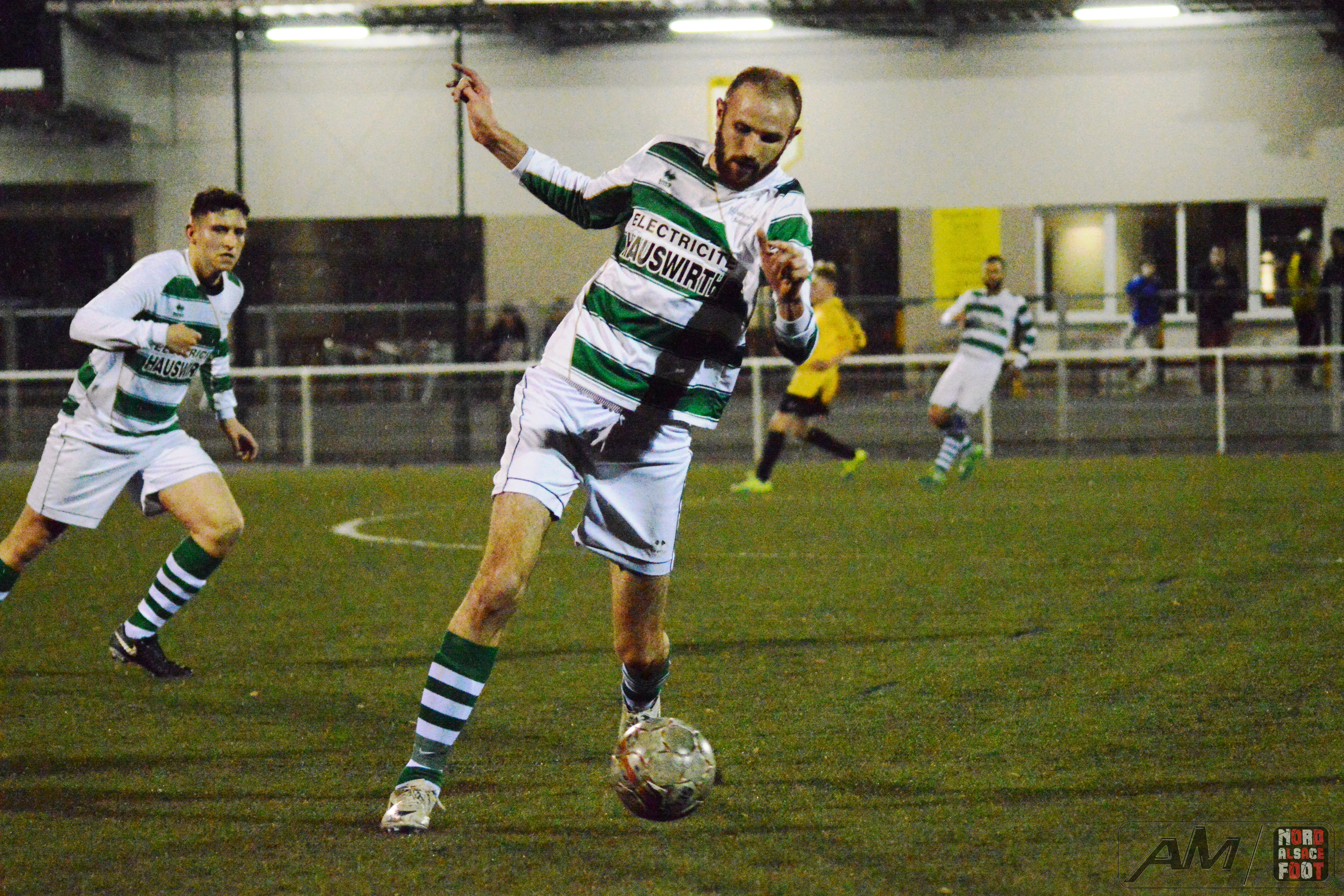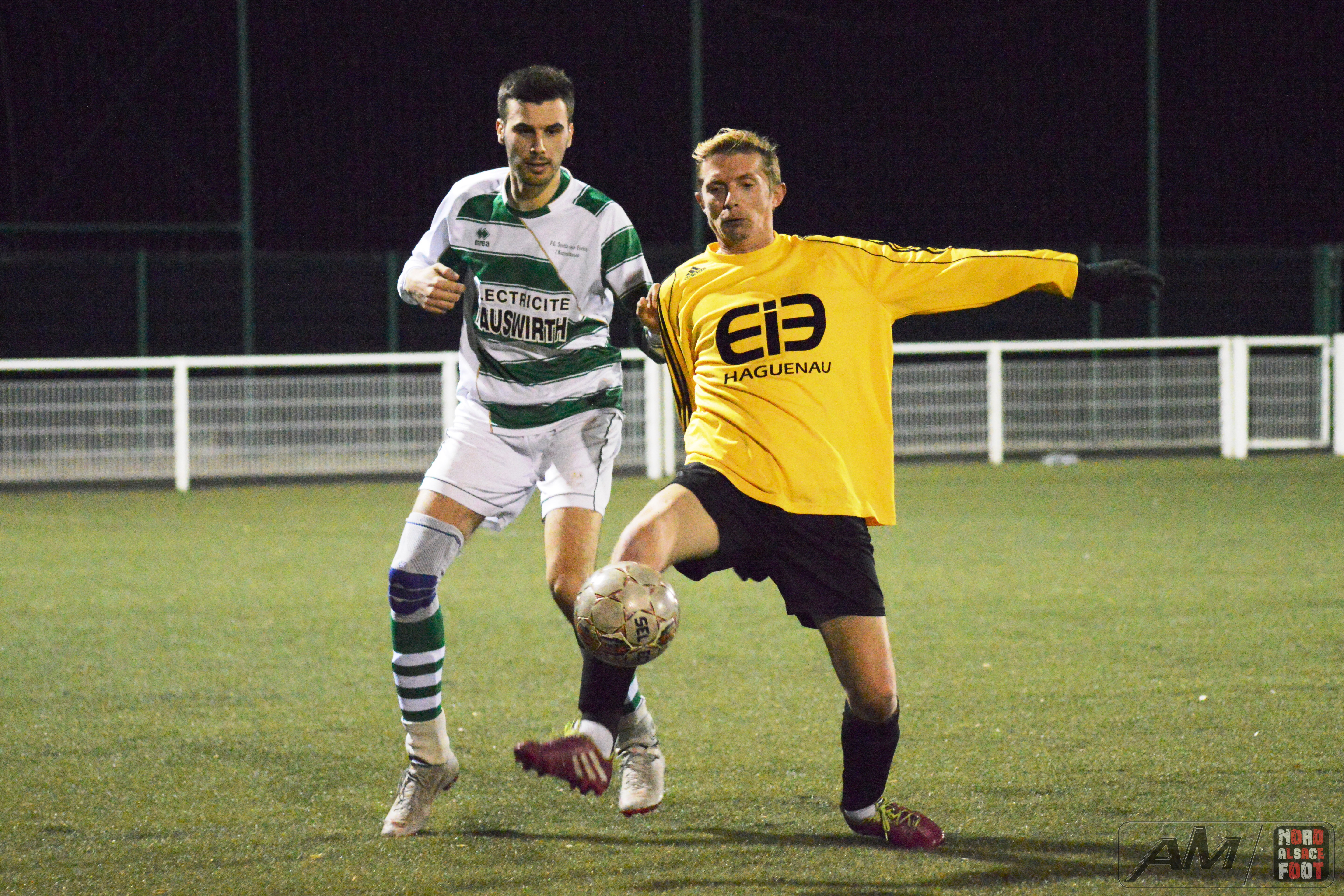 A l’occasion de leur troisième rencontre amicale de la trêve hivernale, l’AS Hatten accueillait, ce jeudi, les doublures du FC Soultz/Kutzenhausen avec la ferme intention de travailler les derniers automatismes avant la reprise du championnat intervenant dans un peu plus d’une semaine, et ce, face à des adversaires auteurs d’un sans faute jusqu’alors (rencontres amicales inclues) et déterminés à demeurer dans cette spirale positive sur ce nouveau rendez-vous. Après une première période se soldant par un court avantage en faveur des locaux grâce à une réalisation inscrite par Charneau Kévin (24e), ces derniers allaient dérouler en seconde période avec le break intervenant à l’heure de jeu grâce à Odicky Henri avant que Charneau Kévin ne lui emboîte le pas (65e), Lemmel Kévin venant à son tour apporter sa pierre à l’édifice (84e) pour finalement voir Falempin Cédric être à la conclusion d’un bon mouvement en toute fin de rencontre, ce qui permit aux jaunes et noirs de s’adjuger une large victoire sur le score de 5-0! Retrouvez quelques images de la rencontre et, pour en apprécier le contenu, veuillez cliquer sur l’une d’entre-elles pour afficher le diaporama.