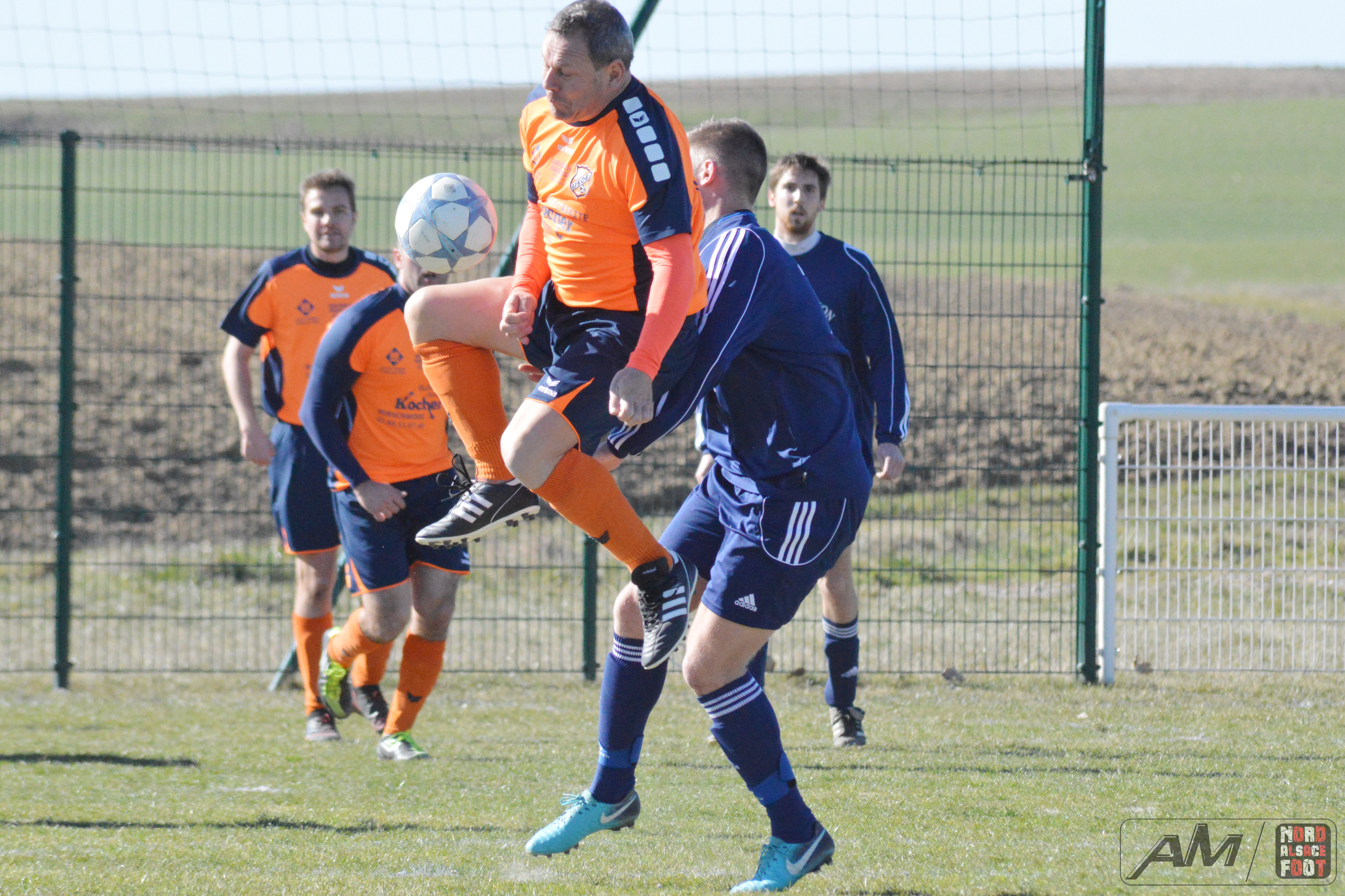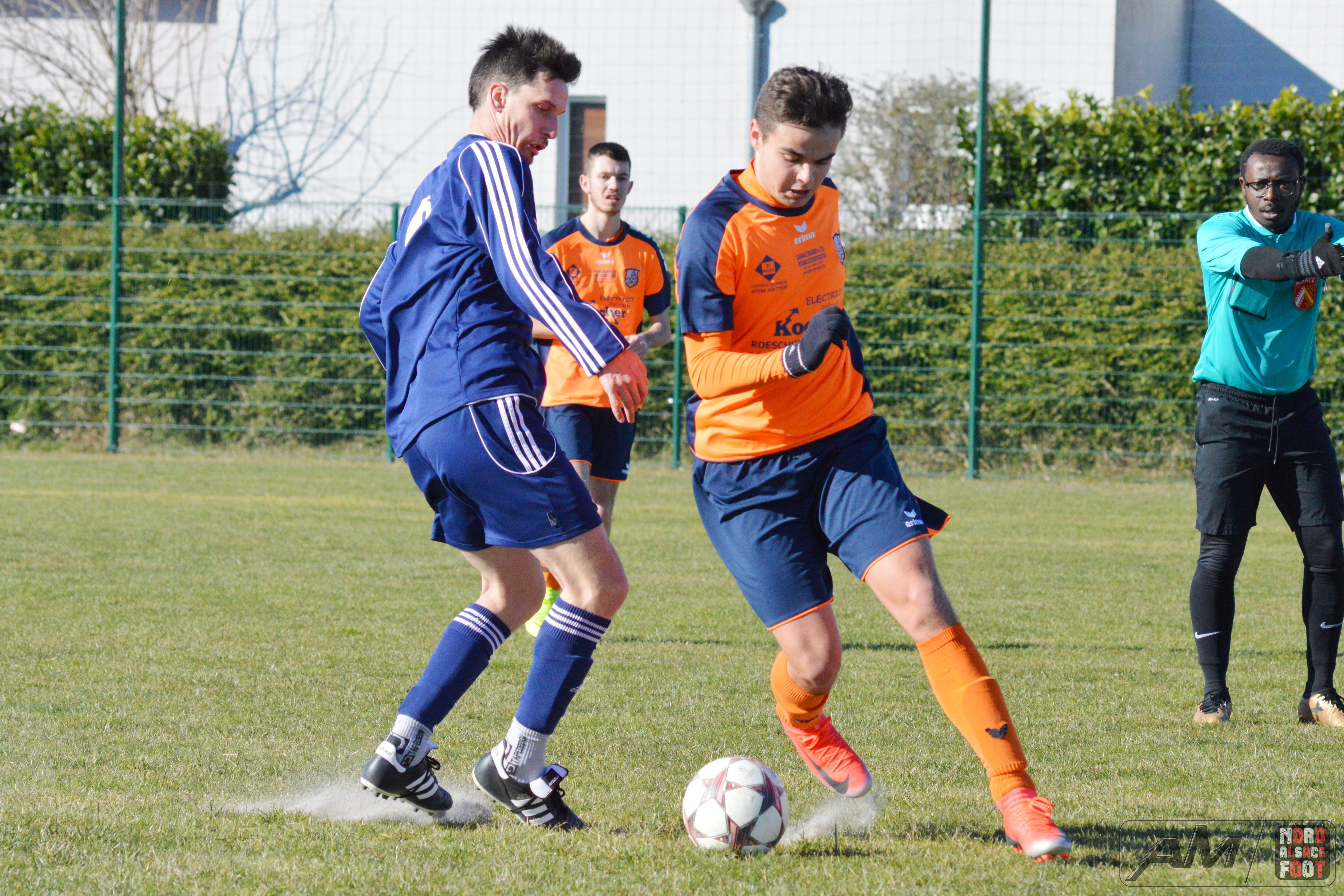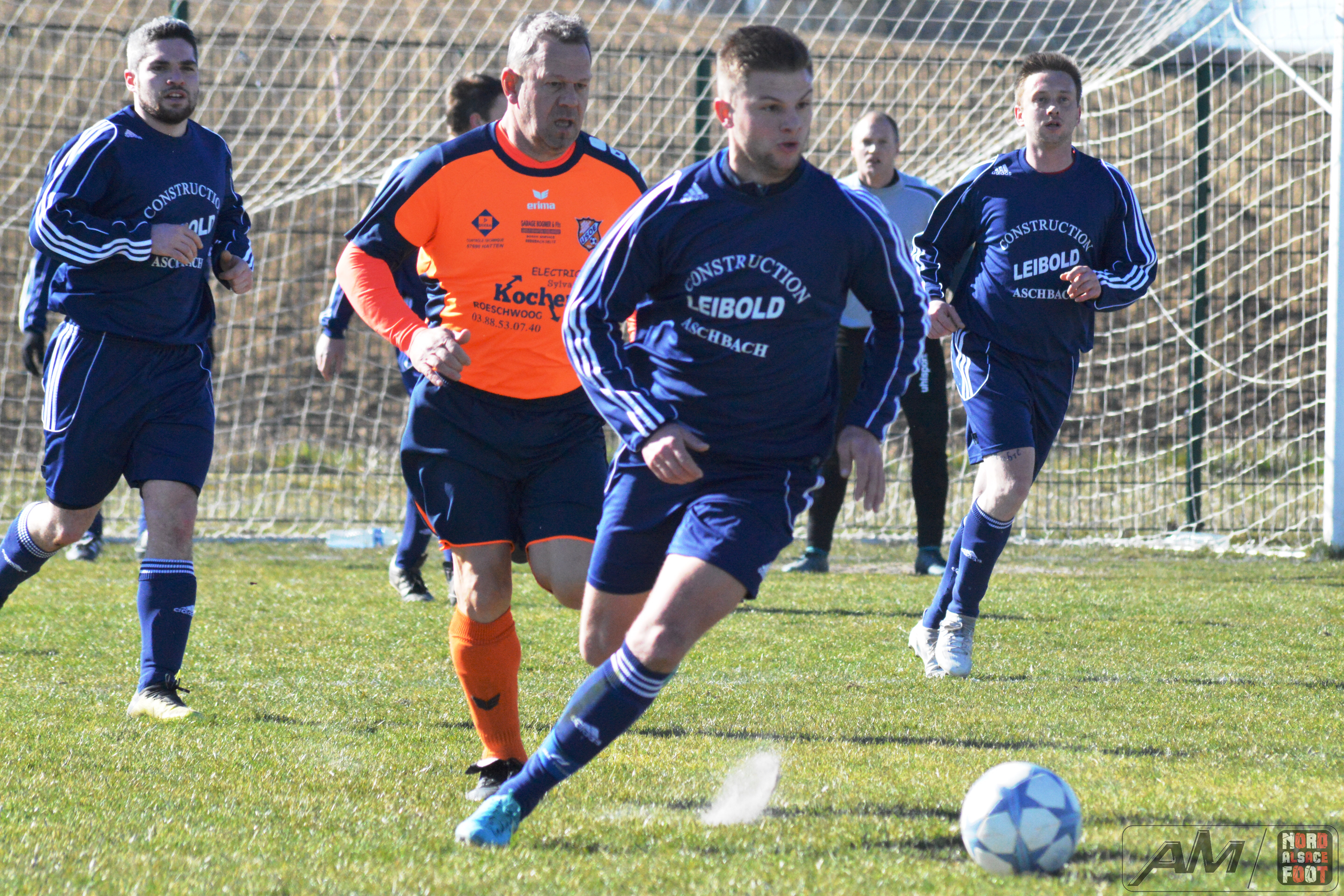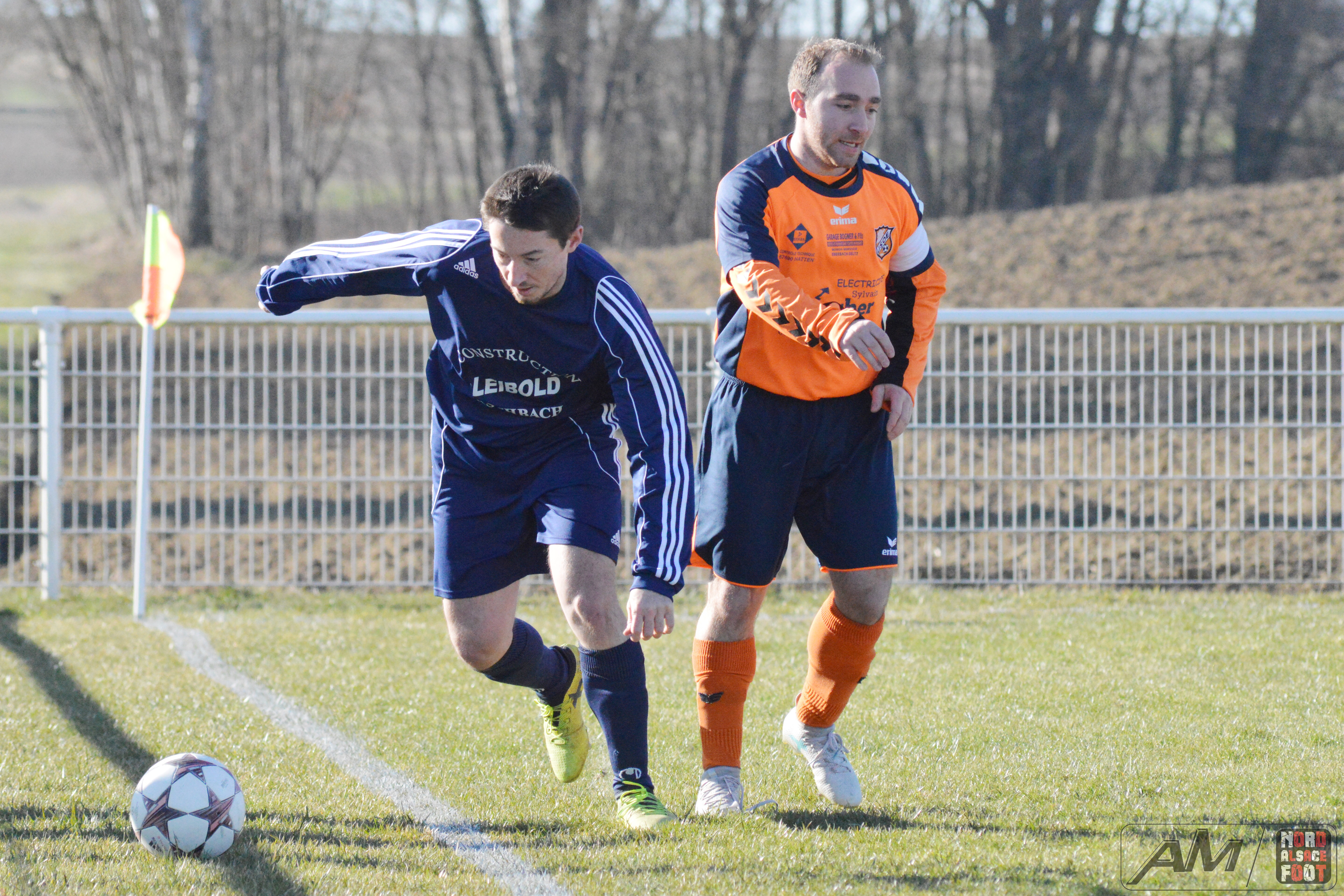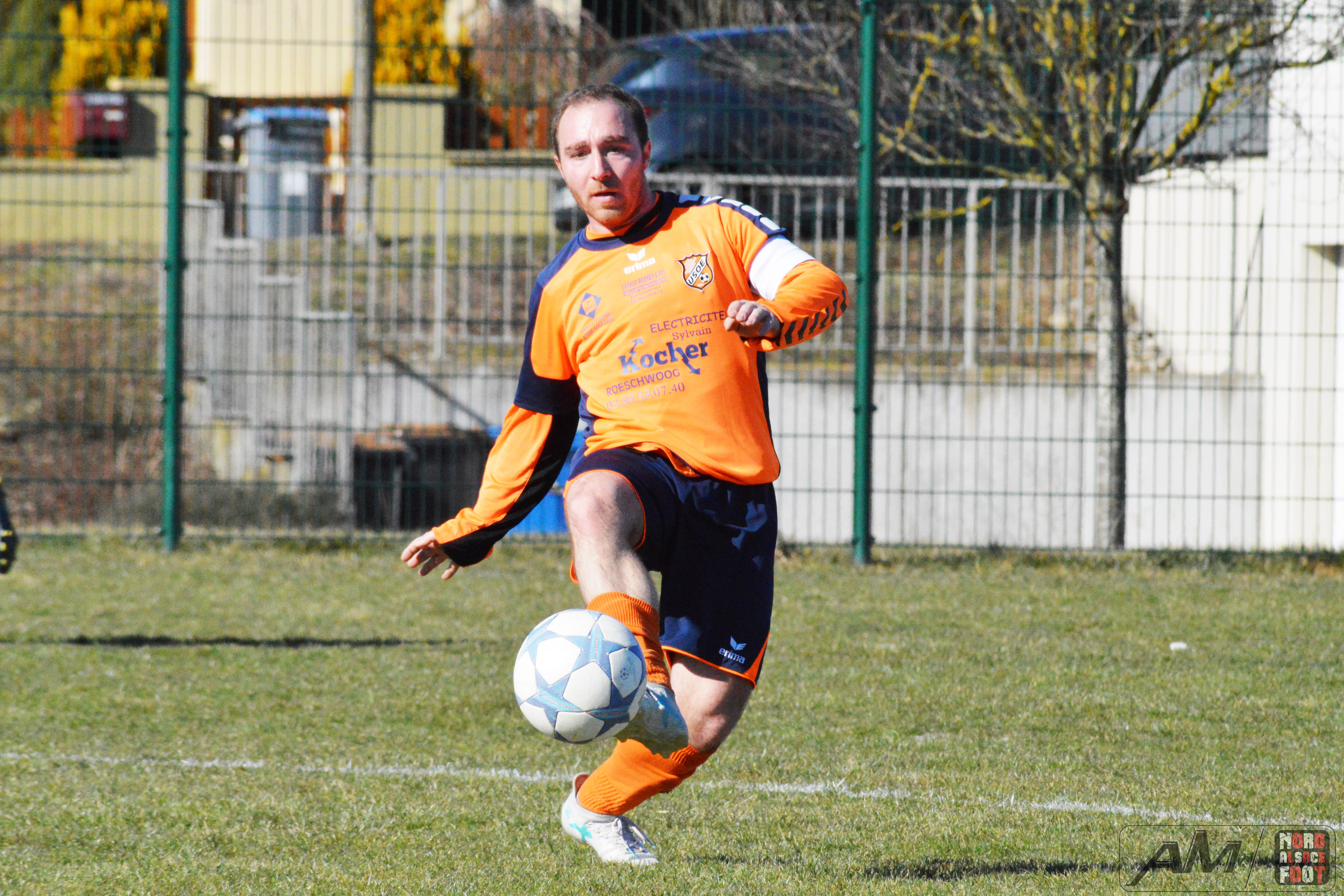 A l’occasion d’un match en retard comptant pour la sixième journée du championnat de District 3, l’US Oberlauterbach 3 offrait l’hospitalité au FR Schoenenbourg/M. 1 avec la ferme intention de s’adjuger les trois points de victoire essentiels dans la course au maintien face à des ententistes pouvant s’insérer sur le podium du Groupe B en cas de victoire ce dimanche matin. Après une première période se soldant par un score nul et vierge, les locaux allaient parvenir à prendre l’avantage à l’heure de jeu grâce à Khaled Lyes avant de voir les visiteurs égaliser à la 73e minute de jeu grâce à Buhl Florent pour finalement les voir renverser complètement la vapeur grâce à des réalisations signées Weishaar Florent (76e) et Flick Raphaël (91e), ce qui permit aux bleus de s’imposer sur ce score de 1-3! Retrouvez quelques images de cette rencontre et, pour en apprécier le contenu, veuillez cliquer sur l’une d’entre-elles pour afficher le diaporama.
