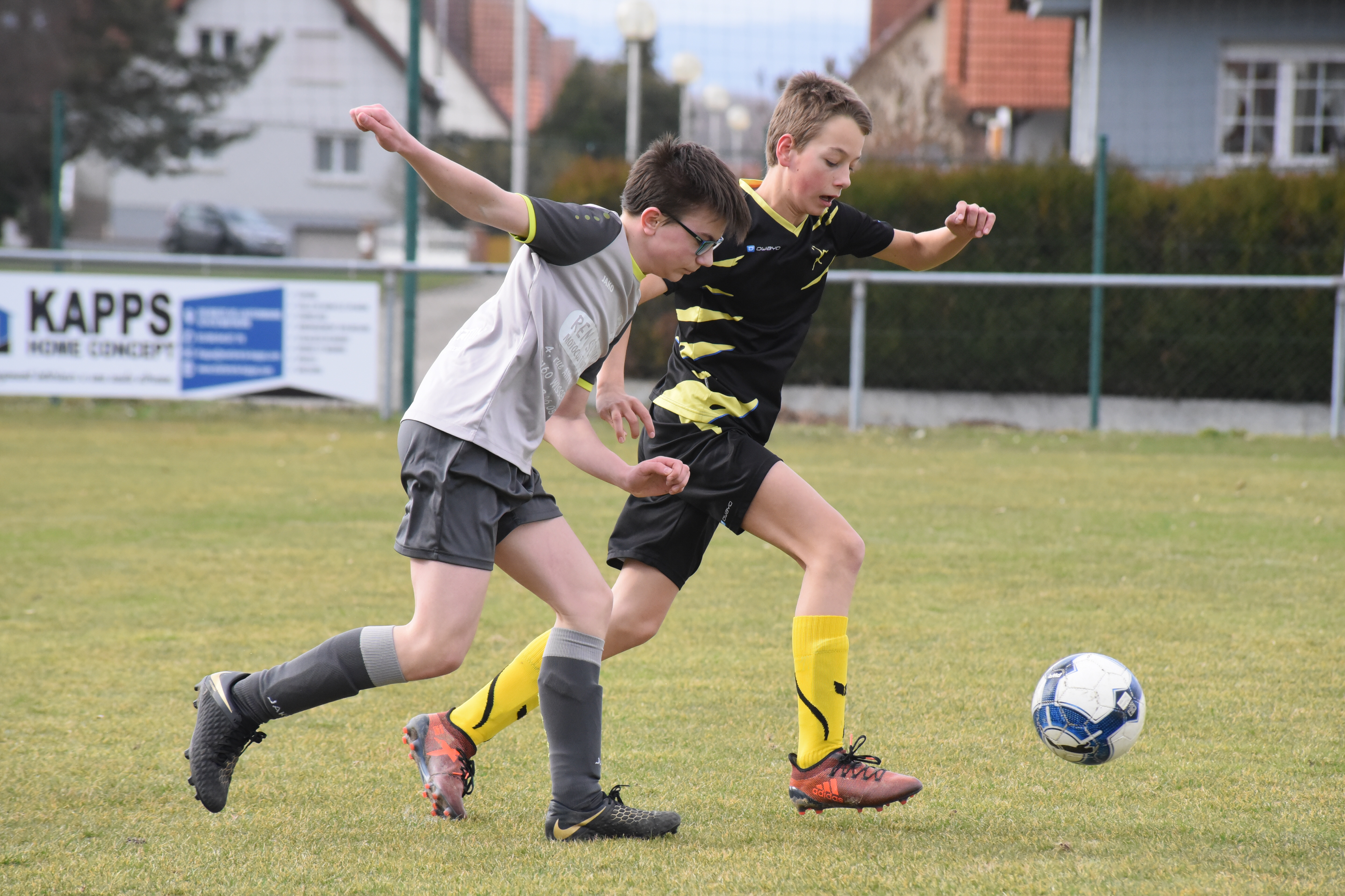 A l’occasion d’un dernier match de préparation avant la reprise des championnats, l’entente Schleithal/Eevan 3 accueillait l’entente Riedseltz/Eevan 4 afin de jauger des forces en présence pour envisager de la meilleure des manières le cycle printemps. Après une première période se soldant par un court avantage en faveur des locaux grâce à des réalisations signées Gey Enzo et Bastian Jonathan contre une réduction du score signée Laufenbuchler Clery pour les visiteurs, le second acte fut globalement dominé par les locaux avec pas moins de trois buts supplémentaires à la clé grâce à un coup de patte victorieux de Jurczak Canu suivi d’un doublé de Gey Enzo puis d’un autre de Bastian Jonathan, ce qui leur permit de largement s’imposer sur le score de 5-1! Retrouvez quelques images de la rencontre et, pour en apprécier le contenu, veuillez cliquer sur l’une d’entre-elles pour afficher le diaporama.