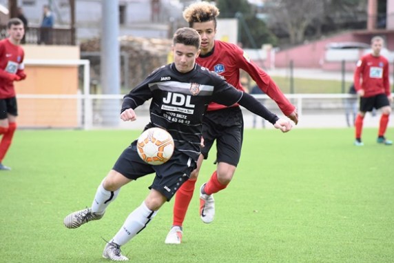 A l’occasion des seizièmes de finale de la Coupe d’Encouragement Crédit Mutuel U18, l’entente Preuschdorf/Evasauer (U18/Promotion) accueillait l’entente Oberlauterbach/Eevan (U18/Excellence) pour tenter de créer une exploit sur leurs terres face à des adversaires leader de leur groupe et déterminés à demeurer actifs sur les deux tableaux. C’est dans ce contexte que le coup d’envoi de la rencontre put être donné par Louison Criqui avec, dès les premières minutes de jeu, une période de domination des visiteurs se mettant en place dans le camp local et, suite à un débordement de Da Silva Lucas sur la gauche, ce dernier se fit reprendre irrégulièrement par Fischer Corentin à hauteur des 20m, ce qui occasionna un coup franc que Beill Hugo se chargea de botter mais sa remise fut complètement loupée et finit donc sa course en sortie de but, on jouait la 3e minute de jeu. Suite au renvoi aux 5.5m effectué par Calvani Tristan, ses milieux de terrain ne pesèrent pas lourd face à la défense adverse, ce qui les forcèrent de reculer à nouveau, notamment suite à cet assaut impliquant Da Silva Lucas et Beill Hugo, ce dernier tentant finalement sa chance d’une frappe des 16m étant renvoyée par la défense directement dans l’axe pour la frappe de Juncker Bastien heurtant la base du poteau gauche avant de sortir au-delà des limites du terrain alors que le portier local avait pris soin de combler l’angle mort, on jouait la 4e minute de jeu. Ayant reçus des consignes ultra-défensives, les rouges et noirs allaient continuer de laisser la libre entreprise à leurs adversaires au cours des minutes suivantes, ce qui conduisit les noirs à lancer une nouvelle offensive du milieu de terrain grâce à Beill Hugo, ce dernier distribuant le ballon sur la gauche et dans la course de Da Silva Lucas qui, des 25m, expédia un centre en direction du second poteau pour la tête de Schell Kévin passant au-dessus de la cible, on jouait la 9e minute de jeu. Dans la foulée du renvoi défensif précédent, les locaux s’accaparèrent le ballon sur la droite avant de franchir la ligne médiane grâce au duo Hartmann/Richert mais, face à l’expérience de la défense visiteuse, ces derniers perdirent le ballon et durent battre en retraite à l’image de cette récupération du cuir très basse de Fischer Corentin, l’attaquant se voyant pressé par Sayah Théo à hauteur des 25m sur la gauche avant de commettre une faute sur l’assaillant pour un coup franc que Beill Hugo se chargea de botter en direction du second poteau pour Fuss Kevan mais le défenseur se fit devancer par Busch William, ce dernier renvoyant le ballon sur la gauche avant d’être relayé par l’un de ses compères du milieu de terrain, on jouait la 11e minute de jeu. Alors qu’on se dirigeait progressivement vers le premier quart d’heure de jeu, les hommes d’Amrhein Damien se retroussèrent les manches afin de sortir de cette mauvaise spirale à l’image de cette remontée de balle sur la droite de Wernert Axel lui permettant de lancer Hartmann Thibaut dans l’axe, le meneur de jeu se prenant le temps de lever la tête afin de prolonger le cuir dans le couloir droit pour Fischer Corentin qui, coupé dans son élan par Weber Joris, se rendit coupable d’une faute sur le défenseur à hauteur des 16m, ce qui occasionna un coup franc défensif permettant aux hommes de Beill Valentin de repartir de l’avant. Consécutivement à la bonne séquence locale précédente, les deux équipes allaient marquer le pas au milieu de terrain pendant quelques minutes, le temps nécessaire aux visiteurs pour envisager une nouvelle offensive par la gauche grâce à Bennacar Ilian, l’attaquant s’engouffrant dans le couloir avant de se faire reprendre irrégulièrement par Fischer Corentin à hauteur des 20m, ce qui amena un nouveau coup franc que Beill Hugo se chargea de jouer court et dans la course de Da Silva Lucas qui, malgré les efforts fournis, ne put empêcher le ballon de mourir en sortie de but, on jouait la 17e minute de jeu.