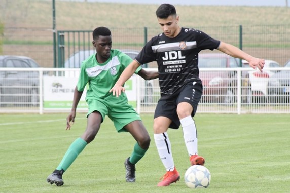 A l’occasion des huitièmes de finale de la Coupe d’Encouragement Crédit Mutuel U18, l’entente “EVAN” accueillait le SC Schiltigheim avec la ferme intention de demeurer actifs sur les deux tableaux en tentant de s’adjuger l’un des précieux sésames pour les quarts de finale de la compétition. C’est dans ce contexte que le coup d’envoi de la rencontre put être donné par Criqui Louison avec, dès les premiers instants de la partie, une courte période d’observation se mettant en place au milieu de terrain avant qu’un premier assaut local ne soit lancé dans l’axe par Bennacar Ilian, l’attaquant s’emmenant le ballon sur plusieurs mètres avant de le décaler à sa droite pour Da Silva Lucas qui, en première intention, lança Strohm Mathieu sur la droite et dans le dos des défenseurs afin qu’il soit en mesure d’expédier un centre en direction du second poteau à hauteur duquel Ozdemir Ridvan poussa le ballon en corner pour un coup de pied de coin que Beill Hugo se chargea de botter rentrant de la gauche et Oster Steve put se saisir tranquillement du ballon, on jouait la 3e minute de jeu. Suite au dégagement de ce dernier, ses coéquipiers éprouvèrent pas mal de difficultés pour ressortir de leur moitié de terrain face à des adversaires bien en place dans tous les secteurs du jeu et, suite à une perte de balle sur le côté gauche, les locaux purent envisager une offensive dans le couloir se soldant rapidement par une touche pour une remise en jeu que Albenesius Corentin se chargea d’effectuer pour Da Silva Lucas, le défenseur parvenant à fausser compagnie à son adversaire direct avant d’émettre un centre en direction du second poteau pour Strohm Mathieu qui buta sur Oster Steve, le portier visiteur écartant le danger en corner pour un coup de pied de coin que Da Silva Lucas se chargea de botter de la droite en direction du premier poteau à hauteur duquel un défenseur veillait au grain en pouvant dégager le danger bien assez loin de sa zone d’inconfort, on jouait la 5e minute de jeu. Après un début de match se déroulant sur un rythme effréné, les deux formations allaient ensuite se donner le change au milieu de terrain pendant quelques minutes avant que les verts ne s’offrent leurs premières offensives, toutes se soldant par des échecs dans les derniers 20m et, suite à une perte de balle des visiteurs sur le côté droit, Fuss Kevan en profita pour déborder dans le couloir avant de se faire sécher par Sambou Boutoub Destin à hauteur des 35m, ce qui occasionna un coup franc que la victime du méfait se chargea d’envoyer directement à gauche de la cible, on jouait la 18e minute de jeu. Consécutivement au renvoi aux 5.5m effectué par Oster Steve, ses partenaires firent le nécessaire pour s’accaparer le ballon au milieu de terrain avant de voir Hertrich Ryan en hériter dans l’axe, l’attaquant passant la ligne médiane avant de décaler le ballon sur la droite et dans la course de Meckes Beghriche Yacin, le meneur de jeu n’hésitant pas à émettre un centre des 20m en direction du second poteau à hauteur duquel Landolfo Donato fut bien trop court pour espérer couper la trajectoire du ballon, ce dernier échouant finalement en sortie de but, on jouait la 19e minute de jeu. Quadrillant parfaitement le terrain, les visiteurs n’eurent aucun mal à remettre le pied sur le ballon dans l’axe grâce notamment à Bembo Moleka Rémy, ce dernier s’offrant une percée dans l’axe avant de distribuer le ballon sur la droite pour Meckes Beghriche Yacin, le meneur de jeu envoyant ensuite une passe en première intention dans la surface de réparation pour Landolfo Donato mais l’assaillant fut bien encadré par Da Silva Lucas et Weber Joris, on jouait la 20e minute de jeu. Loin de vouloir subir trop longtemps les assauts adverses, les noirs profitèrent du renvoi défensif précédent afin d’investir le camp adverse dans l’axe en se heurtant à un bon foyer de résistance et, au terme d’âpres duels, les hommes de Beill Valentin tirèrent leur épingle du jeu par la droite grâce à Fuss Kevan, ce dernier déboulant dans le couloir avant de voir Sambou Boutoub Destin couper la trajectoire du ballon en touche pour une remise en jeu que l’assaillant se chargea d’effectuer en direction d’Albenesius Corentin qui, en une touche de balle, servit Fuss Kevan dans le dos des défenseurs, ce dernier ne se faisant pas prier pour expédier un centre en retrait pour Bennacar Ilian qui, de la poitrine, mit Strohm Mathieu dans de bonnes dispositions pour crucifier le portier adverse d’une frappe limpide, on jouait la 22e minute de jeu, 1-0!