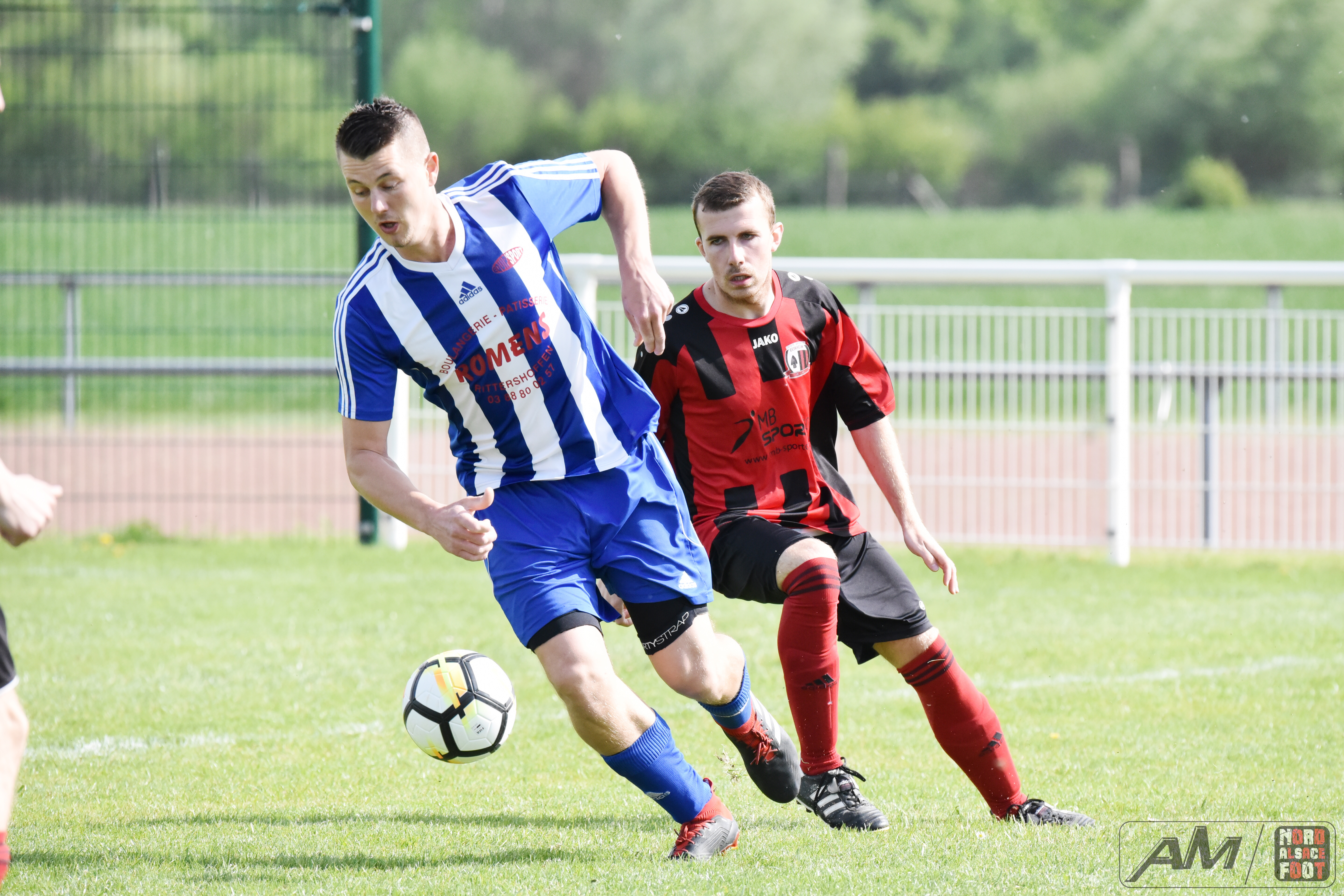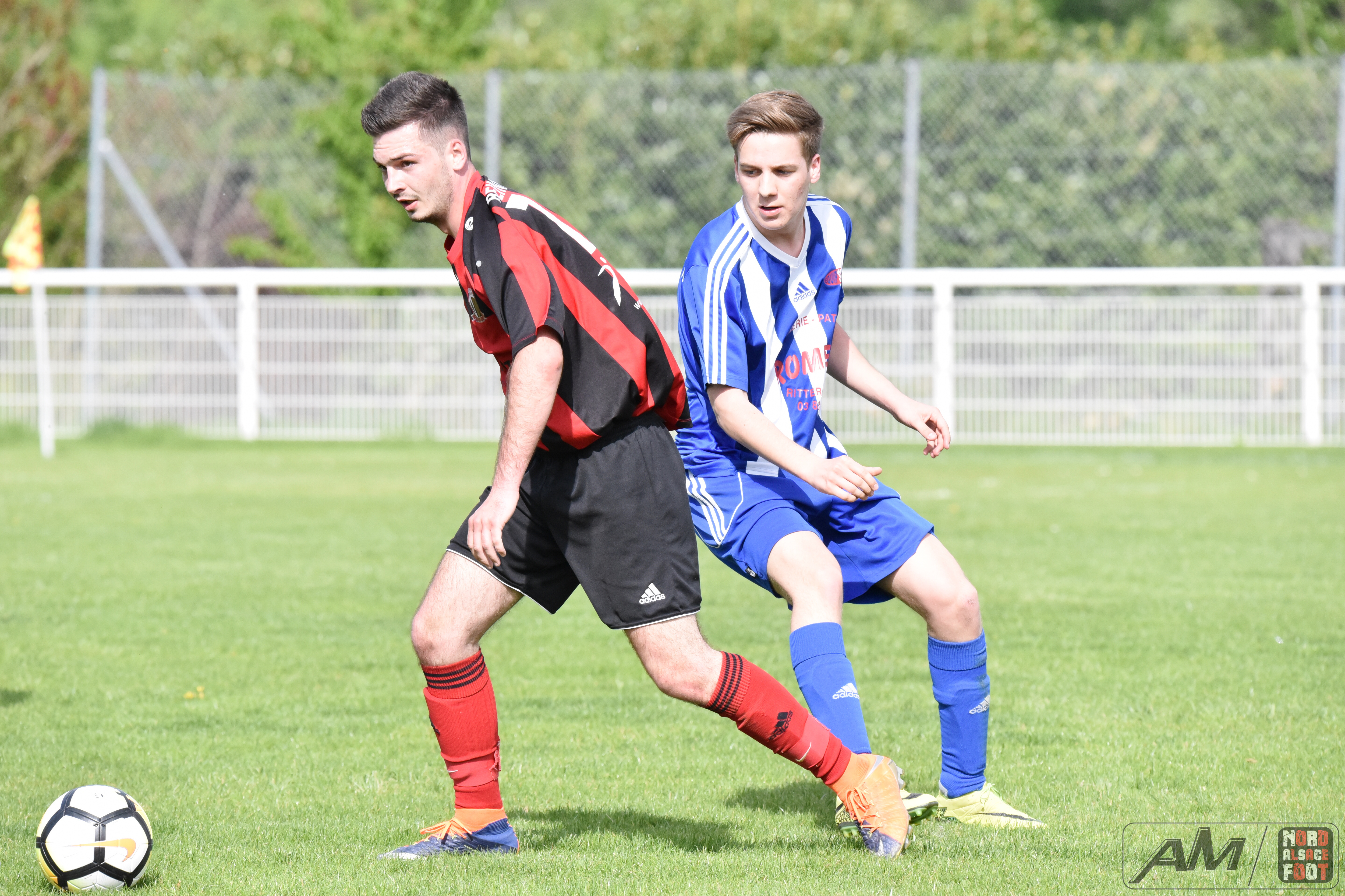 A l’occasion d’un match en retard comptant pour la 14e journée de championnat en District 3, la Société Sportive de Beinheim (11e) accueillait le Sporting Club de Rittershoffen (7e) pour une rencontre au combien importante pour les locaux, ces derniers devant à tous prix se sortir de la zone rouge face à des adversaires n’étant pas à encore à l’abri de la relégation. Après une première période se soldant par un court avantage en faveur des locaux grâce à un penalty transformé par Weigel Maxime (6e), ces derniers allaient faire le break sur l’engagement suite à une bonne inspiration de Dietenbeck Steeve (46e) avant que les visiteurs ne réduisent la marque à la 55e minute de jeu grâce à Rott Marc Antoine pour finalement voir Weigel Maxime s’offrir un quadruplé (71e, 74e et 77e), ce qui permit à son équipe de largement s’imposer sur ce score sans appel de 5-1! Retrouvez quelques images de la rencontre et, pour en apprécier le contenu, veuillez cliquer sur l’une d’entre-elles pour afficher le diaporama.