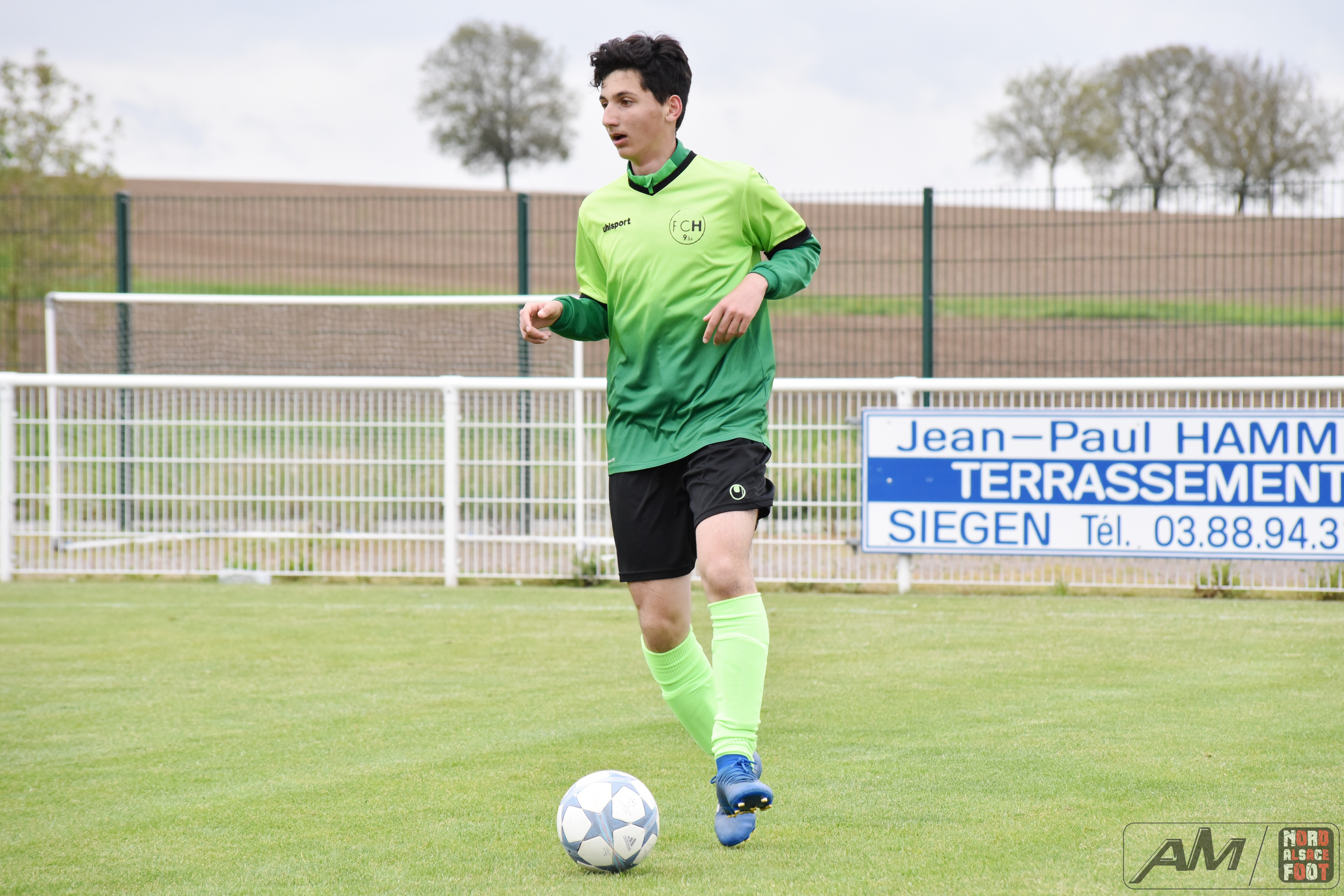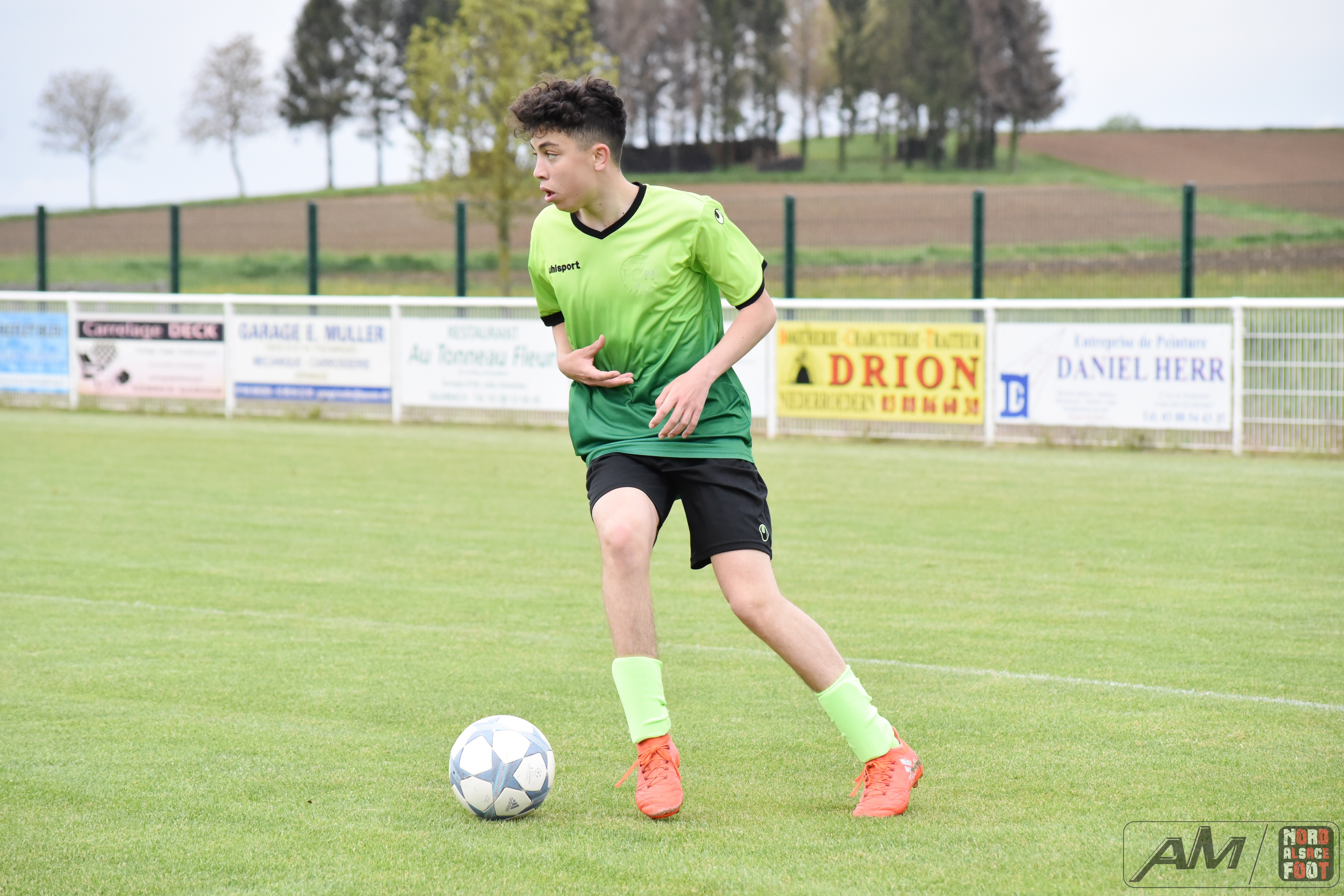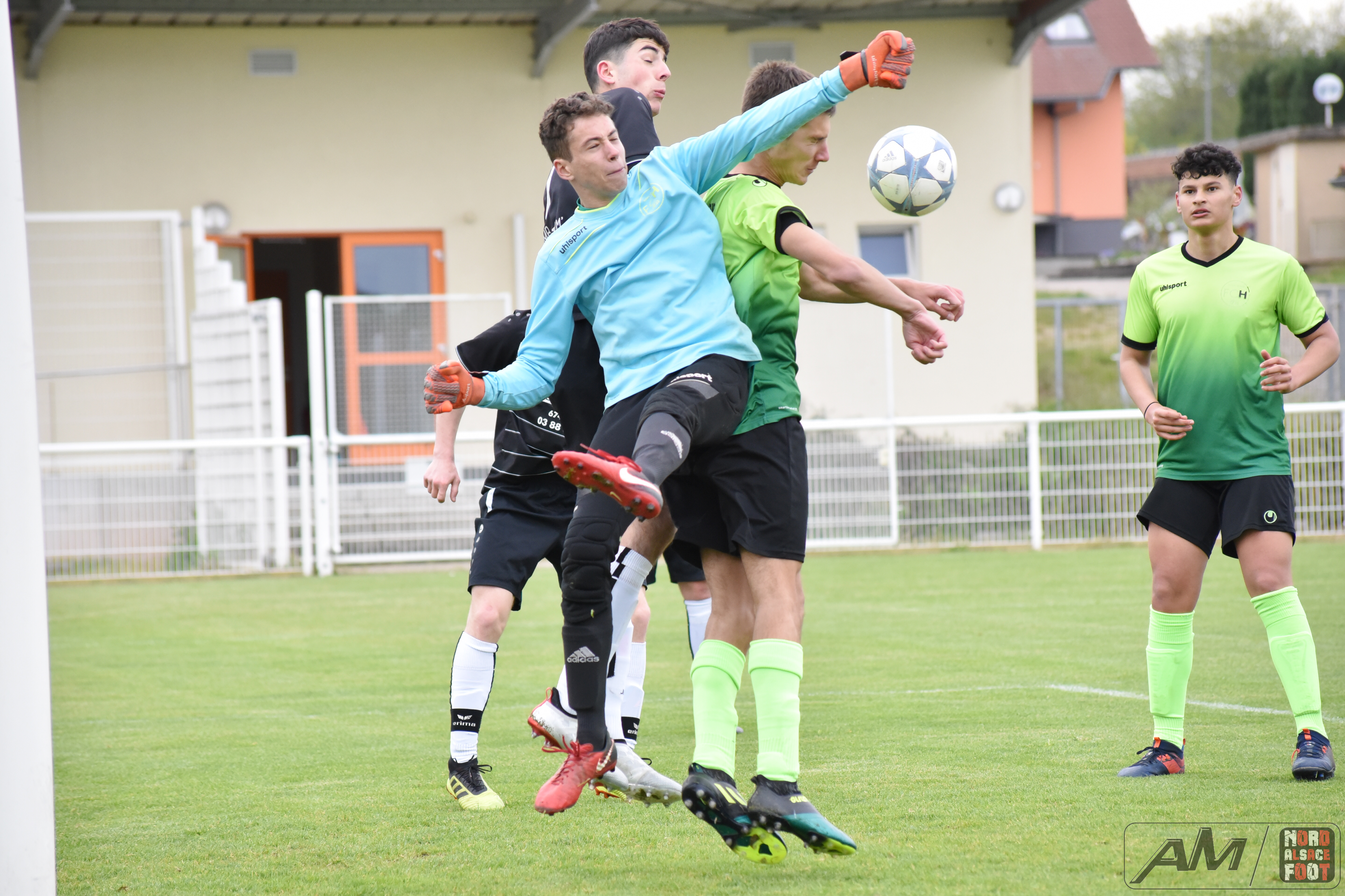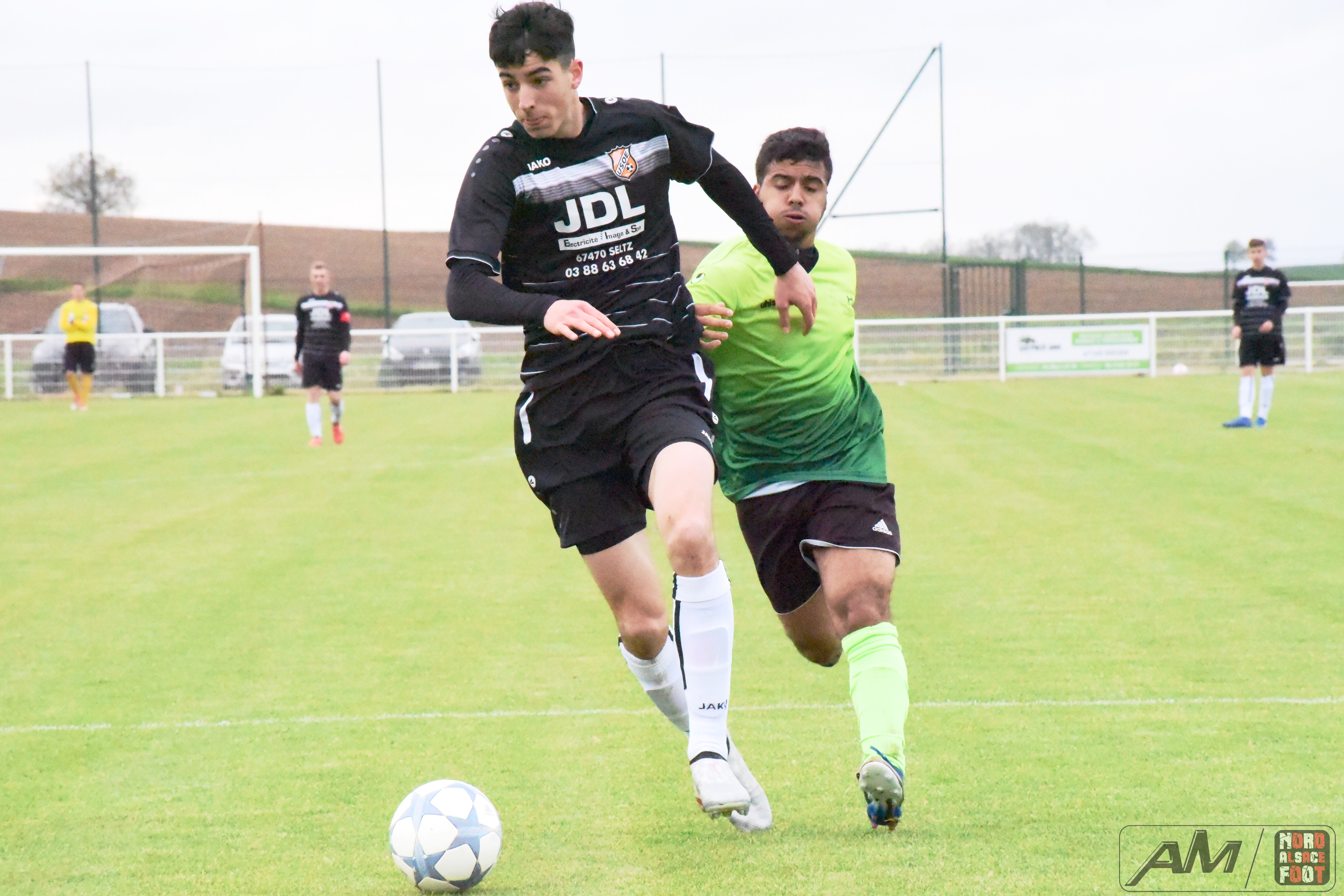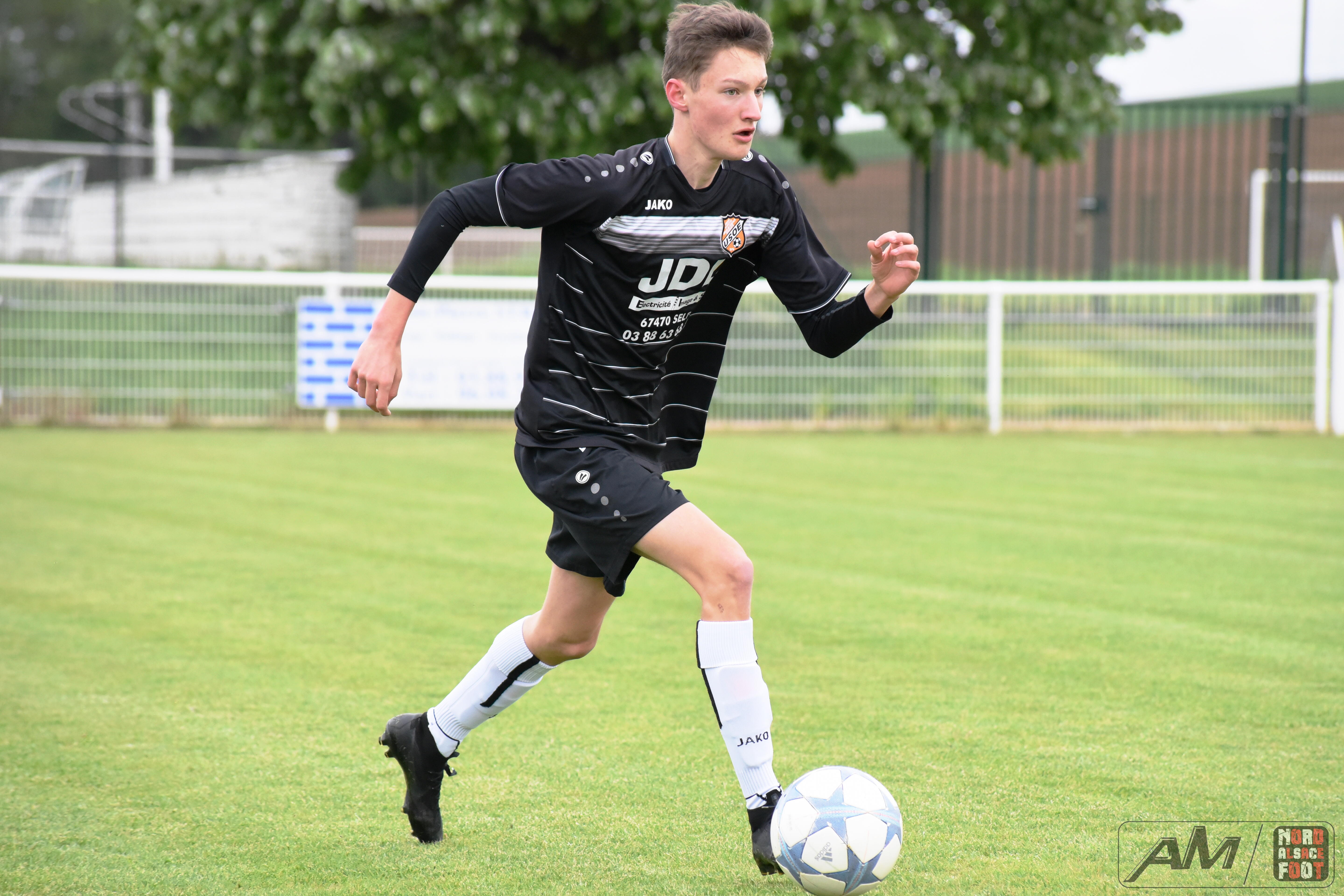 A l’occasion de la 21e journée de championnat en U18/Excellence, l’entente EVAN accueillait le FC Herrlisheim pour un choc des extrêmes devant conforter un peu plus les locaux à la première place du groupe face à la lanterne rouge s’étant déplacée à dix pour espérer créer un exploit face au leader. Après une première période se soldant par un net avantage en faveur des locaux grâce à des réalisations signées Ozcan Ozgur (3e), Bennacar Ilian (18e), Amouroux Julian (25e, CSC) et Strohm Mathieu (43e), ces derniers allaient aggraver sévèrement la marque grâce à un triplé de Strohm Mathieu (52e et 74e) et grâce à des réalisations signées Neff Loïc (72e), Albenesius Corentin (79e) et Juncker Bastien (82e), les ententistes finissant donc pas s’imposer sur le score de 9-0! Retrouvez quelques photos de la rencontre et, pour en apprécier le contenu, veuillez cliquer sur l’une d’entre-elles pour afficher le diaporama.