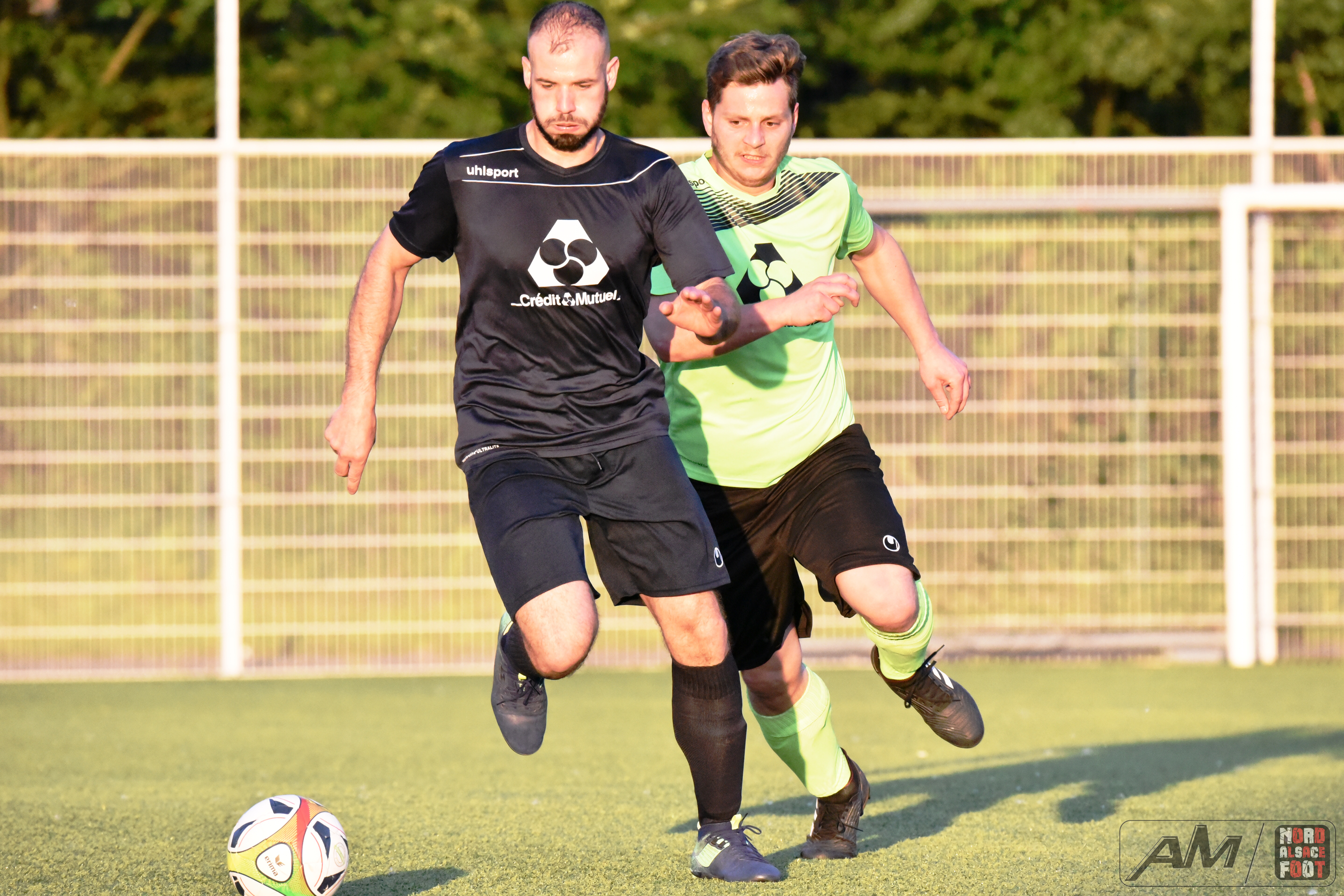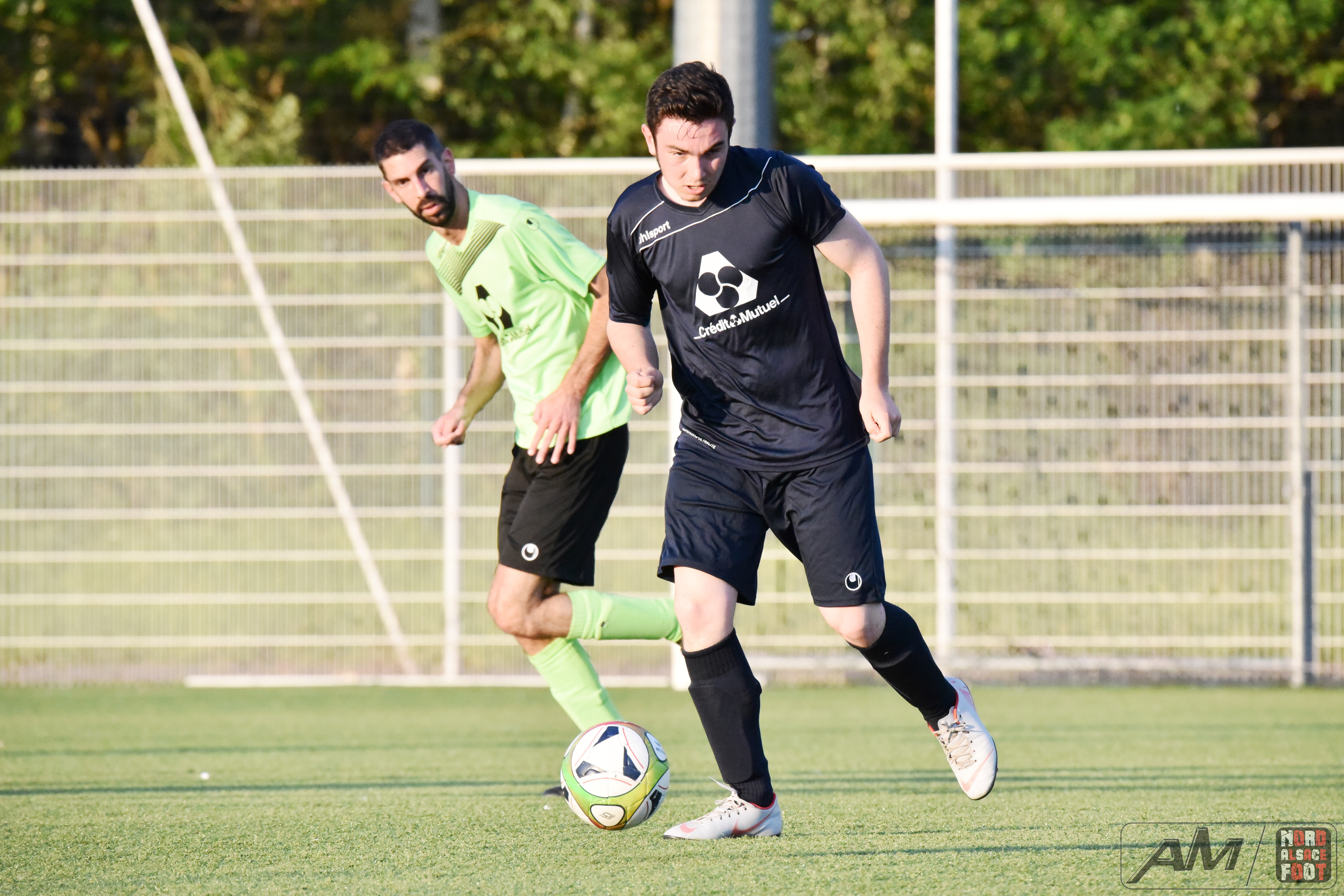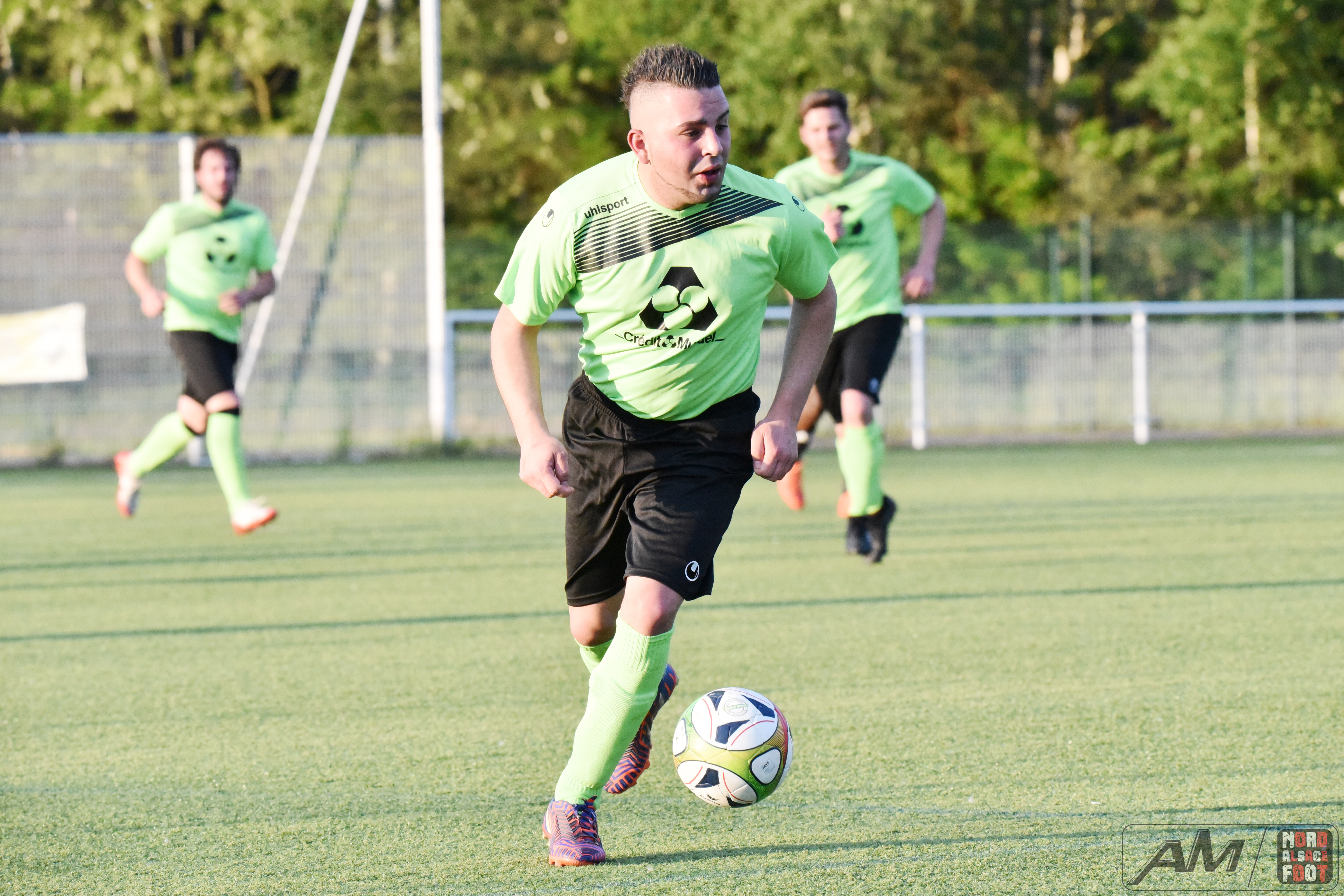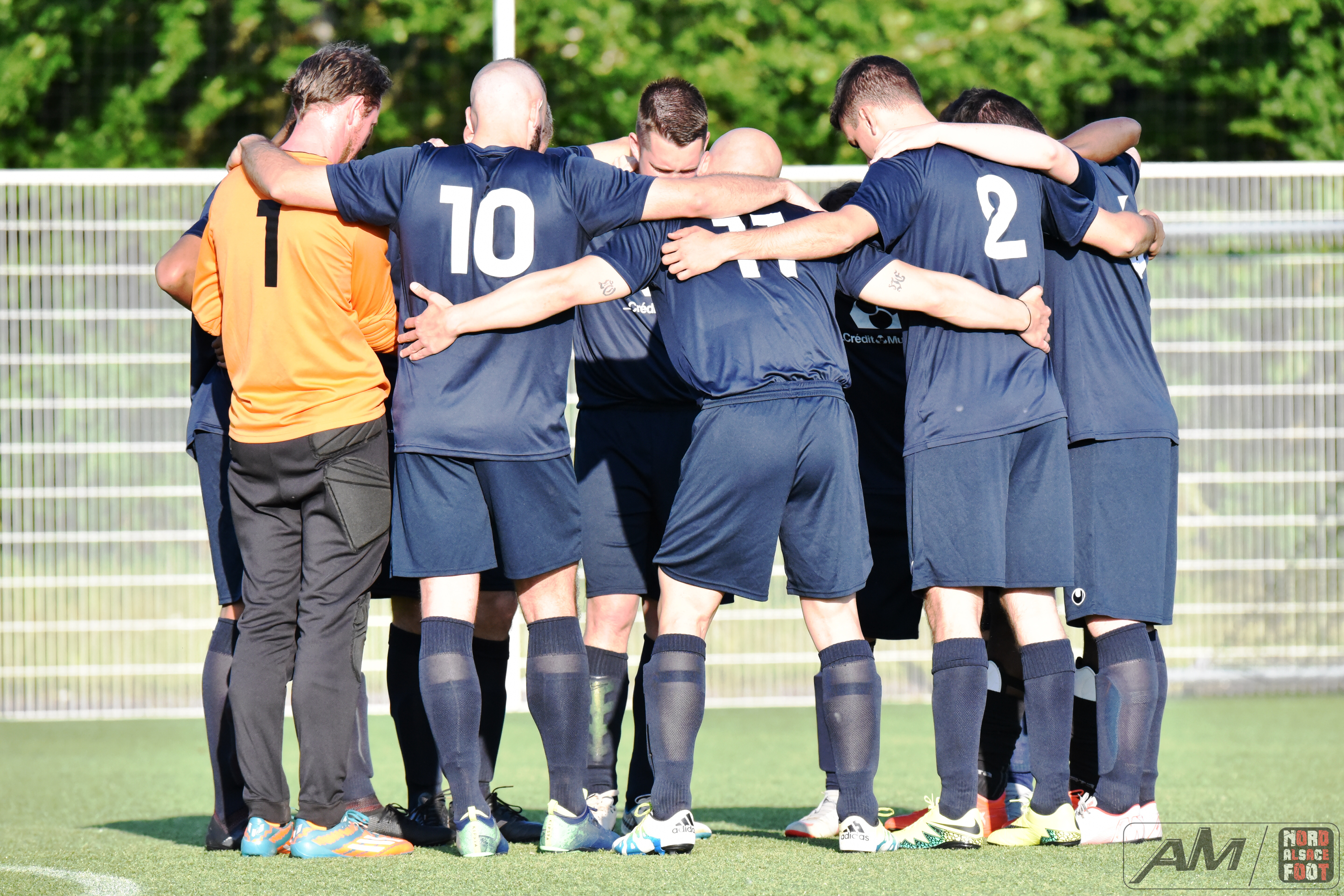 A l’occasion d’un match en retard comptant pour la 20e journée de championnat en District 9 (Gr D), le FC Seltz 3 (1er) accueillait le FC Gries 2 (4e) pour une rencontre pouvant asseoir un peu plus les verts en tête du groupe en cas de succès ce soir face à des bleus pouvant prendre la seconde place en faveur d’une victoire face au leader invaincu. Après une première période se soldant par un court avantage en faveur des locaux grâce à des réalisations signées Klein Alexandre (24e) et Loeffler Geoffrey (35e) contre un but de Riff Ludovic (25e), les verts allaient concéder une égalisation à la 54e minute de jeu grâce à Darsch Mickaël avant que les locaux ne reprennent l’avantage sur l’engagement suivant grâce à Wahl Joan (55e), les visiteurs égalisant dans la foulée grâce à Ousseni Soulaimana Ibrahima (57e) pour finalement voir les Seltzois dérouler leur meilleur jeu au cours de la dernière demi-heure, ces derniers ajoutant quatre nouvelles réalisations au compteur grâce à un triplé de Lehrer Manuel (66e, 87e, 88e) et d’un but de Ridane Nader (81e), ce qui leur permit de largement s’imposer sur ce score de 7-3! Retrouvez quelques images de cette rencontre et, pour en apprécier le contenu, veuillez cliquer sur l’une d’entre-elles pour afficher le diaporama.