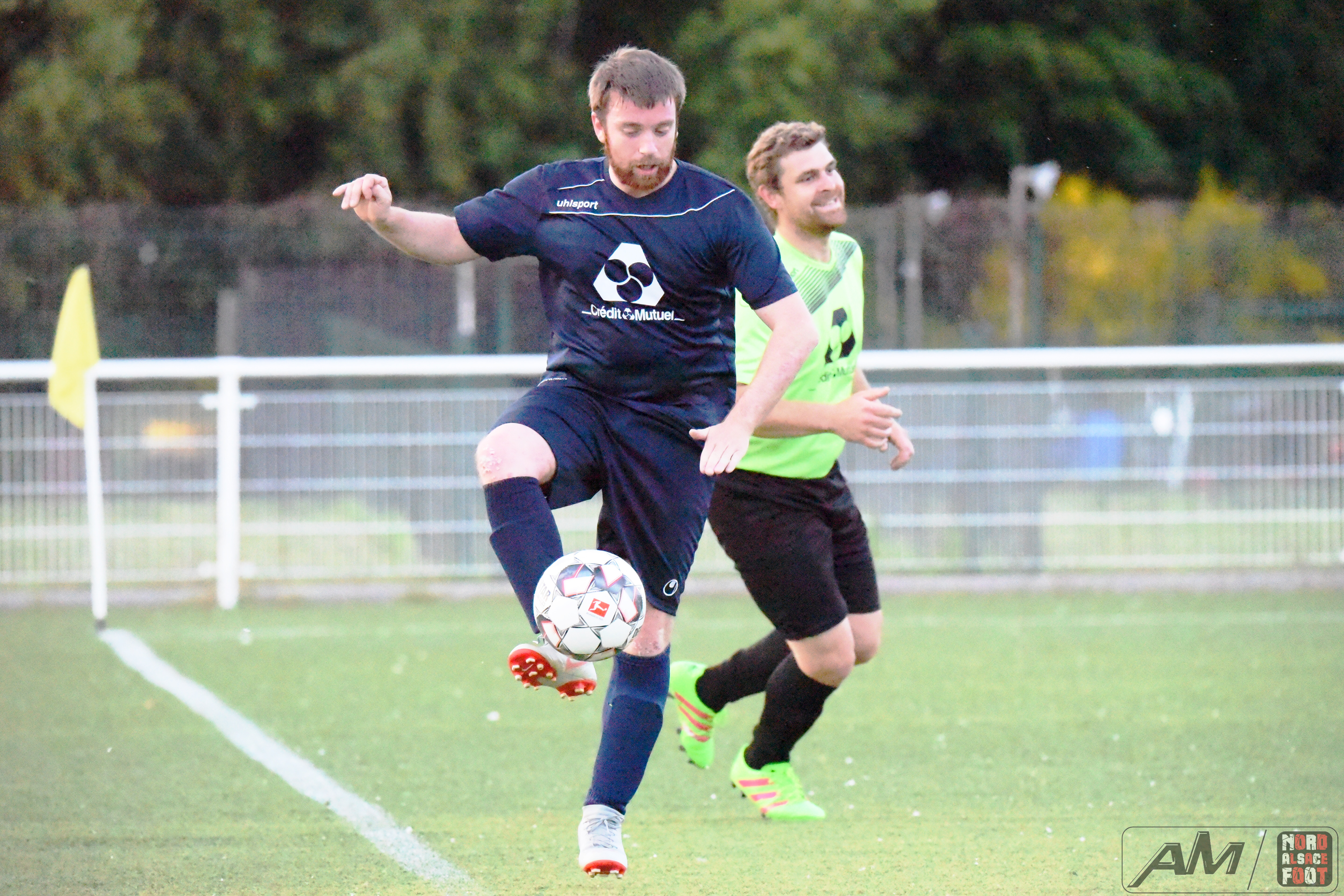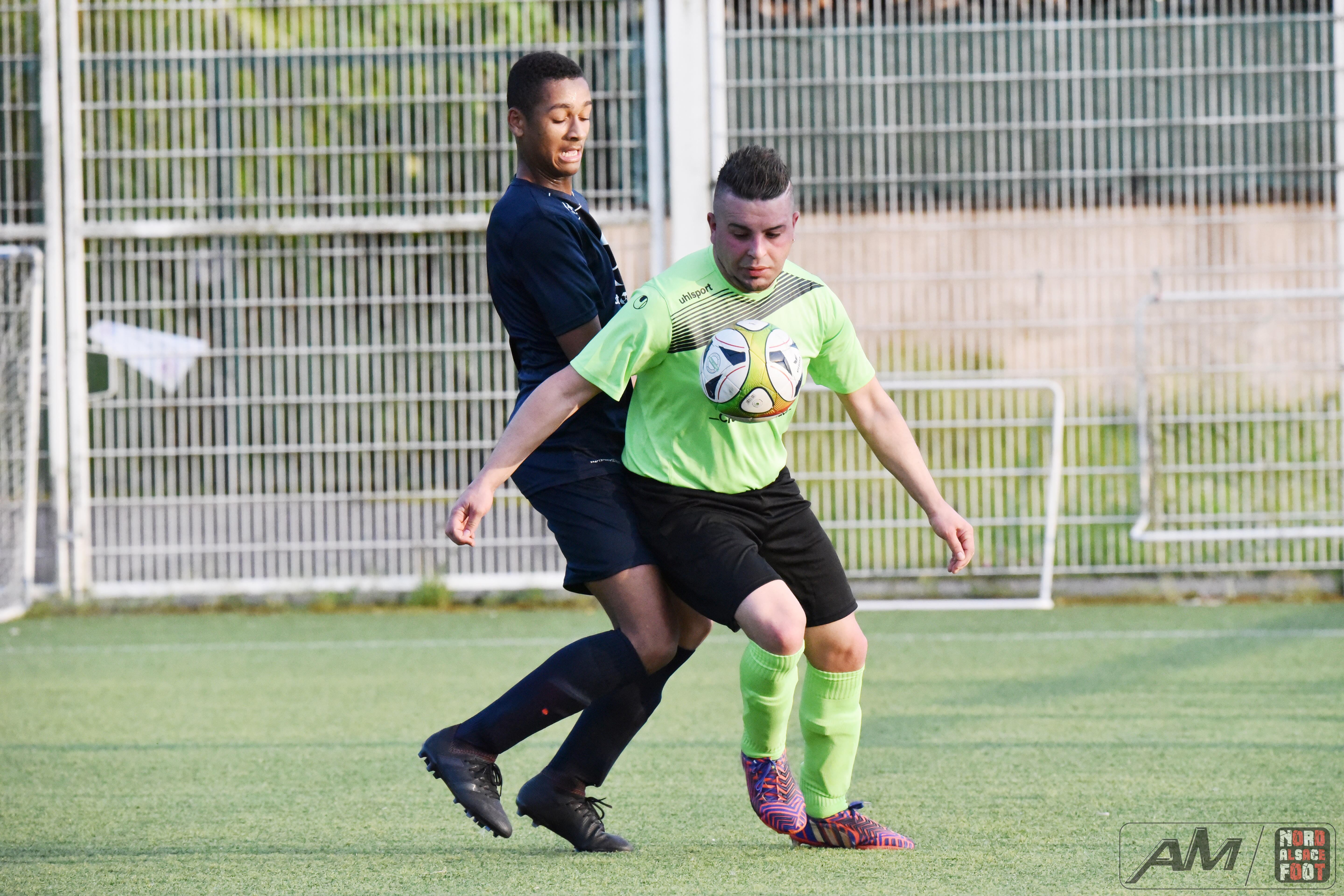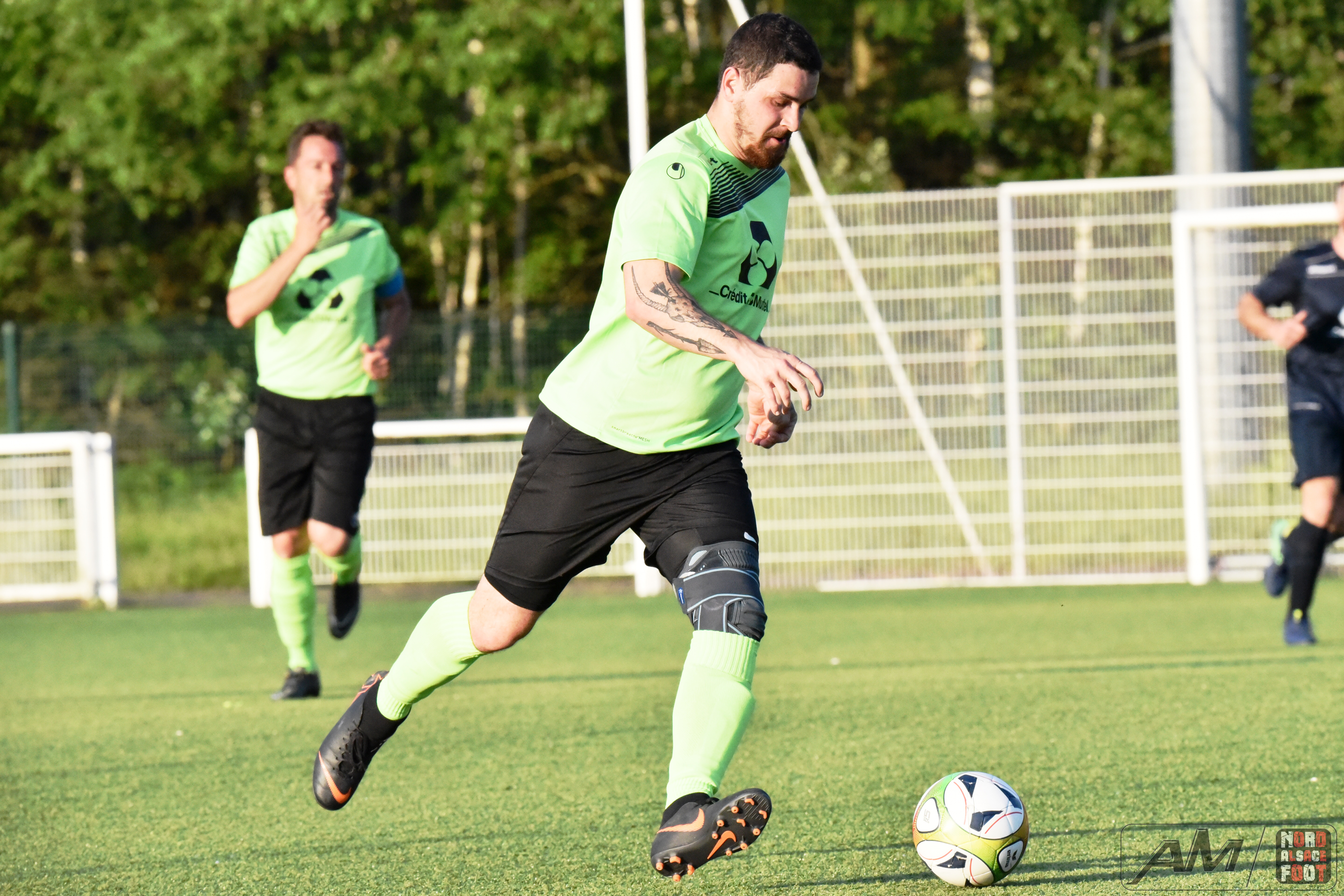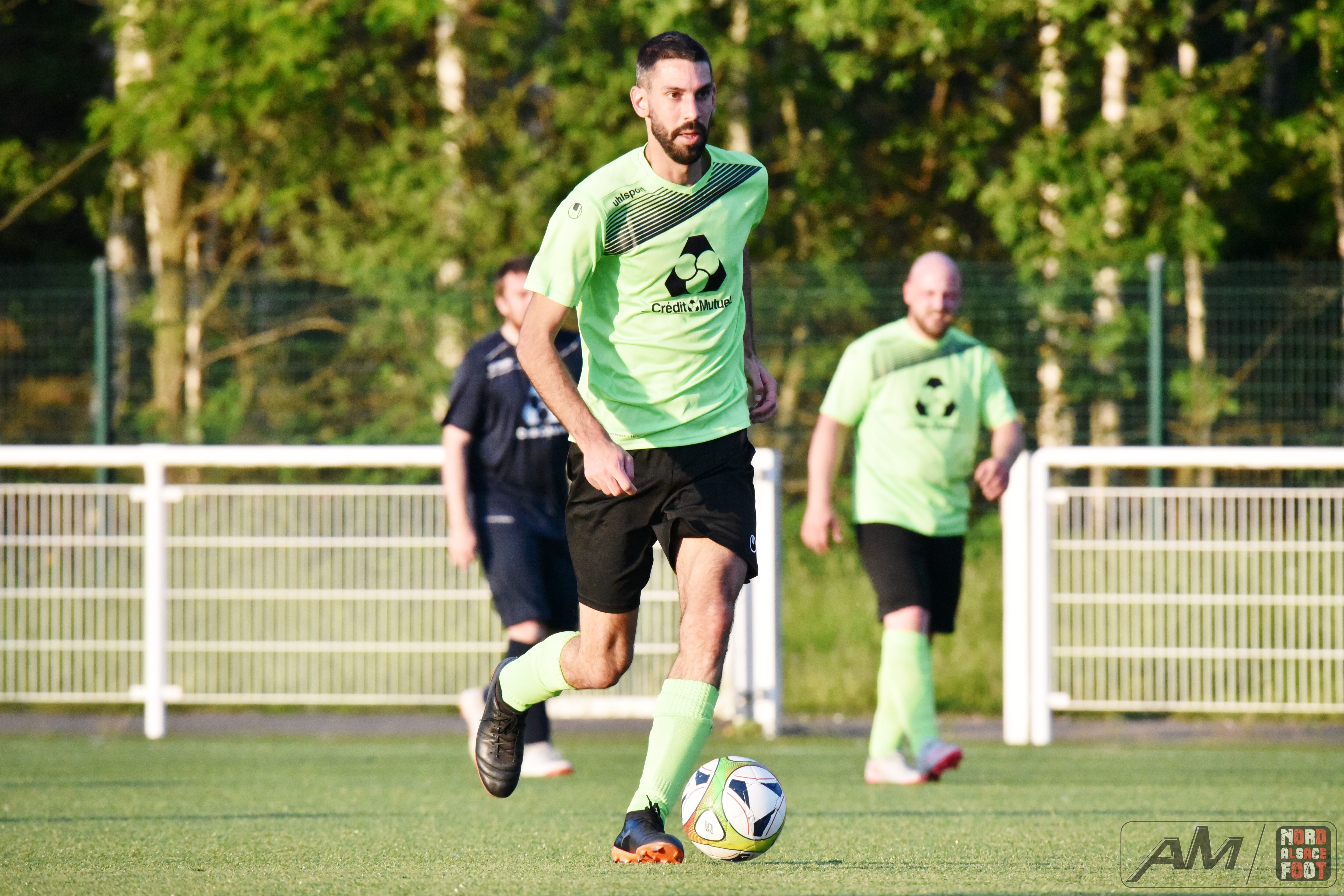 A l’occasion d’un match en retard comptant pour la 20e journée de championnat en District 9 (Gr D), le FC Seltz 3 (1er) accueillait le FC Gries 2 (4e) pour une rencontre pouvant asseoir un peu plus les verts en tête du groupe en cas de succès ce soir face à des bleus pouvant prendre la seconde place en faveur d’une victoire face au leader invaincu. Après une première période se soldant par un court avantage en faveur des locaux grâce à des réalisations signées Klein Alexandre (24e) et Loeffler Geoffrey (35e) contre un but de Riff Ludovic (25e), les verts allaient concéder une égalisation à la 54e minute de jeu grâce à Darsch Mickaël avant que les locaux ne reprennent l’avantage sur l’engagement suivant grâce à Wahl Joan (55e), les visiteurs égalisant dans la foulée grâce à Ousseni Soulaimana Ibrahima (57e) pour finalement voir les Seltzois dérouler leur meilleur jeu au cours de la dernière demi-heure, ces derniers ajoutant quatre nouvelles réalisations au compteur grâce à un triplé de Lehrer Manuel (66e, 87e, 88e) et d’un but de Ridane Nader (81e), ce qui leur permit de largement s’imposer sur ce score de 7-3! Retrouvez quelques images de cette rencontre et, pour en apprécier le contenu, veuillez cliquer sur l’une d’entre-elles pour afficher le diaporama.
