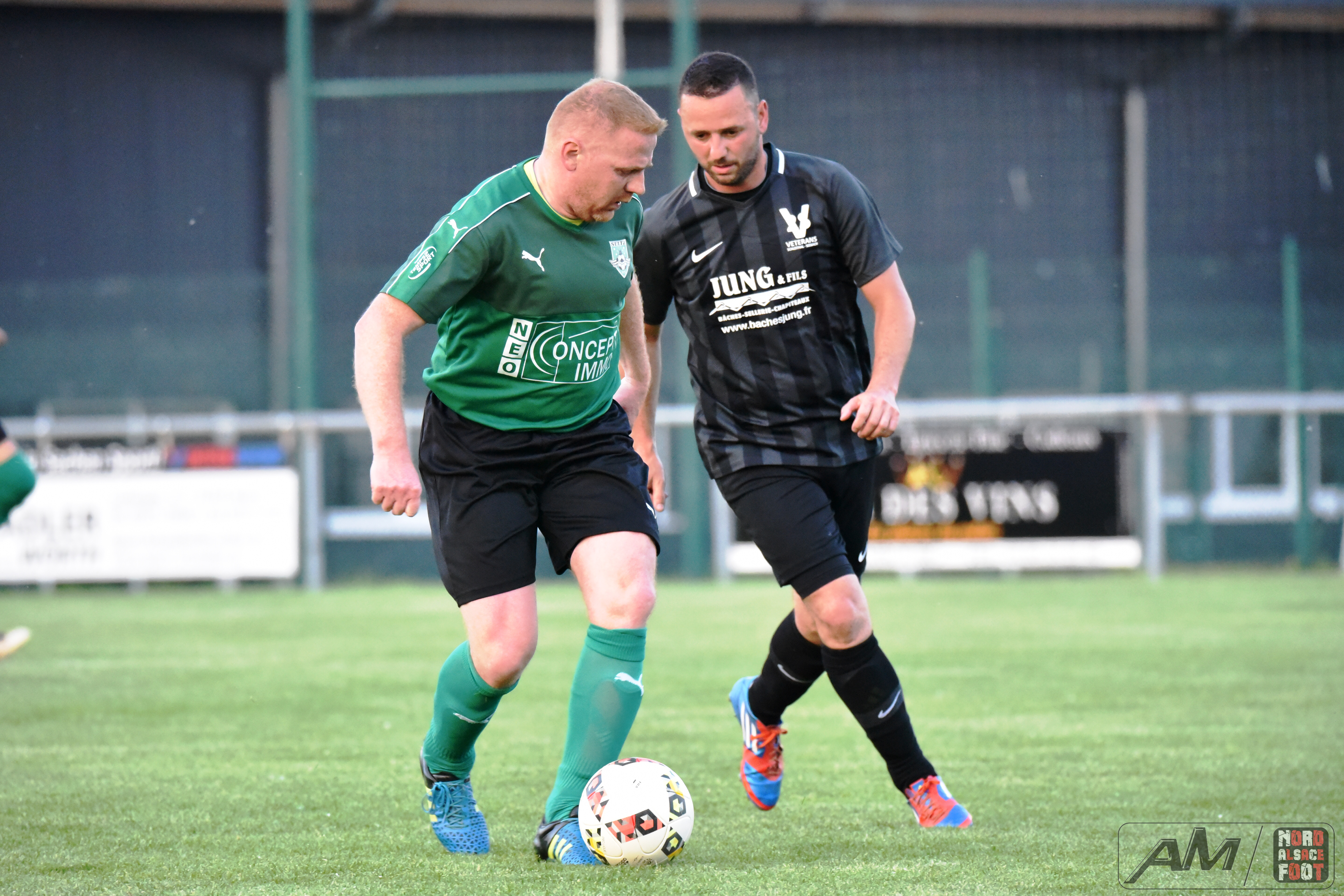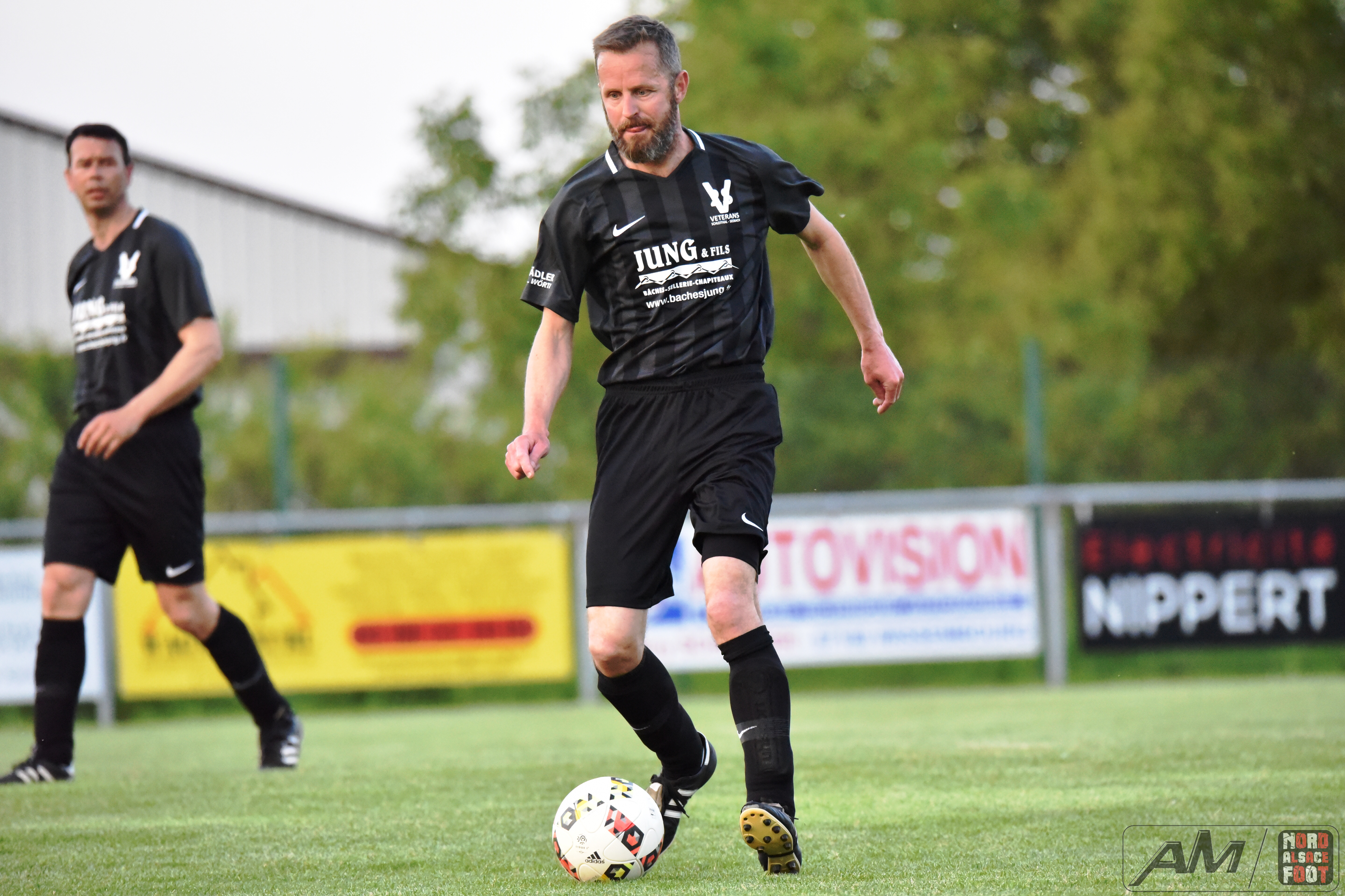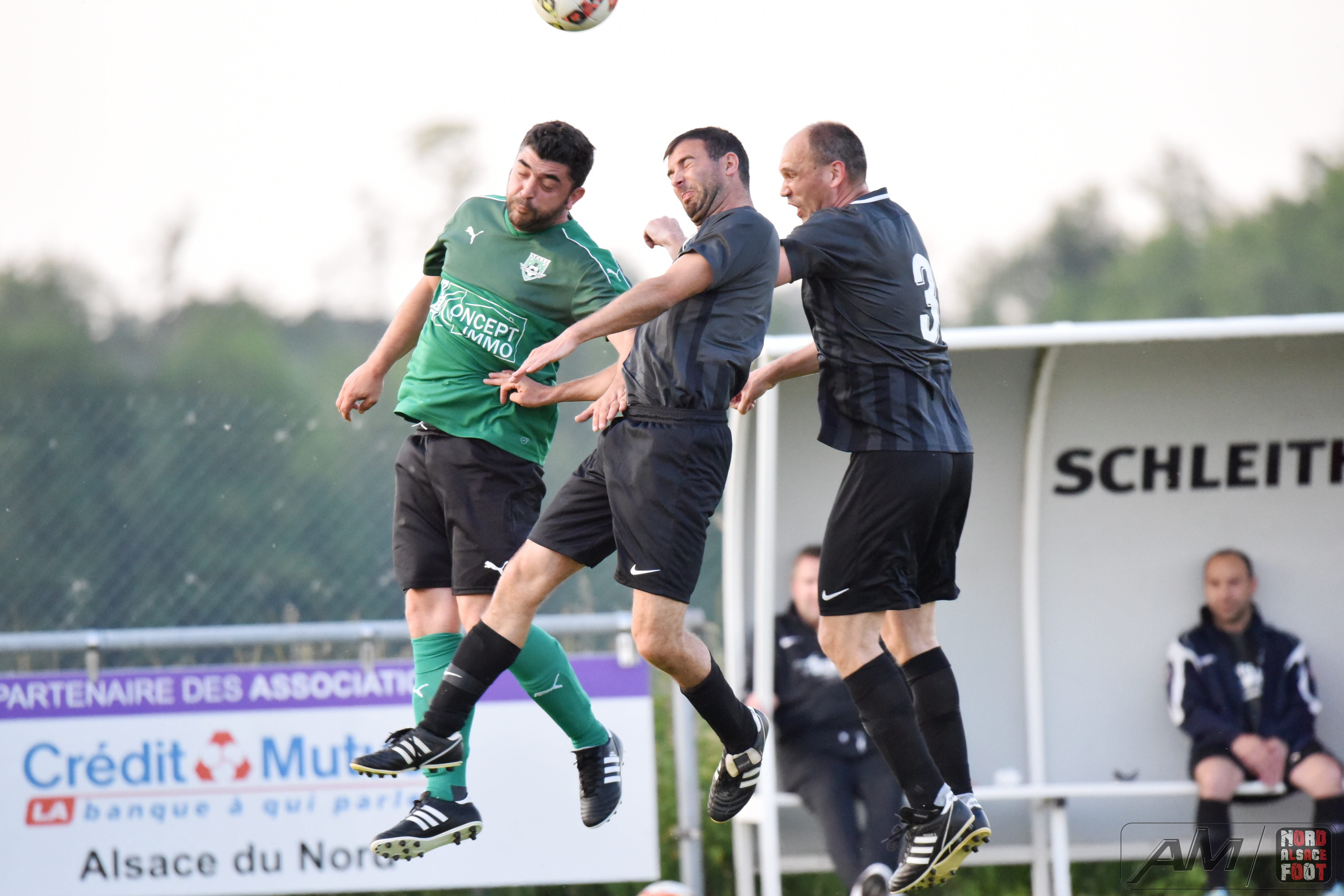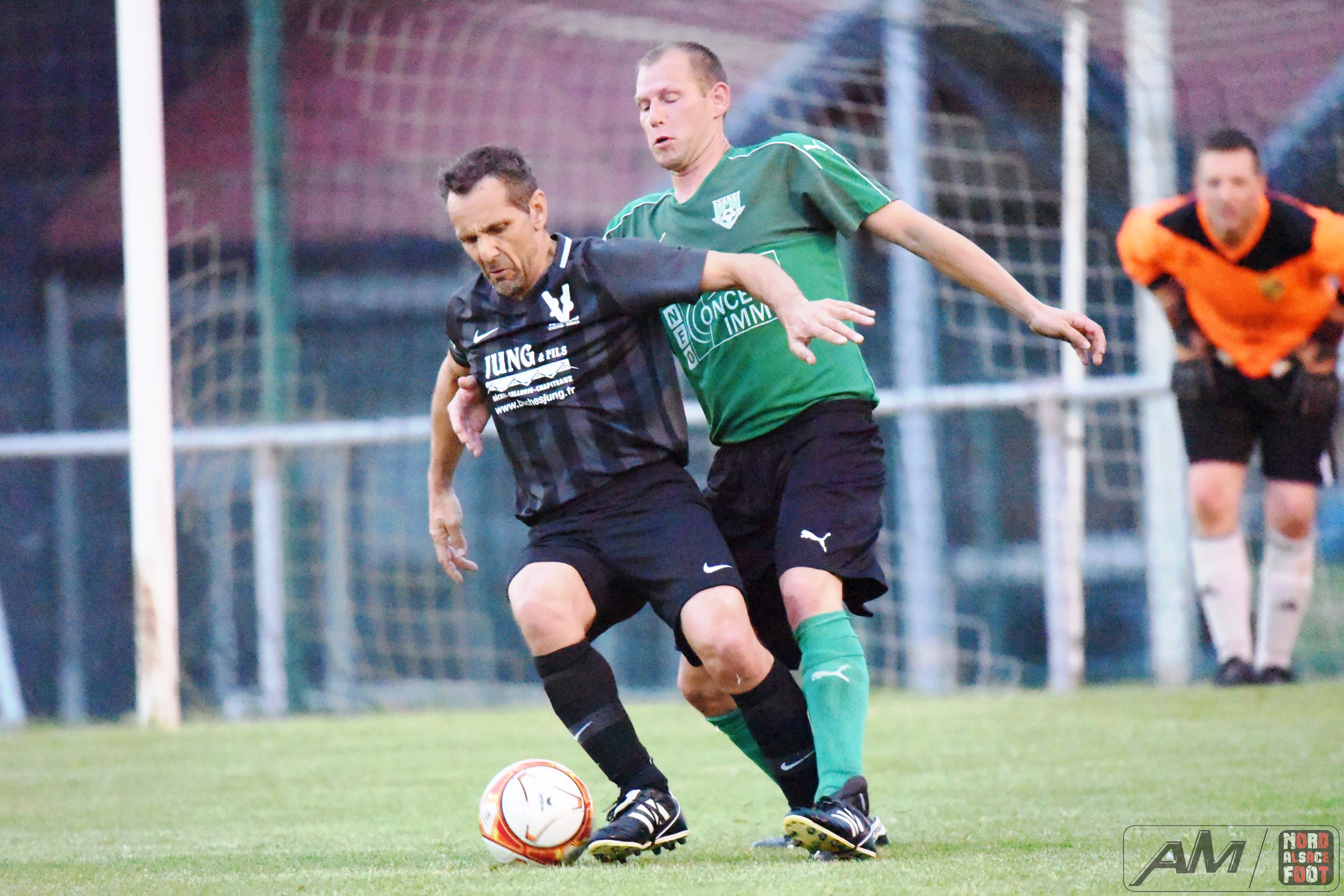 A l’occasion de la 14e journée de championnat chez les Vétérans (Gr D), l’entente Schleithal/E2s 51 (2e) accueillait l’entente Seltz/Esbnmm 51 (1er) pour une rencontre au sommet pouvant sacrer les visiteurs champions du Groupe D en faveur d’une victoire ce soir face à des locaux ayant encore leur destin au bout de leurs chaussures, ces derniers devant à tout prix gagner ce soir et encore chercher un petit point lors de leur prochain déplacement du côté de Soufflenheim pour s’adjuger le titre. Après un premier acte se soldant par un score nul et vierge, il fallut attendre la 66e minute de jeu et cette tête rageuse de Knobloch Marc pour débloquer la situation, les locaux finissant par s’imposer sur le plut petit des scores après s’être heurtés à un Gerber Cyrille des grands soirs. Retrouvez quelques images de cette rencontre et, pour en apprécier le contenu, veuillez cliquer sur l’une d’entre-elles pour afficher le diaporama.