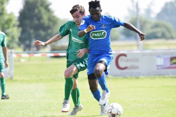 Dans la foulée du renvoi défensif précédent, les visiteurs allaient gagner les défis du milieu de terrain à l’image de cette interception du cuir de Diallo Aboubacor, le milieu offensif se prenant le temps de lever la tête afin de parfaitement servir le cuir en profondeur dans l’axe pour Bangoura Facinet qui ne se fit pas prier pour expédier une frappe des 16m forçant Wilhelm Kévin à la parade pour écarter le ballon en corner pour un coup de pied de coin que Redelsperger Tom se chargea de botter de la gauche en direction du second poteau à hauteur duquel Bangoura Facinet récupéra le cuir avant de se mettre dans de bonnes dispositions pour expédier une frappe étant écartée en corner par le portier local pour un coup de pied de coin que Diallo Aboubacor se chargea de jouer à la Reimoise de la droite avec Bangoura Facinet, le meneur de jeu naviguant dans la défense pour finalement émettre un centre en direction du premier poteau devant lequel Wilhelm Kévin s’imposa définitivement, on jouait la 35e minute de jeu. Suite au dégagement de ce dernier, les deux formations allaient se faire front autour du rond central avant que les hommes de Diebold Damien ne parviennent à s’extirper de l’attroupement dans l’axe par l’intermédiaire de Zinck Bryan, ce dernier s’y avançant le ballon sur quelques mètres avant de le décaler légèrement sur la droite pour Dag Murat qui reprit le cuir d’une frappe des 20m passant loin à droite de la cible, on jouait la 37e minute de jeu. Suite à l’exécution du renvoi aux 5.5m précédent, les visiteurs allaient faire tourner le ballon sur la largeur avant d’envisager une offensive dans l’axe par l’intermédiaire de Diallo Aboubacor, le milieu offensif s’avançant le ballon avant de le décaler sur la droite pour Mehenni Youness, l’attaquant lançant ensuite Ourais El Hassan dans l’axe, le défenseur se heurtant finalement à Ellert Yannick avant que ce dernier ne dégage le ballon en touche sur la gauche, on jouait la 39e minute de jeu. Alors qu’on rentrait dans les cinq dernières minutes de jeu de ce premier acte, les bleus demeuraient à la manoeuvre par la droite grâce à cette interception du cuir de Cantin Paul précédant une passe en profondeur le long de la ligne de touche pour Redelsperger Tom, l’ailier n’hésitant pas à émettre un centre en direction du premier poteau devant lequel Gumbel Julien renvoya le danger, on jouait la 41e minute de jeu. Consécutivement au renvoi défensif précédent, les verts allaient tout mettre en oeuvre pour contenir la fougue adverse au milieu de terrain avant de devoir battre en retraite suite à cette récupération du cuir de Soumah Ibrahima précédant une passe en profondeur dans l’axe en faveur de Mehenni Youness, l’attaquant se faisant finalement prendre en position de hors-jeu à hauteur des 25m, on jouait la 44e minute de jeu. Jouant la dernières minutes de jeu de cette première période, les verts allaient tenter de recoller au score avant la pause en lançant un assaut par la droite voyant Ellert Yannick déborder dans le couloir en ponctuant sa course par un centre en direction du second poteau à hauteur duquel Folzenlogel Ludovic reprit le cuir d’une frappe étant trop enlevée pour espérer qu’elle accroche le cadre. Rentrants dans le temps additionnel de cette première période, les visiteurs allaient s’offrir une dernière action sur la droite par l’intermédiaire de Soumah Ibrahima, le milieu défensif passant la ligne médiane avant de servir le cuir en profondeur devant lui pour Bangoura Facinet, le meneur de jeu poussant son effort jusqu’aux confins de ce couloir afin d’expédier un centre en direction du point de penalty à hauteur duquel Ellert Yannick sauta plus haut que tout le monde pour tenter de renvoyer le danger, son gardien le relayant finalement en s’emparant du cuir, on jouait la 46e minute de jeu. Dans la foulée du dégagement de ce dernier, de derniers duels eurent lieu dans l’entre-jeu avant que Beyl Claude ne renvoie les 22 acteurs à la pause.