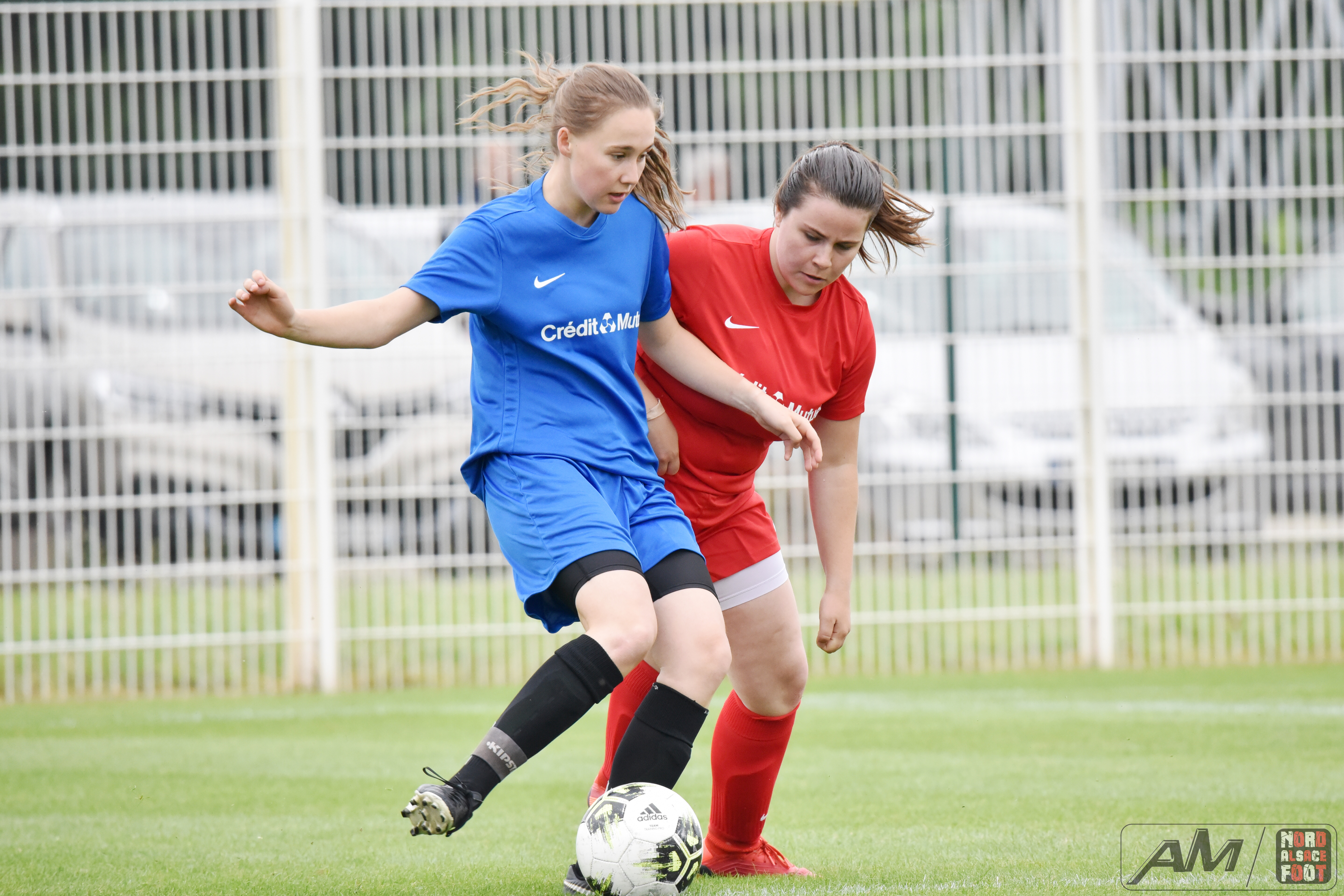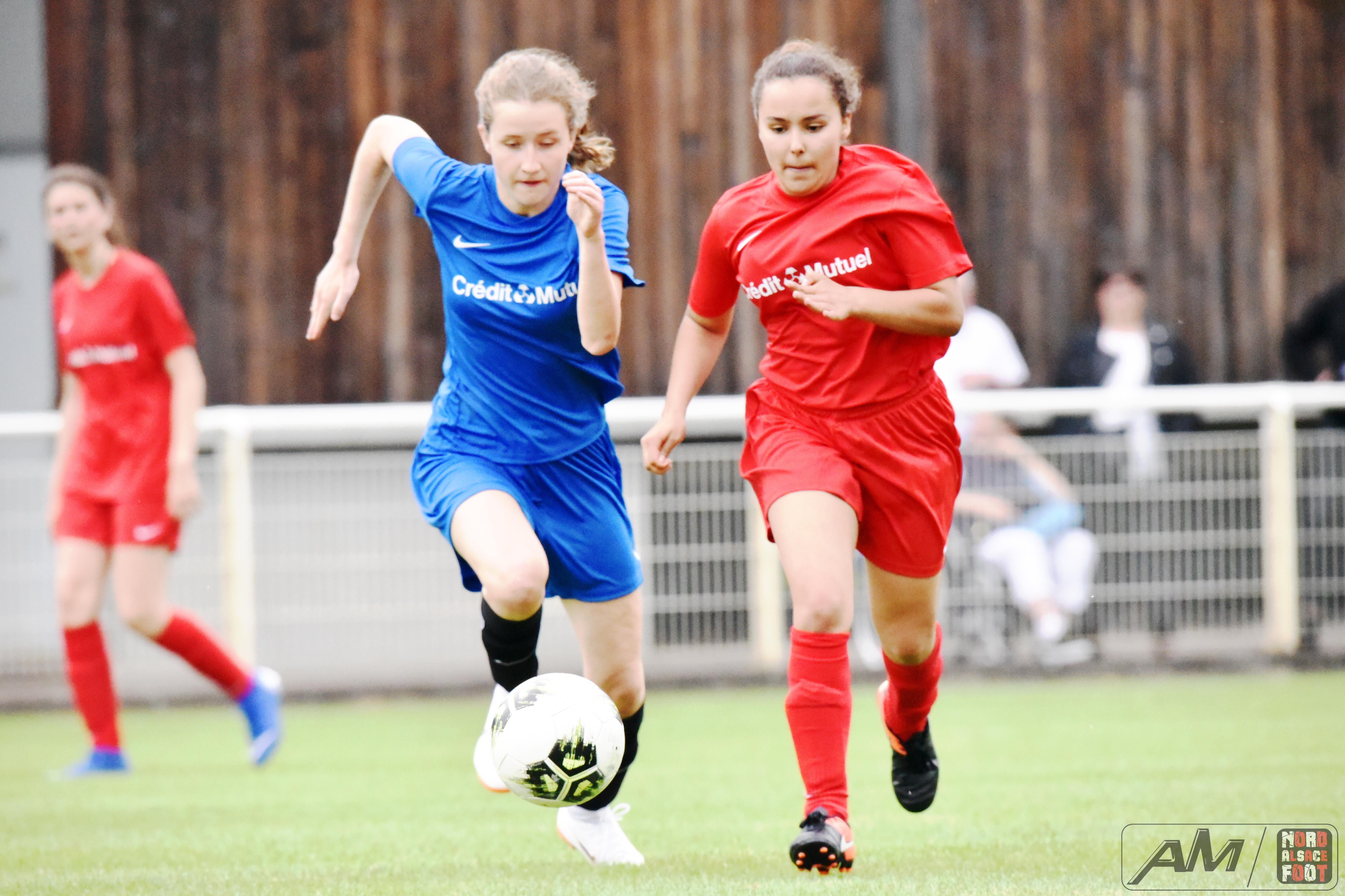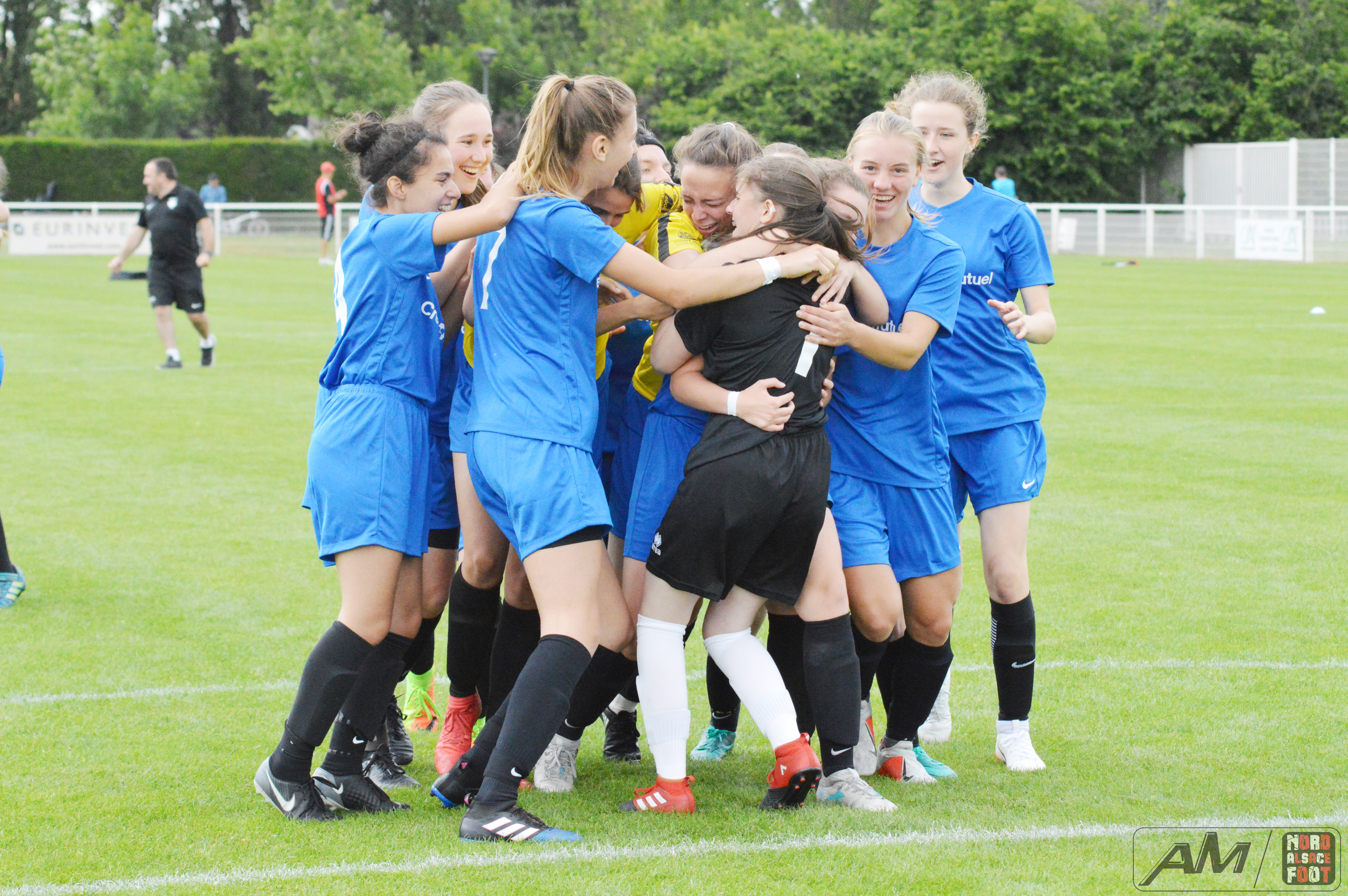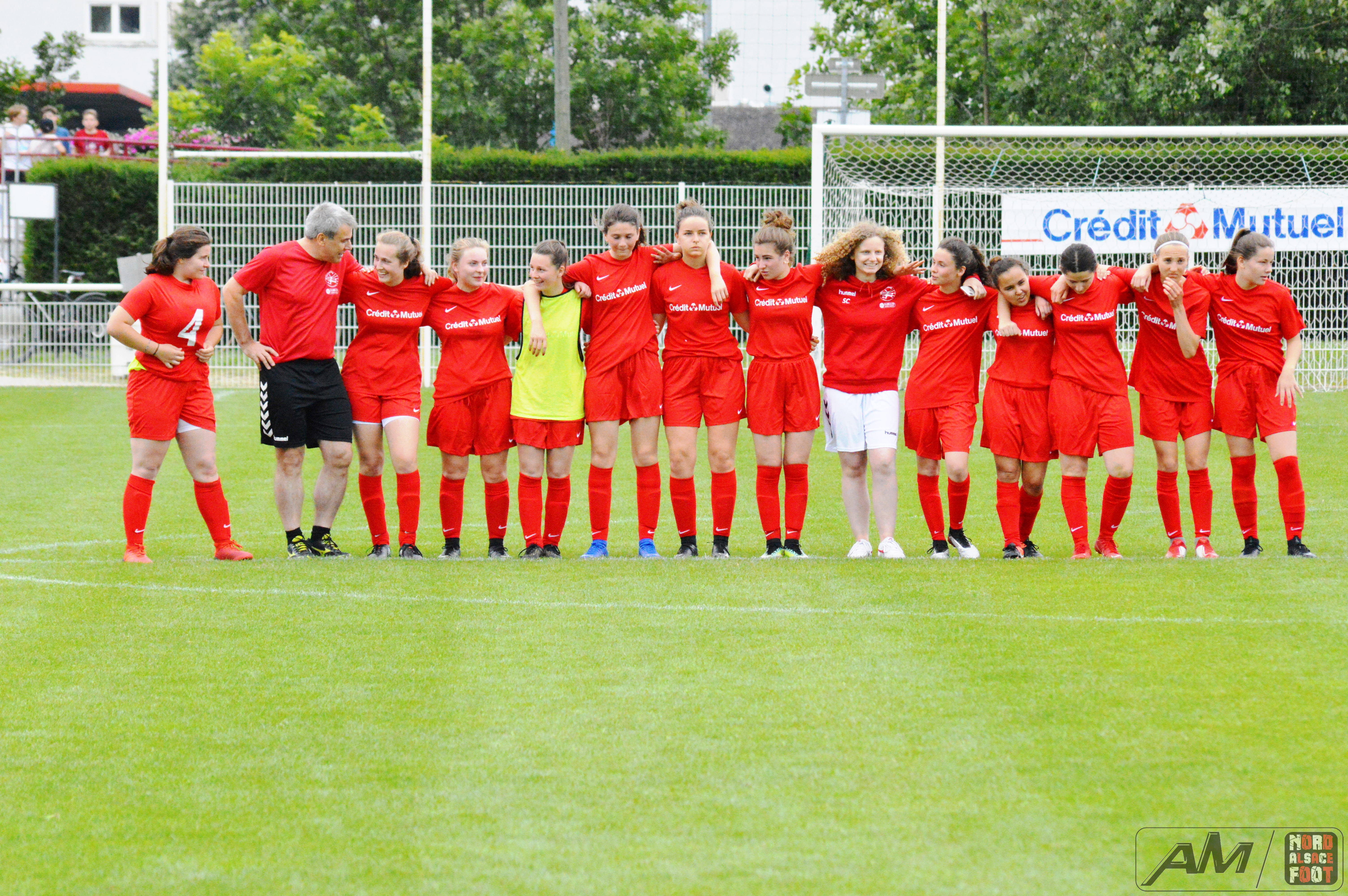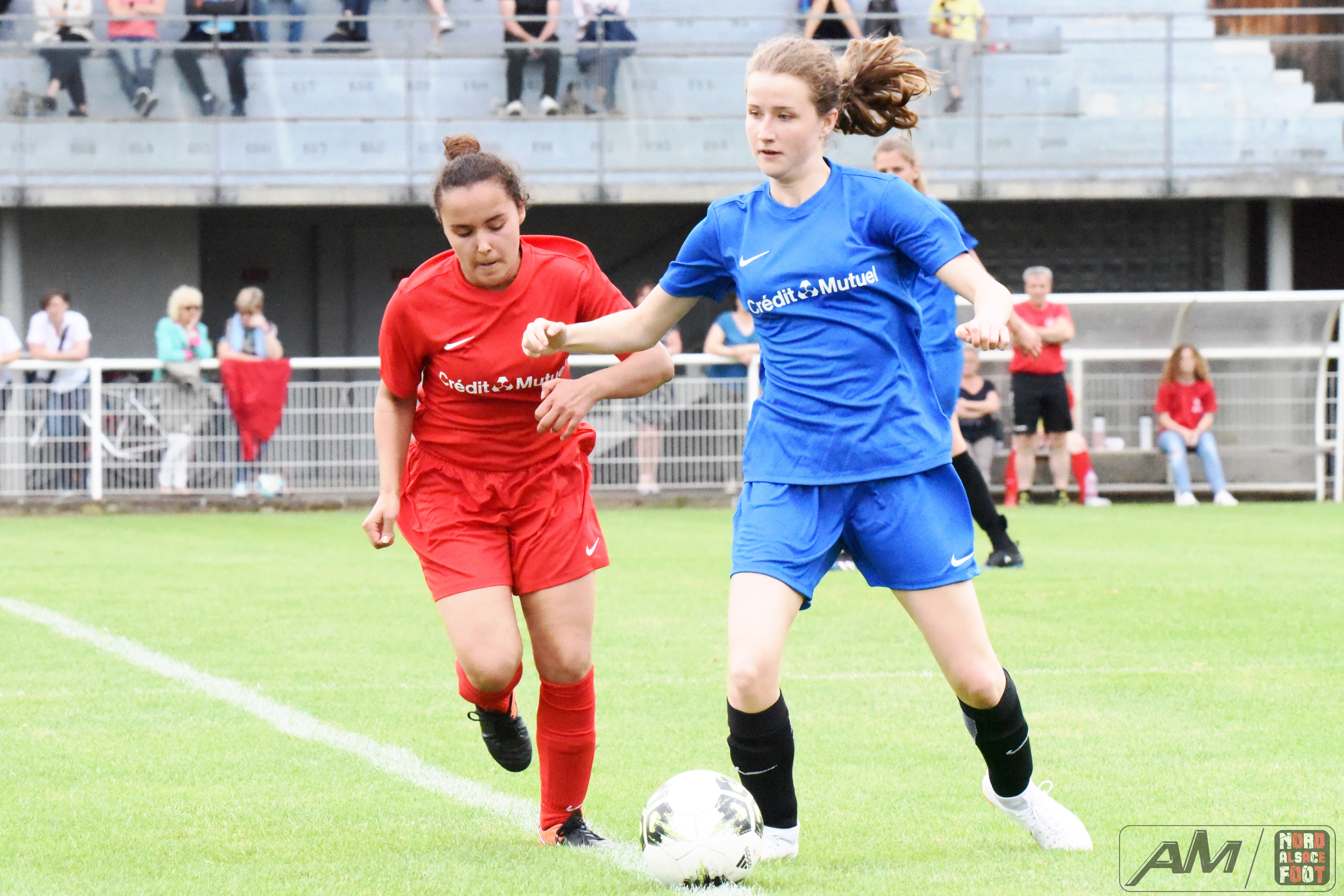 A l’occasion de la finale de la Coupe d’Encouragement Crédit Mutuel des U18/F, l’AS Hatten F et l’entente Kochersberg/Stutzheim F se sont données rendez-vous à Eckbolsheim ce dimanche afin de tenter de finir la saison en apothéose en se disputant le titre dans la plus prestigieuse des coupes de cette catégorie. Après une première période se soldant par un score nul et vierge malgré la pléiade d’occasions manquées par les Hattenoises, les débats s’équilibrèrent lors du second acte sans toutefois voir les filets trembler de part ou d’autre avant que la séance de tirs-au-but ne permette aux protégées du duo Bonnet/Ortega de soulever le trophée au terme d’une séance de loterie haletante. Retrouvez quelques images de cette rencontre et, pour en apprécier le contenu, veuillez cliquer sur l’une d’entre-elles pour afficher le diaporama.