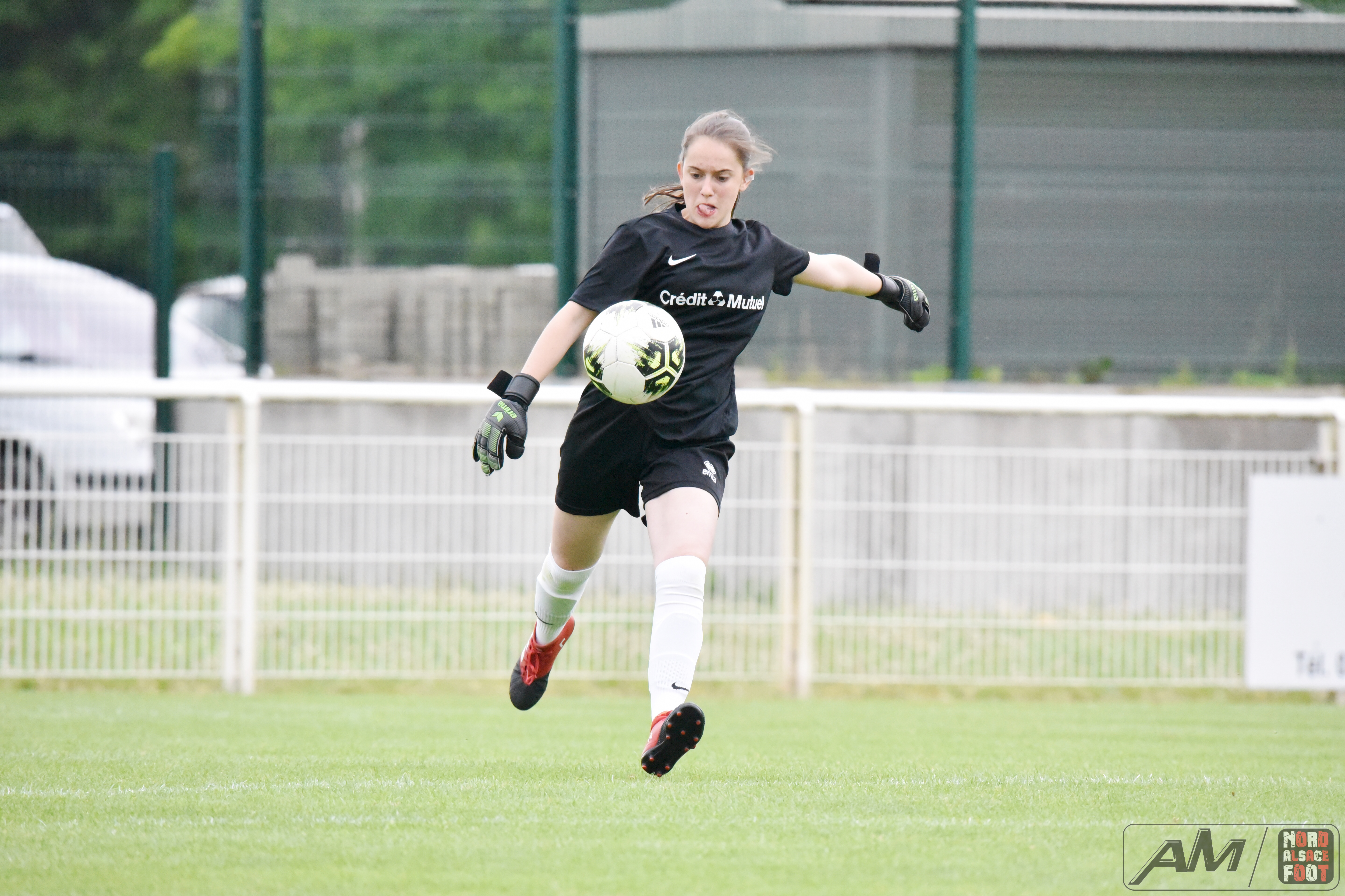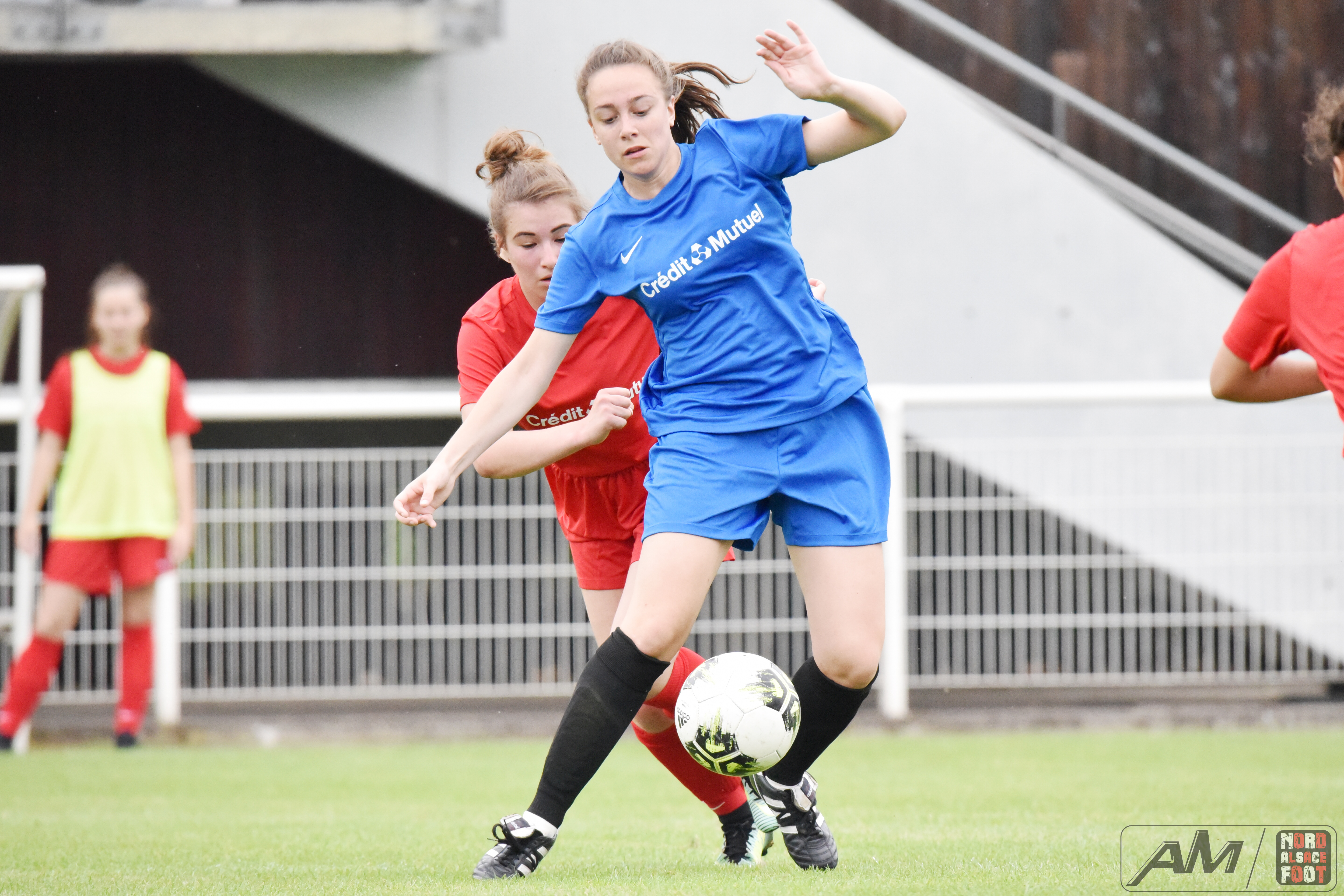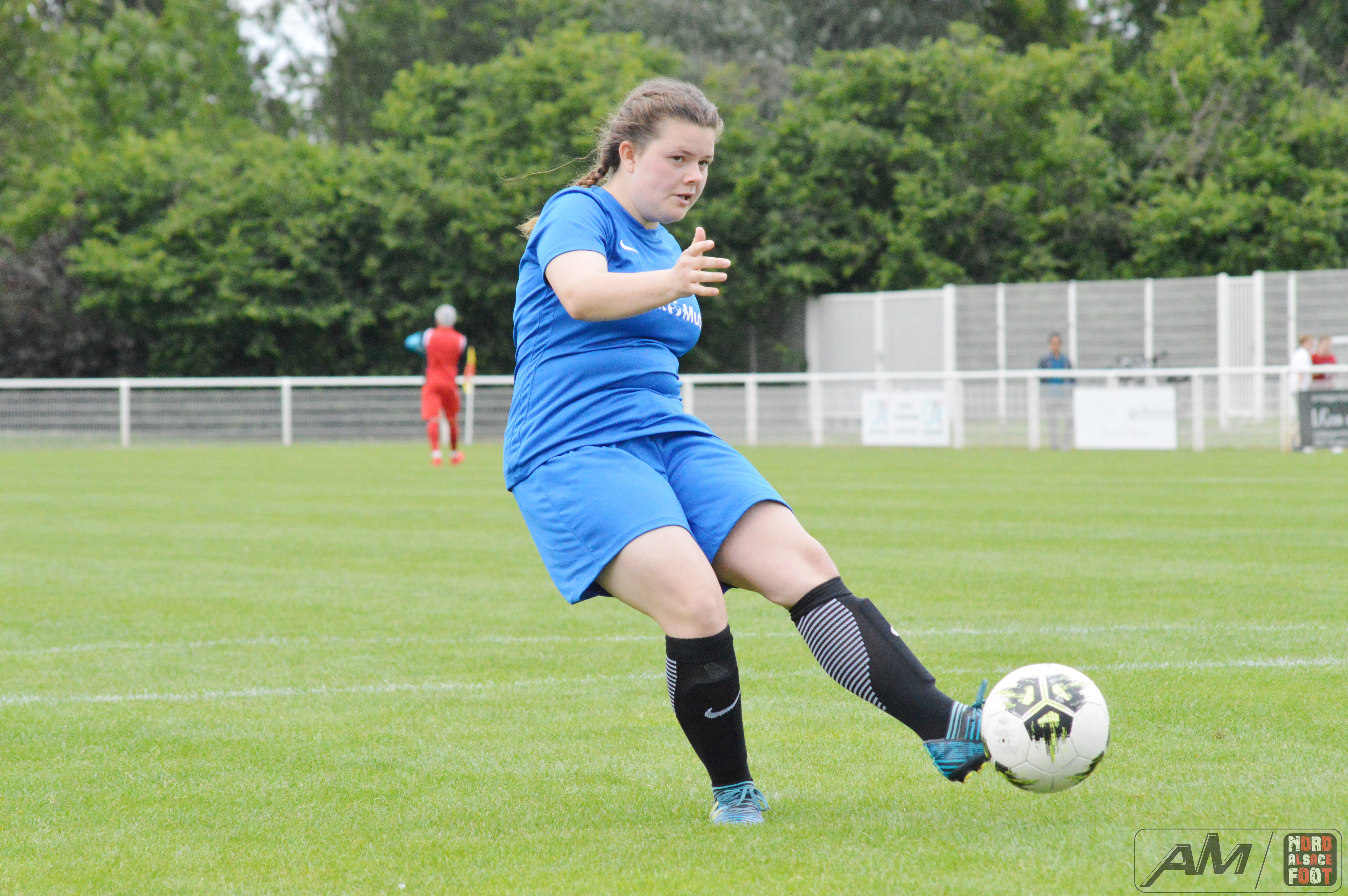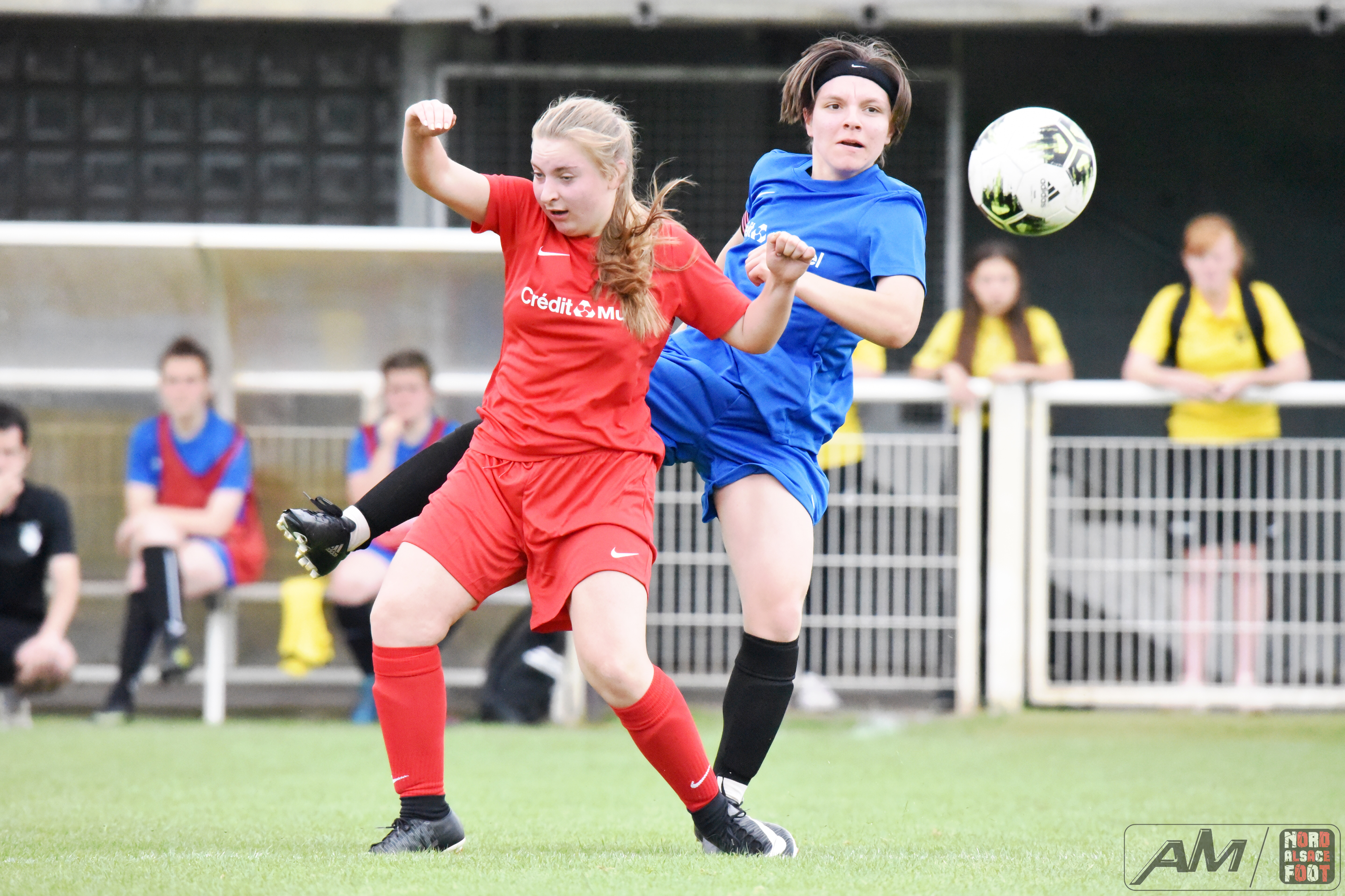 A l’occasion de la finale de la Coupe d’Encouragement Crédit Mutuel des U18/F, l’AS Hatten F et l’entente Kochersberg/Stutzheim F se sont données rendez-vous à Eckbolsheim ce dimanche afin de tenter de finir la saison en apothéose en se disputant le titre dans la plus prestigieuse des coupes de cette catégorie. Après une première période se soldant par un score nul et vierge malgré la pléiade d’occasions manquées par les Hattenoises, les débats s’équilibrèrent lors du second acte sans toutefois voir les filets trembler de part ou d’autre avant que la séance de tirs-au-but ne permette aux protégées du duo Bonnet/Ortega de soulever le trophée au terme d’une séance de loterie haletante. Retrouvez quelques images de cette rencontre et, pour en apprécier le contenu, veuillez cliquer sur l’une d’entre-elles pour afficher le diaporama.