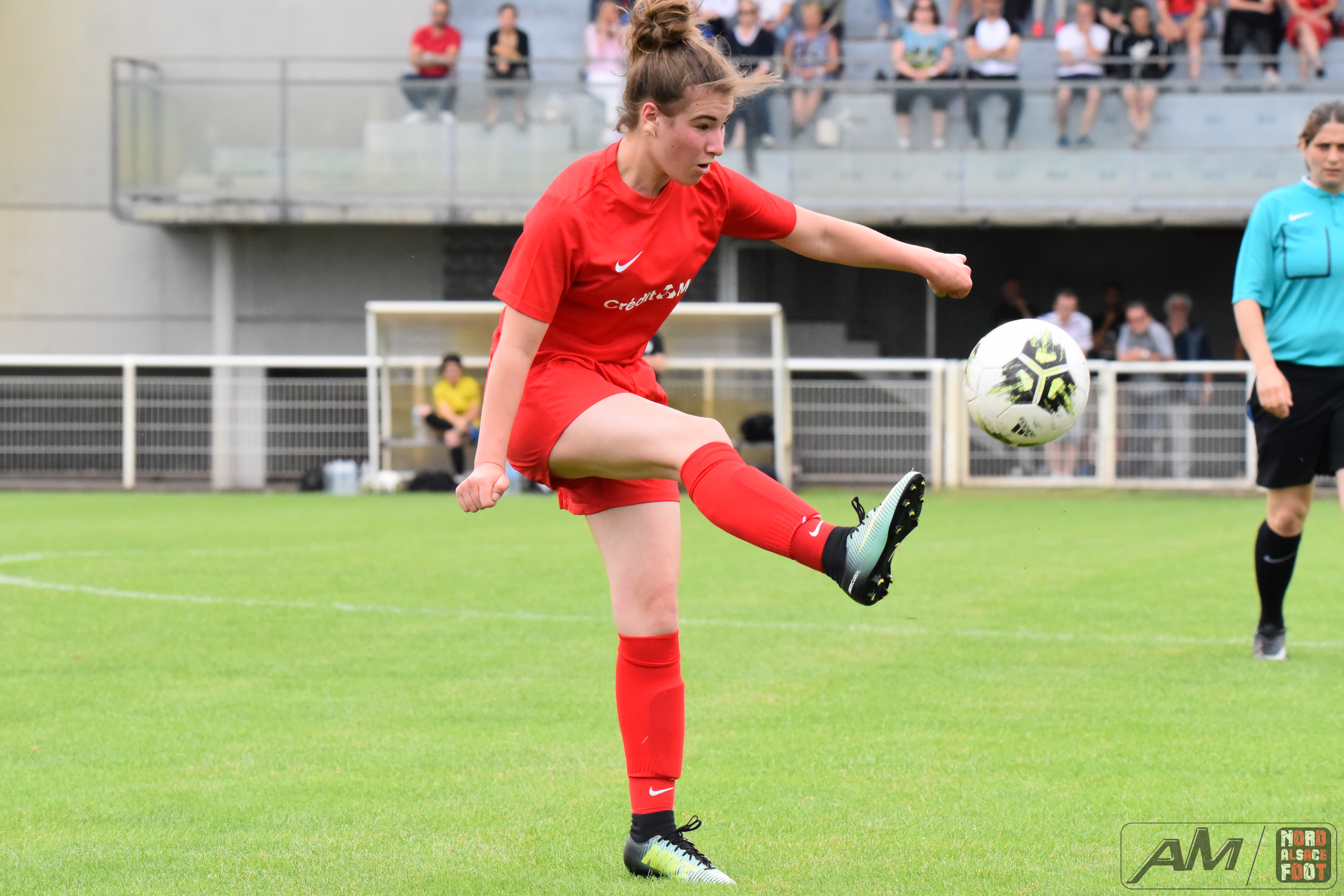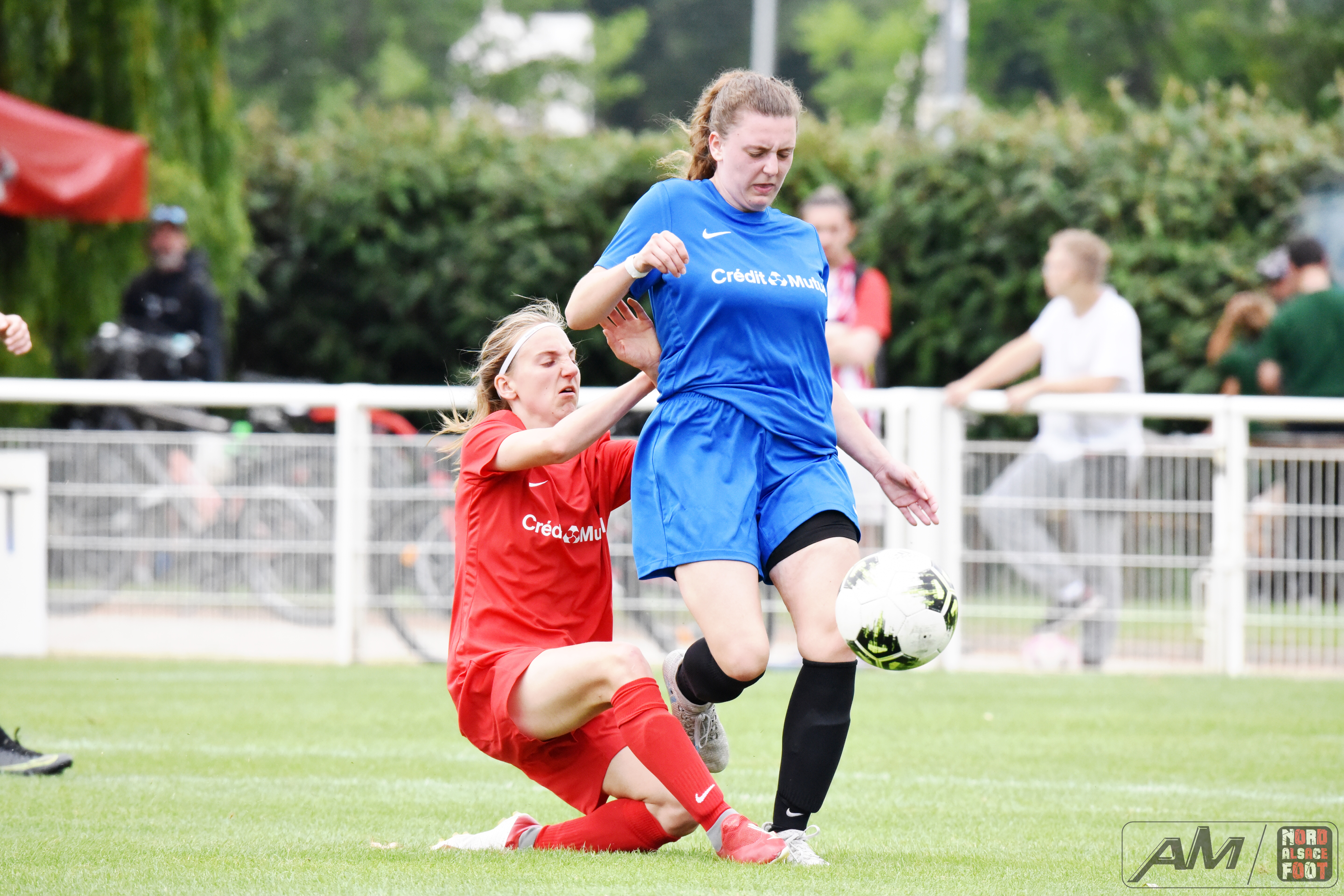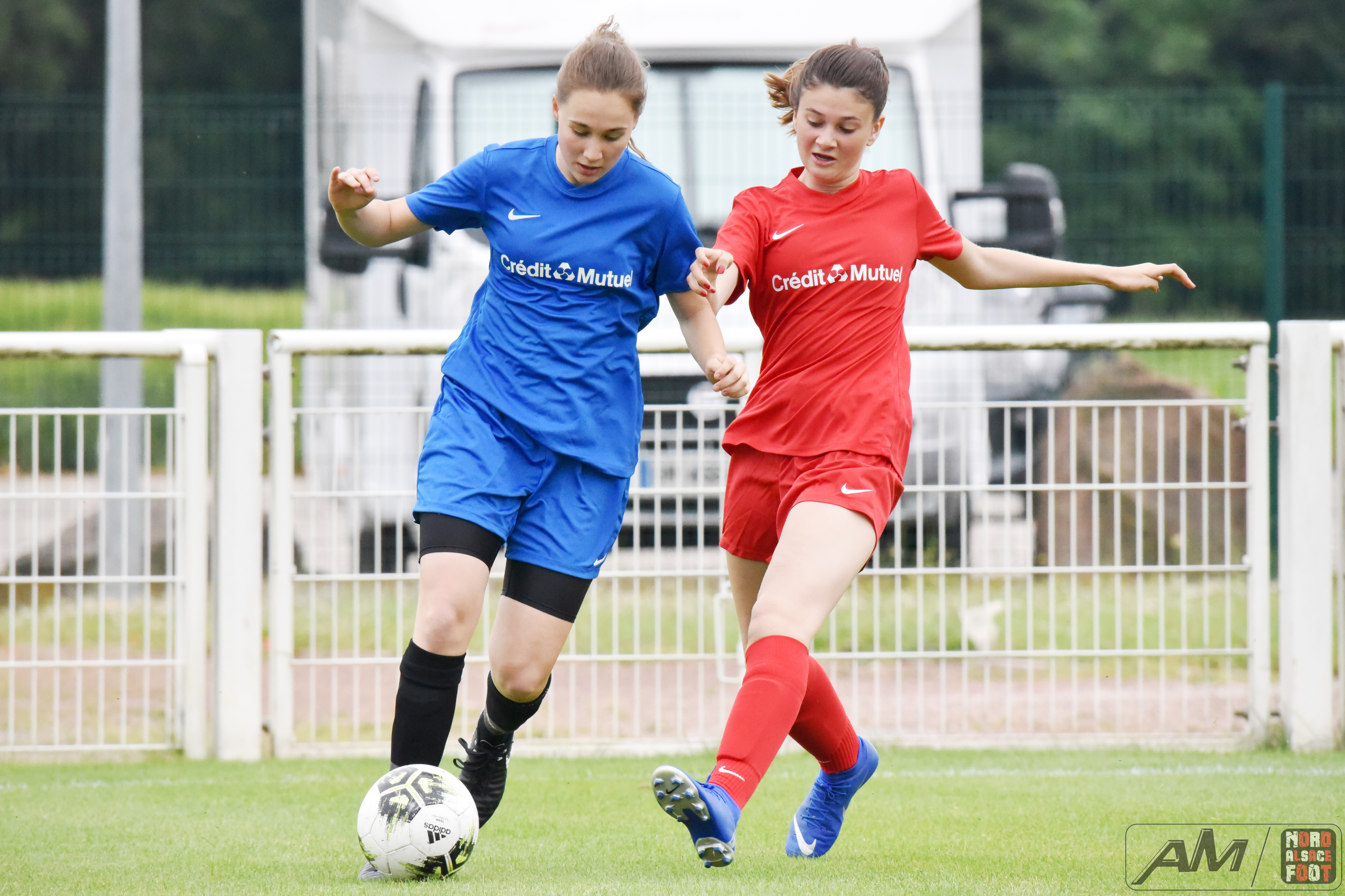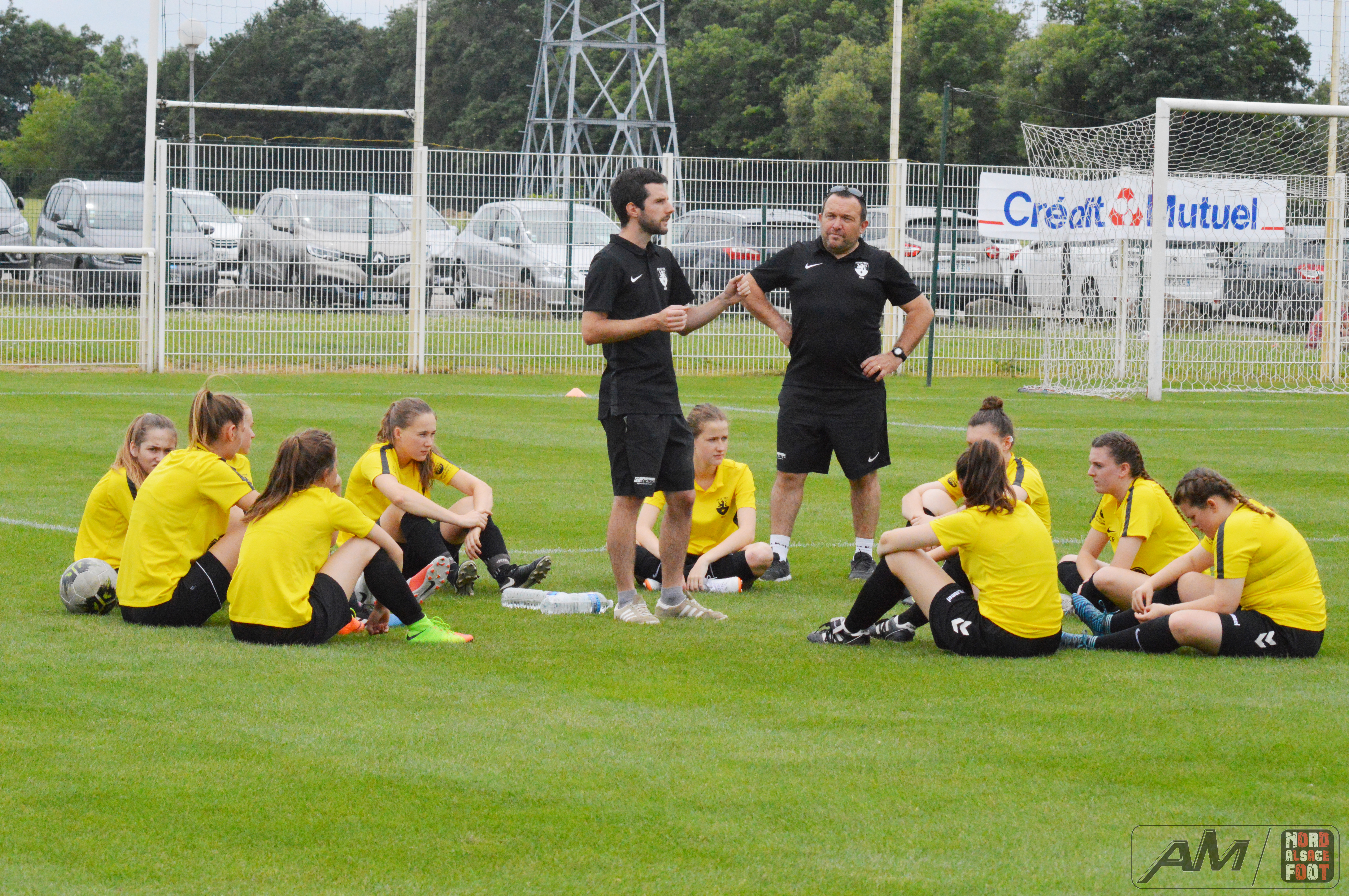 A l’occasion de la finale de la Coupe d’Encouragement Crédit Mutuel des U18/F, l’AS Hatten F et l’entente Kochersberg/Stutzheim F se sont données rendez-vous à Eckbolsheim ce dimanche afin de tenter de finir la saison en apothéose en se disputant le titre dans la plus prestigieuse des coupes de cette catégorie. Après une première période se soldant par un score nul et vierge malgré la pléiade d’occasions manquées par les Hattenoises, les débats s’équilibrèrent lors du second acte sans toutefois voir les filets trembler de part ou d’autre avant que la séance de tirs-au-but ne permette aux protégées du duo Bonnet/Ortega de soulever le trophée au terme d’une séance de loterie haletante. Retrouvez quelques images de cette rencontre et, pour en apprécier le contenu, veuillez cliquer sur l’une d’entre-elles pour afficher le diaporama.