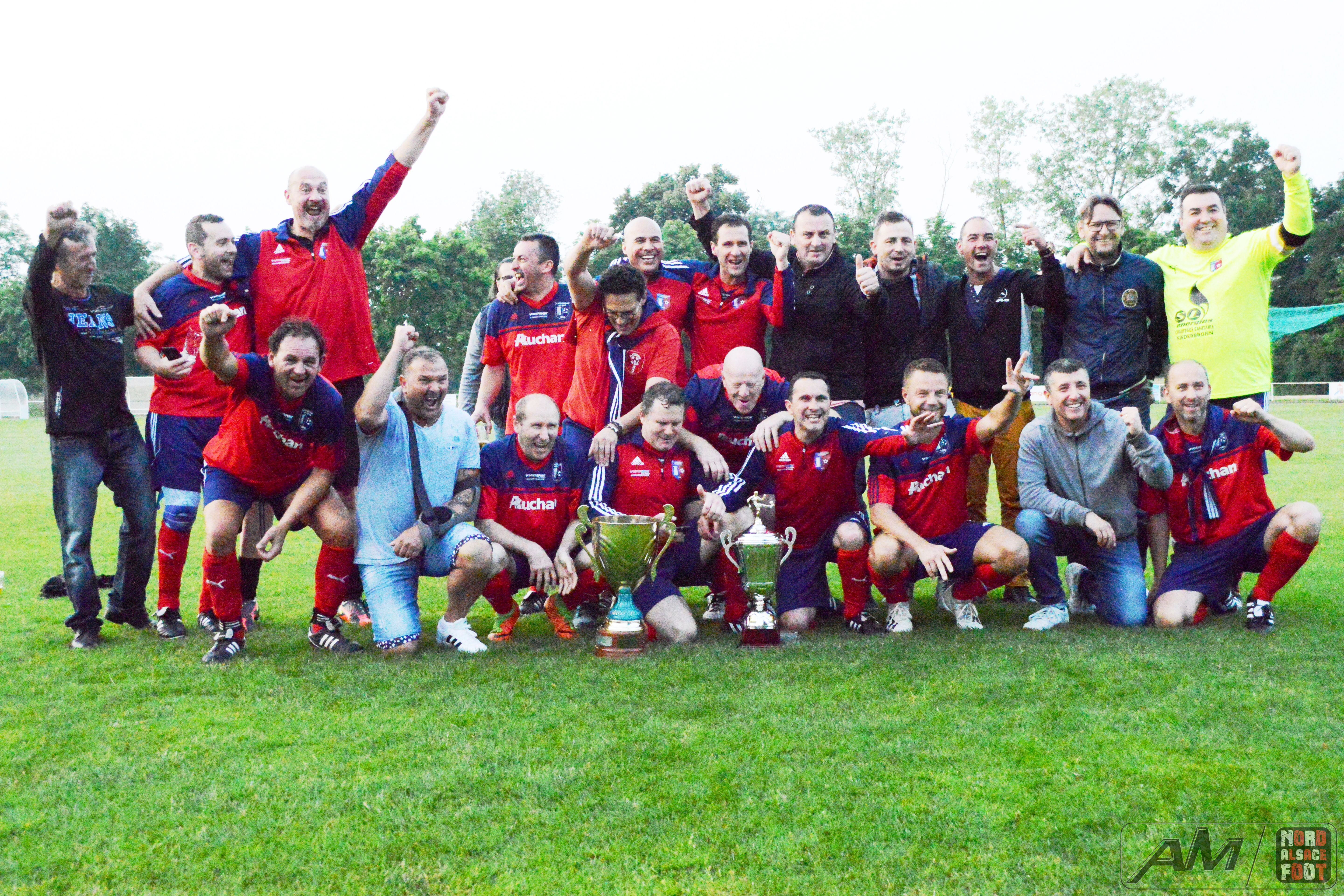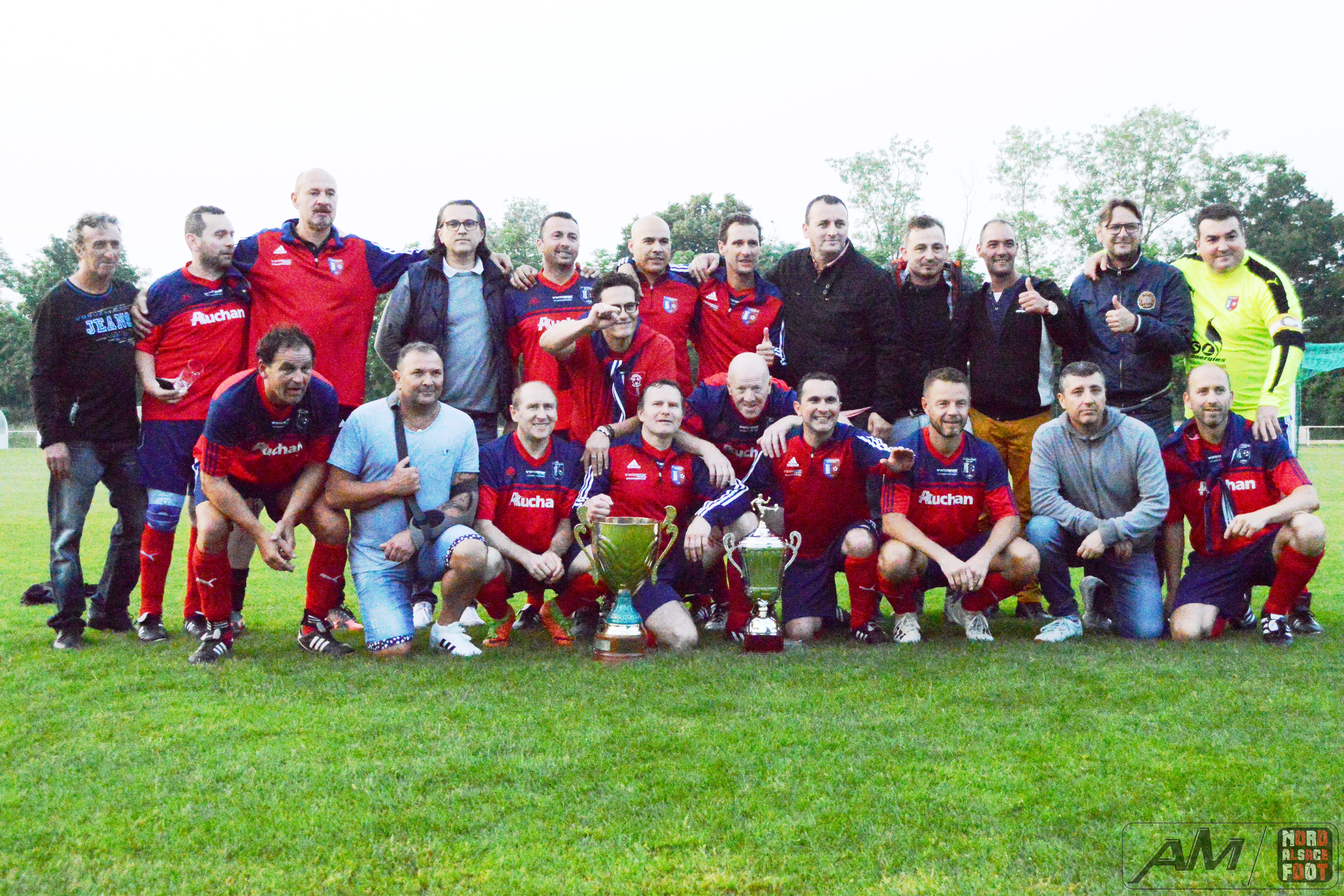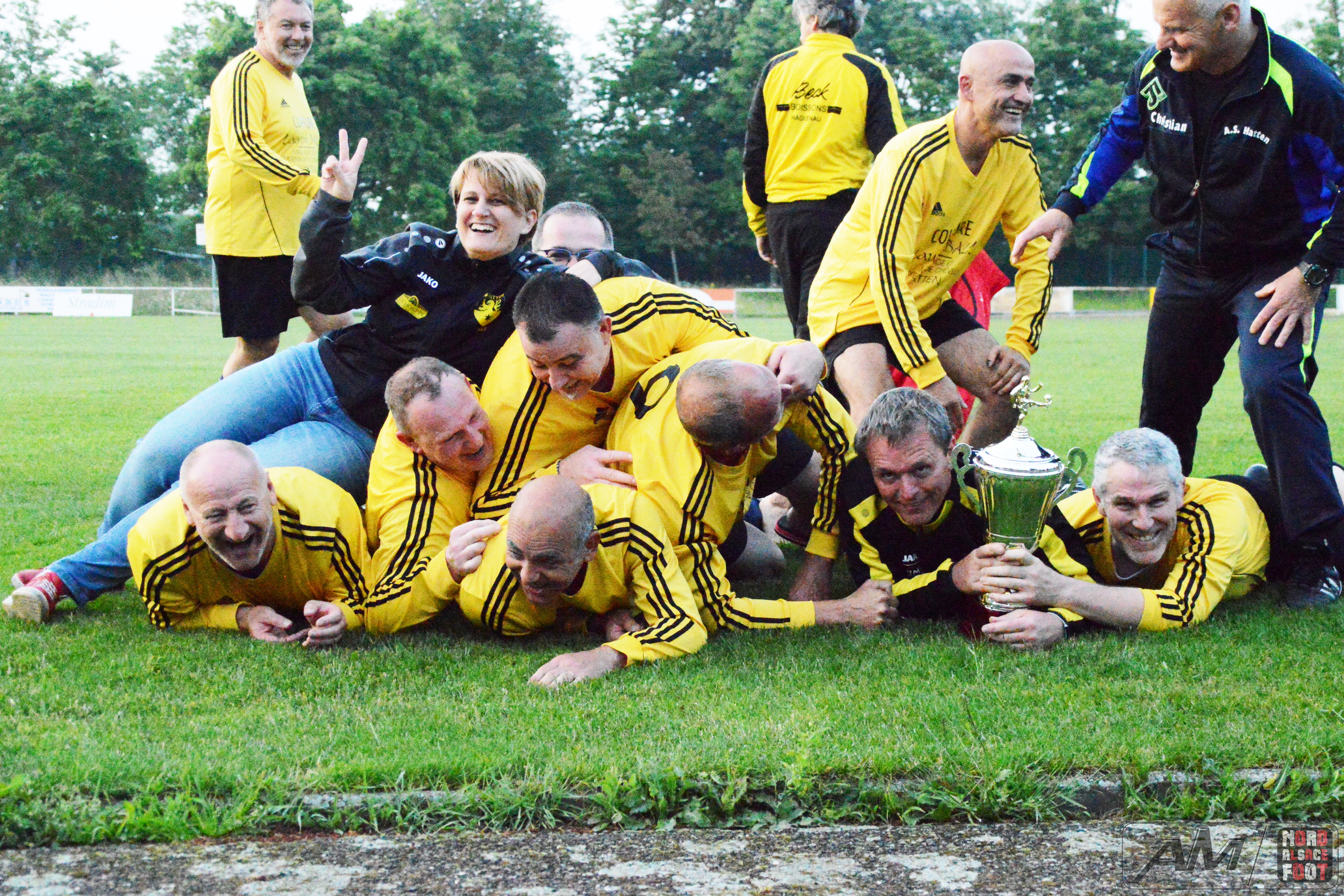 A l’occasion de la finale de la Coupe d’Alsace Super Vétérans se déroulant sur les installations du FC Entzheim, l’AS Hatten 61 affrontait le FC Schweighouse/s/Moder 61 pour une rencontre aux allures de déjà vu (match aller/retour en championnat) avec, au bout de cette dernière demi-heure, le titre de champions d’Alsace à aller décrocher pour l’une ou l’autre équipe. Après une première période se soldant par un score nul et vierge malgré la pléiade d’occasions hattenoises, les rouges et bleus menèrent la danse au cours du second acte en inscrivant trois réalisations grâce à l’ouverture du score de Gnaedig Laurent (18e) suivie d’un doublé de Charrier Eric (28e et 29e), ce qui permit au FC Schweighouse/s/Moder 61 d’être sacré Champions d’Alsace de la catégorie en disposant de leurs homologues sur le score de 0-3! Retrouvez quelques images de la rencontre et, pour en apprécier le contenu, veuillez cliquer sur l’une d’entre-elles pour afficher le diaporama.