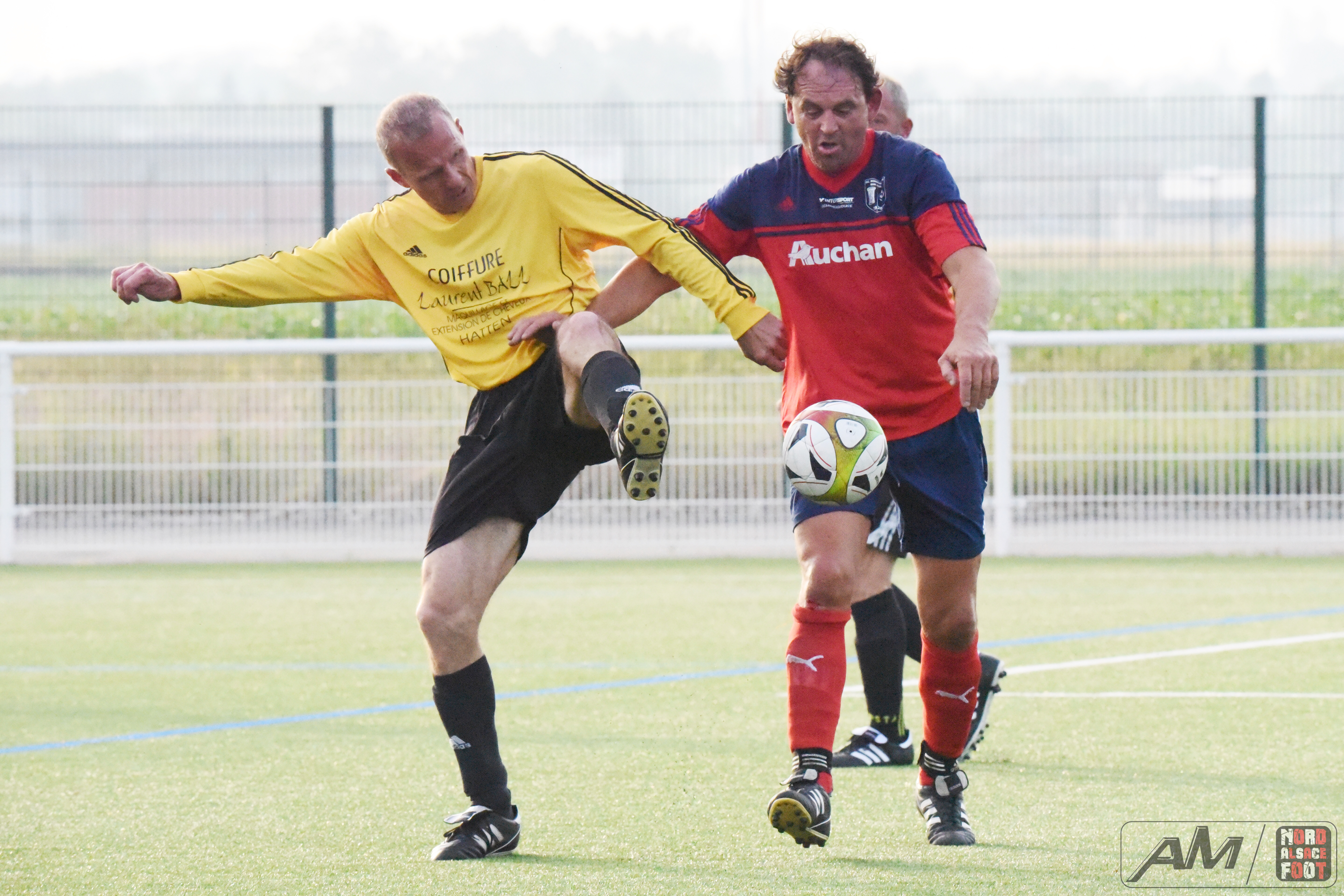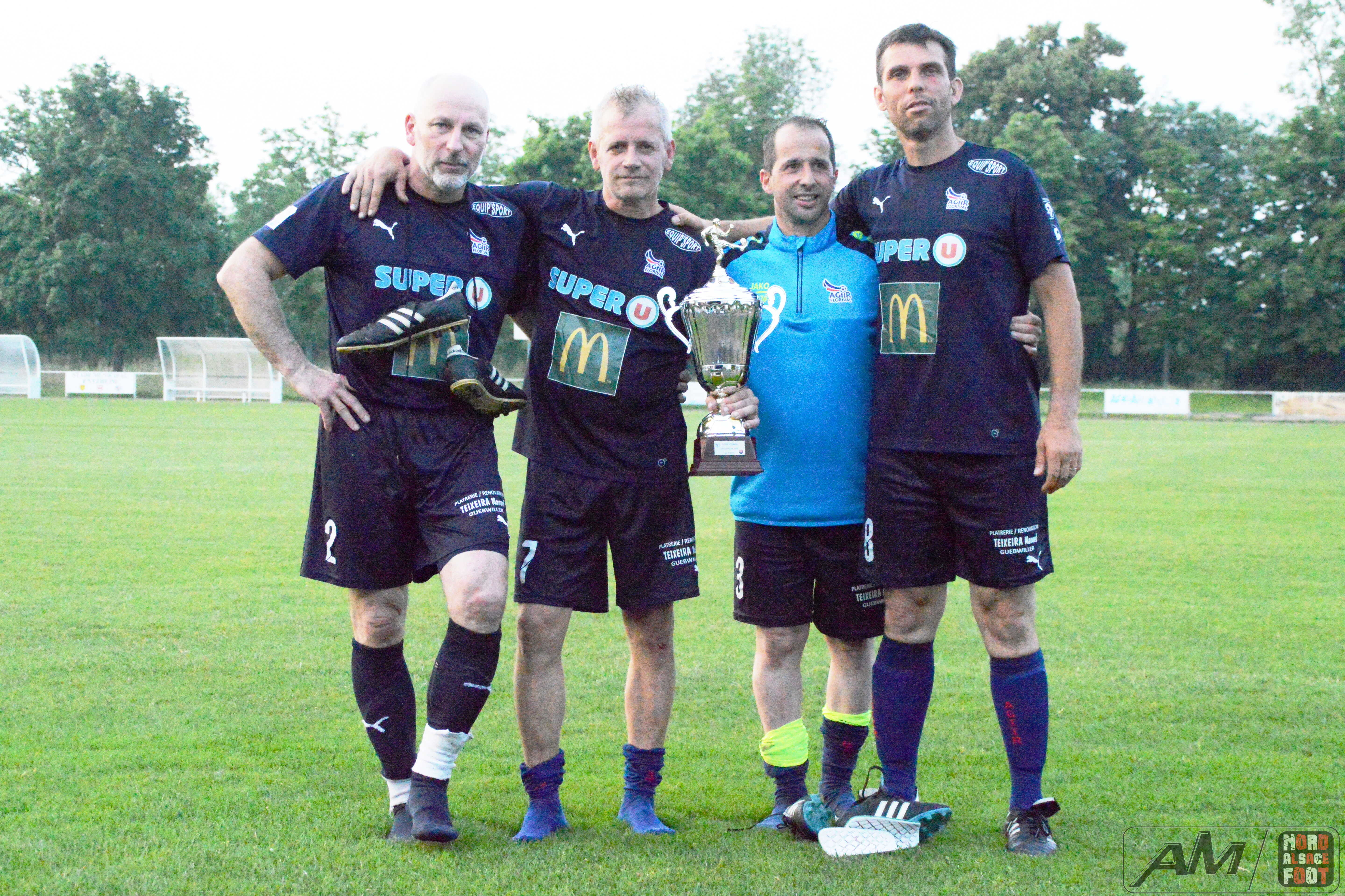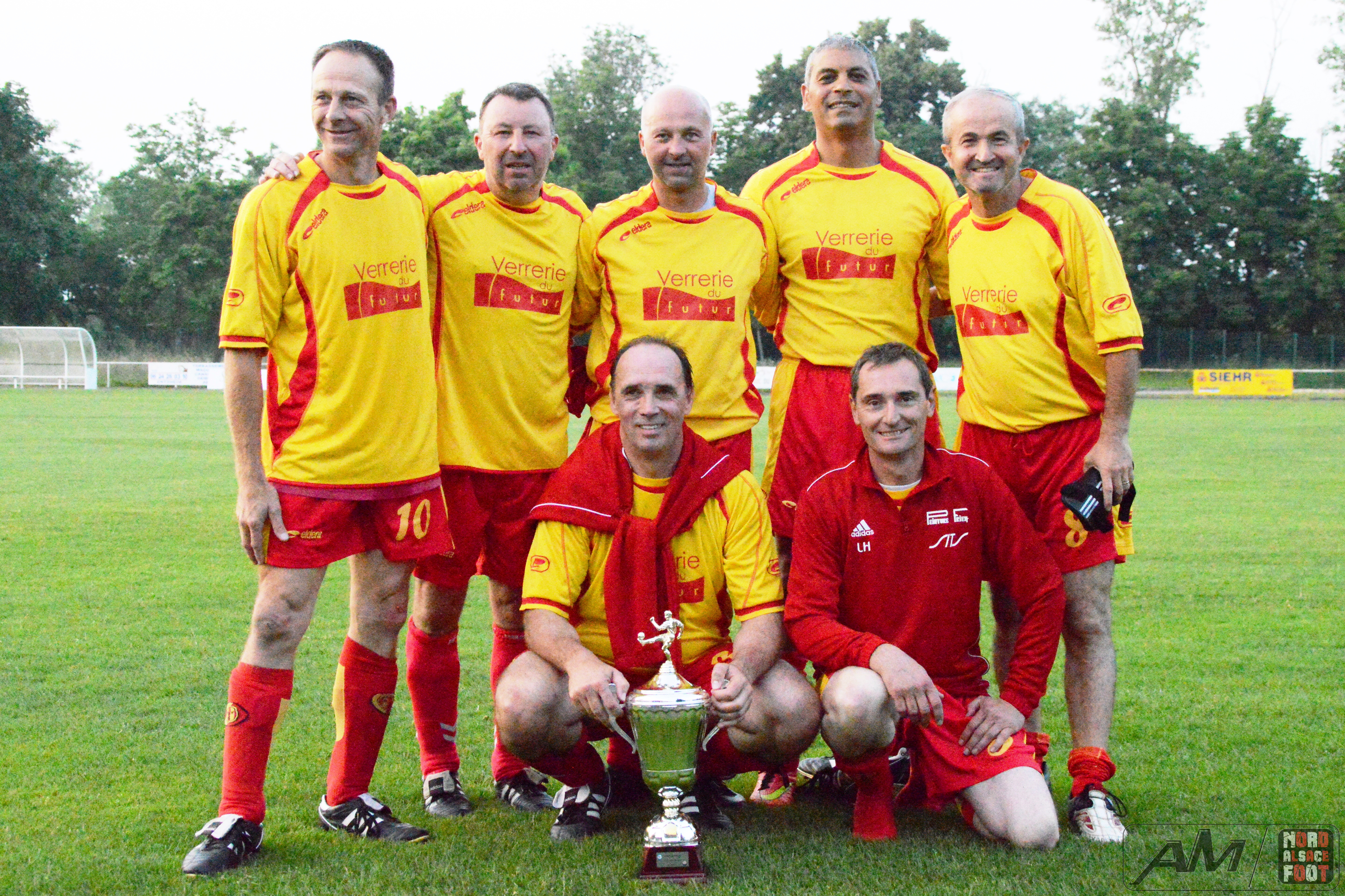 A l’occasion de la finale de la Coupe d’Alsace Super Vétérans se déroulant sur les installations du FC Entzheim, l’AS Hatten 61 affrontait le FC Schweighouse/s/Moder 61 pour une rencontre aux allures de déjà vu (match aller/retour en championnat) avec, au bout de cette dernière demi-heure, le titre de champions d’Alsace à aller décrocher pour l’une ou l’autre équipe. Après une première période se soldant par un score nul et vierge malgré la pléiade d’occasions hattenoises, les rouges et bleus menèrent la danse au cours du second acte en inscrivant trois réalisations grâce à l’ouverture du score de Gnaedig Laurent (18e) suivie d’un doublé de Charrier Eric (28e et 29e), ce qui permit au FC Schweighouse/s/Moder 61 d’être sacré Champions d’Alsace de la catégorie en disposant de leurs homologues sur le score de 0-3! Retrouvez quelques images de la rencontre et, pour en apprécier le contenu, veuillez cliquer sur l’une d’entre-elles pour afficher le diaporama.