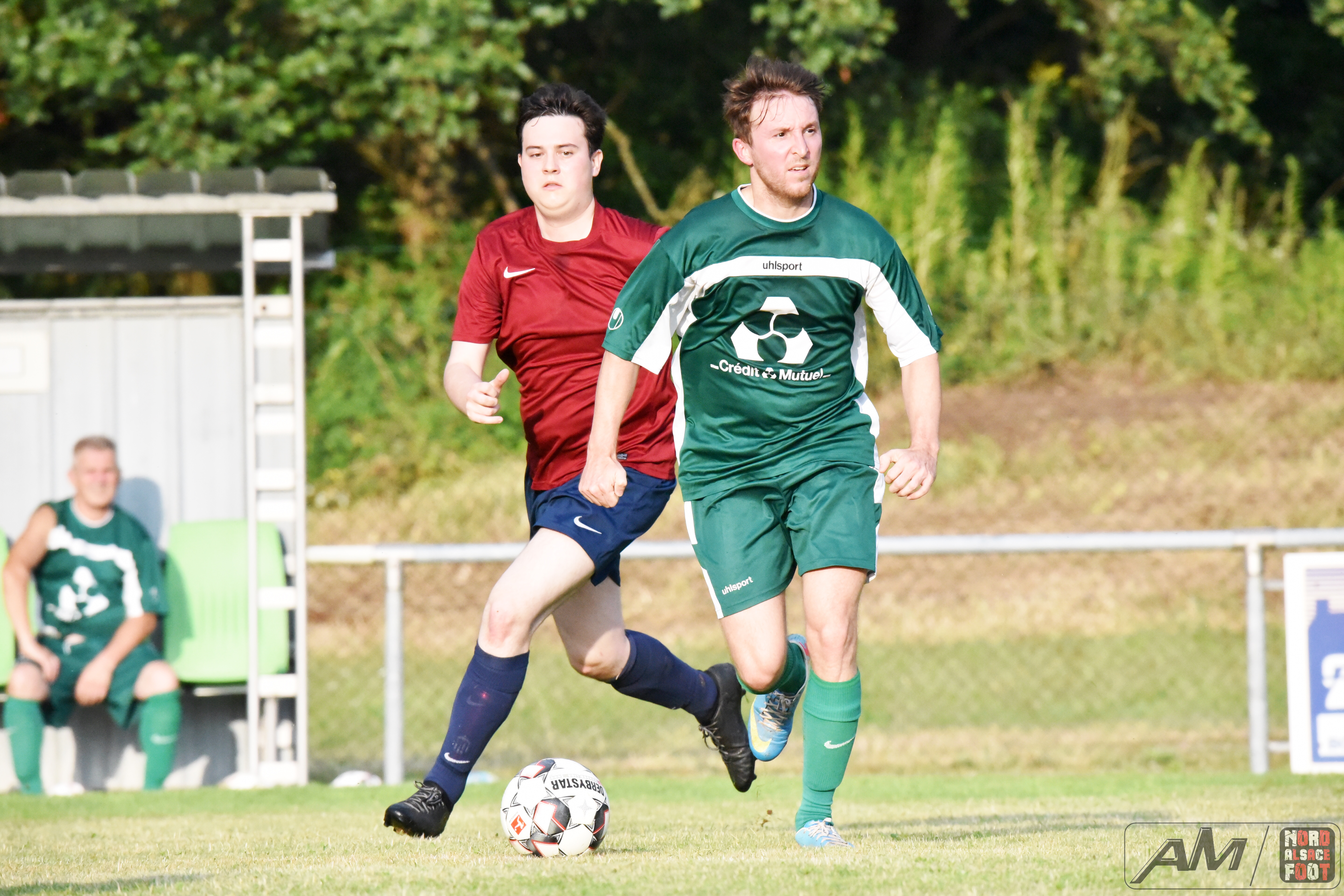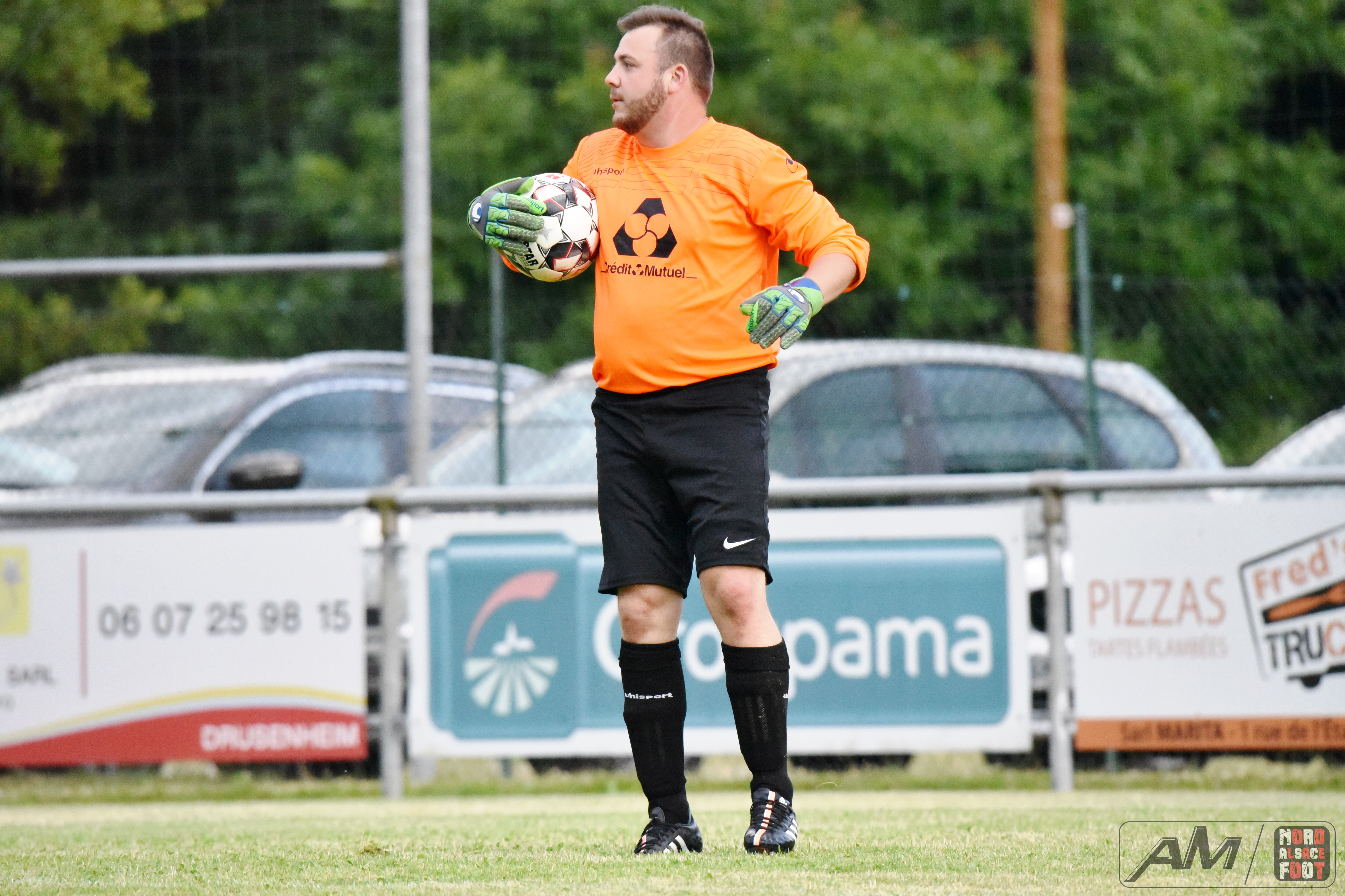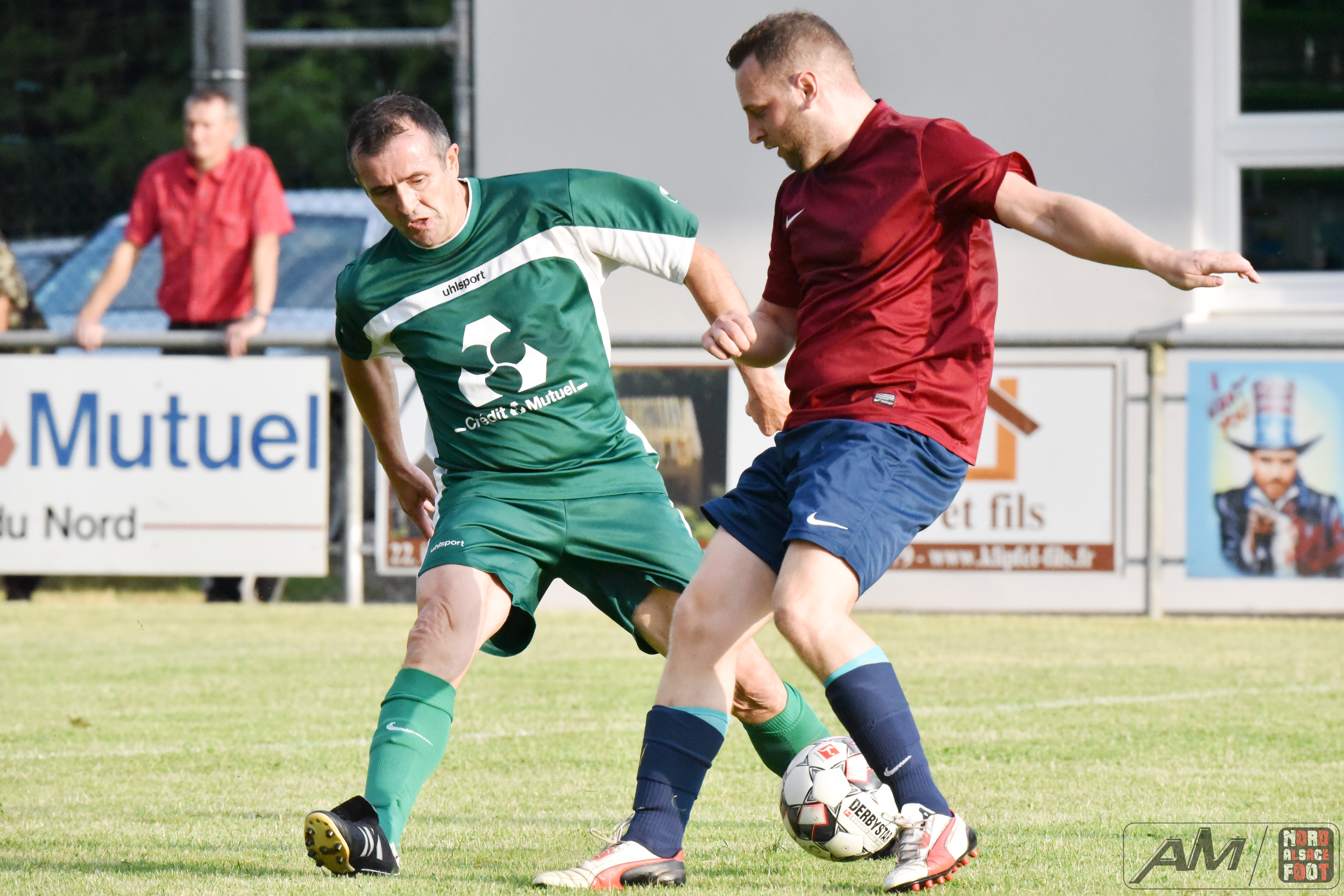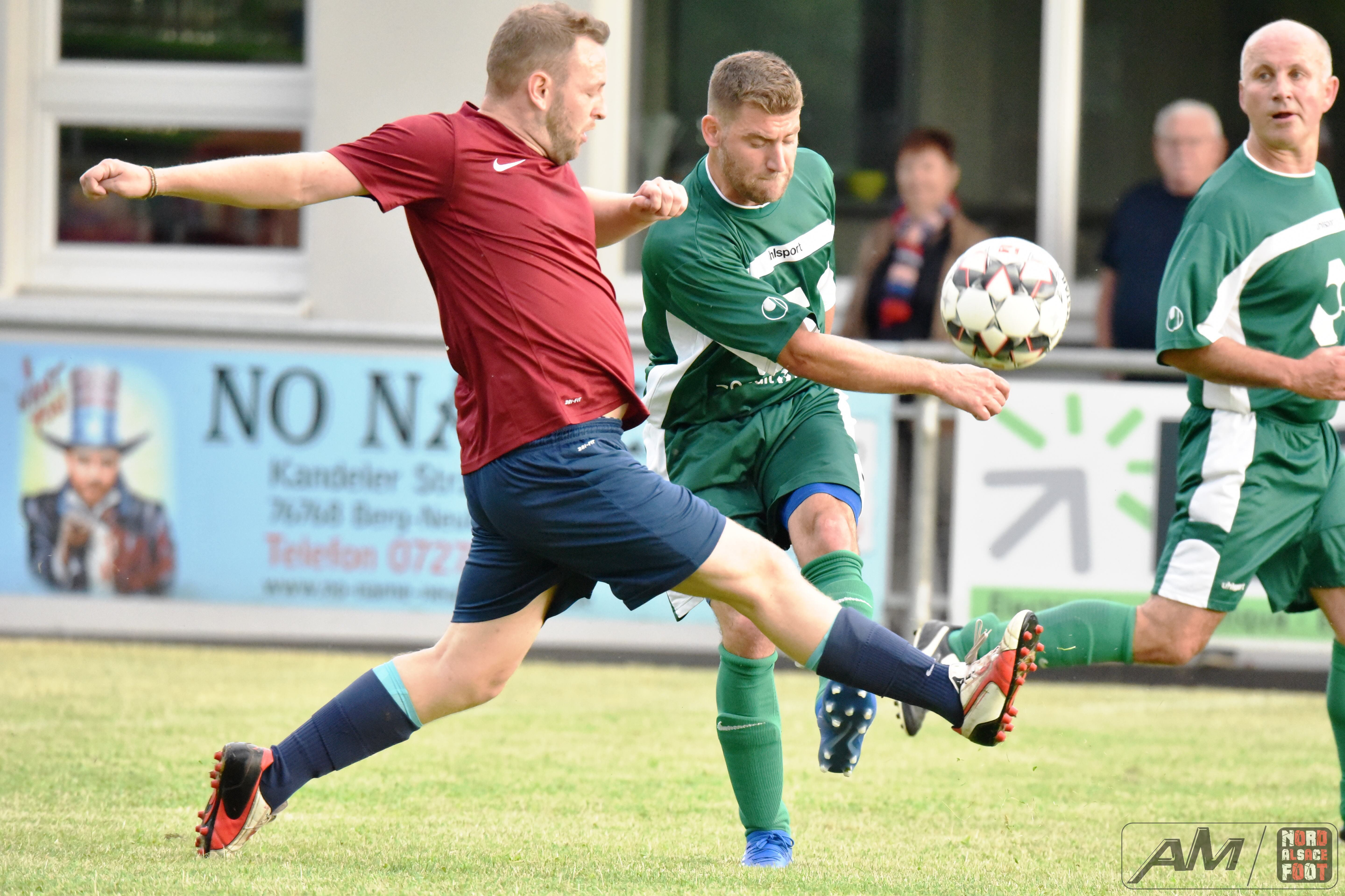 A l’occasion du second match comptant pour la première journée de la Fête Sportive du FC Scheibenhard, le FC Frankonia Rastatt affrontait le FC Scheibenhard (entente de copains) pour une rencontre internationale que les verts comptaient s’adjuger face à une équipe connue pour être accrocheuse. Après une première période se soldant par un avantage confortable en faveur des Français grâce à l’ouverture du score d’Arnaud Bernhardt (19e) suivie d’un CSC signé Dewald Eugene (38e), ces derniers allaient dominer le premier quart d’heure du second acte en ajoutant deux nouvelles réalisations grâce à un doublé d’Arnaud Bernhardt (41e) suivi d’un but magnifique de Mallet Gilles (45e) avant que les Allemands ne refassent leur retard grâce à un doublé de Zeuiri (48e et 70e) et grâce à des réalisations signées Depner (55e) et Klenk (62e). Retrouvez quelques images de cette rencontre et, pour en apprécier le contenu, veuillez cliquer sur l’une d’entre-elles pour afficher le diaporama.