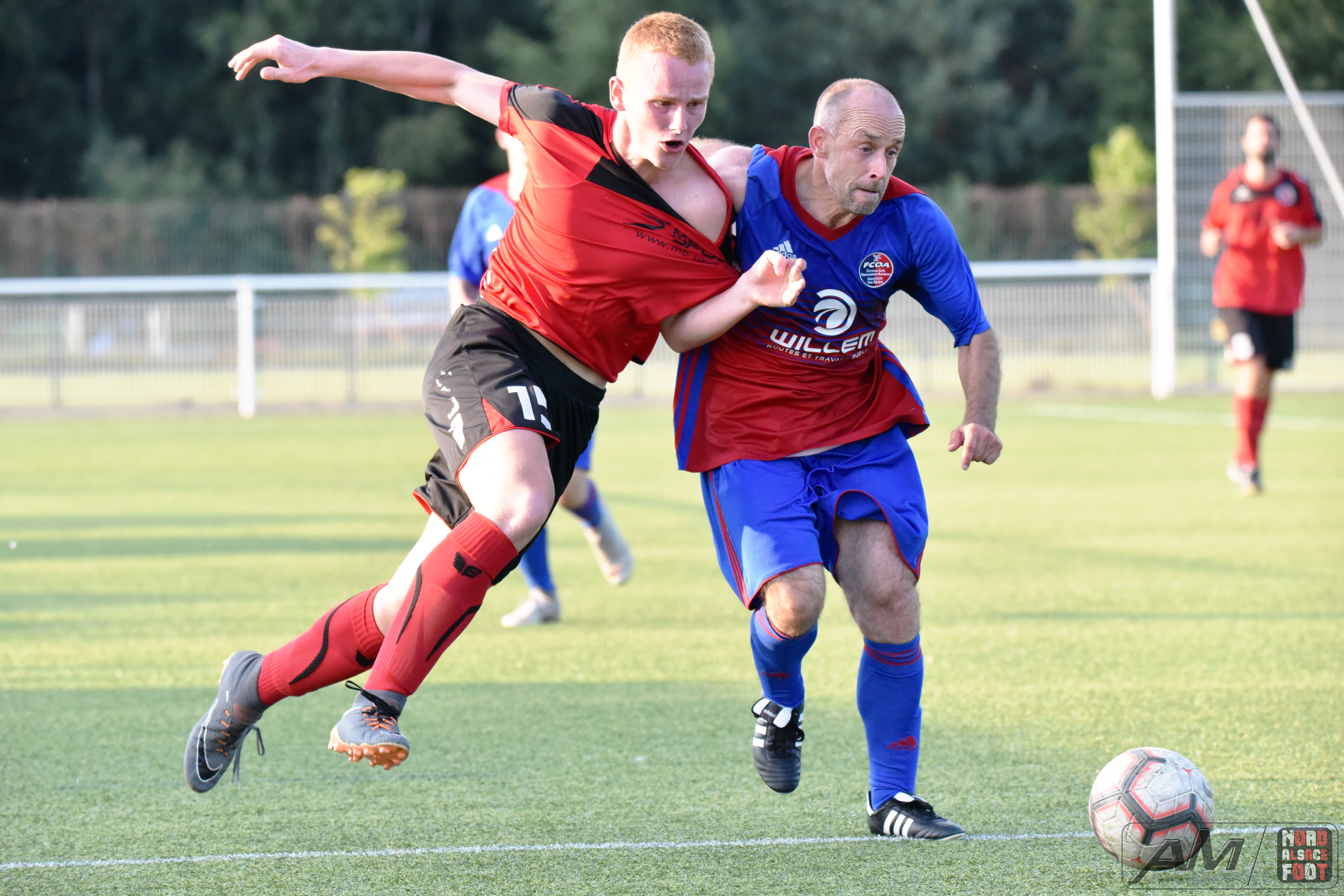 A l’occasion du match d’ouverture du “Foot en Fête” 2019 organisé par le FC Seltz, le FC Niederlauterbach affrontait le FC Oberroedern/Aschbach pour une rencontre pouvant permettre aux rouges et noirs de remettre le pied à l’étrier suite au revers enregistré dimanche dernier face à l’AS Salmbach (3-5), et ce, face à des ententistes démarrant leur phase de préparation ce jour. Après une première période se soldant par un large avantage en faveur des hommes de Schmitt Dominique grâce à un triplé de Schmitt Thomas (25e, 31e et 41e) et d’une réalisation signée Burcker Steeve (33e), ces derniers allaient ajouter une nouvelle réalisation au compteur en toute fin de match grâce à Weisenberger Félix (85e), ce qui leur permit de s’adjuger une victoire convaincante face à un pensionnaire de l’échelon supérieur sur ce score de 5-0! Retrouvez quelques images de cette rencontre et, pour en apprécier le contenu, veuillez cliquer sur l’une d’entre-elles pour afficher le diaporama.