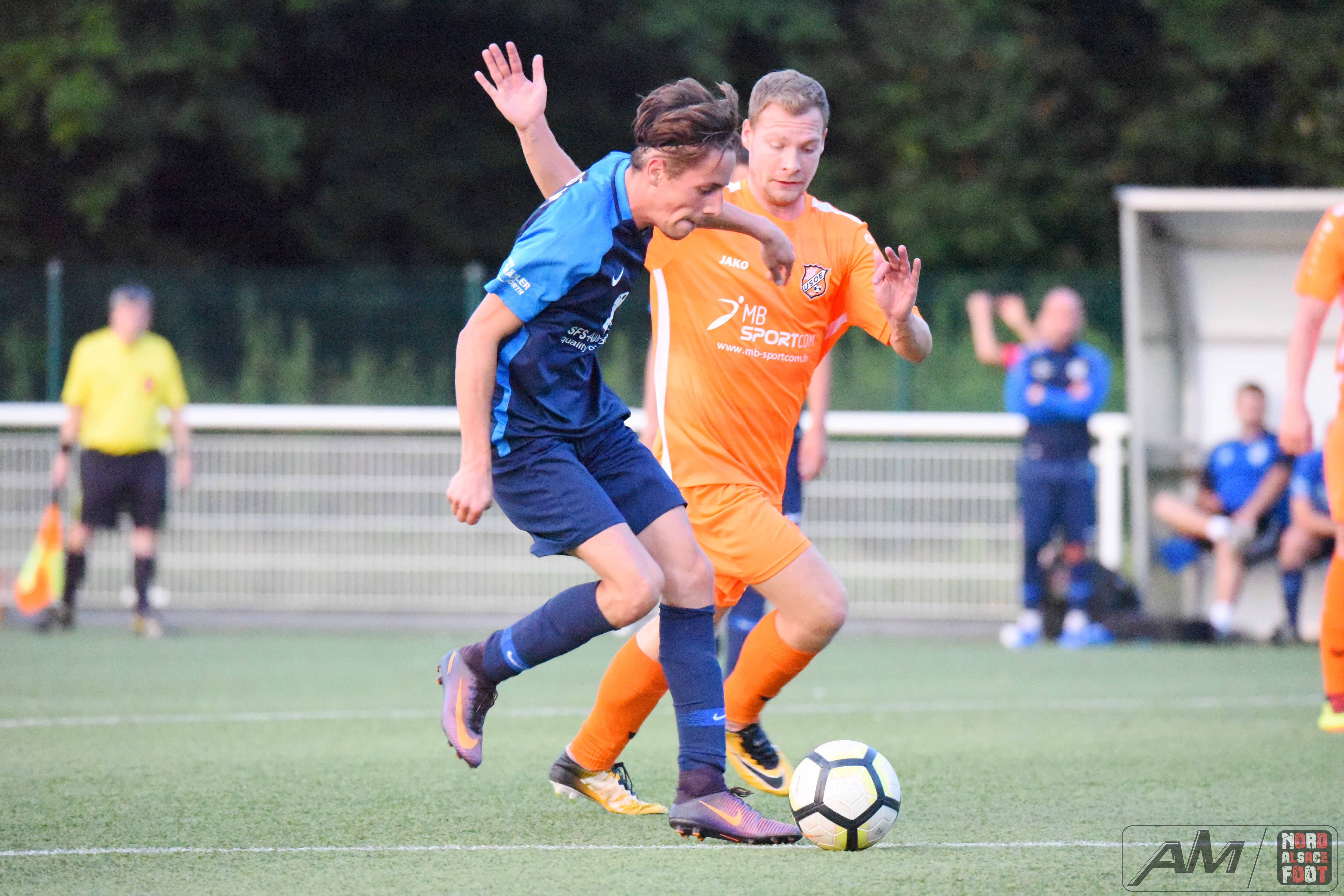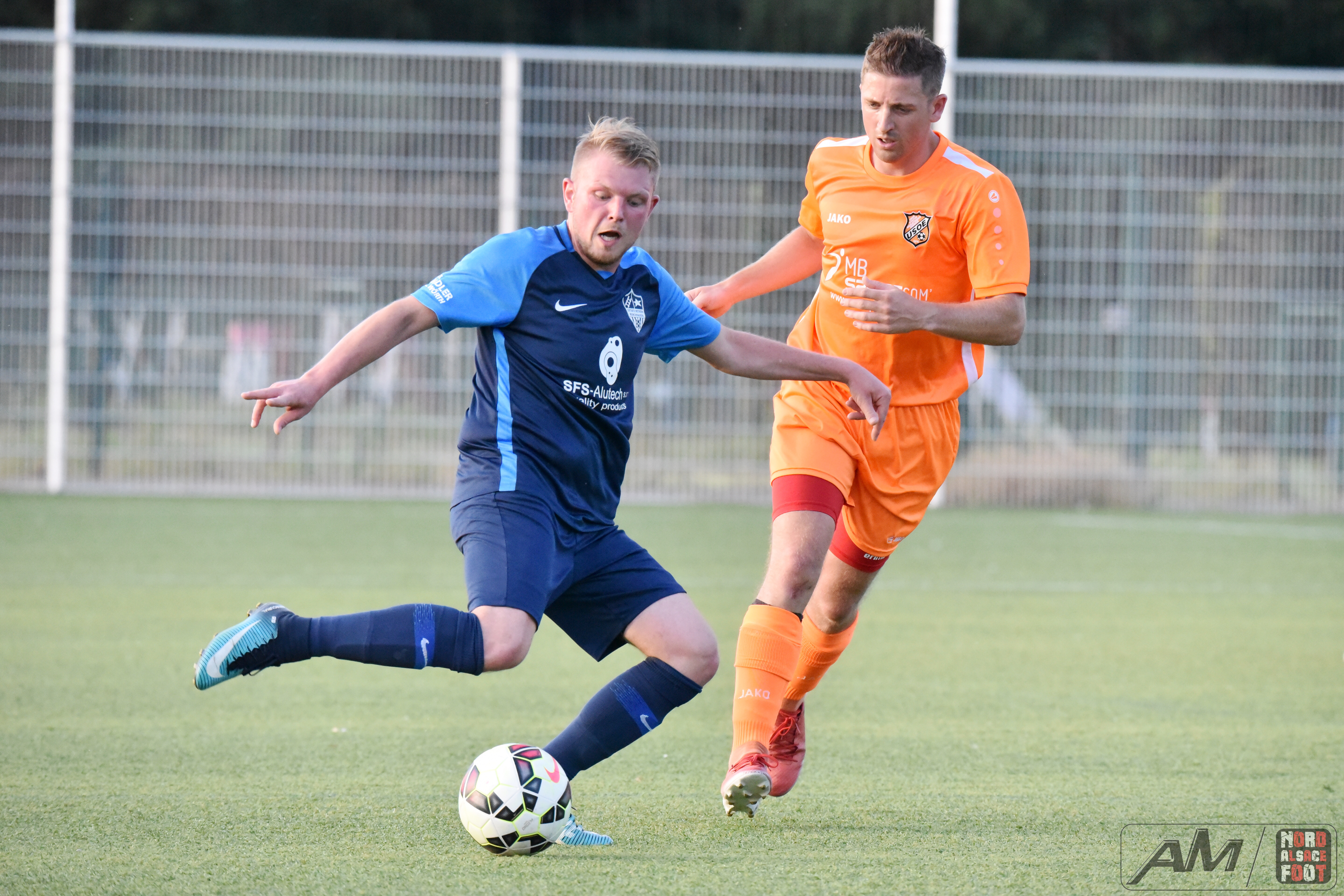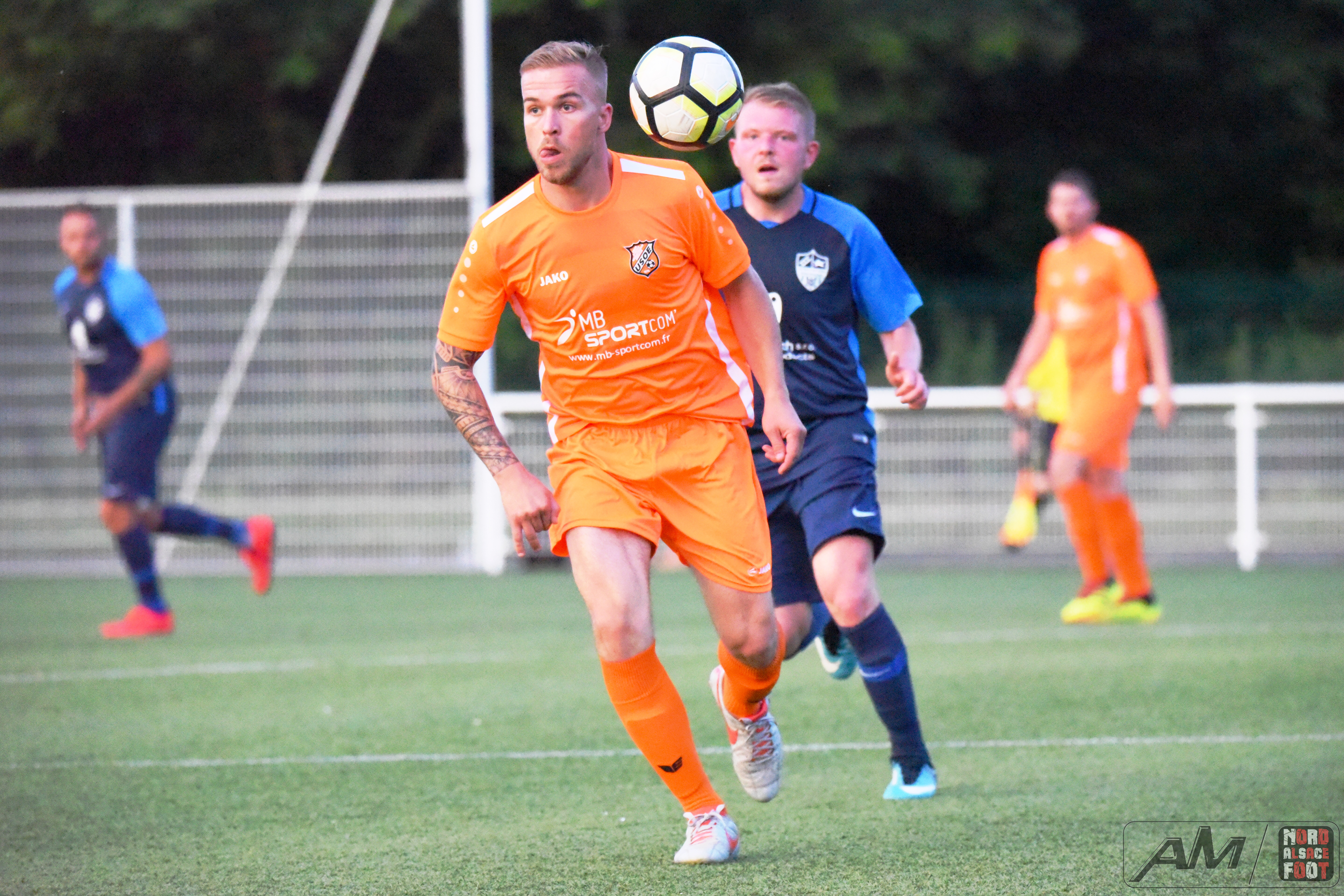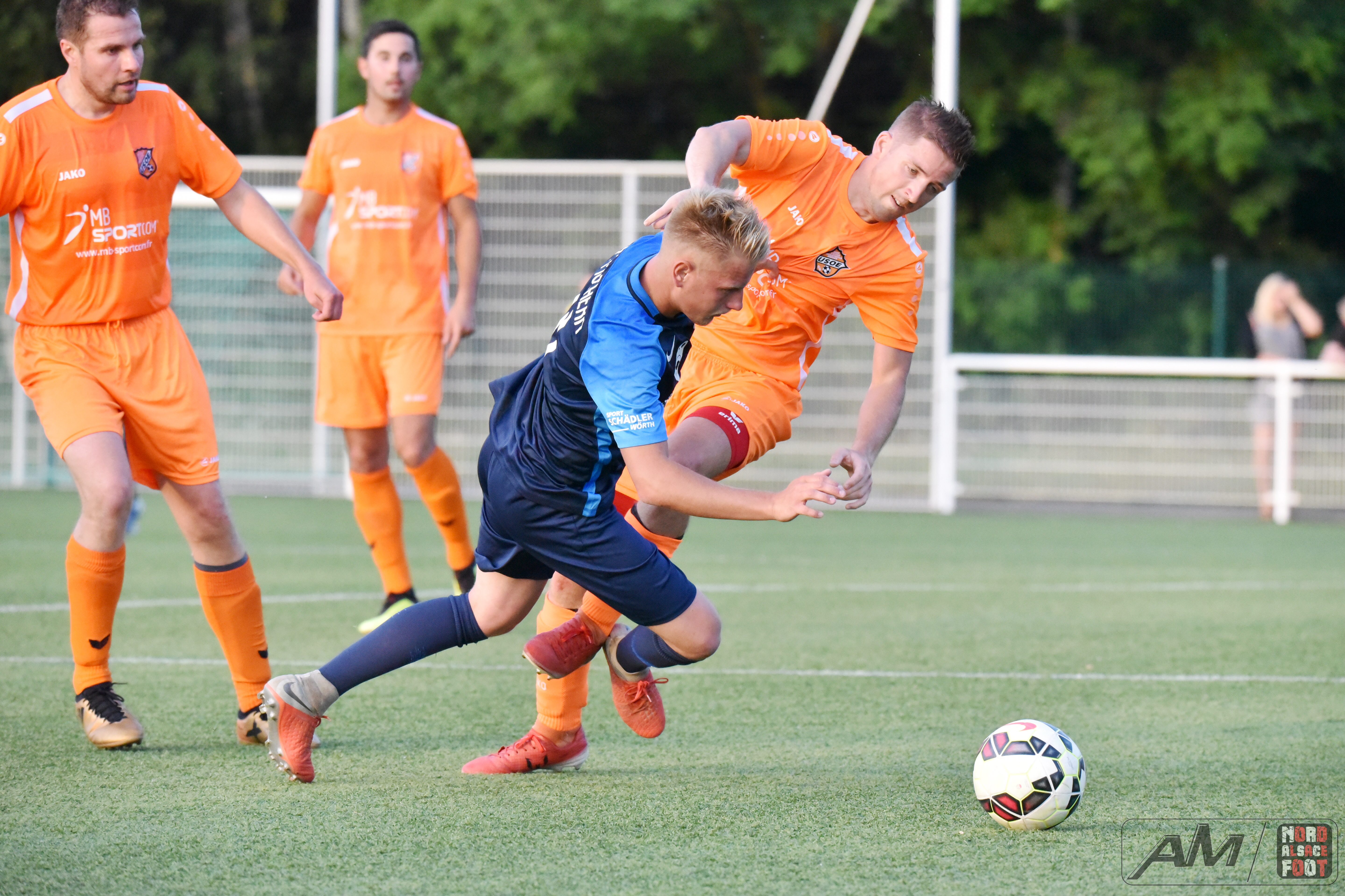 A l’occasion du second match comptant pour la première journée du “Foot en Fête” 2019 organisé par le FC Seltz, l’US Oberlauterbach affrontait l’entente Mothern/Munchhausen pour un match de préparation devant permettre aux nouvelles recrues de faire leur nid au sein de leurs effectifs respectifs. Après une première période se soldant par un court avantage en faveur des ententistes grâce à un joli but de Moog Alexis (5e), ces derniers allaient ajouter une nouvelle réalisation au compteur dès l’entame du second acte grâce à l’opportunisme de Hickel Corentin (50e) avant que les “Oranges” ne se révoltent en inscrivant deux buts coup sur coup grâce à Renckert Jonathan (51e) et Hauswirth Valentin (53e), les deux équipes se neutralisant ensuite pour finalement se quitter sur ce score de 2-2! Retrouvez quelques images de cette rencontre et, pour en apprécier le contenu, veuillez cliquer sur l’une d’entre-elles pour afficher le diaporama.