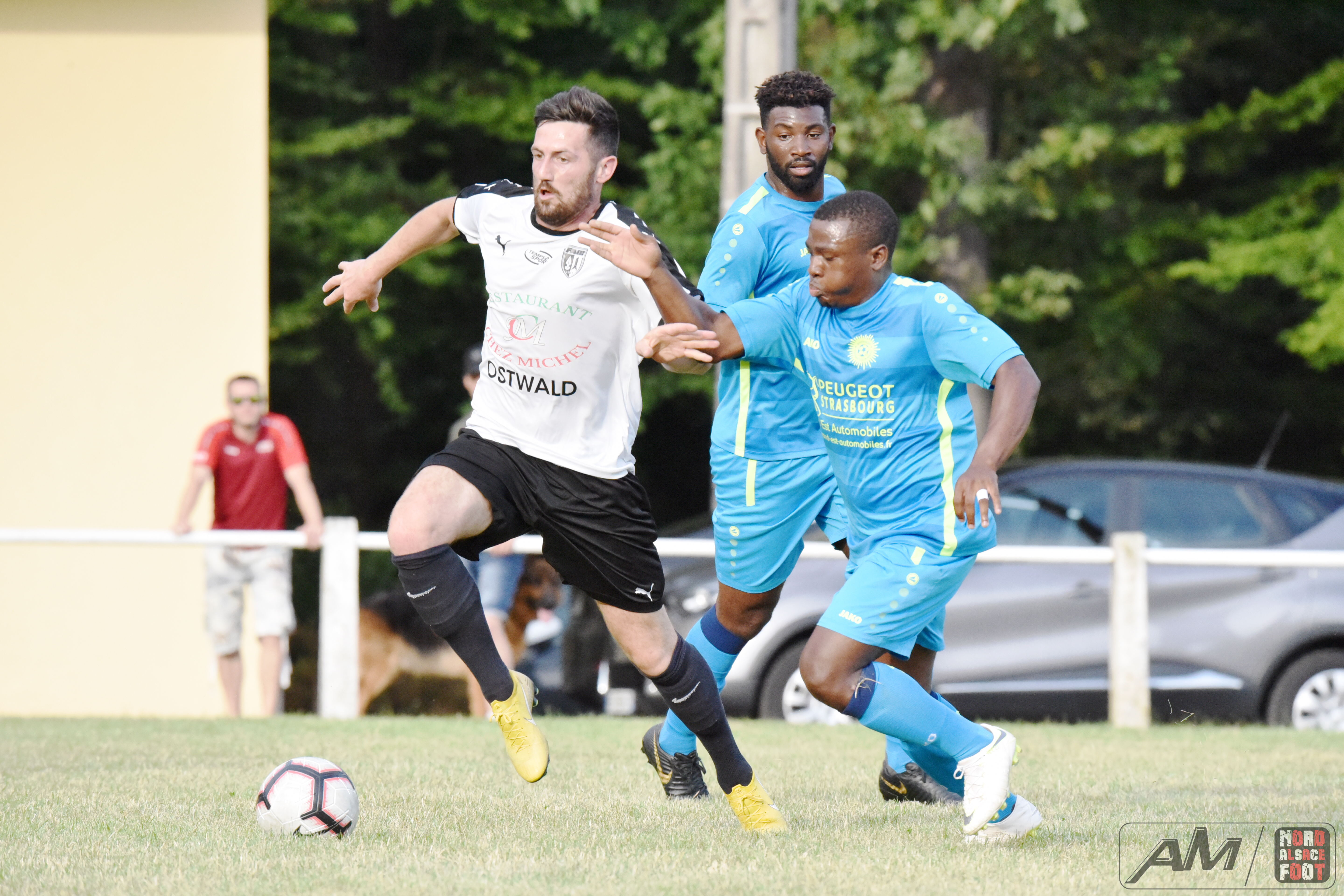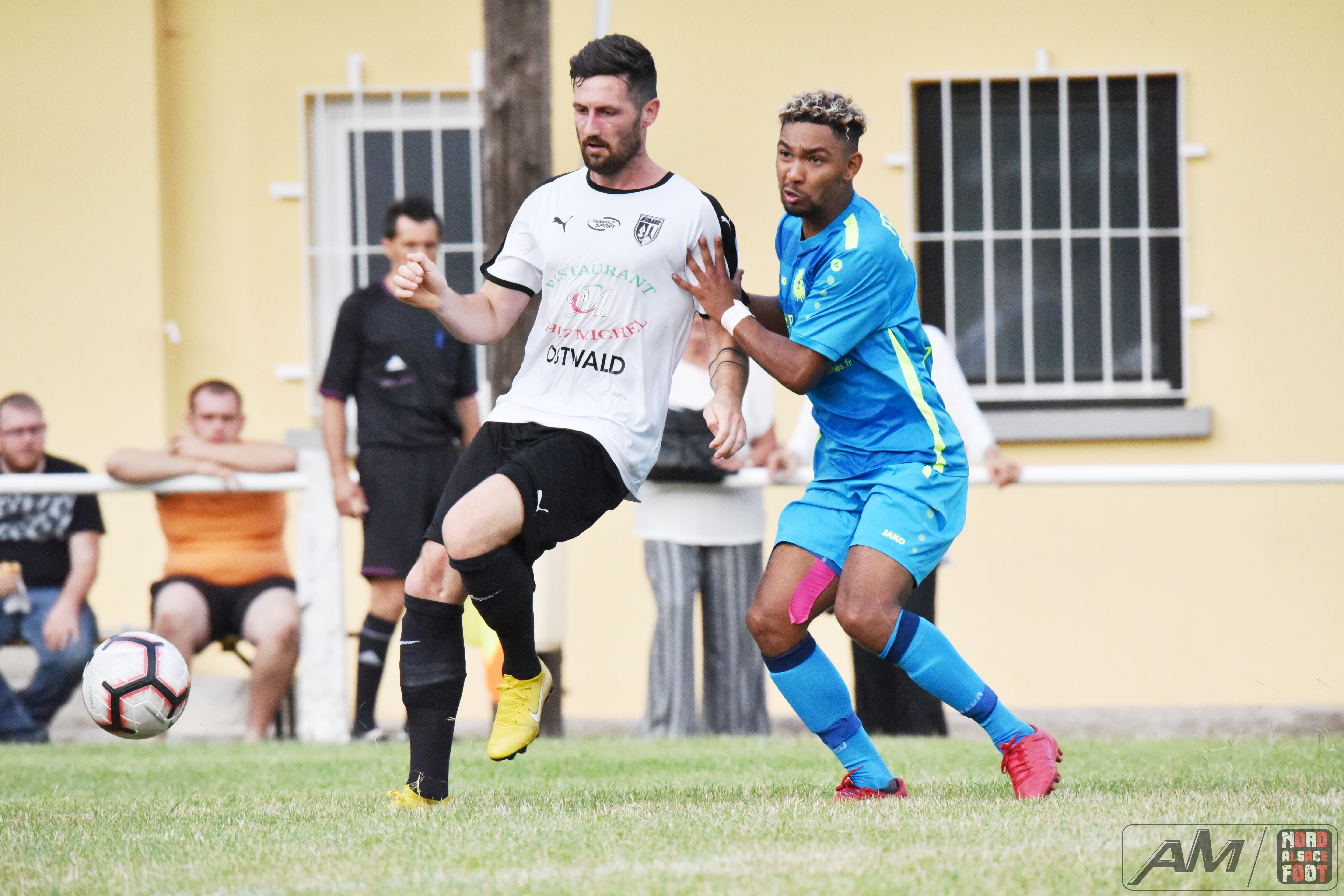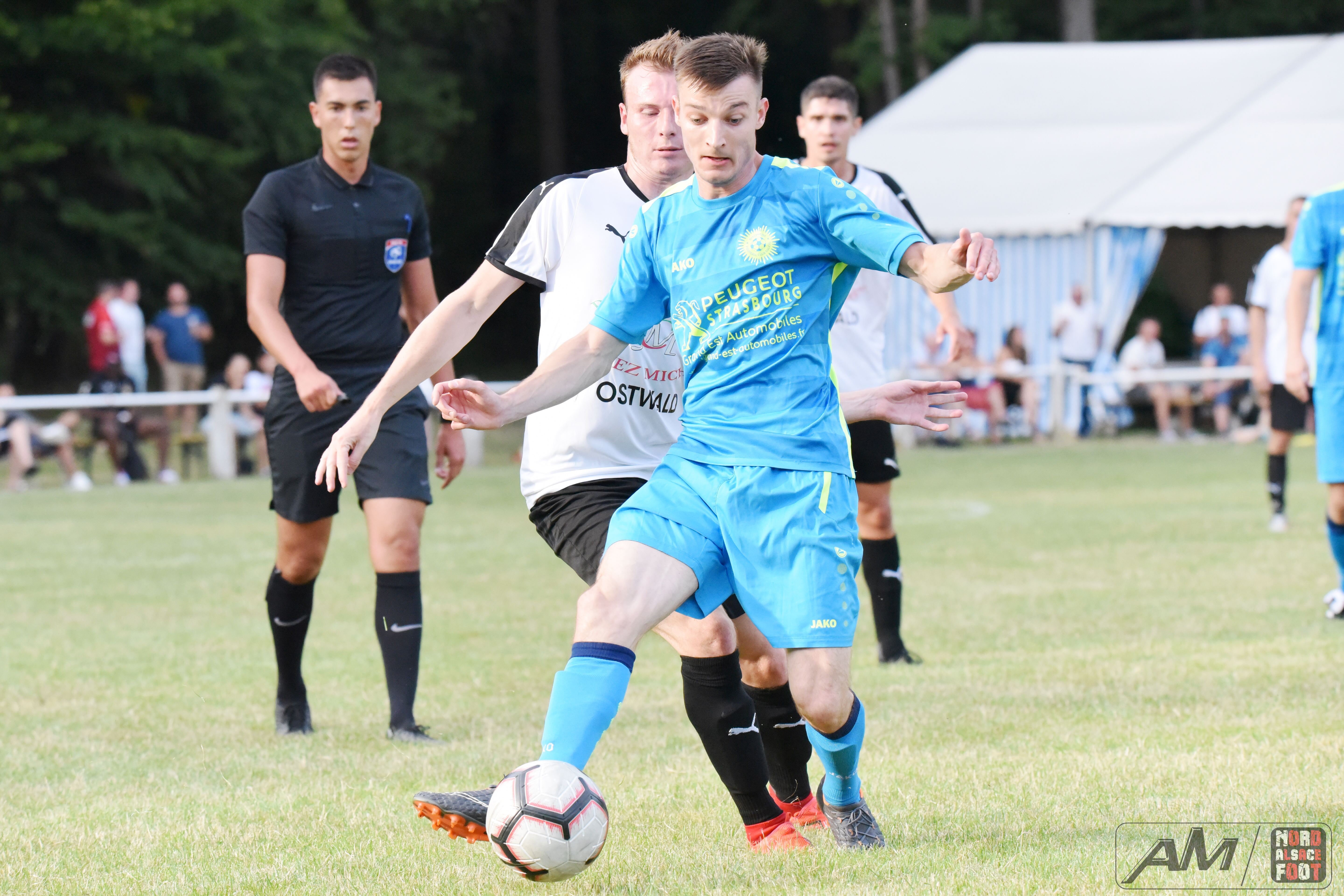 A l’occasion d’un match de gala clôturant la “Fête du Foot” organisée par les FR Schoenenbourg/Memmelshoffen, la FA Illkirch/Graffenstaden affrontait le FC Soleil Bischheim pour une rencontre permettant aux deux équipes de démarrer leur préparation par une belle opposition. Après une première période se soldant par un avantage confortable en faveur des Bischheimois grâce à l’ouverture du score de Reeb Florian (21e) suivi du break signé Barouki Nabil (37e), les débats allaient baisser en intensité en seconde période et la FAIG allait en profiter pour réduire la marque par l’intermédiaire de Schall Thomas (63e) avant de manquer l’égalisation en fin de match, ce qui permit aux pensionnaires de Régionale 1 de s’imposer sur le score de 1-2! Retrouvez quelques images de cette rencontre et, pour en apprécier le contenu, veuillez cliquer sur l’une d’entre-elles pour afficher le diaporama.