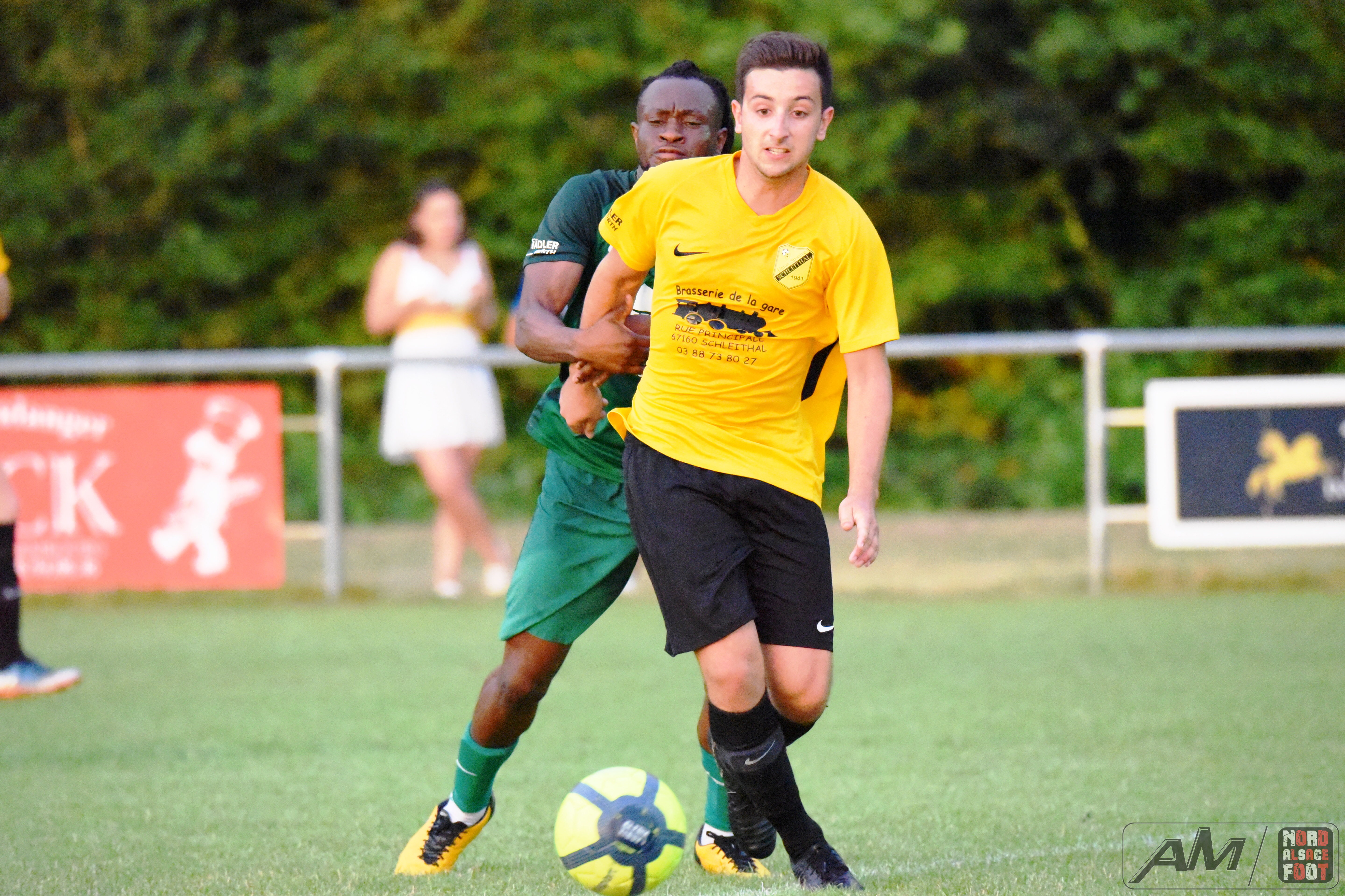 A l’occasion du deuxième match amical comptant pour la deuxième journée de la Fête du Foot organisée par l’AS Salmbach, l’US Schleithal affrontait le FC Scheibenhard pour une rencontre devant servir à parfaire les premiers automatismes à moins d’un mois du retour à la compétition. Après une première période se soldant par un net avantage en faveur des Schleithalois grâce à des réalisations signées Quentin Pfaff (2e), Michel Fischer (15e) et Wahl Heyd Loïc (16e), leurs adversaires allaient attendre l’heure de jeu pour réduire la marque grâce à penalty transformé par Fofana Adama avant que Camolli Joël ne creuse l’écart d’un magnifique coup franc (63e), ce qui permit à son équipe de s’imposer logiquement sur le score de 4-1! Retrouvez quelques images de cette rencontre et, pour en apprécier le contenu, veuillez cliquer sur l’une d’entre-elles pour afficher le diaporama.