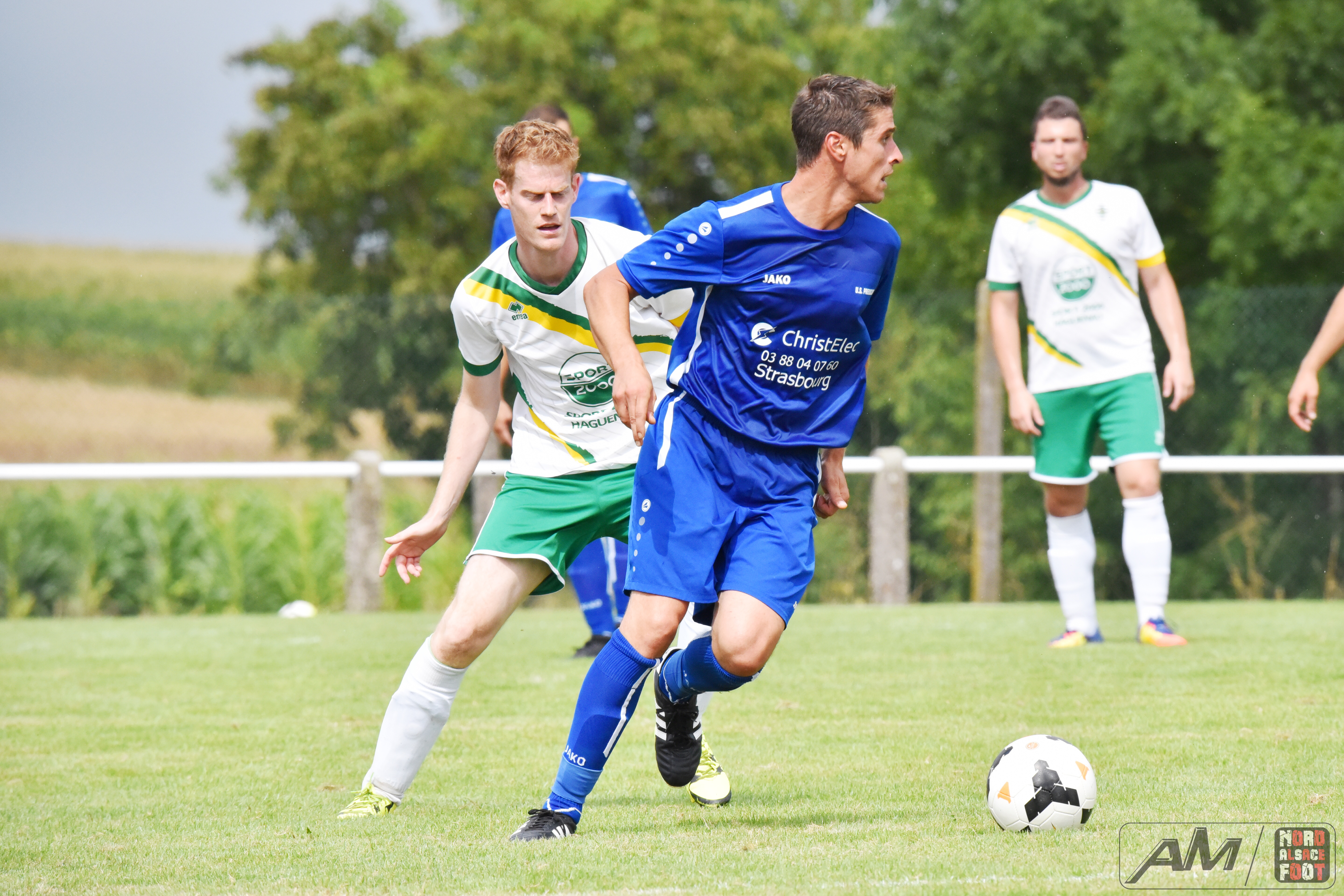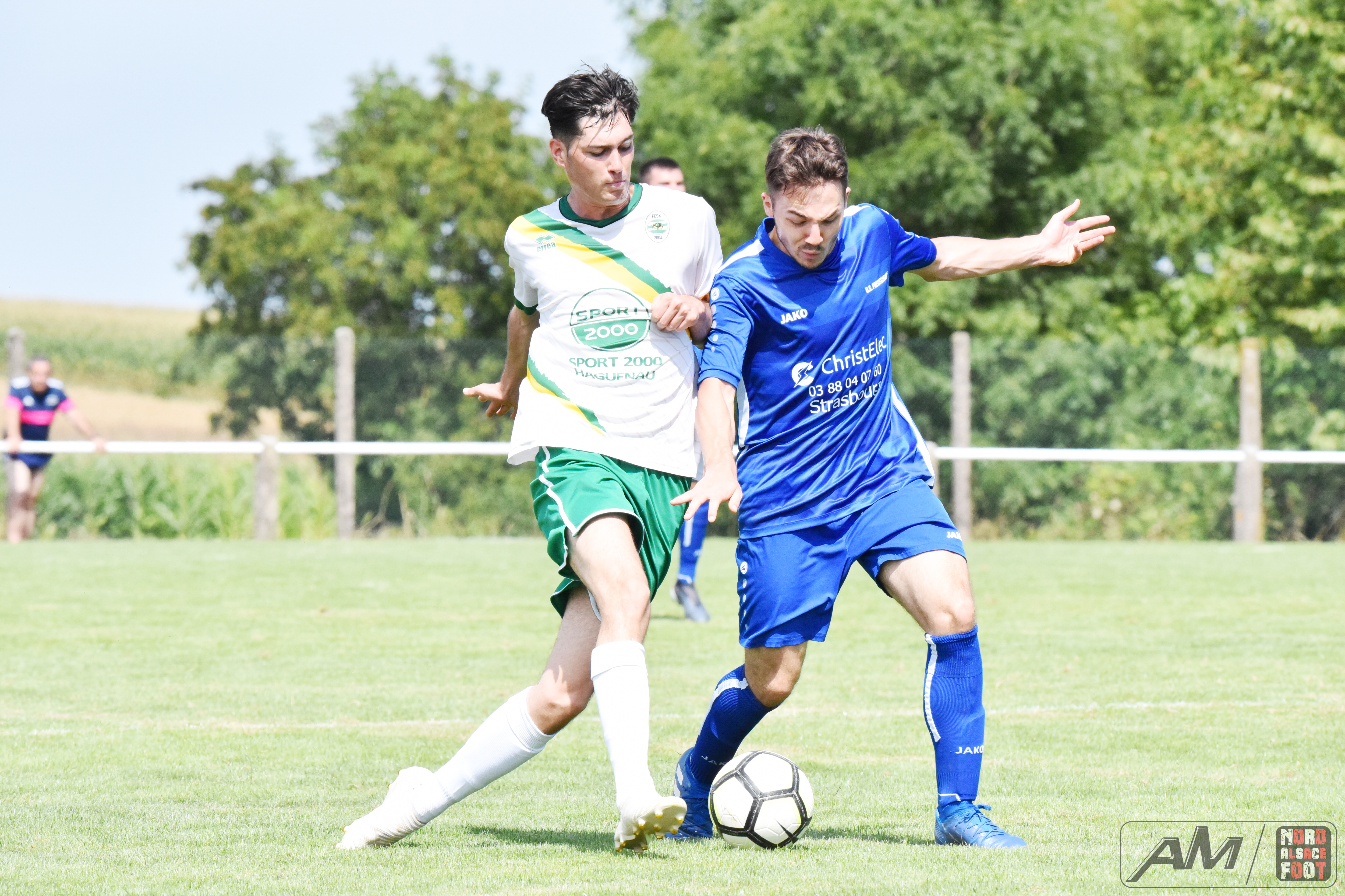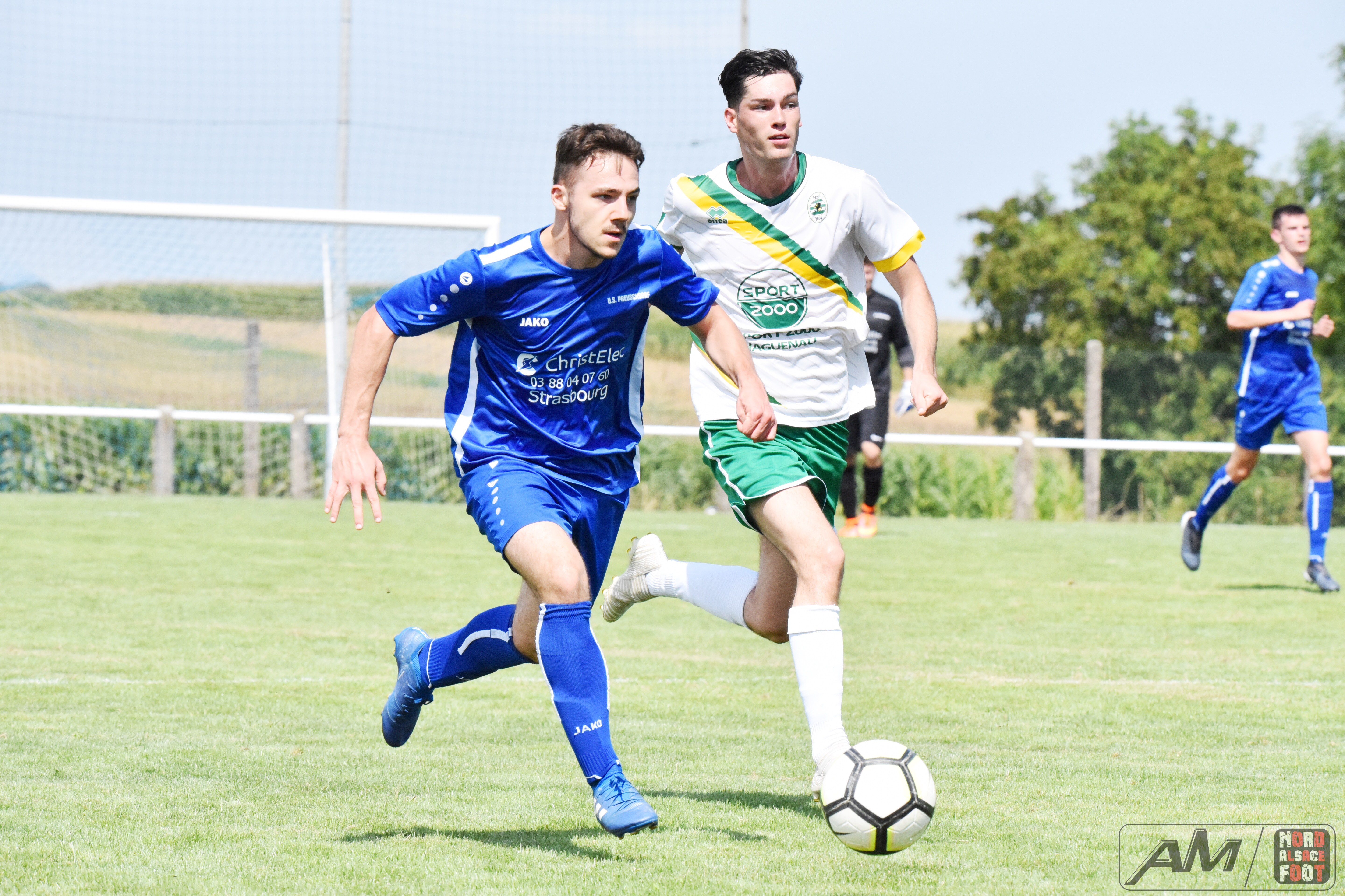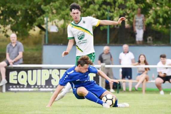 A l’occasion du second match comptant pour la troisième journée de festivités entourant le 65e anniversaire du SC Rittershoffen, le FC Soultz/Kutzenhausen affrontait l’US Preuschdorf afin de parfaire les derniers automatismes à une petite semaine du retour à la compétition. Après une première période se soldant par un large avantage en faveur des pensionnaires de Régionale 3 grâce à des réalisations signées Zacher Cyril (41e), Hauswirth Vincent (43e) et Frey Sallmen Ruben (44e), les bleus allaient revenir de la pause avec de bien meilleures intentions et ils allaient être récompensés de leurs efforts à l’heure de jeu grâce à un but d’Amrhein Damien avant que Sean Hild ne creuse un peu plus l’écart pour le FCSK à la 78e minute de jeu, Eyermann Tom réduisant ensuite la marque à la 85e minute de jeu, ce qui n’empêcha pas aux ententistes de s’imposer sur le score de 4-2. Retrouvez quelques images de cette rencontre et, pour en apprécier le contenu, veuillez cliquer sur l’une d’entre-elles pour afficher le diaporama.