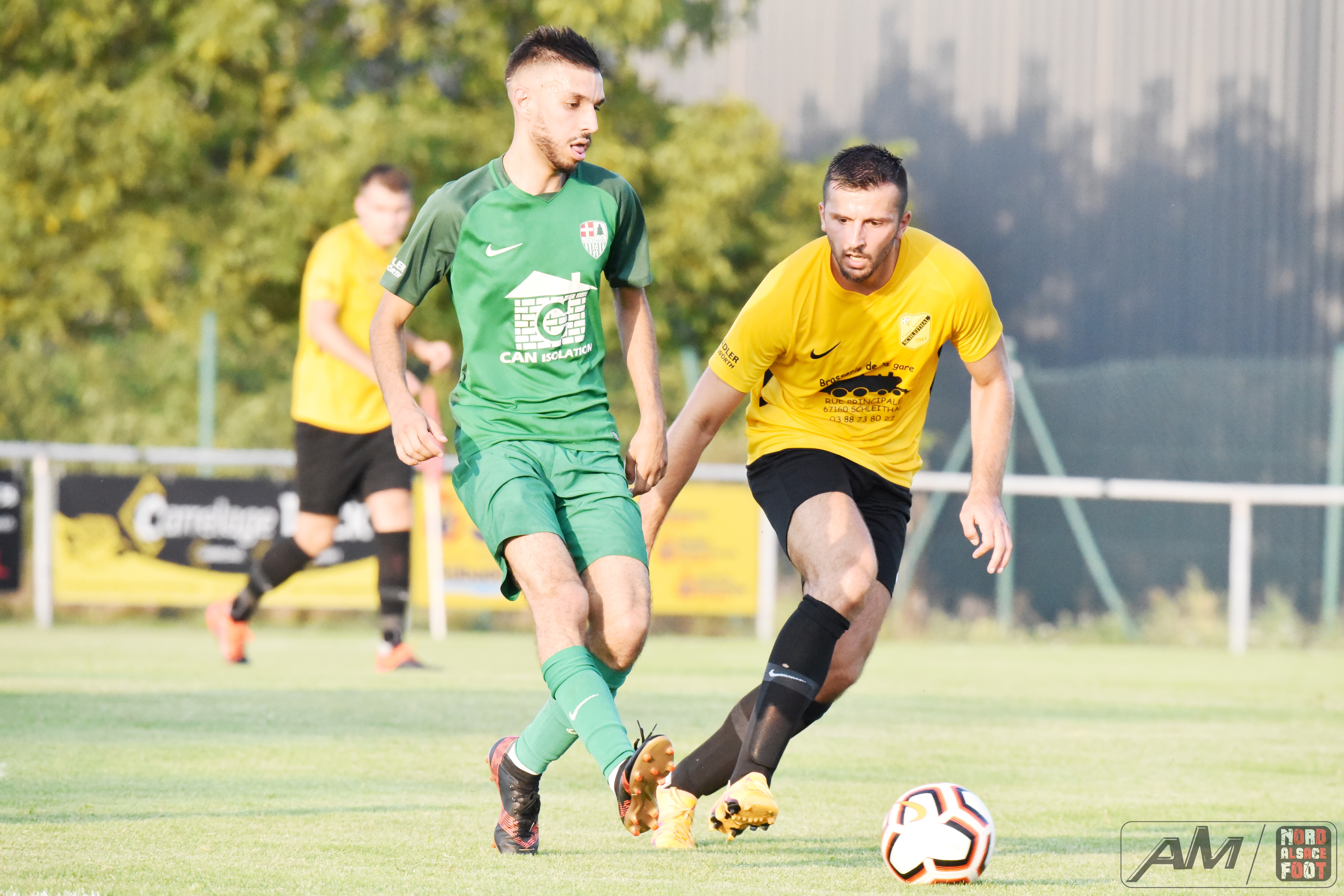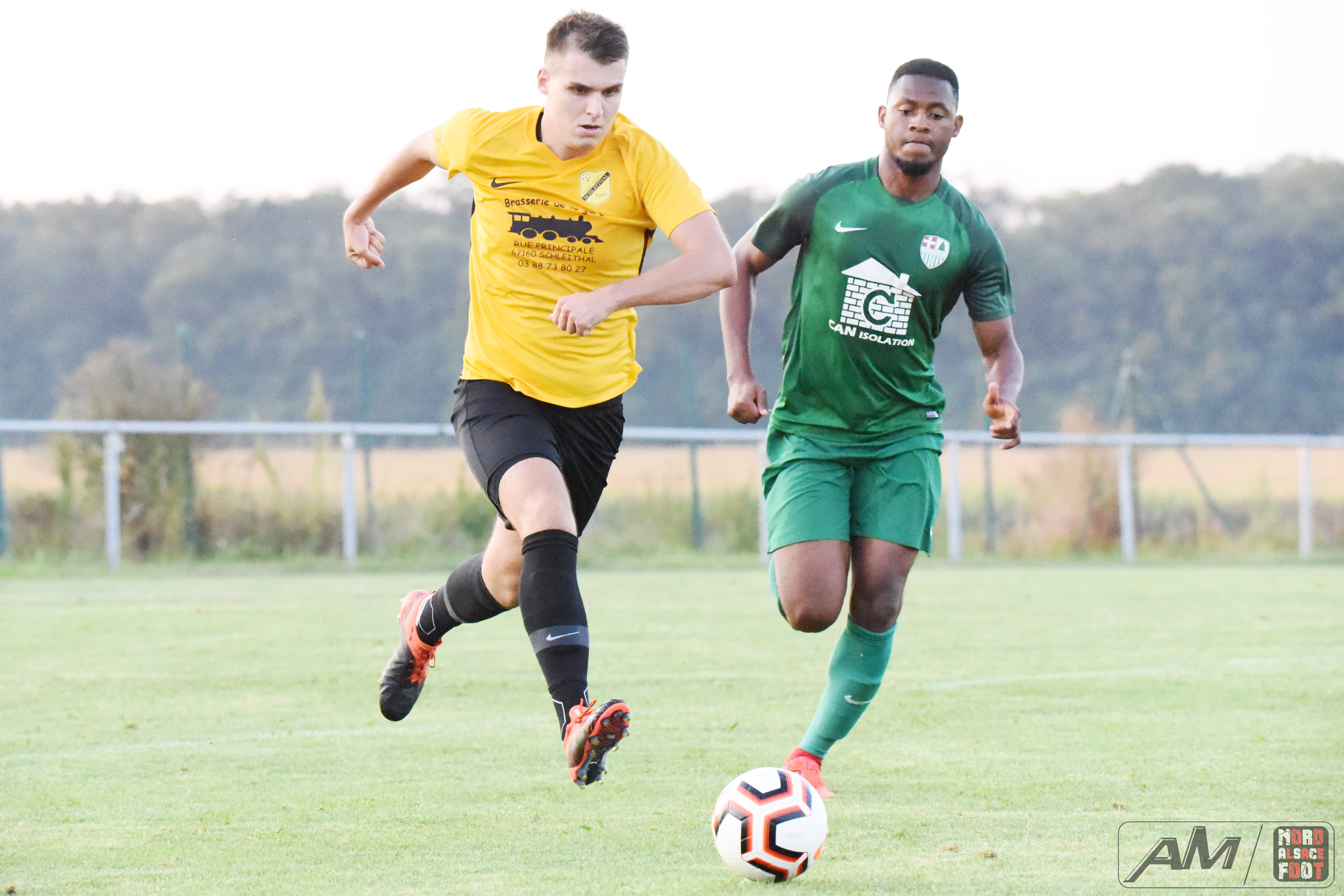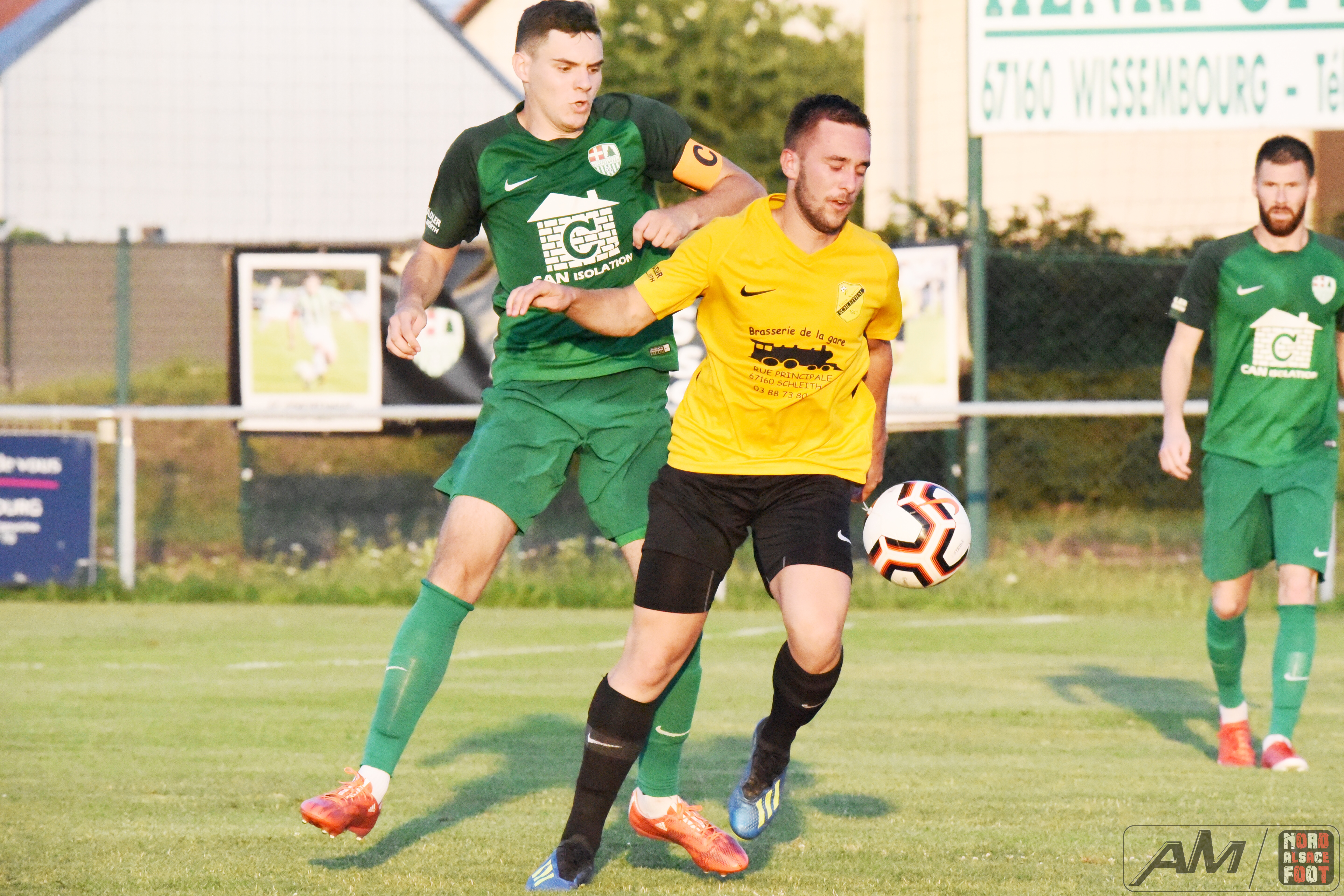 A l’occasion d’un match avancé comptant pour la première journée de championnat en District 1, l’US Schleithal accueillait le FC Scheibenhard avec la ferme intention de débuter la saison sur une bonne note face à un promu découvrant la division pour la première fois de son histoire. Après une première période se soldant par un score de parité grâce à une réalisation signée Schmitt Jonas (7e) étant suivie par l’égalisation de Fofana Adama (21e), les verts furent cueillis à froid dès l’entame du second acte grâce à une réalisation signée Camolli Joël (47e) avant que Steiner Donovan ne se rende coupable d’une boulette sur sa ligne (57e), les deux équipes nous offrant ensuite une fin de match haletante manquant de tourner à l’avantage des verts suite à un lobe de Nwankwo Emmanuel au-dessus du portier local étant sauvé sur sa ligne par Lienhardt Johann (90e) pour un sauvetage in-extremis préservant finalement ce match nul de 2-2! Retrouvez quelques images de cette rencontre et, pour en apprécier le contenu, veuillez cliquer sur l’une d’entre-elles pour afficher le diaporama.