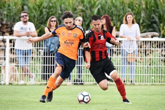 De retour sur la pelouse, les deux formations étaient parées pour le coup d’envoi du second acte avec, dès les premières minutes de jeu, une période de neutralisation s’installant dans l’entre-jeu et au terme de laquelle les visiteurs furent les premiers à se mettre en lumière suite à ce débordement sur la gauche de Bouchber Ayoub se soldant finalement par une faute de Stoltz Yannick à hauteur des 35m occasionnant un coup franc que Dietenbeck Steeve se chargea de botter en direction de l’entrée de la surface de réparation devant laquelle Schauer Mickaël renvoya le danger avec autorité, on jouait la 51e minute de jeu. Suite au renvoi défensif précédent, les deux formations allaient se donner rendez-vous dans l’entre-jeu pour une série de duels les occupants jusqu’à la 55e minute de jeu, moment choisi par les locaux pour enclencher la prochaine vitesse sur la droite avant d’obtenir une touche à hauteur des 25m, pour une remise en jeu que Kern Nicolas se chargea de jouer rapidement dans la course de Brenckle Nicolas, l’attaquant s’emmenant ensuite le ballon sur plusieurs mètres pour enfin songer à émettre une frappe des 16m étant enlevée des poings en touche par Zeidler Yannick. Consécutivement à la remise jeu précédente, les rouges et noirs allaient ressortir de leurs derniers retranchements grâce notamment à Courdavault Florian, l’attaquant s’offrant un débordement dans le couloir droit avant d’obtenir un corner face à Hahn Nicolas pour un coup de pied de coin que Bouchber Ayoub se chargea de botter de la droite mais sa remise échoua directement dans le petit filet extérieur droit, on jouait la 56e minute de jeu. Alors qu’on atteignait progressivement l’heure de jeu, les visiteurs allaient demeurer dans la moitié de terrain locale et, après un pressing payant sur le porteur du ballon sur la droite, Meyer Lucas parvint à en ratisser un avant de répondre à l’appel en profondeur de Dietenbeck Steeve, ce dernier n’hésitant pas à émettre un centre en direction du point de penalty pour Bouchber Ayoub qui se fit prendre dans un cafouillage au terme duquel la défense locale put se donner de l’air en renvoyant le danger aux avants-postes. Rehaussant leur niveau de jeu au milieu de terrain, les visiteurs allaient priver leurs hôtes de ballon jusqu’à ce que l’une de leurs offensives sur la gauche n’aboutisse à une main de Kern Nicolas à hauteur des 20m, ce qui occasionna un coup franc que Dietenbeck Steeve se chargea de botter au-dessus d’un mur de deux joueurs et en direction du second poteau à hauteur duquel Schauer Mickaël écarta le danger en corner pour un coup de pied de coin que Dietenbeck Steeve se chargea de botter de la gauche en direction du point de penalty à hauteur duquel Modery Geoffrey enleva le danger d’une main ferme en direction du second poteau pour la reprise de volée de Bouchber Ayoub filant au-dessus de la cible, on jouait la 63e minute de jeu. Dans la foulée de l’exécution du renvoi aux 5.5m précédent, les deux équipes allaient se retrouver au milieu de terrain pour d’âpres duels finissants par tourner à l’avantage des visiteurs, ces derniers s’en remettant aux multiples talents de Bouchber Ayoub afin d’apporter le danger sur la droite mais ce fut sans compter sur Stoltz Yannick, le milieu défensif se rendant coupable d’une faute à hauteur des 30m, ce qui occasionna un coup franc que Dietenbeck Steeve se chargea de jouer court dans le couloir avec Wagner Jonas, le défenseur remisant ensuite le cuir dans l’axe mais sa passe fut approximative, ce qui permit à Heideyer Arnaud de dégager le ballon bien assez loin de son but, on jouait la 65e minute de jeu. Mettants ensuite tout en oeuvre pour conserver leur avantage au score, les “Oranges” allaient muscler leur jeu, ce qui allait leur permettre de contenir la fougue adverse au milieu de terrain et, après quelques minutes passées à ce faire, ils ne purent pas empêcher Dietenbeck Steeve de s’échapper sur le côté gauche, le meneur de jeu visiteur tentant de prendre Heideyer Arnaud de vitesse dans le couloir mais il fut finalement victime d’une faute de ce dernier à hauteur des 25m, ce qui amena un coup franc que la victime du méfait se chargea de botter au-dessus d’un mur de quatre joueurs et en direction du second poteau pour la reprise de Bouchber Ayoub passant au-dessus de la cible, on jouait la 69e minute de jeu.