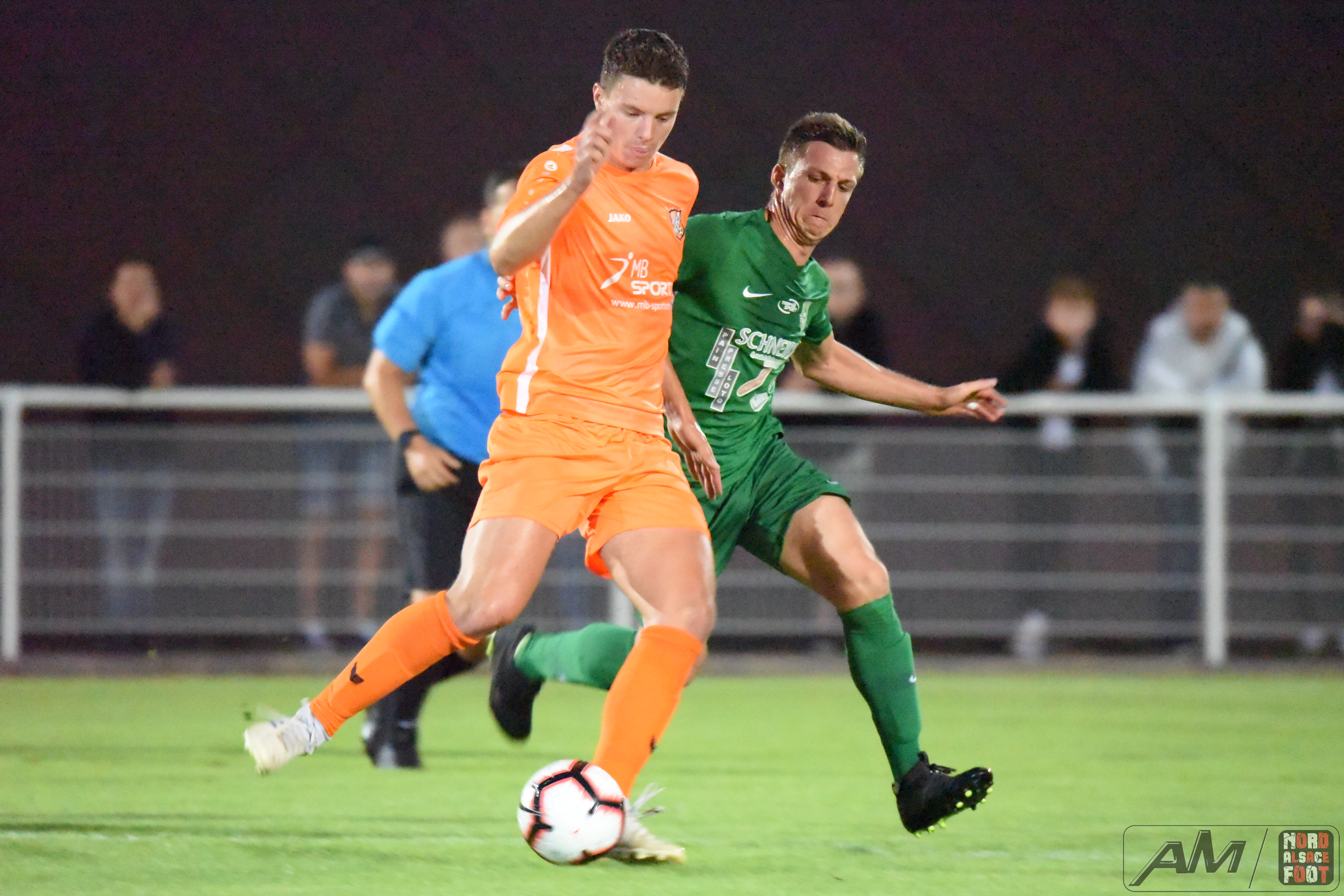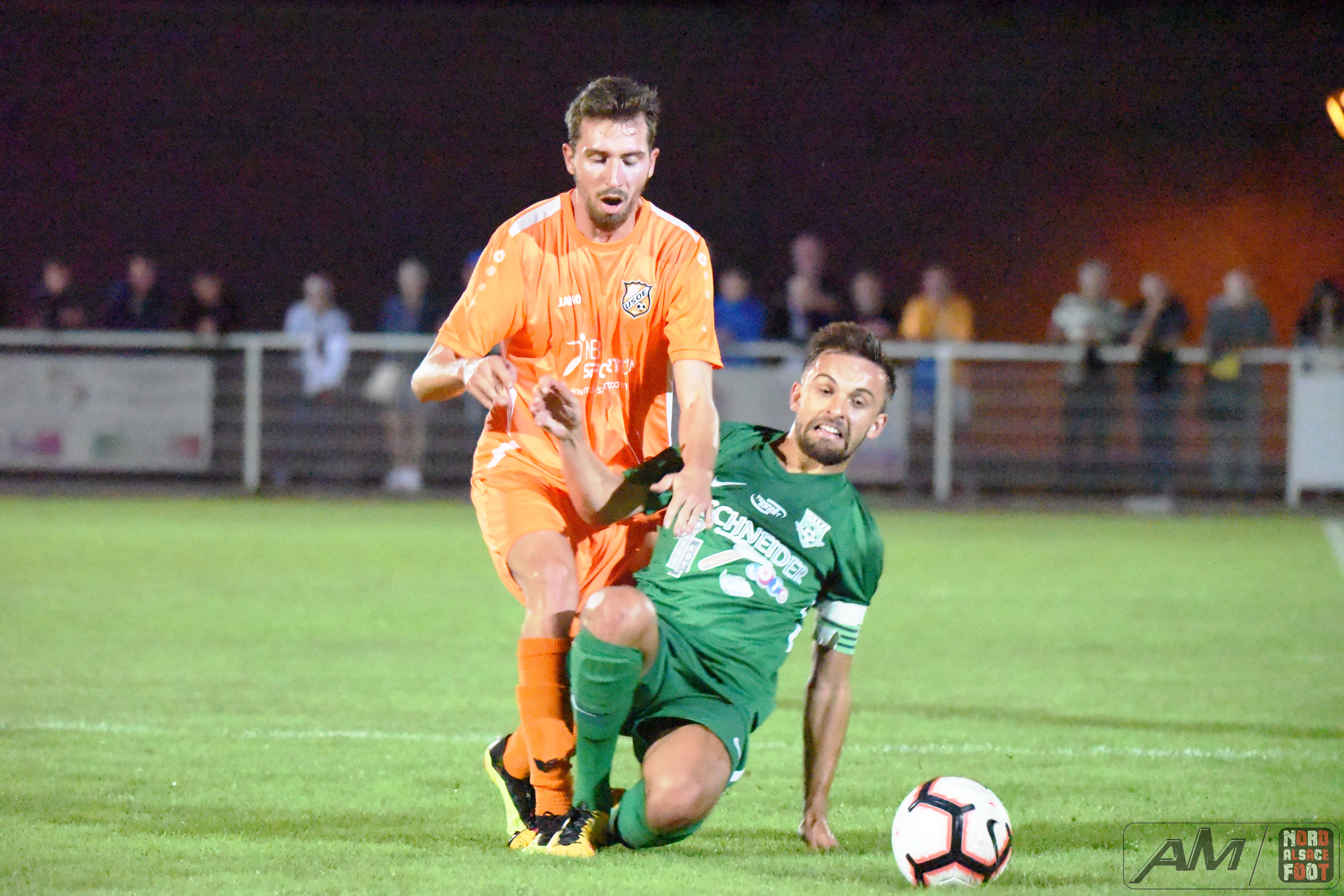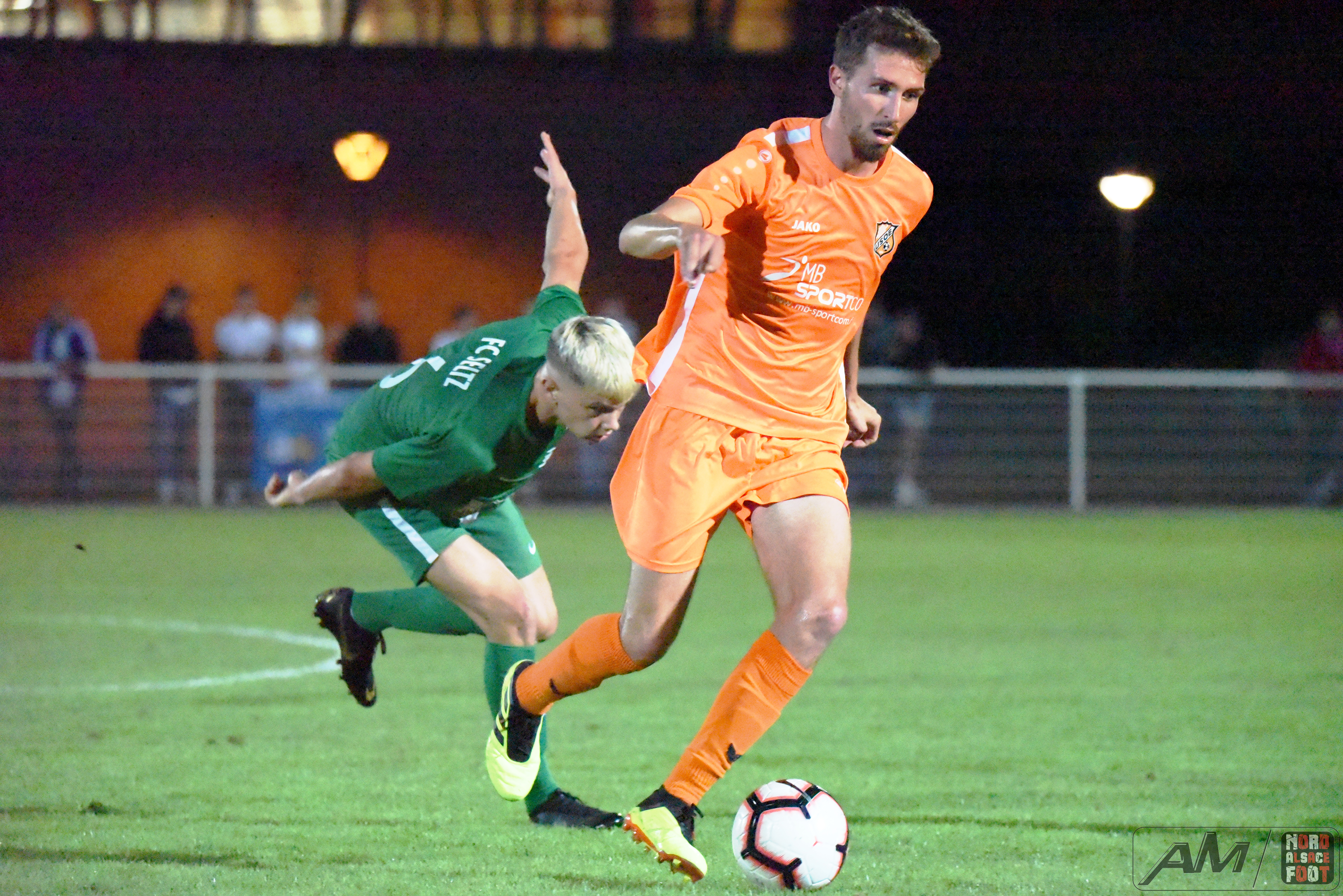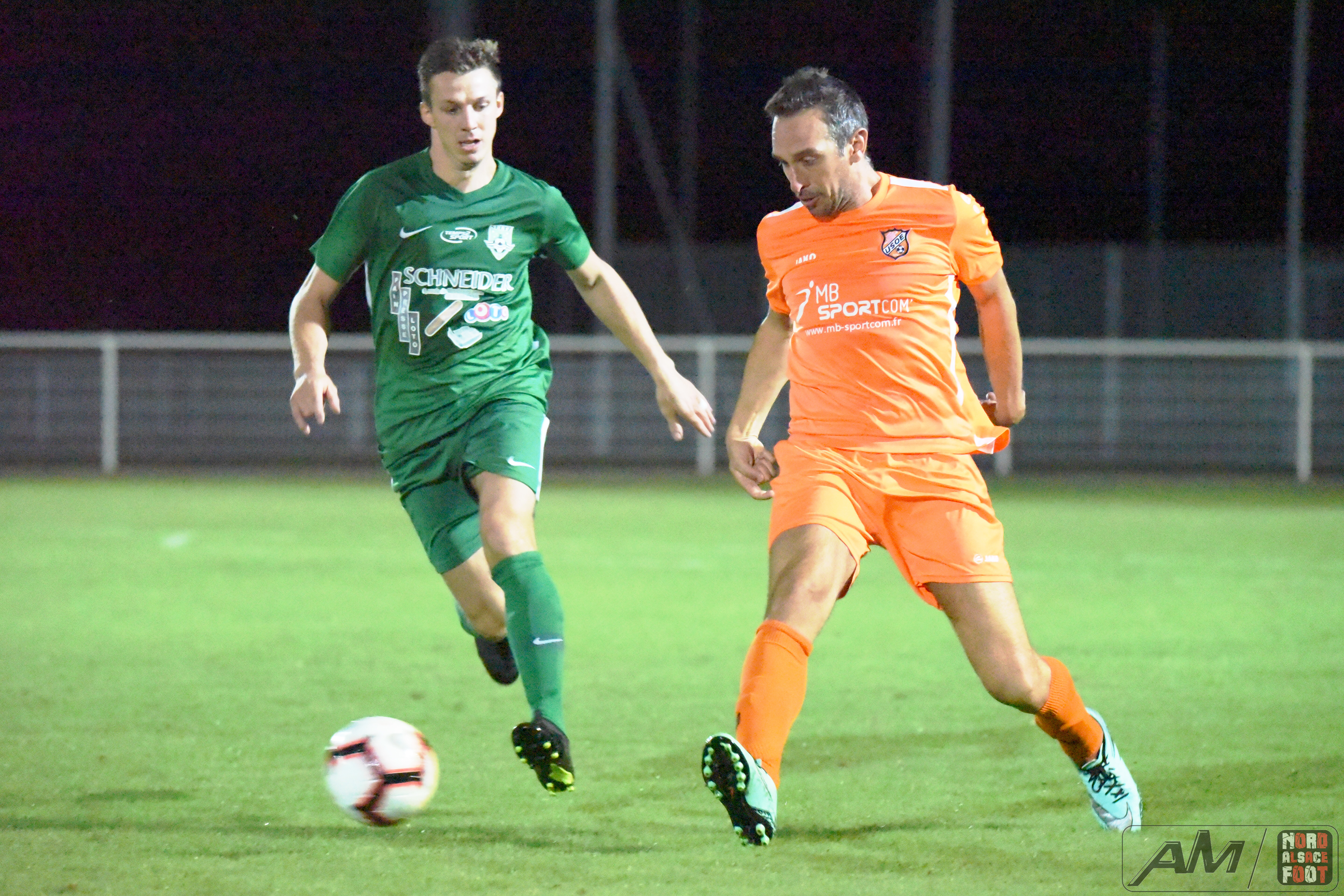 A l’occasion de la 11e journée de championnat en Régionale 2 (Gr E), le FC Seltz accueillait leurs voisins de l’US Oberlauterbach pour un derby aller que les deux équipes se devaient de gagner, non seulement pour la suprématie locale mais aussi pour prendre des points salutaires pour envisager la poursuite du championnat avec plus de sérénité. Après une première période se soldant par un court avantage en faveur des visiteurs grâce à une réalisation signée Zeidler Geoffrey (15e), il fallut attendre les ultimes instants du second acte pour voir le score évoluer en faveur des “Oranges” grâce à l’opportunisme de Léo Renckert (88e) et grâce à un coup de boule magistral de Jonathan Renckert (90e), ce qui permit finalement aux visiteurs de s’adjuger une victoire au combien importante les faisant pointer dans la première moitié de tableau à l’issue de cette journée. Retrouvez quelques images de cette rencontre et, pour en apprécier le contenu, veuillez cliquer sur l’une d’entre-elles pour afficher le diaporama.