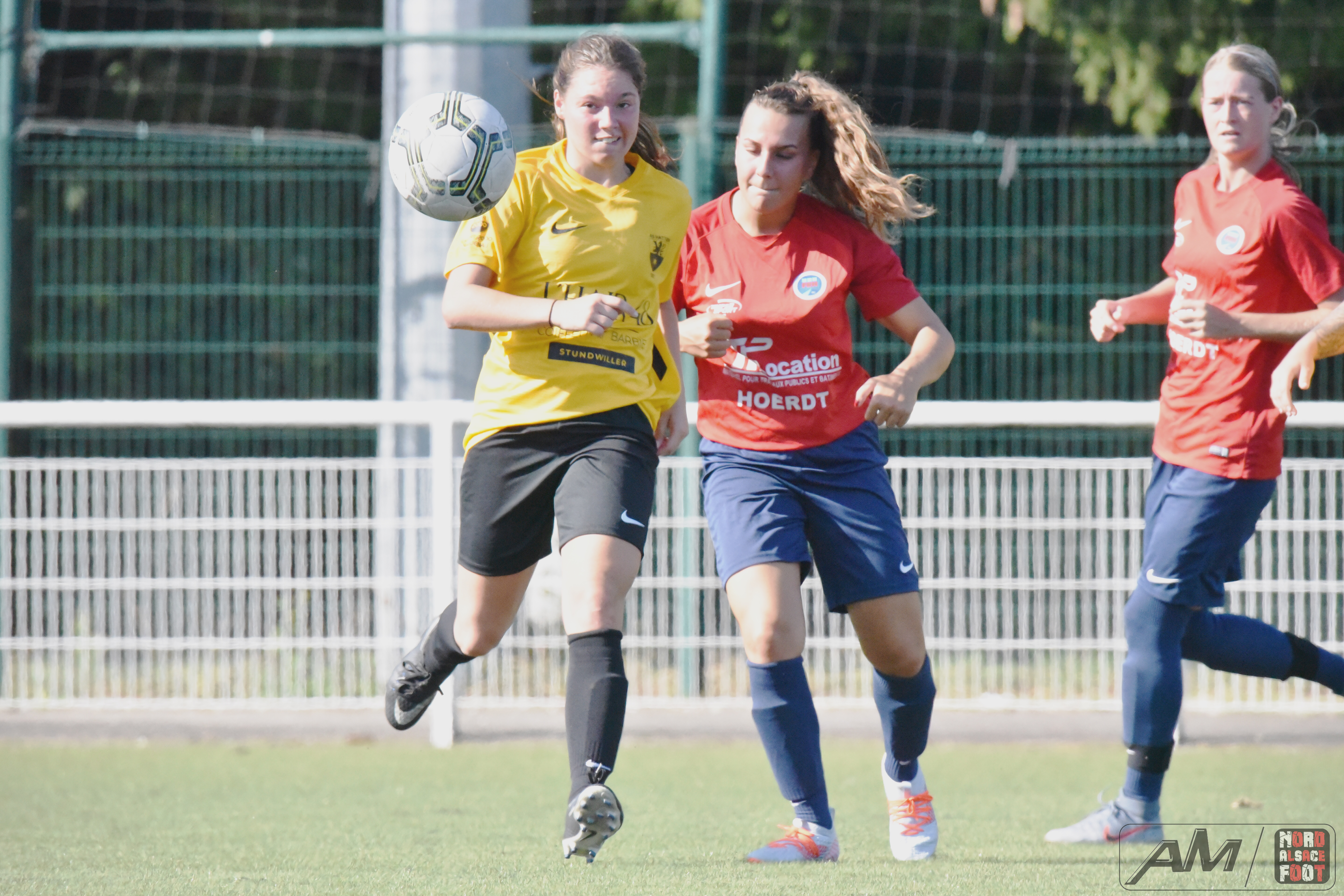 A l’occasion du premier tour de la Coupe de France Féminine, l’AS Hatten F (District 1) accueillait le FCSR Haguenau (District 1) pour une rencontre que les protégées de Study Quentin comptait remporter face à des adversaires à leur hauteur, les deux formations évoluants dans la même division cette saison. Après une première période se soldant par un court avantage en faveur des visiteuses, les jaunes et noires allaient égaliser à l’entame du second acte avant de céder à deux reprises au cours de la dernière demi-heure de jeu, ce qui permit au FCSR Haguenau F de s’adjuger un ticket pour le tour suivant en dominant leurs hôtesses sur le score de 1-3! Retrouvez quelques images de cette rencontre et, pour en apprécier le contenu, veuillez cliquer sur l’une d’entre-elles pour afficher le diaporama.