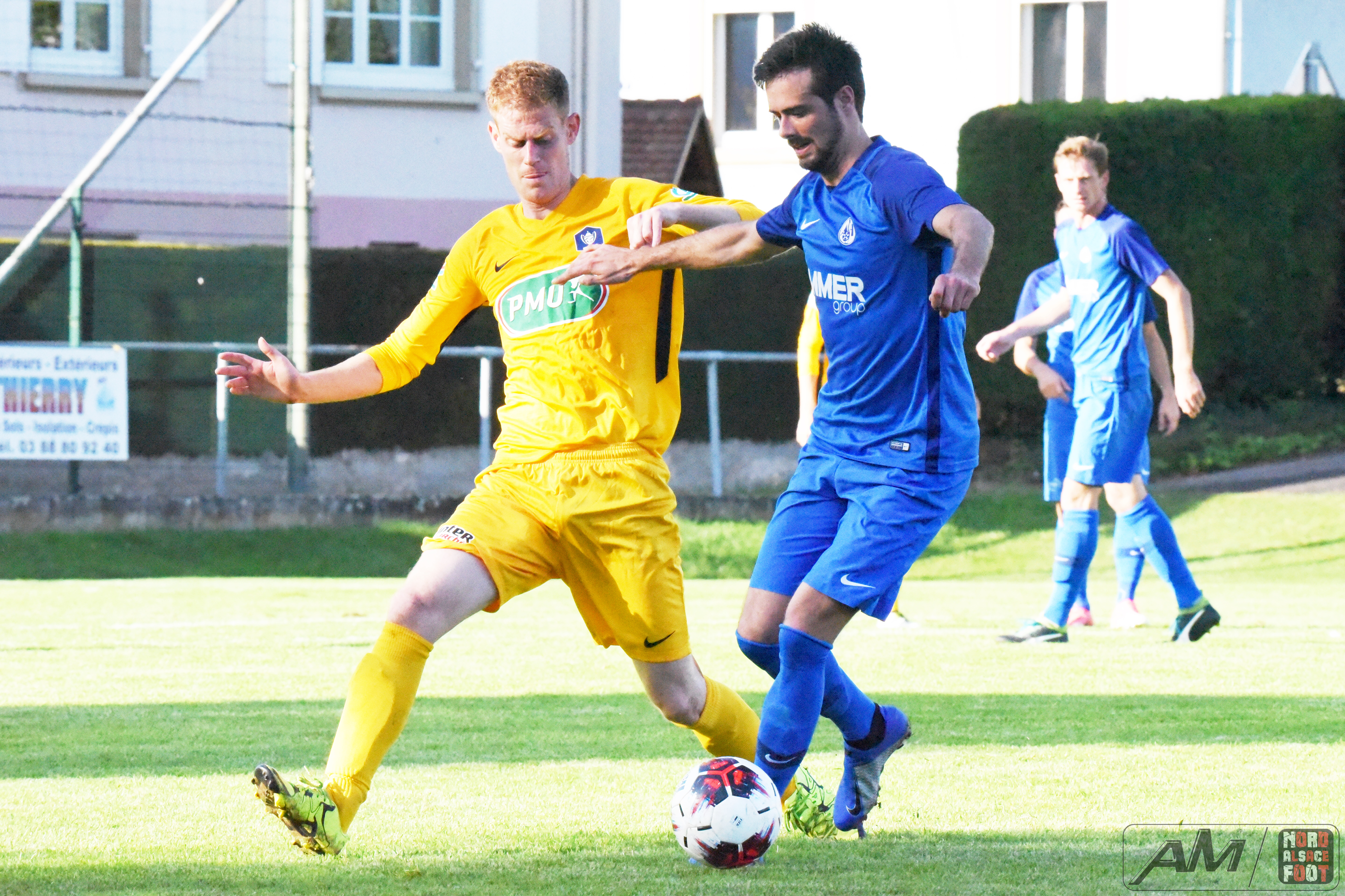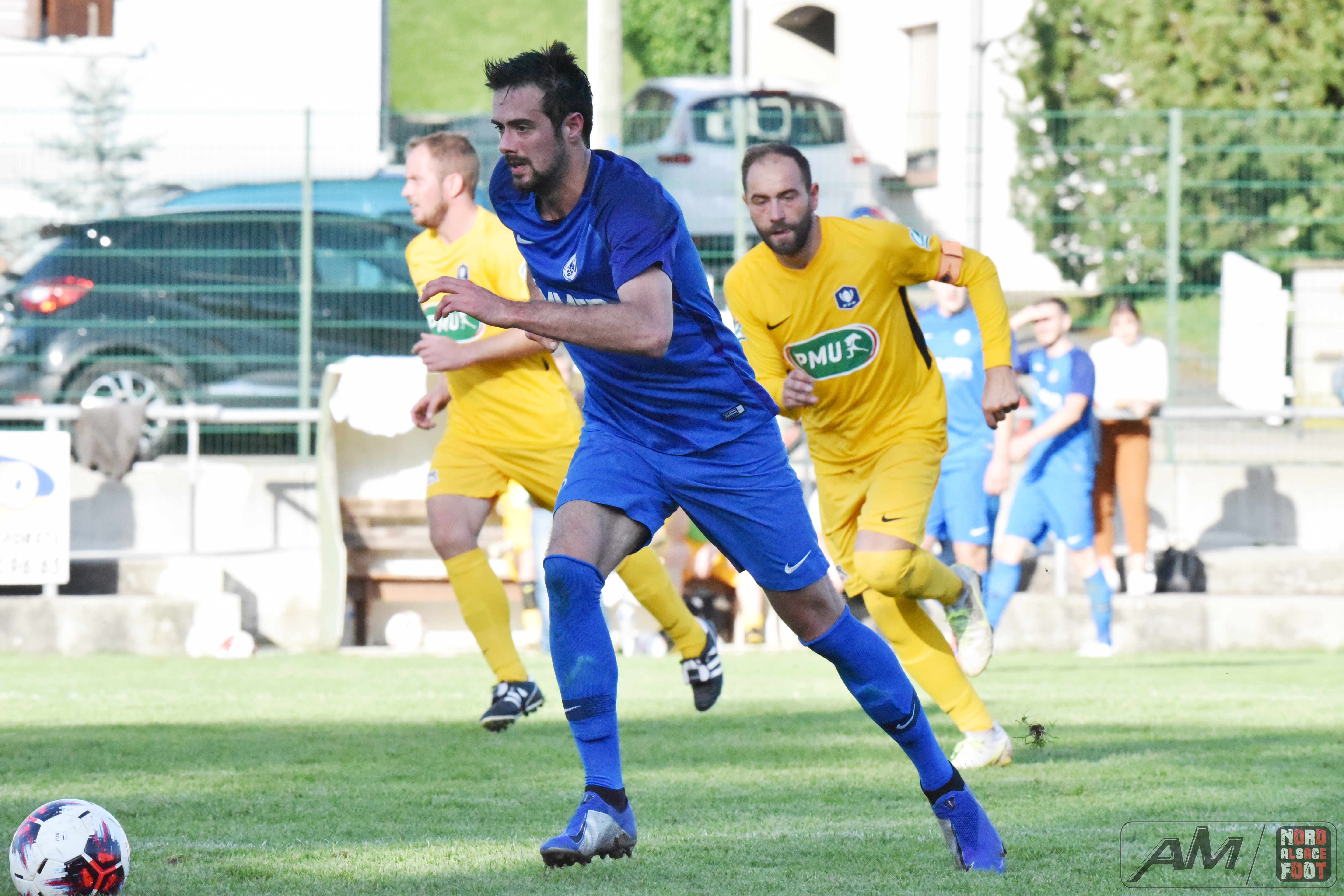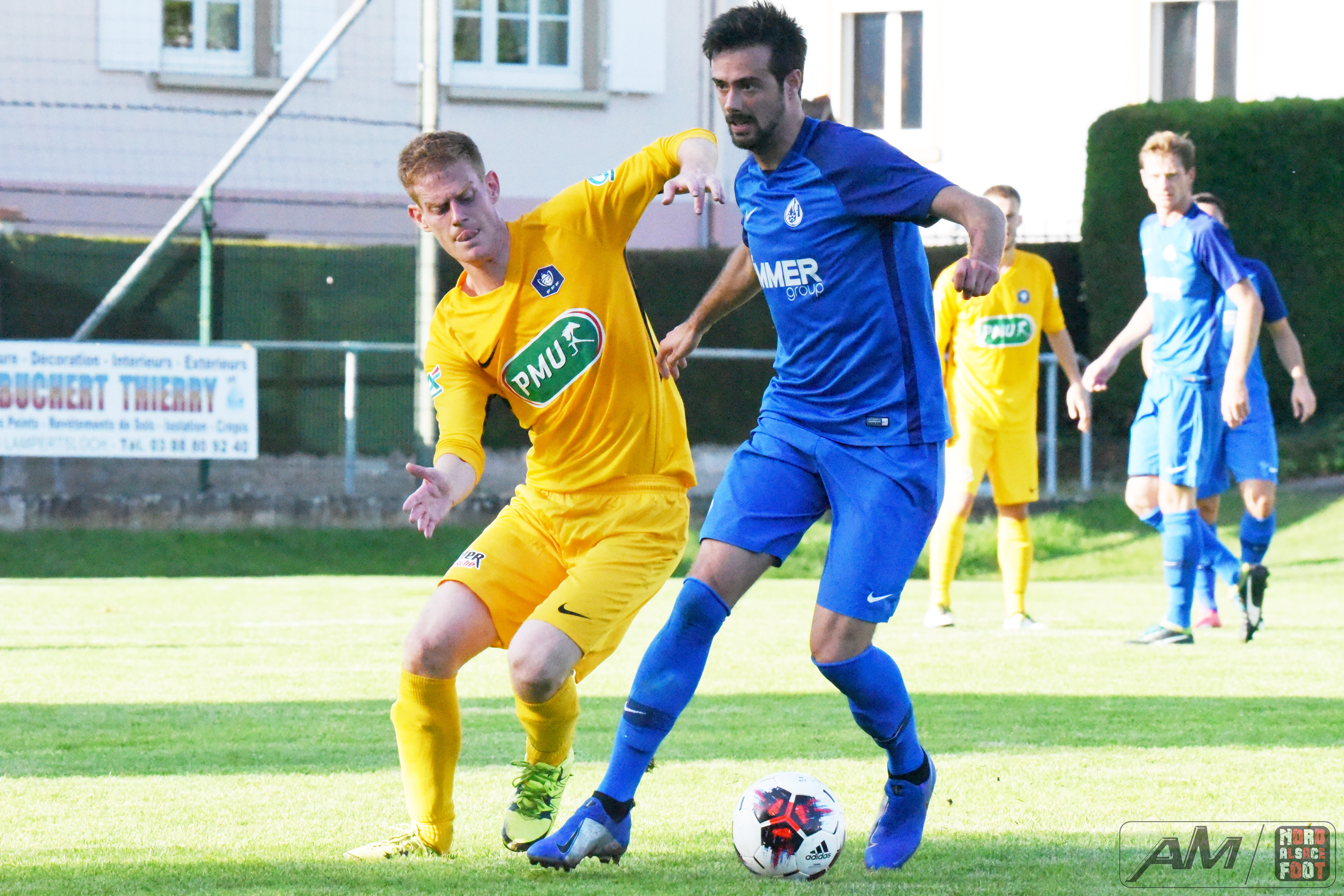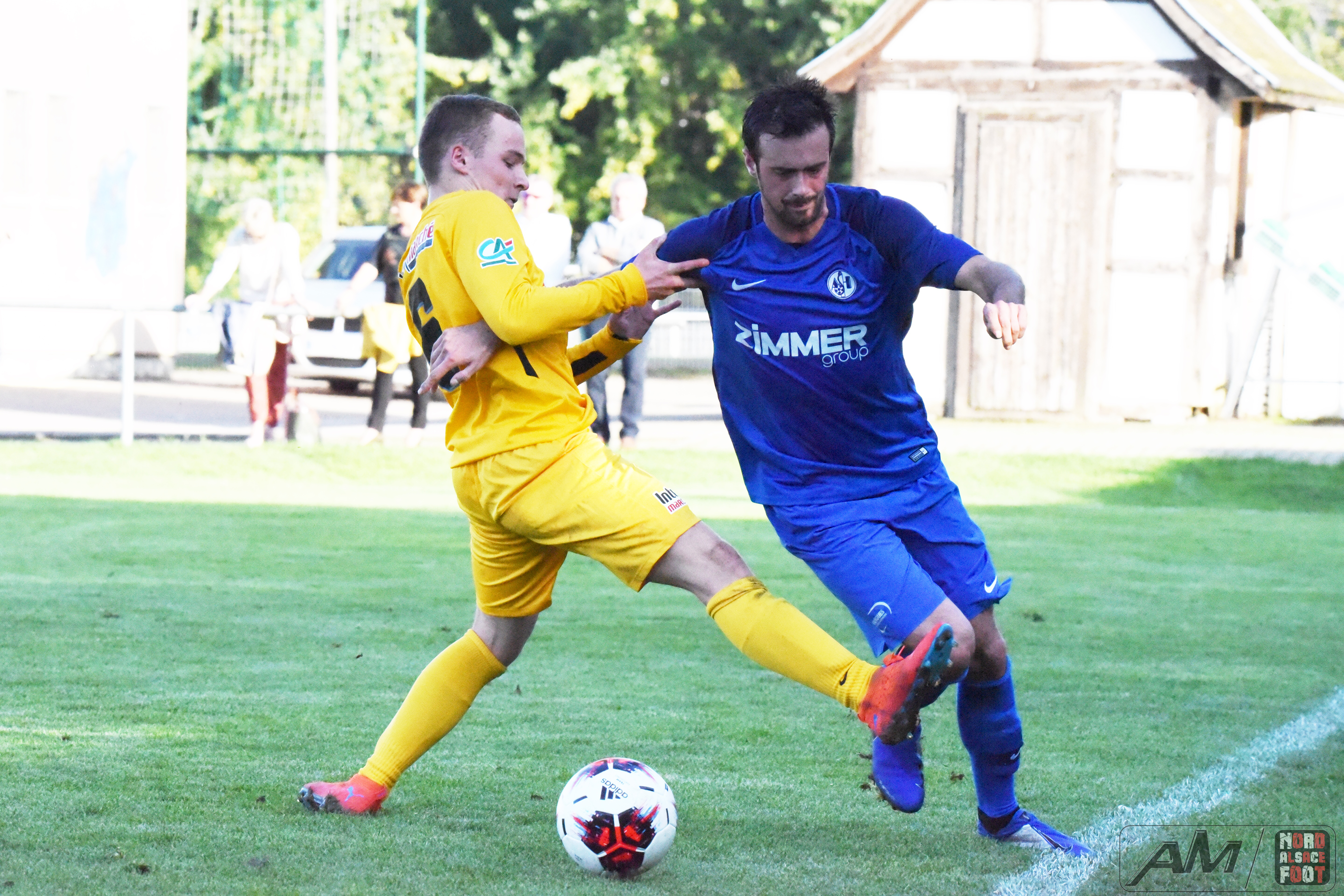 A l’occasion du second tour de la Coupe Grand Est, le FC Soultz/s/Forêt/Kutzenhausen accueillait l’AS Hoerdt pour une rencontre équilibrée sur le papier, les locaux occupant la place de lanterne rouge dans le Groupe L et les visiteurs occupant la place de lanterne rouge du Groupe M. Après une première période se soldant par un court avantage en faveur des visiteurs grâce à une réalisation signée Lapp Quentin (26e), il fallut attendre l’entame du dernier quart d’heure de jeu pour voir le score évoluer en faveur des bleus grâce à une réalisation inscrite par Lambert Cyrille, les Hoerdtois gérant ensuite leur avantage jusqu’au coup de sifflet final, ce qui leur permit de se qualifier aisément sur ce score de 0-2! Retrouvez, ci-dessous, quelques photos de la rencontre et, pour en apprécier le contenu, veuillez cliquer sur l’une d’entre-elles pour afficher le diaporama.