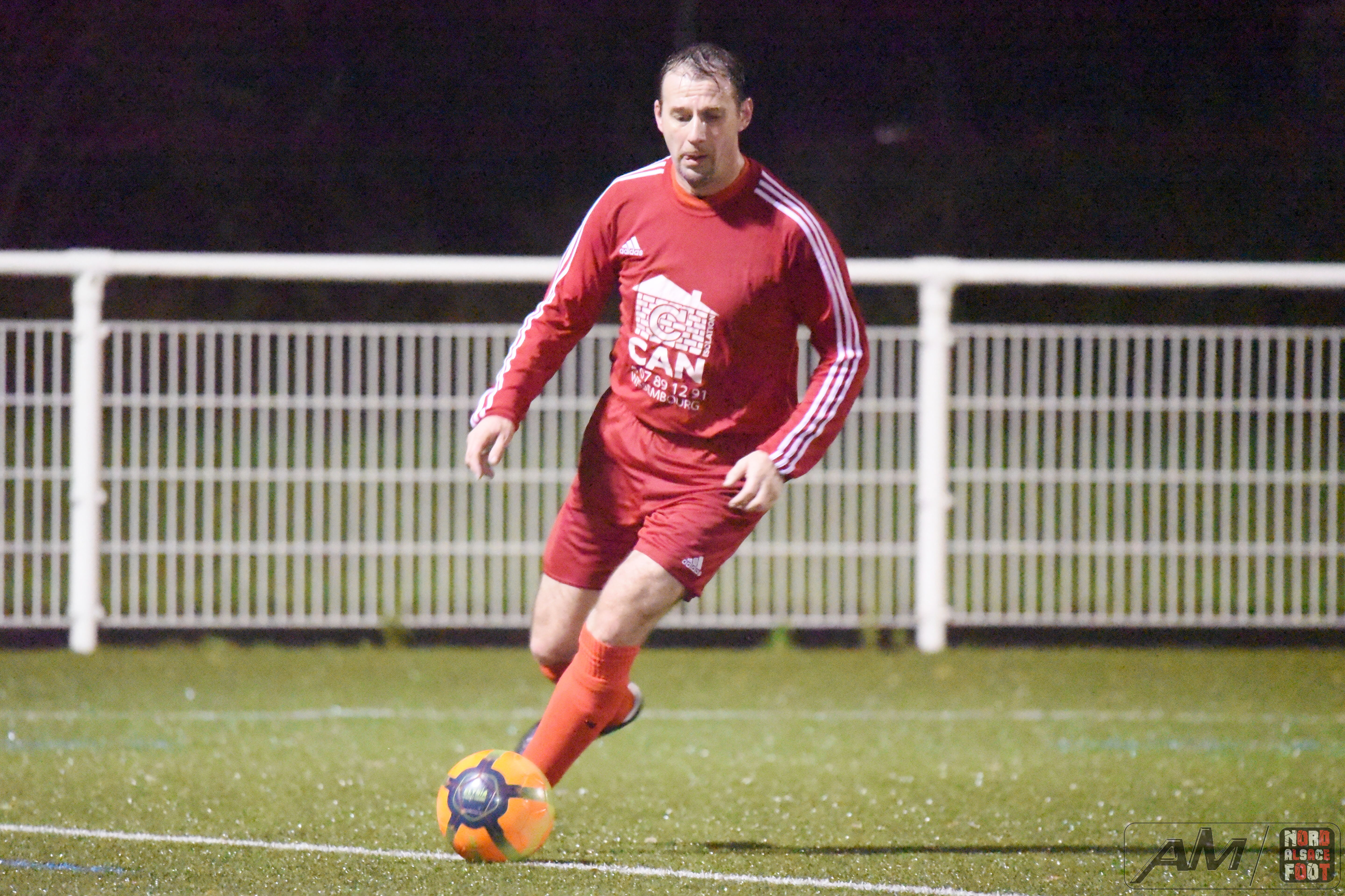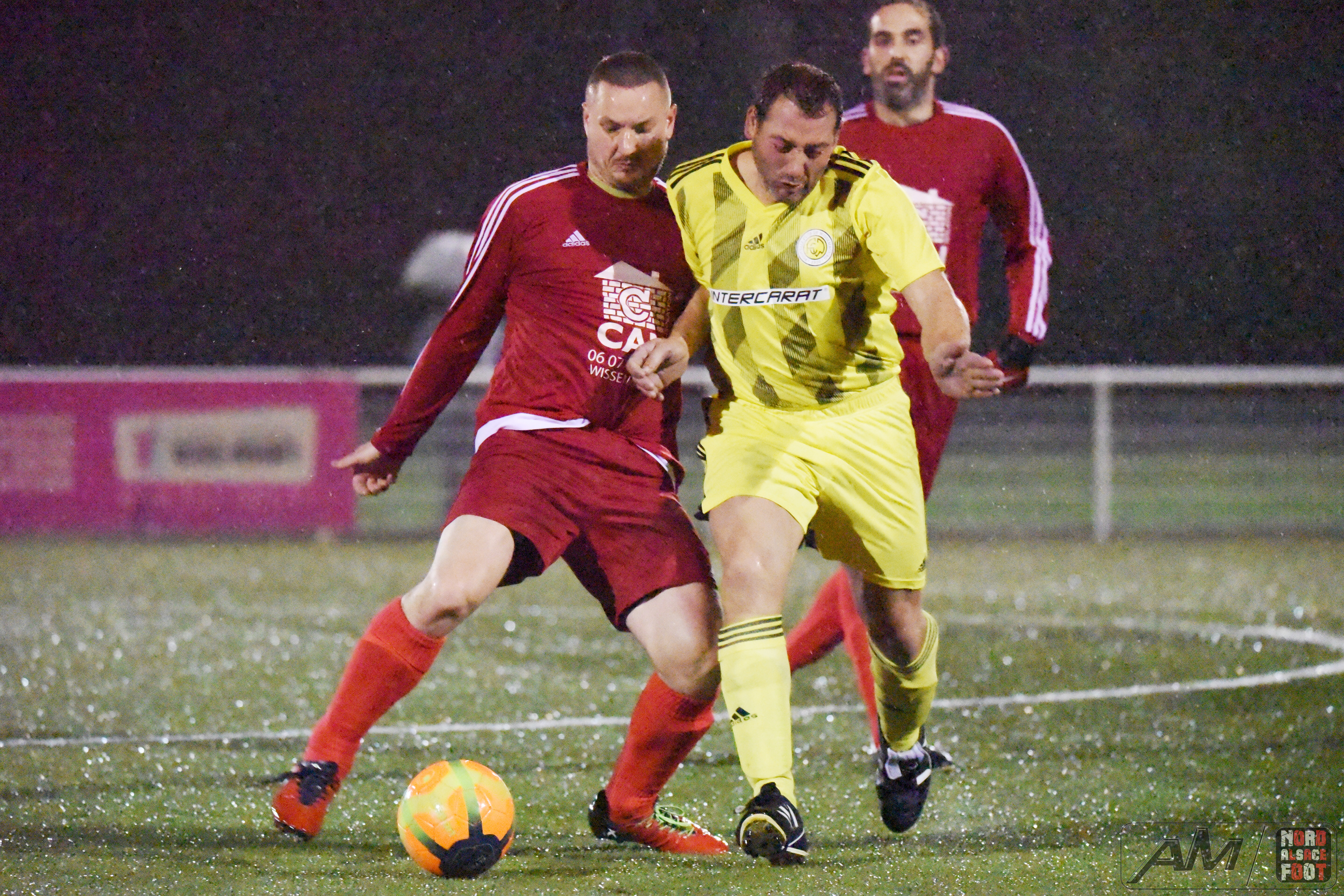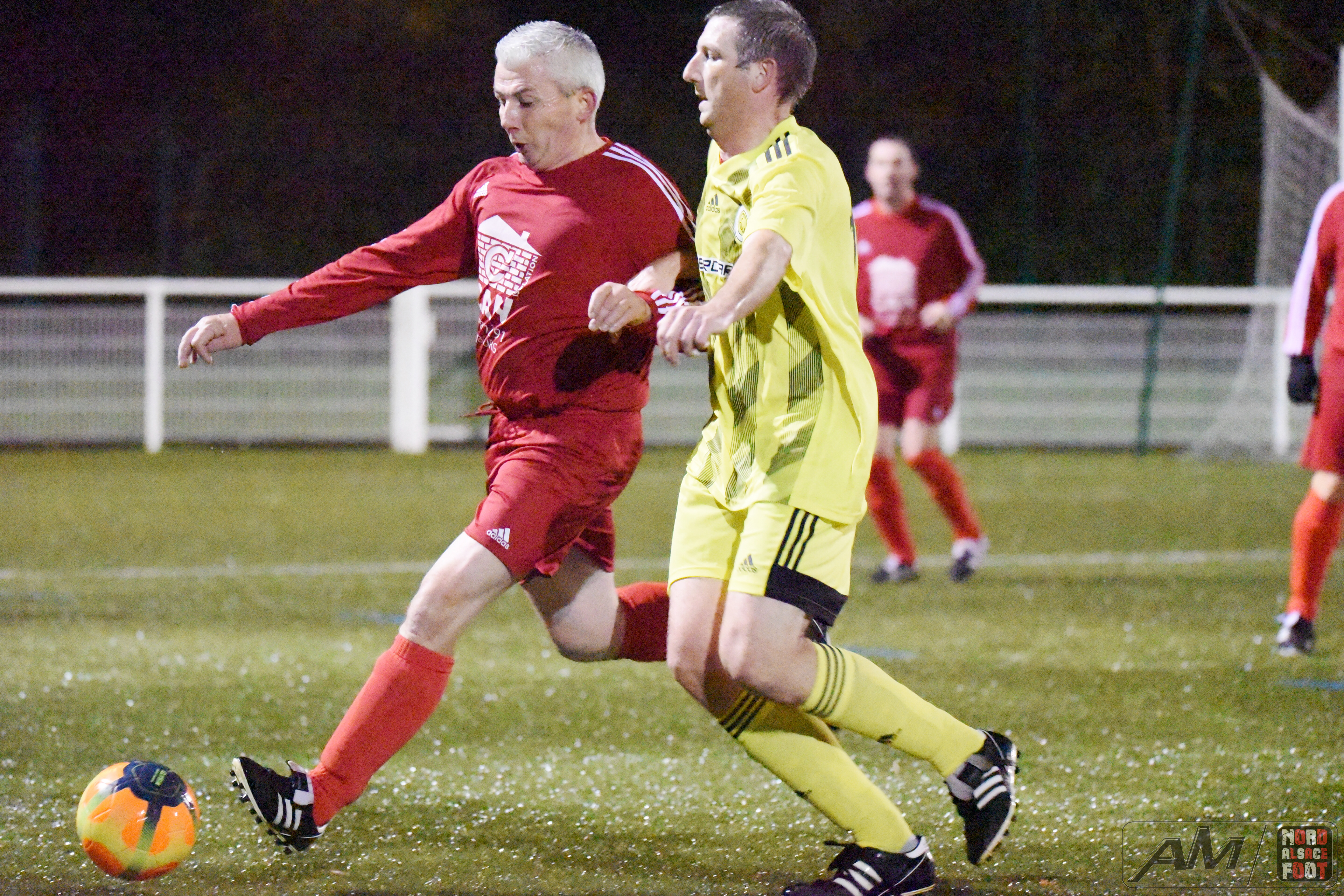 A l’occasion d’un match en retard comptant pour la 5e journée de championnat chez les Vétérans (Gr D), l’entente Wissembourg/Ewans 51 accueillait l’entente Riedseltz/Erhors 51 pour une rencontre pouvant permettre aux visiteurs de s’emparer de la deuxième place au classement en faveur d’une victoire ce jour, et ce, face à des adversaires voulant demeurer sur une bonne dynamique suite à leur victoire enregistrée il y a deux semaines face à l’entente Schoenenbourg/Memmelshoffen/Esmssk 51 (1-3). Après une première période se soldant par un court avantage en faveur des rouges grâce à un doublé signé Frank Olivier (11e et 26e) contre un but inscrit par Hoff Vincent (12e) pour les locaux, ces derniers allaient parvenir à égaliser suite à un coup franc direct de Gleizes Gaël (55e) avant de voir les rouges prendre définitivement l’avantage à la 63e minute de jeu grâce à Boubrik Farid. Retrouvez quelques images de cette rencontre et, pour en apprécier le contenu, veuillez cliquer sur l’une d’entre-elles pour afficher le diaporama.