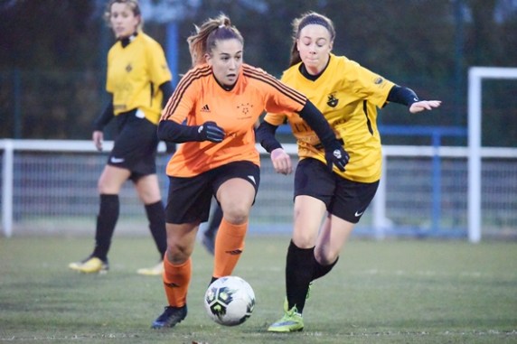 De retour sur la pelouse, les deux formations étaient parées pour le coup d’envoi du second acte avec, dès la 46e minute de jeu, une première action visiteuse se développant sur la droite par l’intermédiaire de Da Silva Aurélie, la meneuse de jeu déboulant dans le couloir avant de ponctuer sa course par un centre en direction du second poteau à hauteur duquel Kayser Célie enleva le ballon des poings en étant relayé par l’une de ses défenseuses. Suite au renvoi défensif précédent, les débats du milieu de terrain tournèrent court puisque les oranges et noires allaient rapidement parvenir à s’accaparer le ballon avant de lancer un assaut dans l’axe par l’intermédiaire de Kopp Mégane, cette dernière se frayant un chemin dans la masse avant de se faire reprendre irrégulièrement par Ouaali Rania à l’extrême limite de la surface de réparation, ce qui occasionna un coup franc que Da Silva Aurélie se chargea de botter au-dessus d’un mur de quatre joueuses et directement au-dessus du but adverse, on jouait la 47e minute de jeu. Consécutivement au renvoi aux 5.5m précédent, les jaunes et noires purent enfin ressortir de leurs derniers retranchements grâce à cette réception du cuir dans l’axe de Vermon Britany, l’attaquante le remontant ensuite sur plusieurs mètres avant de répondre à l’appel en profondeur sur la droite de Ahrens Cécilia mais l’ailière se fit devancer par deux défenseuses, l’une d’entre-elles faisant ensuite transiter le ballon vers sa gardienne afin qu’elle dégage le ballon à hâte sur le côté gauche et directement dans les pieds de Wurth Méline qui, des 25m, tenta sa chance d’une frappe étant contrée puis renvoyée par une défenseuse depuis la surface de réparation, on jouait la 48e minute de jeu. Quadrillant parfaitement le terrain, les protégées de Rinckel Thibaud n’allaient pas tarder à mettre le pied sur le ballon par l’intermédiaire de Vermon Britany, l’attaquante se prenant le temps de lever la tête afin de distribuer le ballon en profondeur dans l’axe en faveur d’Ahrens Cécilia, cette dernière s’emmenant le ballon jusqu’aux 20m desquels elle décocha une frappe passant finalement au-dessus du but de Girard Lise, on jouait la 49e minute de jeu. Dans la foulée de l’exécution du renvoi aux 5.5m précédent, les débats allaient se rééquilibrer dans l’entre-jeu pendant quelques minutes, le temps nécessaire aux visiteuses pour ressortir vainqueurs des duels grâce notamment à Stoeffler Margaux, l’ailière s’avançant le ballon sur la droite avant de répondre parfaitement à l’appel en profondeur de Da Silva Aurélie, la meneuse de jeu débordant dans le couloir pour finalement la voir se heurter à Ortega Marie, cette dernière mettant tout en œuvre pour empêcher l’assaillante d’armer une frappe avant qu’une défenseuse ne fasse le métier en renvoyant le danger bien assez loin de son but, on jouait la 51e minute de jeu. Suite au renvoi défensif précédent, les débats s’orientèrent au milieu de terrain jusqu’à la 53e minute de jeu, moment choisi par les jaunes et noires pour remettre le pied sur le ballon grâce notamment à Eisele Léa, cette dernière étant contrainte de reculer sous la pression de Da Silva Aurélie, la meneuse de jeu visiteuse commettant ensuite un excès d’engagement sur son adversaire dans le rond central, ce qui occasionna un coup franc que Ruck Laura se chargea de botter en direction de l’entrée de l’entrée du rectangle pour Ahrens Cécilia qui, après être rentrée dans la surface de réparation, émit une frappe étant trop écrasée pour inquiéter la gardienne adverse. Consécutivement au dégagement de cette dernière, les deux équipes allaient se neutraliser dans l’entre-jeu pendant quelques minutes avant que les jaunes et noires ne soient en mesure de repartir à l’attaque dans l’axe grâce à cette interception du cuir de Vermon Britany précédant une passe sur la gauche en faveur d’Ahrens Cécilia, l’ailière s’engageant ensuite dans une longue chevauchée l’amenant à effacer plusieurs défenseuses avant qu’elle ne pénètre dans la surface de réparation afin d’y décocher une frappe heurtant le poteau droit, l’assaillante poursuivant son action pour finalement reprendre le cuir d’une frappe victorieuse laissant Girard Lise vissée sur ses appuis, on jouait la 57e minute de jeu, 1-0!