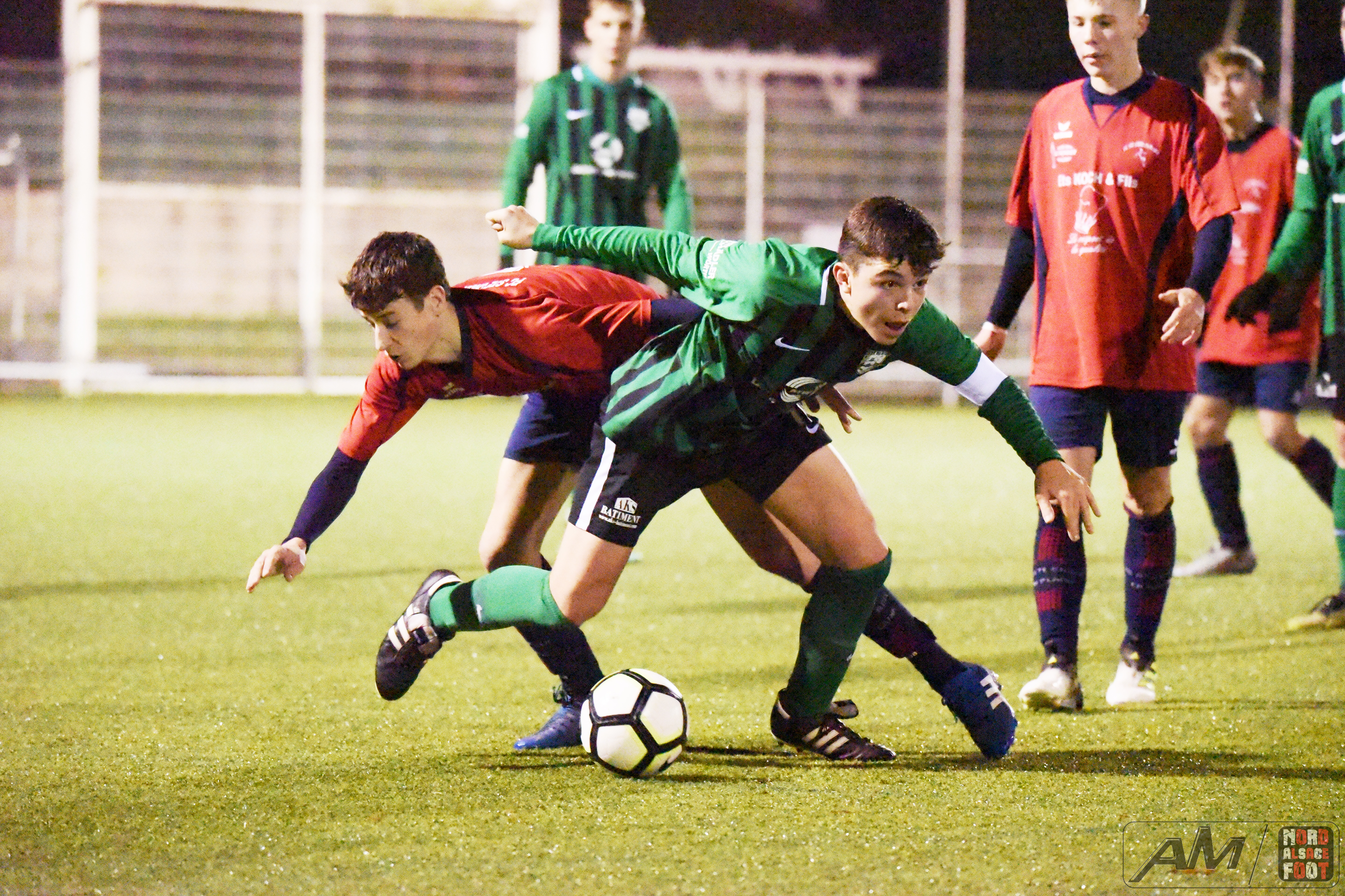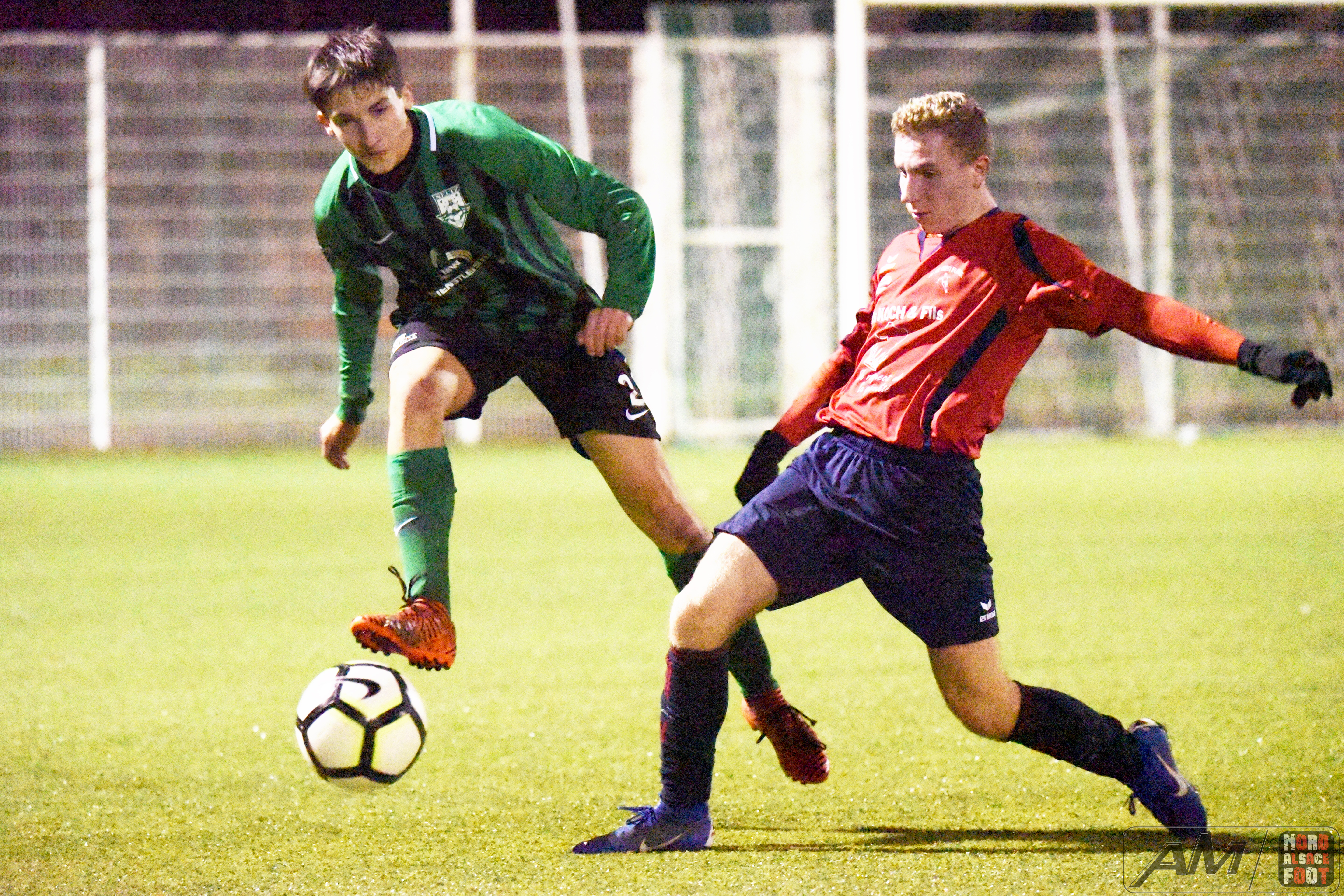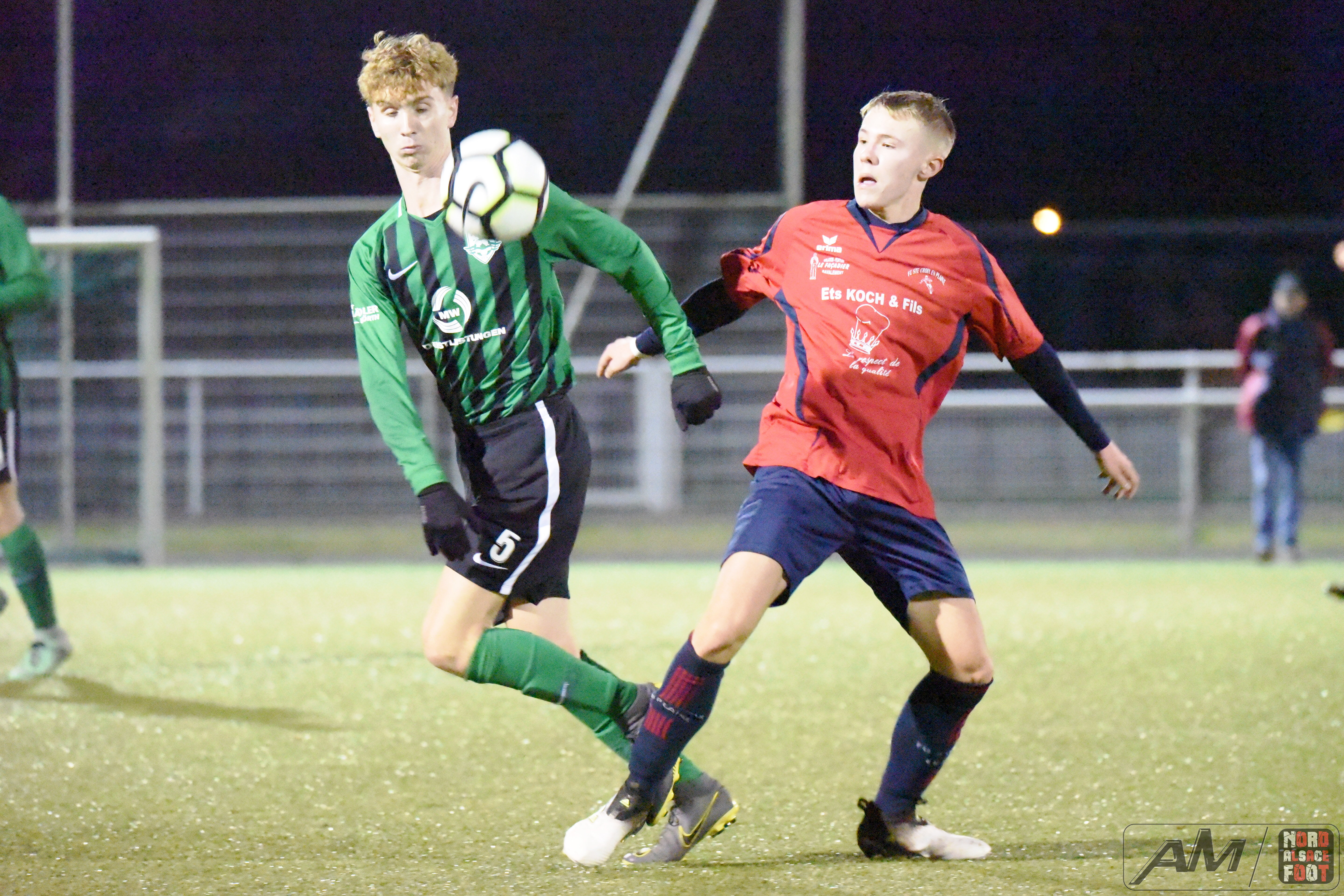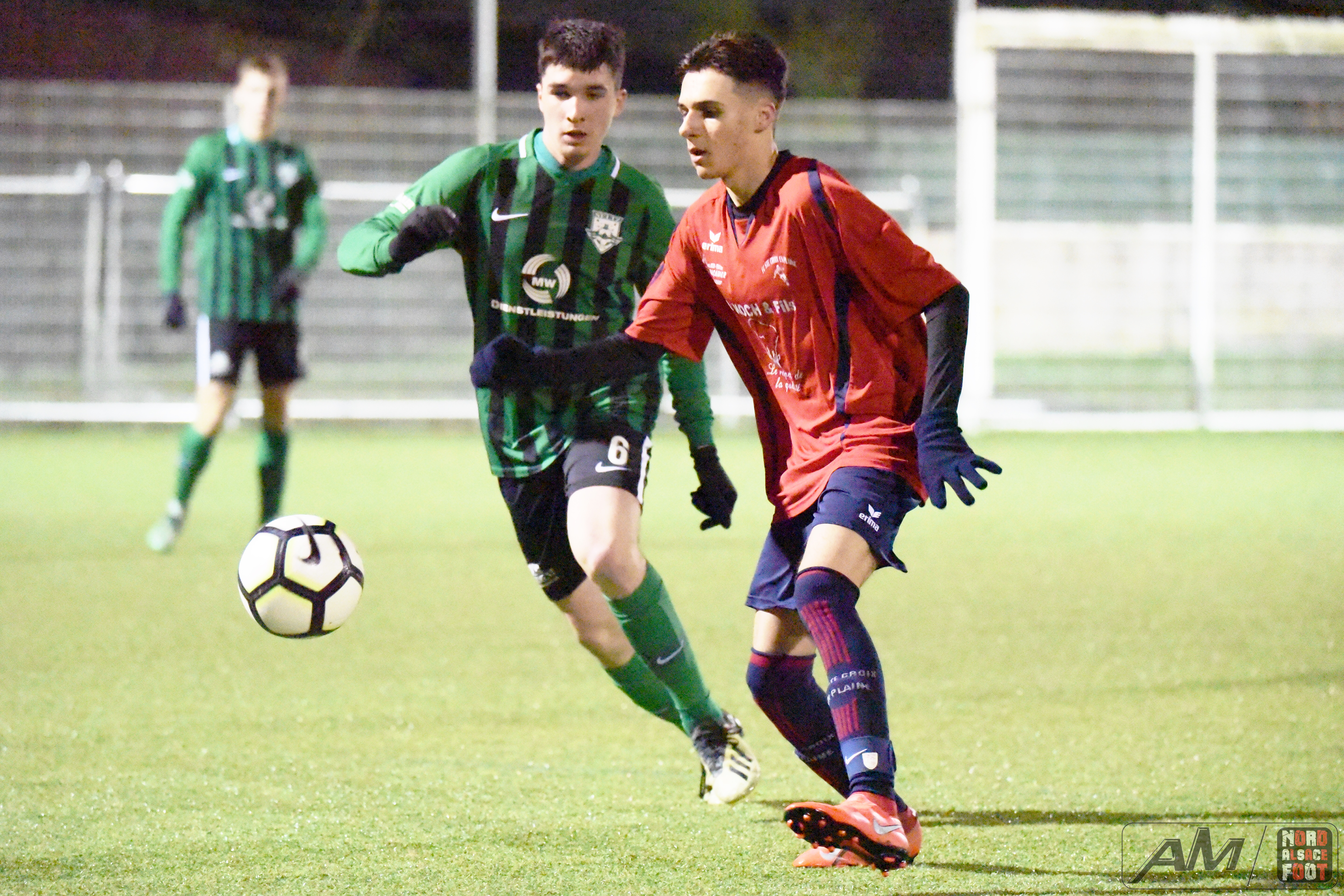 A l’occasion de la 11e journée de championnat en U18/Régionale 3 (Gr A), le FC Seltz accueillait le FC Sainte Croix en Plaine pour une rencontre pouvant permettre aux locaux de demeurer sur le trône de leader en faveur d’une victoire ce jour, et ce, face à des adversaires pouvant encore venir jouer les trouble fête en haut du classement en gagnant leurs matchs en retard. Après une première période se soldant par un confortable avantage en faveur des locaux grâce à un doublé de Lang Cédric (17e et 43e) et grâce à une réalisation signée Schmitt Jérémie (15e) contre un réduction du score signée Weisrock Robin (39e) pour les visiteurs, ces derniers allaient complètement craquer au cours du dernier quart d’heure en encaissant trois nouveaux buts grâce au doublé de Bretar Thomas (74e et 79e) et grâce à un but inscrit par Lercher Dario (86e), ce qui permit aux verts de finir cette phase aller sur une bonne note en s’imposant sur ce score de 6-1! Retrouvez quelques images de cette rencontre et, pour en apprécier le contenu, veuillez cliquer sur l’une d’entre-elles pour afficher le diaporama.