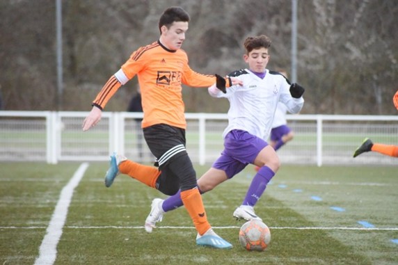A l’occasion d’un match en retard comptant pour la 5e journée de championnat chez les U15/District 1 (Groupe A), l’entente EVAN accueillait le FC Selestat avec la ferme intention de finir la phase aller avec une victoire dans la musette après un mois de novembre assez chaotique au cours duquel ils ont enregistrés qu’un seul point. C’est dans ce contexte que le coup d’envoi put être donné par Wiesen Julien avec, dès les premières minutes de jeu, une période de neutralisation entre les deux équipes se concluant par une première action visiteuse se développant sur la droite et au terme de laquelle l’arrière-garde locale allait être contrainte de concéder un premier corner, ce qui laissa place à un coup de pied de coin que Schmitt Lenny se chargea de botter de la droite en direction du point de penalty à hauteur duquel Weibel Mattéo effleura le ballon de la tête avant qu’un défenseur ne dévie malencontreusement le ballon vers son but mais par miracle, Erhard Elias ( ?) traînait sur la ligne de but afin de renvoyer le danger à la hâte sous la pression d’un assaillant, on jouait la 4e minute de jeu. Suite à cette première alerte sur le but local, les oranges allaient tout mettre en œuvre pour contrecarrer les initiatives adverses au milieu de terrain avant qu’une maladresse de leur part ne permette à Karabay Jiyan de s’emparer du cuir sur la droite avant de répondre à l’appel de Dugenne Emilio, ce dernier déboulant le long de la ligne de touche en ponctuant sa chevauchée par un centre en retrait en direction de Jung Jean-Baptiste qui, des 16m, arma une frappe étant déviée par une défenseur, Alves Enzo récupérant ensuite à droite du but afin d’armer une frappe forçant Witz Florian à la parade pour écarter le danger en corner pour une intervention laissant place à un coup de pied de coin que Jung Jean-Baptiste se chargea de botter de la gauche en direction du premier poteau devant lequel un défenseur fut le plus prompt pour renvoyer le danger bien assez loin de leur but, on jouait la 6e minute de jeu. Quadrillant parfaitement le terrain, les visiteurs n’eurent aucun mal à remettre le pied sur le ballon grâce notamment à l’interception du cuir de Ziani Hugo à hauteur des 35m précédant une passe en profondeur dans l’axe en faveur de Jung Jean-Baptiste, l’attaquant profitant ensuite de la petitesse du portier local pour décocher une frappe finissant au fond des filets, on jouait la 7e minute de jeu, 0-1! Consécutivement à l’engagement des protégés de Klein Maximilien, ces derniers allaient tenter de résister à leurs adversaires au milieu de terrain avant de devoir battre en retraite sous leur pression et, après avoir courbés l’échine pendant un court instant, ils purent procéder en contre par l’intermédiaire de Erhard Elias, le milieu offensif s’offrant une percée dans l’axe avant de répondre à l’appel sur sa droite de Dall’Agnol Thomas, l’attaquant ne se faisant pas prier pour décocher une frappe croisée des 16m passant finalement à gauche de la cible, on jouait la 9e minute de jeu. Alors qu’on atteignait progressivement le premier quart d’heure de jeu, les Selestadiens demeuraient à la manœuvre dans le camp adverse et, suite à une bonne combinaison sur la droite, Karabay Jiyan hérita du ballon dans l’axe avant de voir sa frappe être contrée par un défenseur, le cuir revenant sur la droite et directement dans les pieds de Dugenne Emilio, ce dernier n’hésitant pas à émettre un centre en direction du point de penalty pour la reprise de Muhr Adrien étant détournée en corner par un défenseur, ce qui laissa place à un coup de pied de coin que Jung Jean-Baptiste se chargea de botter rentrant de la gauche et il fallut l’intervention d’Erhard Elias sur sa ligne pour écarter le ballon de la tête en étant relayé par l’un de ses milieux de terrain, on jouait la 16e minute de jeu. Prenant leurs hôtes en étau dans leurs derniers 30m, les blancs et violets allaient dominer leur sujet en faisant tourner le ballon sur la largeur sans pour autant trouver une bonne ouverture que ce soit dans l’axe ou sur les ailes, ce qui permit enfin aux ententistes de reprendre le contrôle du cuir afin de mener un assaut sur la droite par l’intermédiaire de Mastio Cédric, le défenseur déboulant dans le couloir avant d’obtenir un corner face à Jester Pierrick, ce qui laissa place à un coup de pied de coin que Erhard Elias se chargea de botter en retrait de la droite en direction de l’entrée de la surface de réparation pour Zerr Lilian, le meneur de jeu s’emmêlant les crayons sous la pression d’un adversaire, l’arrière-garde visiteuse pouvant ensuite renvoyer le danger bien assez loin de sa zone d’inconfort, on jouait la 18e minute de jeu.