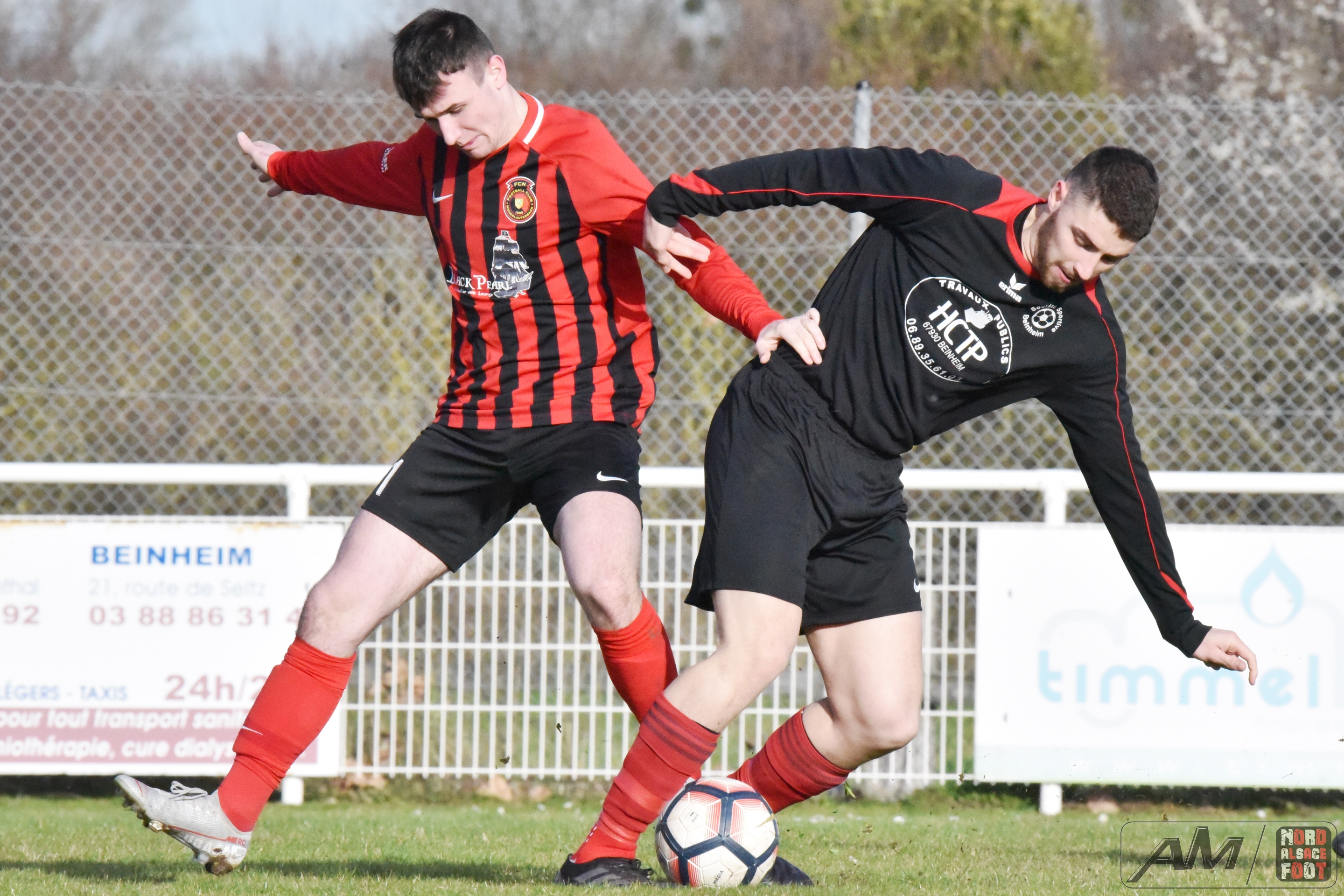 A l’occasion de la 19e journée de championnat en District 3 (Gr B), la SS Beinheim (3e) accueillait l’entente Niederlauterbach/N. (1er) avec la ferme intention de s’adjuger le trône de leader à l’issue de cette rencontre, et ce, face à des adversaires étant déterminés à prendre ses distances avec l’un de ses principal rival pour la montée. Après une première période se soldant par un court avantage en faveur des locaux grâce à des réalisations signées Dietenbeck Steeve (16e et 33e) contre un but signé Braun Jérôme (17e) pour les visiteurs, ces derniers allaient parvenir à égaliser à la 55e minute de jeu grâce à un but inscrit par Leroux Alexis avant que les deux formations ne se neutralisent jusqu’au coup de sifflet final. Retrouvez, ci-dessous, quelques images de cette rencontre et, pour en apprécier le contenu, veuillez cliquer sur l’une d’entre-elles pour afficher le diaporama.