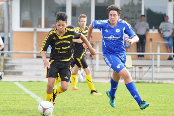 Les jeunes de l'AS Hoerdt (en bleu) recherchent de nouveaux partenaires de jeu - Photo NAF