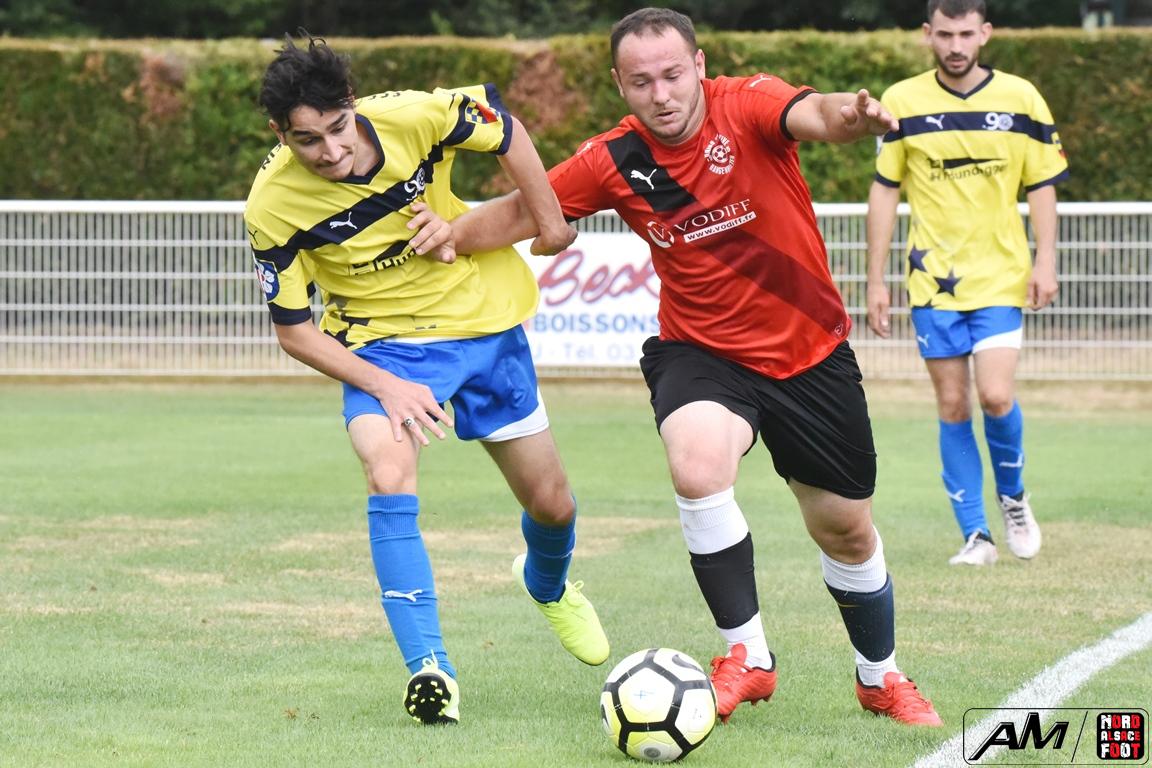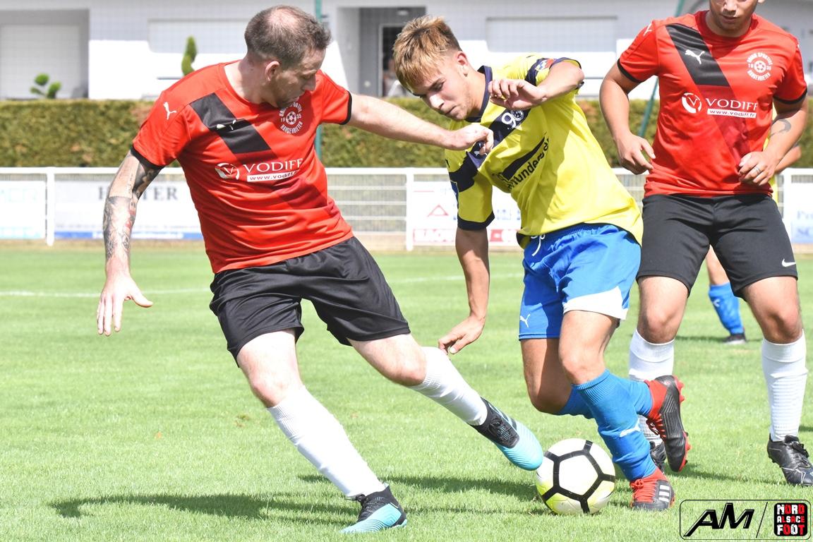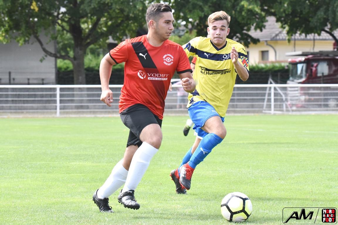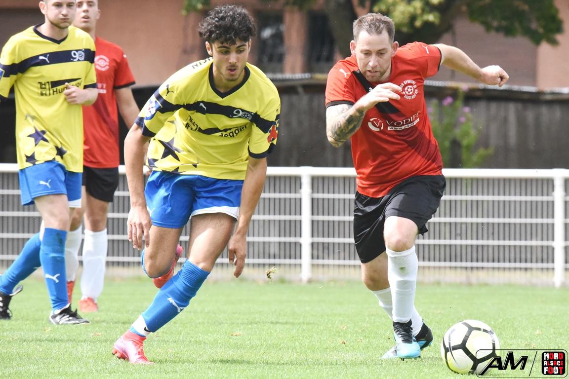 A l’occasion du match d’ouverture de la fête du foot organisé par le FCE Schirrhein, l’équipe 4 du club accueillait l’US Hangenbieten 2 avec la ferme intention de débuter leur préparation par une victoire. Après une première premier tiers-temps se concluant par un score nul et vierge, les visiteurs ouvrirent le score lors du second tiers-temps grâce à une réalisation signée Ouada Benjamin (35e) avant qu’Alexis Mauger ne permette aux locaux d’égaliser à cinq minutes du terme, les deux équipes finissant finalement par se quitter sur ce score de 1-1! Retrouvez, ci-dessous, quelques images de cette rencontre et, pour en apprécier le contenu, veuillez cliquer sur l’une d’entre-elles pour afficher le diaporama.