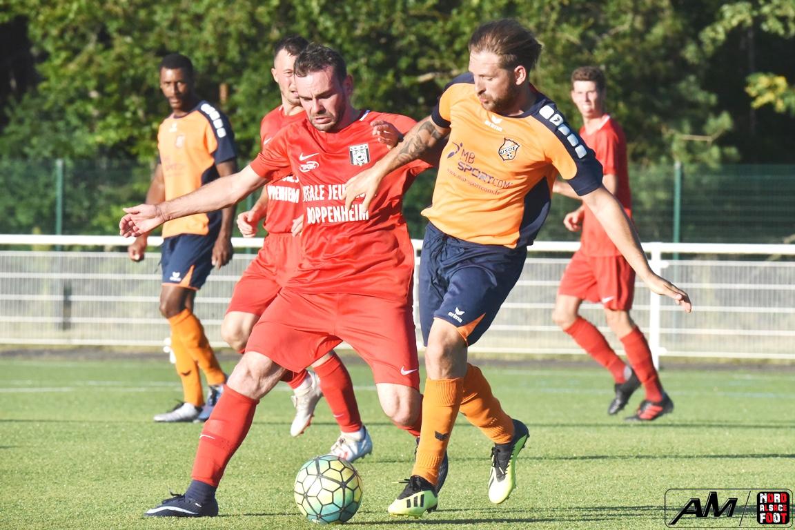A l’occasion de la troisième journée comptant pour le Foot en fête organisé par le FC Seltz, l’US Oberlauterbach 2 accueillait les SR Rountzenheim/A. avec la ferme intention de poursuivre sa préparation par une victoire, et ce, face à des adversaires cherchant à demeurer dans une spirale positive après leur large victoire décrochée dimanche dernier face à l’US Dalhunden (6-0). Après une première période se soldant par un score nul grâce à l’ouverture du score des “Oranges” signée Yoann Savy suivie d’une égalisation signée Sartorius Aurélien, les rouges allaient prendre définitivement l’avantage en seconde période grâce à un but signé Kientz François. Retrouvez, ci-dessous, quelques images de la première période et, pour en apprécier le contenu, veuillez cliquer sur l’une d’entre-elles pour afficher le diaporama.