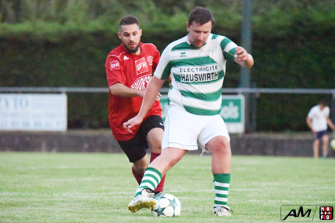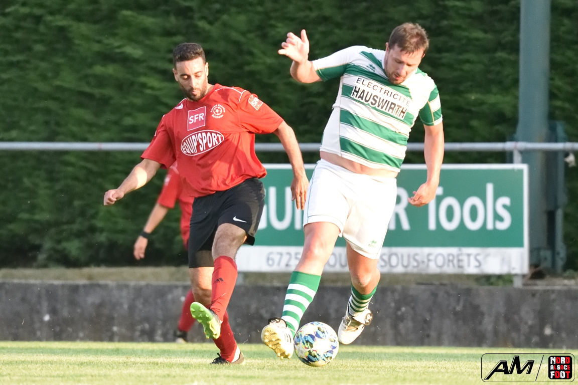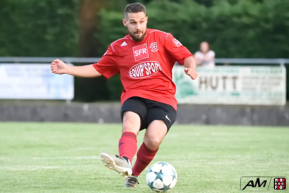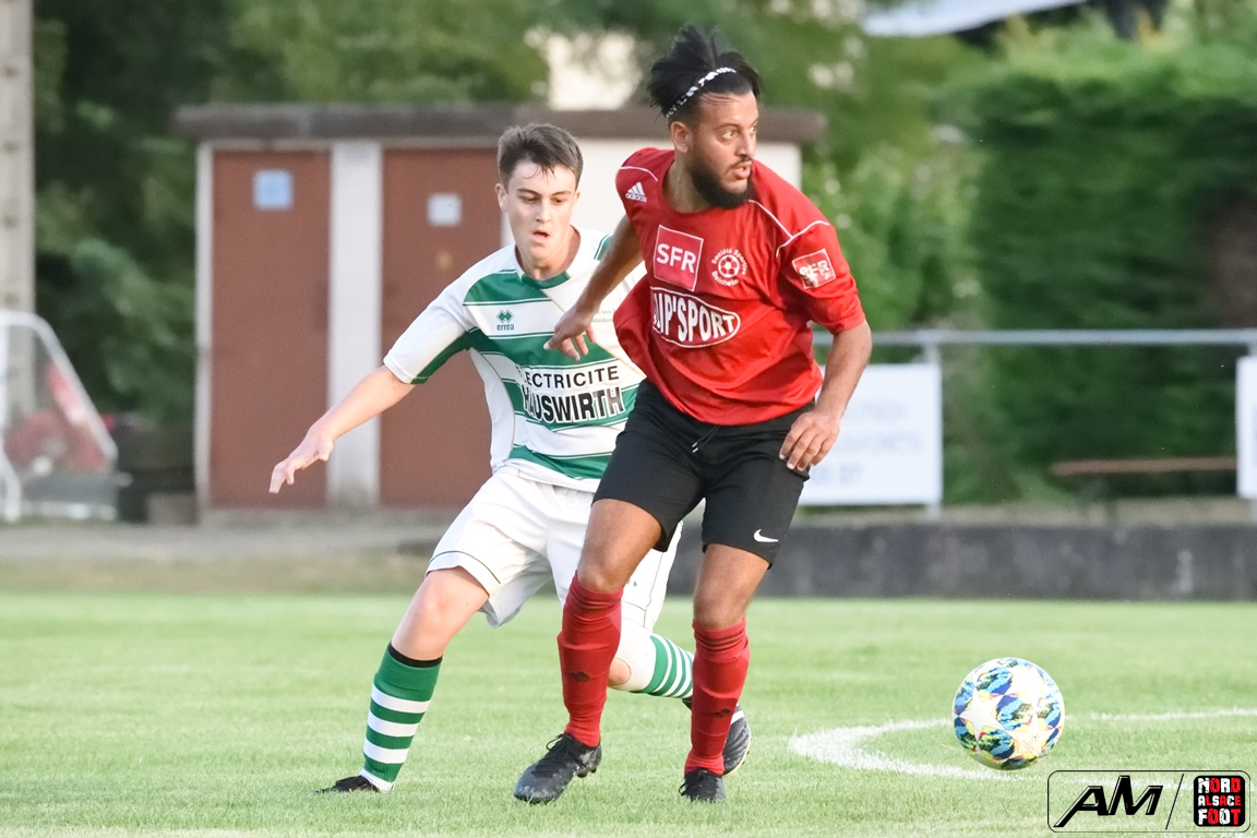 A l’occasion d’un match de préparation, les doublures du FC Soultz/s/Forêt/Kutz. accueillaient la SS Beinheim afin de tenter de travailler les premiers automatismes à un peu plus de trois semaines avant la reprise de la compétition, et ce, face à la troupe à Camolli Joël ayant à coeur de remettre le pied à l’étrier après sa lourde défaite concédée, le week-end dernier, face au Red Star Strasbourg (1-4). Après une première période se soldant par un court avantage en faveur des visiteurs grâce à des réalisations signées Hollaender Thomas (28e) et Beushausen John (42e) contre un but inscrit par Reeb Christophe (16e) pour les locaux, les rouges et noirs allaient un peu plus creuser l’écart au cours du second acte grâce à des buts signés Courdavault Florian (62e), Joël Camolli (64e et 67e) avant que les doublures soultzoises ne réduisent la marque grâce à Eyermann Jordan (81e) et, à l’entame des cinq dernières minutes de jeu, Bouchber Abdallah apporta sa pierre à l’édifice afin de permettre à son équipe de s’imposer sur ce score de 2-6! Retrouvez, ci-dessous, quelques images de cette rencontre et, pour en apprécier le contenu, veuillez cliquer sur l’une d’entre-elles pour afficher le diaporama.