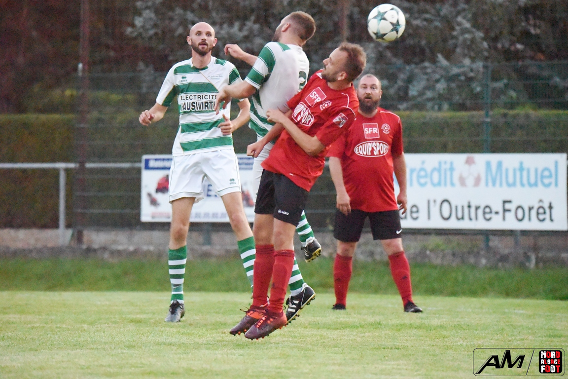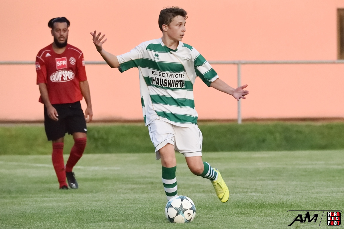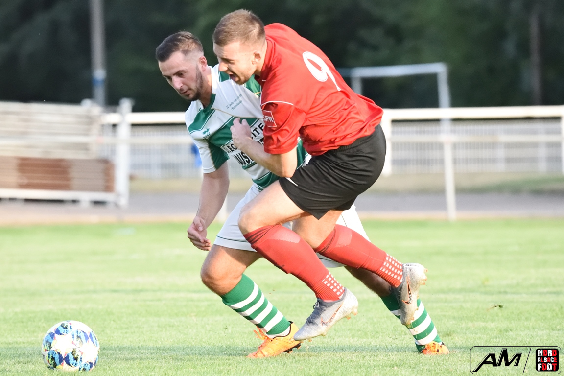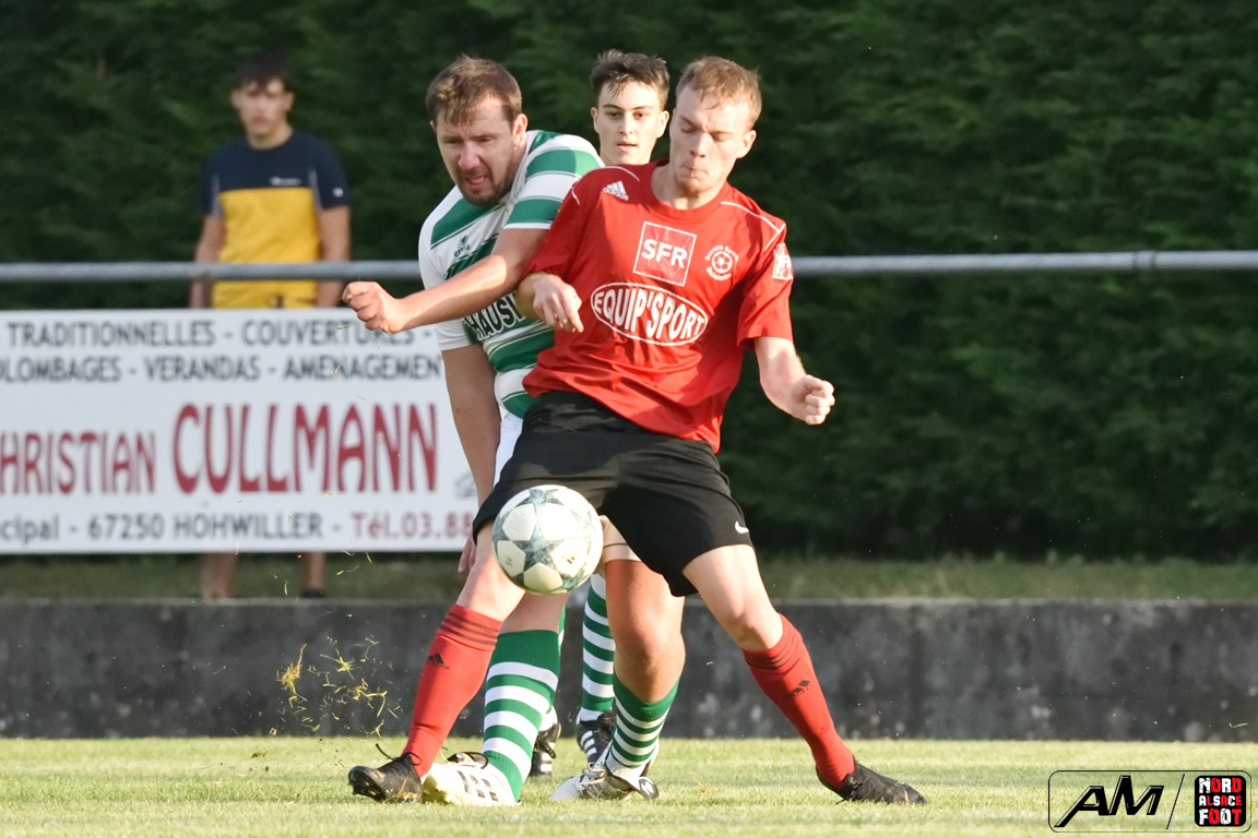 A l’occasion d’un match de préparation, les doublures du FC Soultz/s/Forêt/Kutz. accueillaient la SS Beinheim afin de tenter de travailler les premiers automatismes à un peu plus de trois semaines avant la reprise de la compétition, et ce, face à la troupe à Camolli Joël ayant à coeur de remettre le pied à l’étrier après sa lourde défaite concédée, le week-end dernier, face au Red Star Strasbourg (1-4). Après une première période se soldant par un court avantage en faveur des visiteurs grâce à des réalisations signées Hollaender Thomas (28e) et Beushausen John (42e) contre un but inscrit par Reeb Christophe (16e) pour les locaux, les rouges et noirs allaient un peu plus creuser l’écart au cours du second acte grâce à des buts signés Courdavault Florian (62e), Joël Camolli (64e et 67e) avant que les doublures soultzoises ne réduisent la marque grâce à Eyermann Jordan (81e) et, à l’entame des cinq dernières minutes de jeu, Bouchber Abdallah apporta sa pierre à l’édifice afin de permettre à son équipe de s’imposer sur ce score de 2-6! Retrouvez, ci-dessous, quelques images de cette rencontre et, pour en apprécier le contenu, veuillez cliquer sur l’une d’entre-elles pour afficher le diaporama.