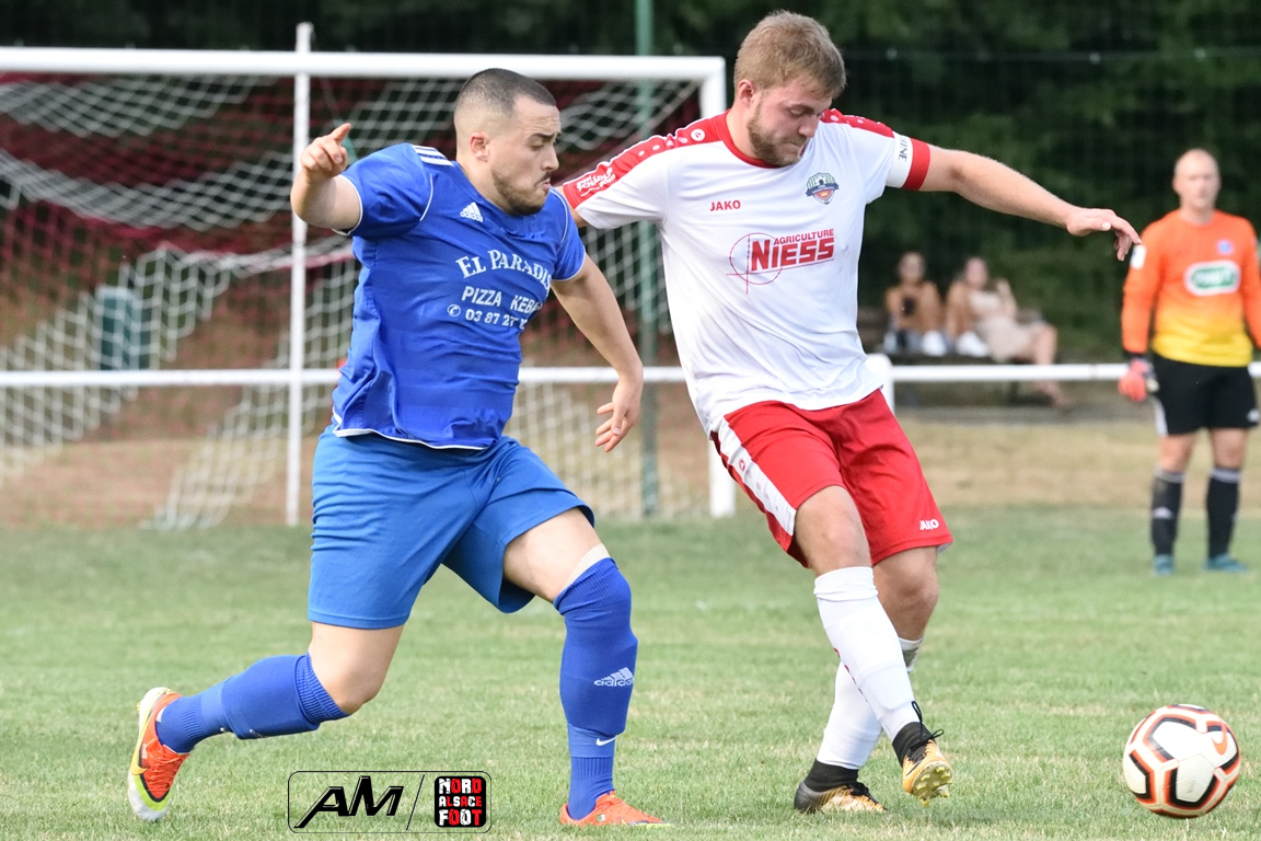 A l’occasion de leur septième rencontre amicale de l’été, les FR Schoenenbourg/M. (D3) accueillait les lorrains du FC Bitche (D2) afin de tenter de remettre le pied à l’étrier après une série de deux défaites consécutives enregistrées face au FC Riedseltz (6-1) et l’US Surbourg (5-1). Après une première période se soldant par un court avantage en faveur des locaux grâce à une réalisation signée Heideyer Joey (11e), ces derniers allaient prendre le large en seconde période grâce à des buts inscrits par Winckel Lilian (51e) et Alain Mike (76e) avant de finir par largement s’imposer sur ce score de 3-0! Retrouvez, ci-dessous, quelques images de cette rencontre et, pour en apprécier le contenu, veuillez cliquer sur l’une d’entre-elles pour afficher le diaporama.