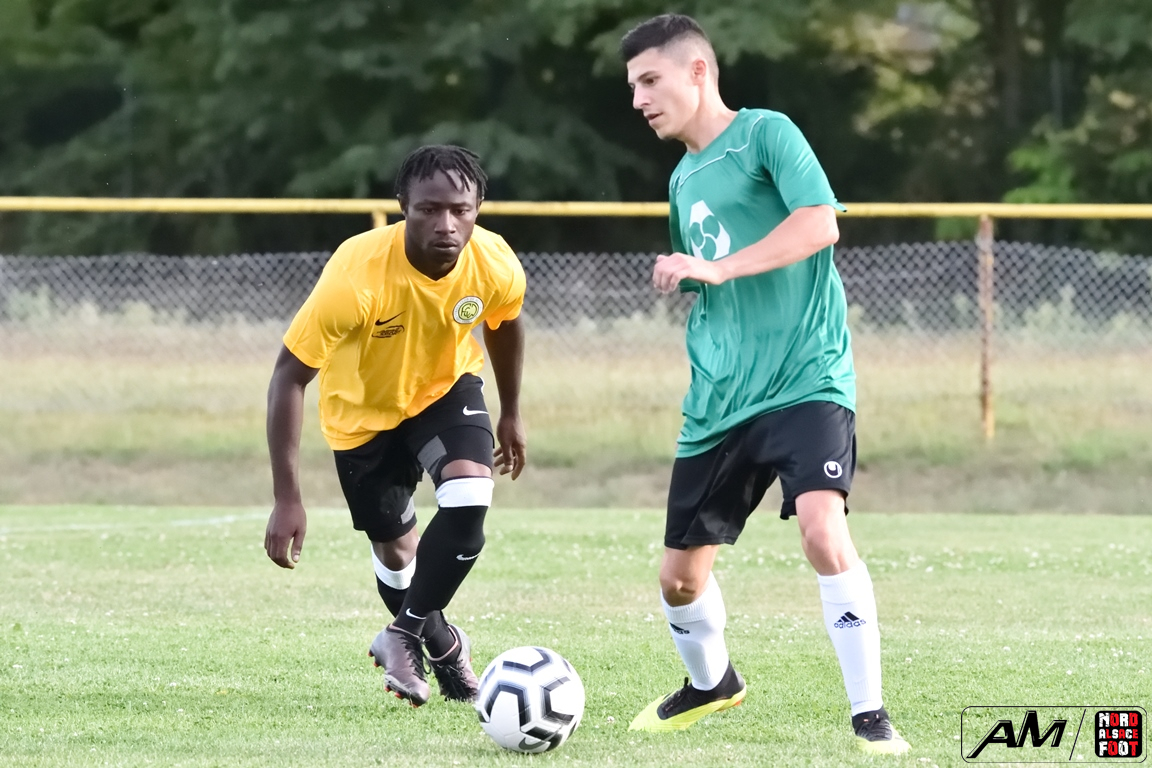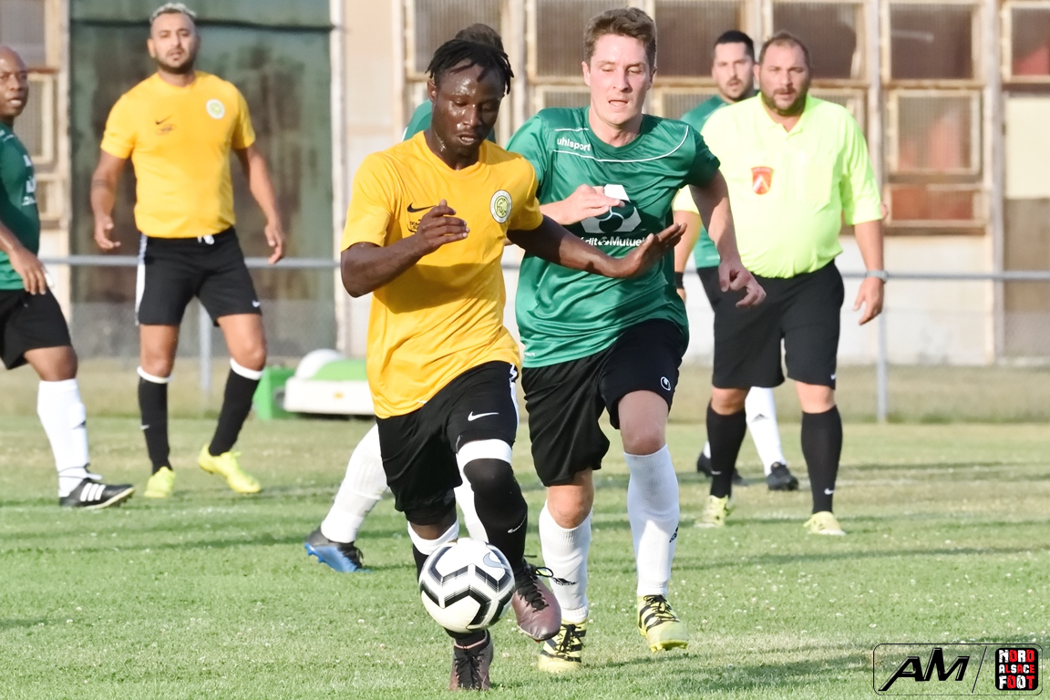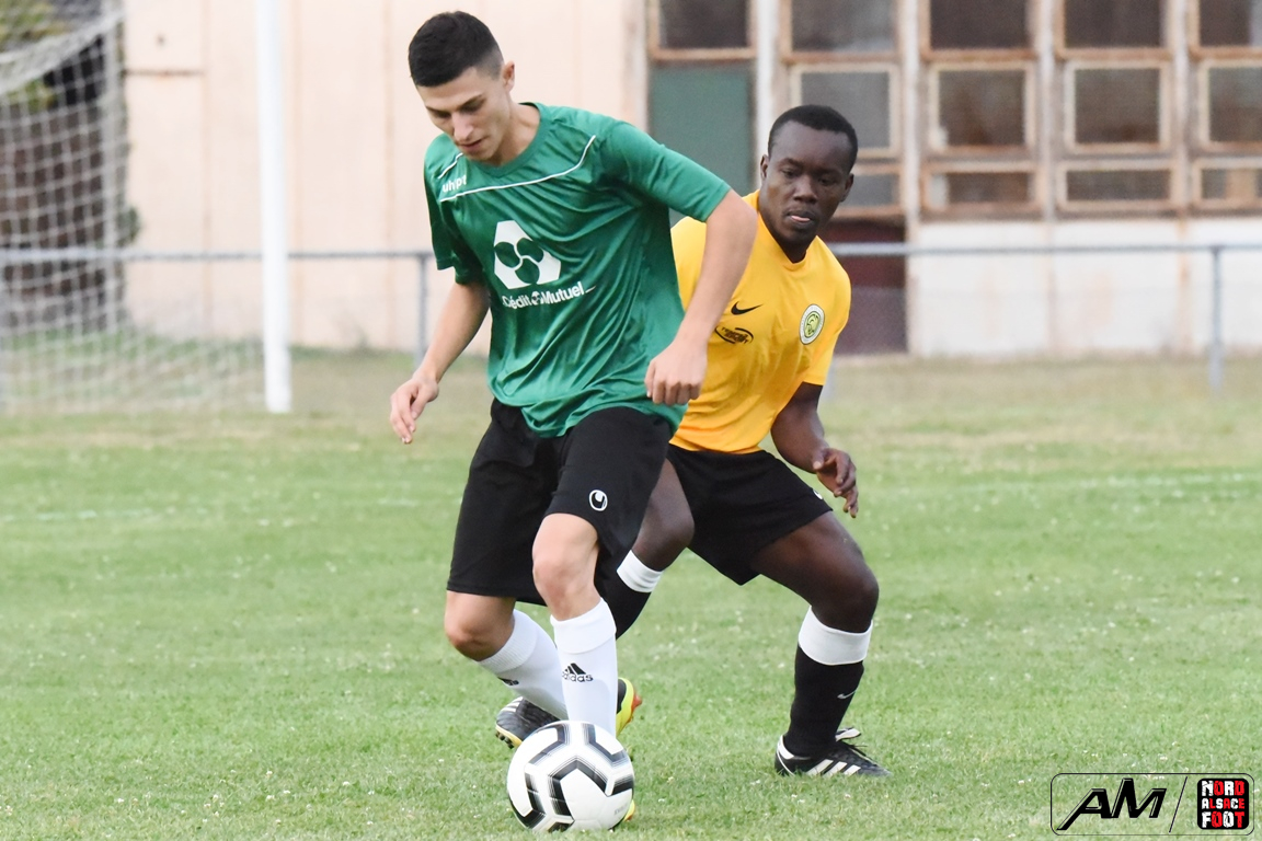 A l’occasion d’un match avancé comptant pour le premier tour de la Coupe de France, l’entente Altenstadt/Wissembourg (D4) accueillait l’ES Offendorf (D5) pour une rencontre que les locaux comptaient remporter afin de commencer leur nouvelle saison de la plus belle des manières. Après une première période se soldant par un score de parité grâce à des réalisations locales signées Dione Cheikh (7e) et Simon Kevin (10e) contre des buts offendorfois signés Dauer Benjamin (20e) et Di Ruzza Valentin (28e, sp), les jaunes et noirs allaient reprendre l’avantage à la 68e minute grâce à un doublé de Dione Cheikh avant que Hannachi Bessem n’apporte sa pierre à l’édifice en ouvrant son compteur à la 83e minute de jeu mais, malgré un avantage confortable durement acquis, les ententistes allaient jouer à se faire peur en concédant une réduction du score à la 84e minute de jeu, les visiteurs se transcendant ensuite pour tenter d’arracher l’égalisation mais leurs efforts furent vains, l’entente Altenstadt/Wissembourg se qualifiant finalement pour le prochain tour en remportant cette confrontation sur le score de 4-3! Retrouvez, ci-dessous, quelques images de cette rencontre et, pour en apprécier le contenu, veuillez cliquer sur l’une d’entre-elles pour afficher le diaporama.