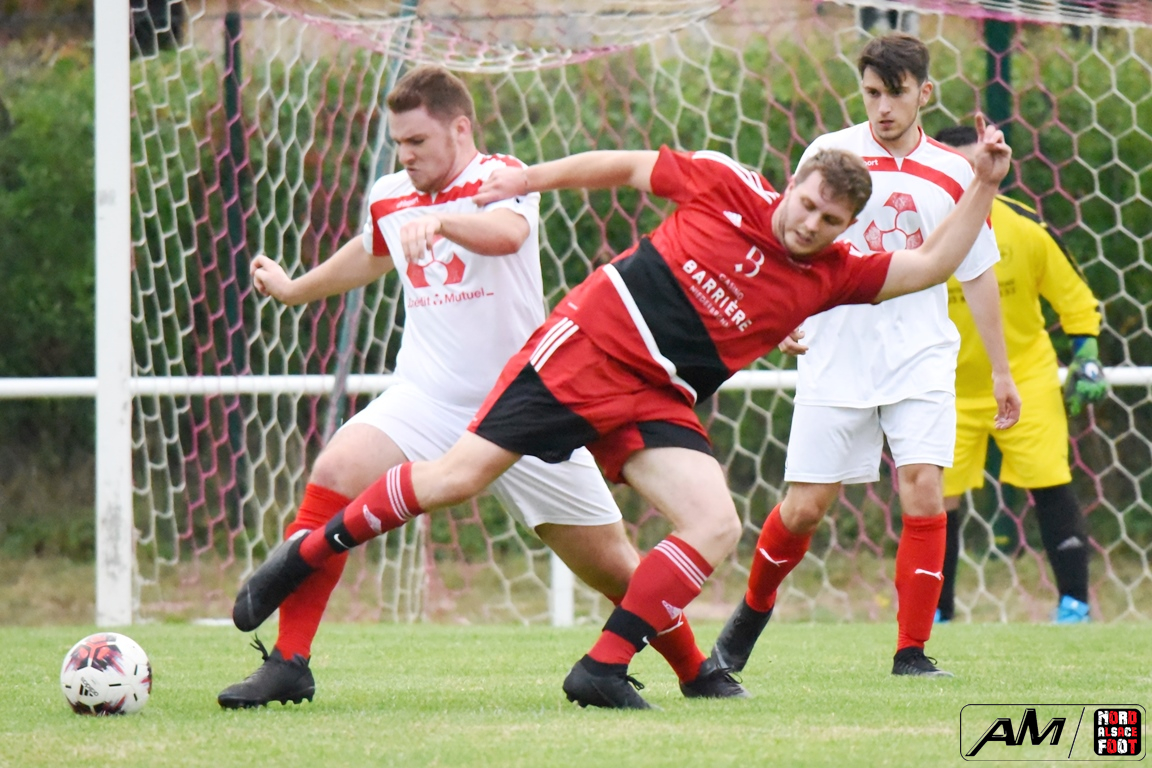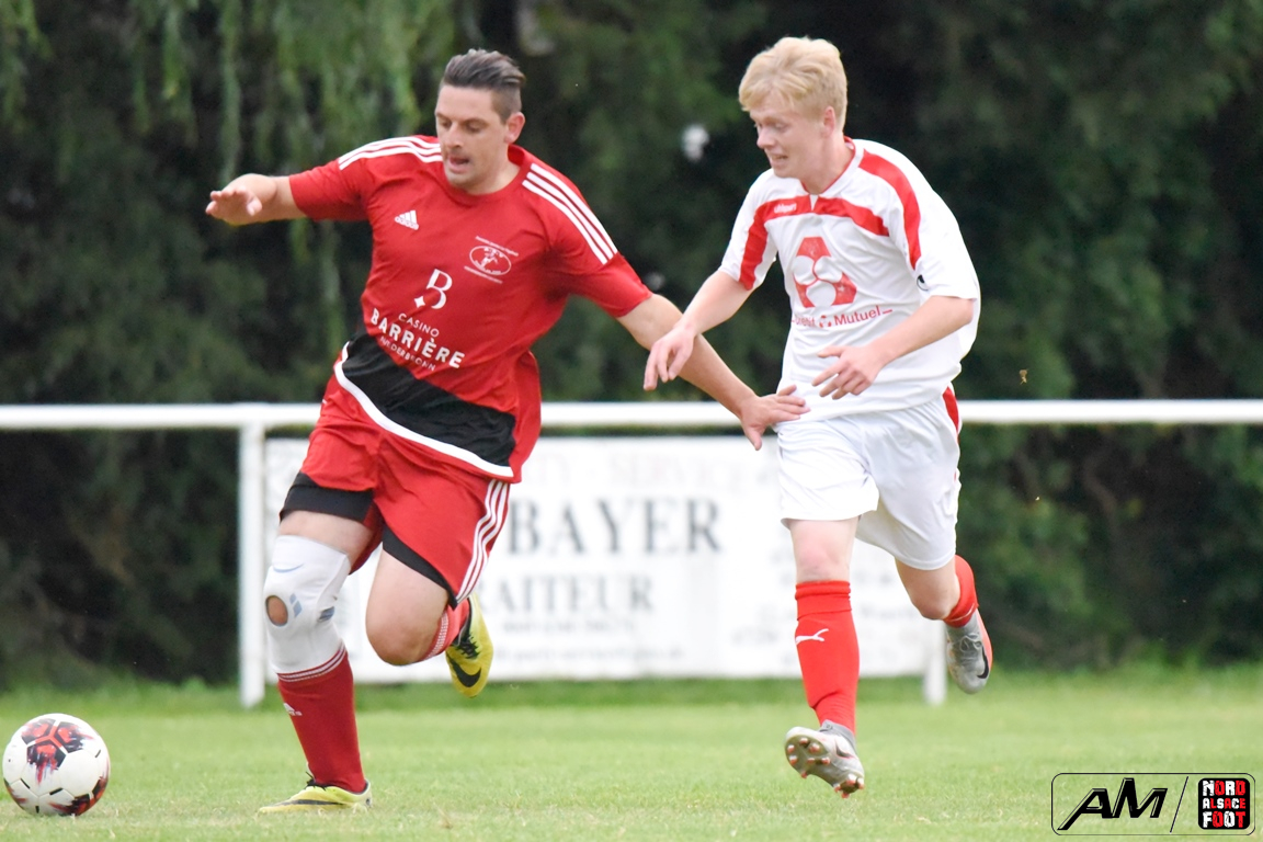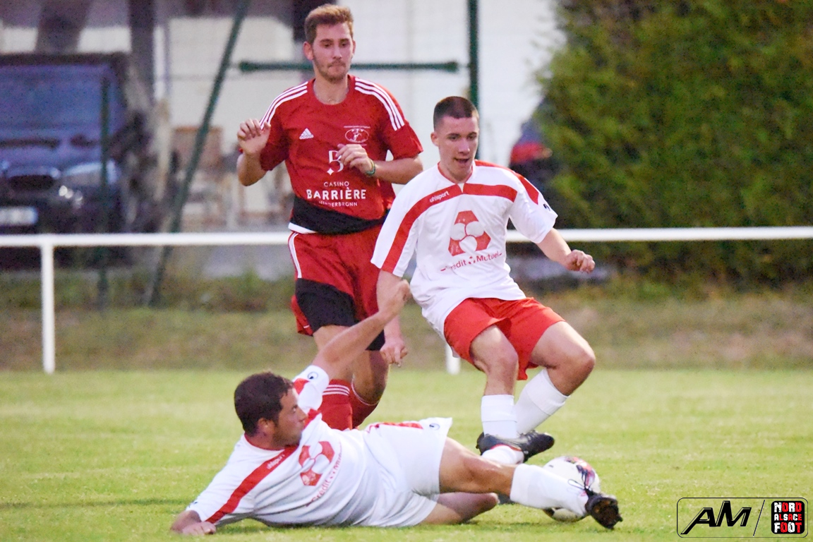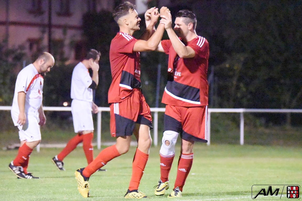 A l’occasion d’une dernière répétition générale avant le retour à la compétition, les doublures du FC Riedseltz accueillaient l’AS Vagabonds (foot loisir) afin de peaufiner les derniers automatismes à cinq jours de son déplacement à Rountzenheim. Après une première période se soldant par un court avantage en faveur des locaux grâce à un but magnifique de Haffner Frédéric (38e), les visiteurs allaient parvenir à largement renverser la vapeur en seconde période en faisant confiance, dans un premier temps, à Lecher Gaetan, leur attaquant vedette s’offrant un doublé (64e et 68e) avant que Meyer Fred n’apporte sa pierre à l’édifice à la 86e minute de jeu et, à l’entame des arrêts de jeu, Fessy Cyril allait parachever la leçon par une nouvelle réalisation permettant finalement à son équipe de s’imposer sur le score sans appel de 1-4! Retrouvez, ci-dessous, quelques images de la rencontre et, pour en apprécier le contenu, veuillez cliquer sur l’une d’entre-elles pour afficher le diaporama.