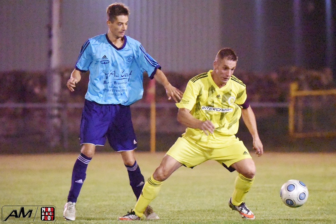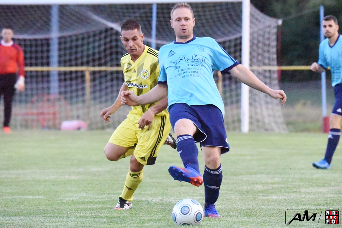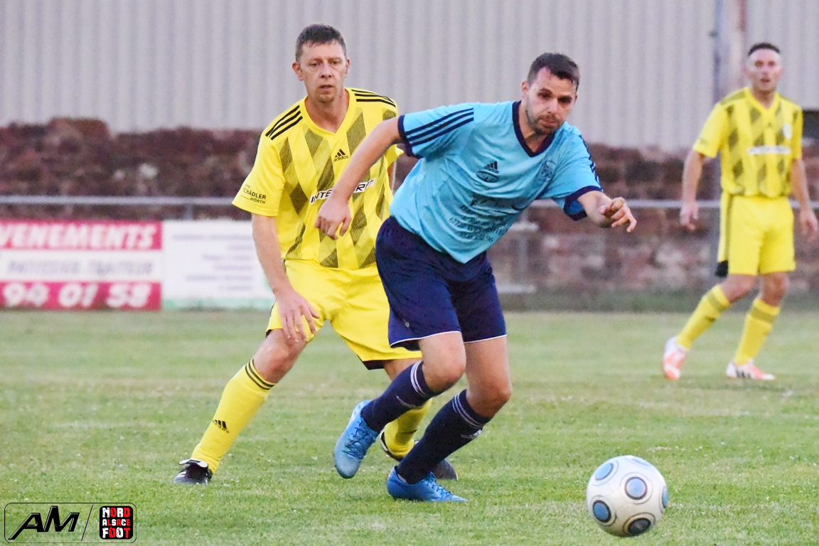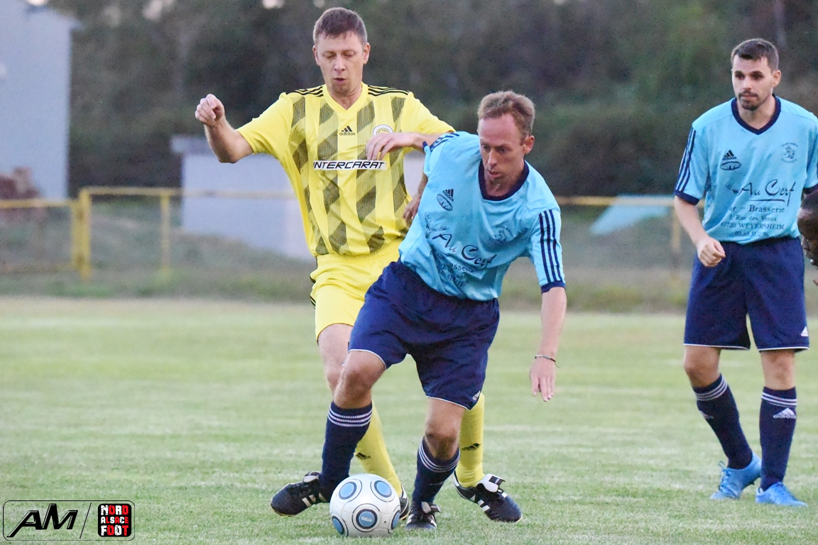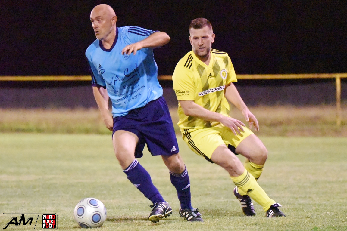 A l’occasion du premier tour de la Coupe d’Alsace Vétérans, l’entente Wissembourg/Ewanrs 51 accueillait la SS Weyersheim 51 pour une rencontre sonnant la reprise de la compétition officielle pour les deux équipes. Après une première période se soldant par un large avantage en faveur des visiteurs grâce à un triplé de Zilliox Fabrice (3e, 12e, 27e) d’une réalisation signée Diebold Olivier (11e), ces derniers allaient aggraver la marque à deux reprises lors du seconde acte avec des buts signés Vogt Laurent (51e) et Klein Frédéric (55e) avant que les deux équipes ne se neutralisent jusqu’au coup de sifflet final scellant la large victoire de la SS Weyersheim 51 sur ce score de 0-6! Retrouvez, ci-dessous, quelques images de la rencontre et, pour en apprécier le contenu, veuillez cliquer sur l’une d’entre-elles pour afficher le diaporama.