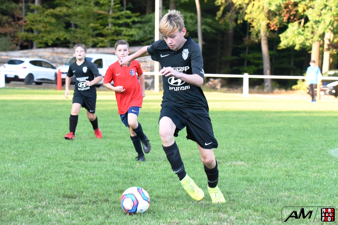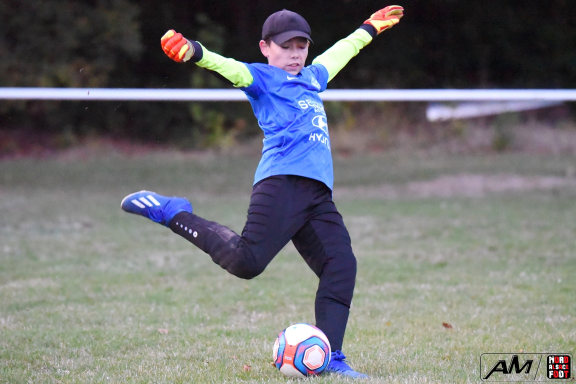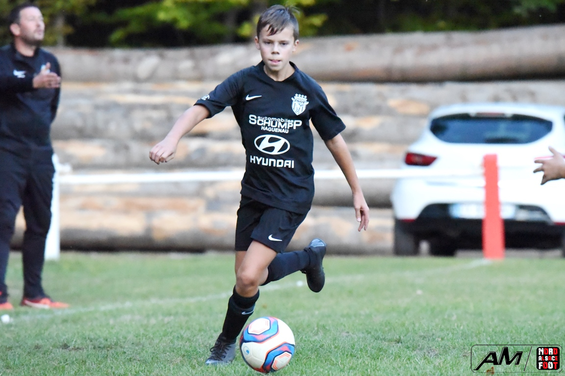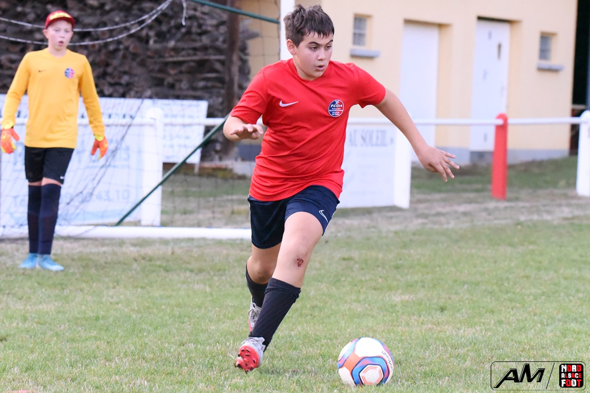 A l’occasion d’un match en retard comptant pour la première journée de championnat chez les U13/D3 (Gr G), les doublures de l’entente de l’Outre-Forêt accueillaient l’entente du Hattgau afin de tenter de réaliser la passe de deux après sa large victoire acquise face à l’AS Betschdorf (1-9), et ce, face à des adversaires étant à la recherche d’un premier succès cette saison. Après une première période se soldant par un large avantage en faveur des locaux grâce à des réalisations signées Schumpp Pereira Tiago (5e), Niess Maxime (17e), Ober Maxime (22e) et Kastner Lohan (30e), ces derniers allaient corser l’addition en seconde période en ajoutant pas moins de sept buts au compteur par l’intermédiaire de Guthmuller Johan (36e et 57e), de Bumb Maxime (32e et 60e), de Paul Jules (41e et 54e) et de Niess Maxime (53e), Heinrich Loïc sauvant toutefois l’honneur des visiteurs en trouvant le chemin des filets à la 59e minute de jeu, ce qui n’empêcha pas les locaux de s’imposer sur ce score sans appel de 11-1! Retrouvez, ci-dessous, quelques images de cette rencontre et, pour en apprécier le contenu, veuillez cliquer sur l’une d’entre-elles pour afficher le diaporama.