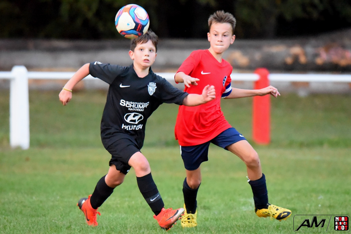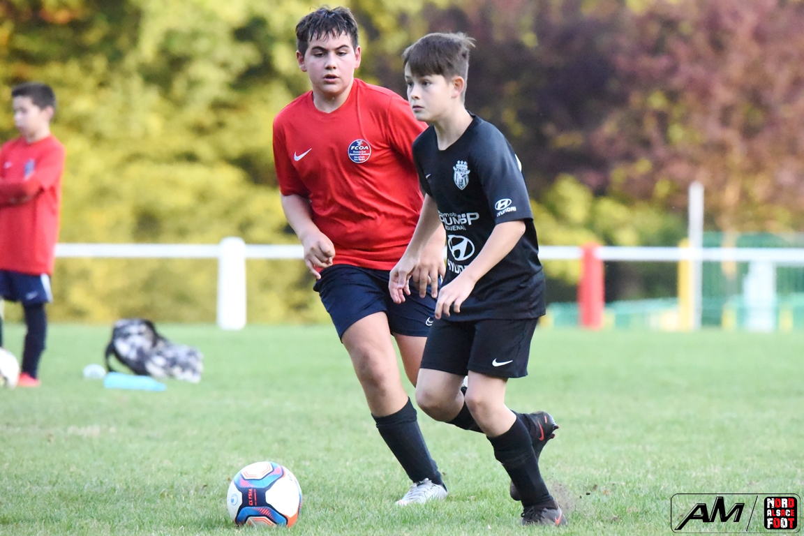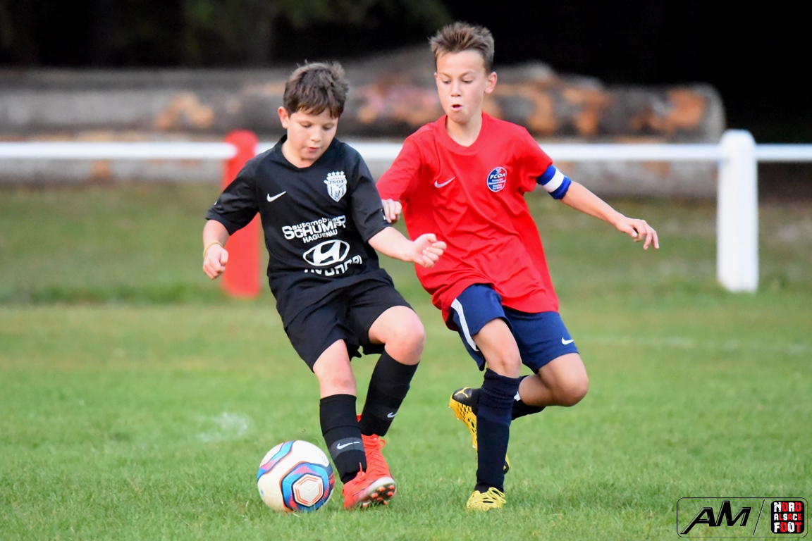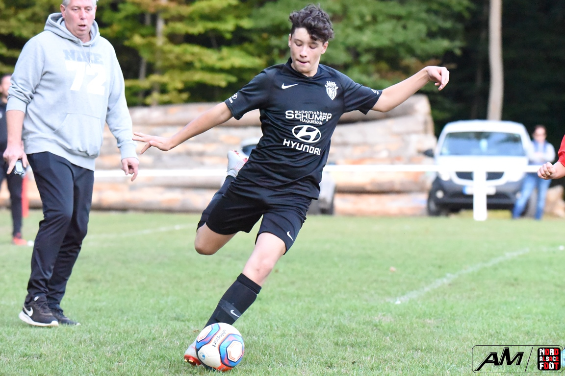 A l’occasion d’un match en retard comptant pour la première journée de championnat chez les U13/D3 (Gr G), les doublures de l’entente de l’Outre-Forêt accueillaient l’entente du Hattgau afin de tenter de réaliser la passe de deux après sa large victoire acquise face à l’AS Betschdorf (1-9), et ce, face à des adversaires étant à la recherche d’un premier succès cette saison. Après une première période se soldant par un large avantage en faveur des locaux grâce à des réalisations signées Schumpp Pereira Tiago (5e), Niess Maxime (17e), Ober Maxime (22e) et Kastner Lohan (30e), ces derniers allaient corser l’addition en seconde période en ajoutant pas moins de sept buts au compteur par l’intermédiaire de Guthmuller Johan (36e et 57e), de Bumb Maxime (32e et 60e), de Paul Jules (41e et 54e) et de Niess Maxime (53e), Heinrich Loïc sauvant toutefois l’honneur des visiteurs en trouvant le chemin des filets à la 59e minute de jeu, ce qui n’empêcha pas les locaux de s’imposer sur ce score sans appel de 11-1! Retrouvez, ci-dessous, quelques images de cette rencontre et, pour en apprécier le contenu, veuillez cliquer sur l’une d’entre-elles pour afficher le diaporama.