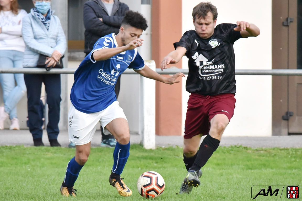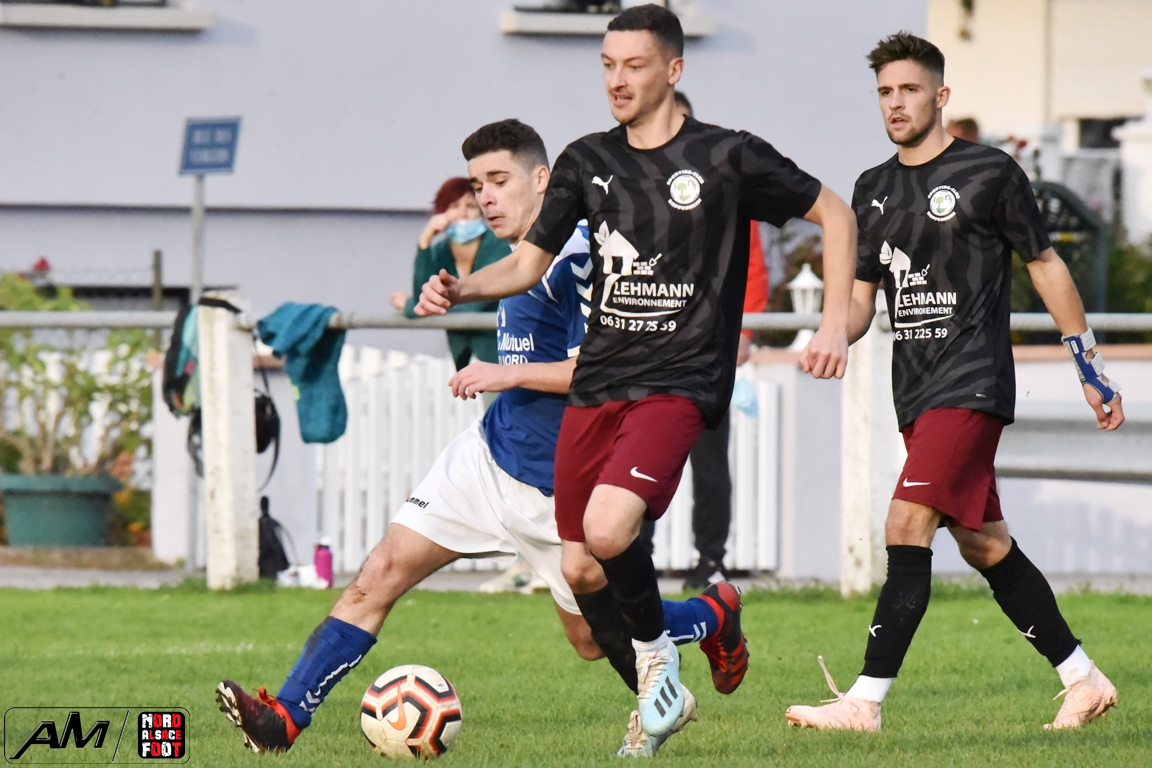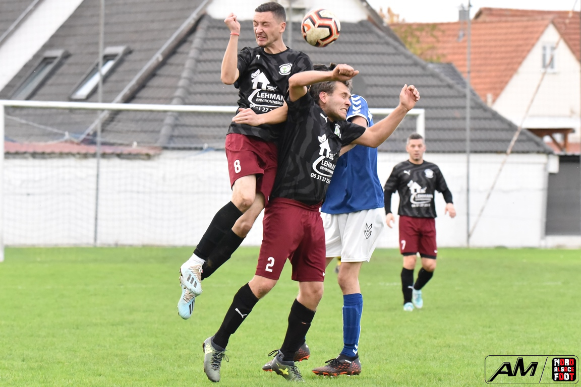 A l’occasion de la cinquième journée de championnat en District 4 (Gr B), l’AS Forstfeld accueillait le SC Roppenheim pour le derby de la Sauer opposant deux équipes qui, jadis, évoluaient en osmose au sein d’une entente et qui se retrouvaient, ce dimanche, confrontées au Stade de l’Espoir pour la suprématie locale. Après une première période se soldant par un avantage confortable en faveur des visiteurs grâce à un doublé de Rodriguez Steve (19e et 41e), les locaux allaient cueillir leurs adversaires à froid au retour des vestiaires en réduisant la marque grâce à Graiche Arthur (48e) avant que les Roppenheimois ne fassent définitivement le break à la 69e minute de jeu grâce à Kuhn Morgan. Retrouvez, ci-dessous, quelques images de cette rencontre et, pour en apprécier le contenu, veuillez cliquer sur l’une d’entre-elles pour afficher le diaporama.
