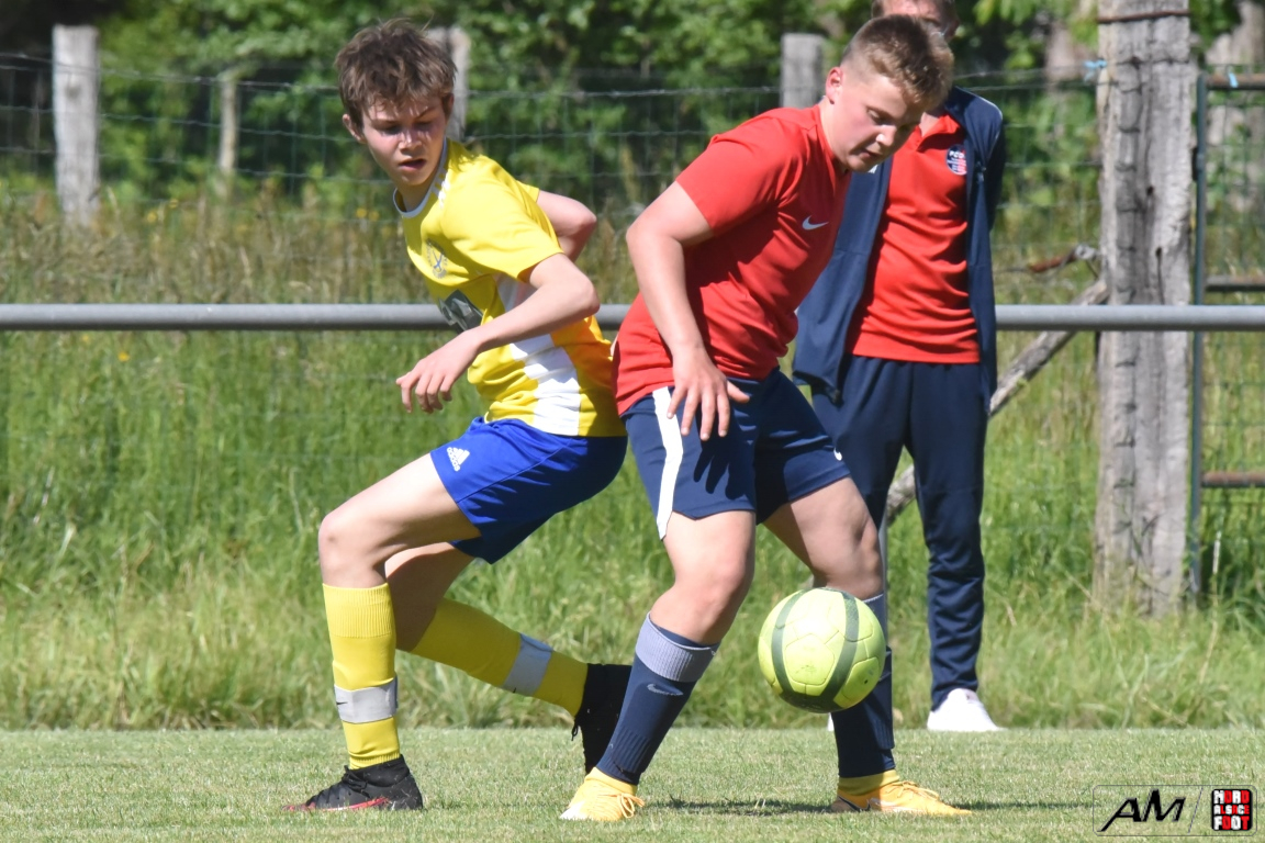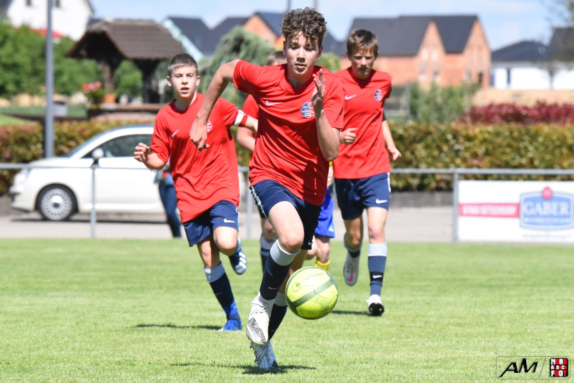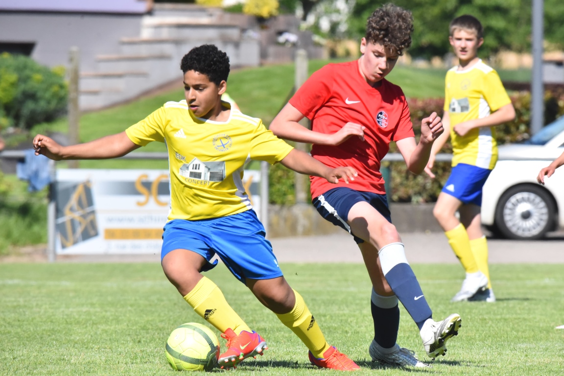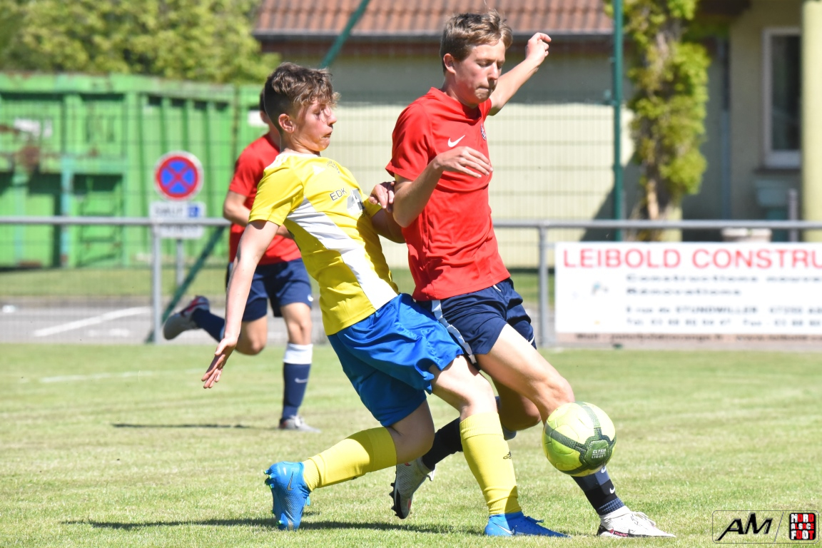 A l’occasion d’une première rencontre amicale post-COVID, les U15 de l’entente du Hattgau accueillait les U15 de l’entente des Vallons afin de jauger les forces en présence en vue de la prochaine saison. Après un premiers tiers-temps se soldant par un court avantage en faveur des locaux grâce à une réalisation signée Jacques Tom (10e), les rouges et bleus allaient doubler la mise à la 35e minute de jeu grâce à un doublé de Jacques Tom, les visiteurs réduisant ensuite la marque par l’intermédiaire de Lamar Mohamed (57e) avant que le troisième tiers-temps ne tourne à l’avantage des jaunes et bleus grâce à un doublé de Reeb Mathias (81e et 82e) agrémenté d’une réalisation signée Giroud Thibaut (88e) et, en toute fin de rencontre, une énième percussion dans l’axe de Jacques Tom se concrétisa par une réduction du score, cette dernière n’empêchant pas les jeunes Ohlungeois de s’imposer sur ce score de 3-4! Retrouvez, ci-dessous, quelques images de cette rencontre et, pour en apprécier le contenu, veuillez cliquer sur l’une d’entre-elles pour afficher le diaporama.