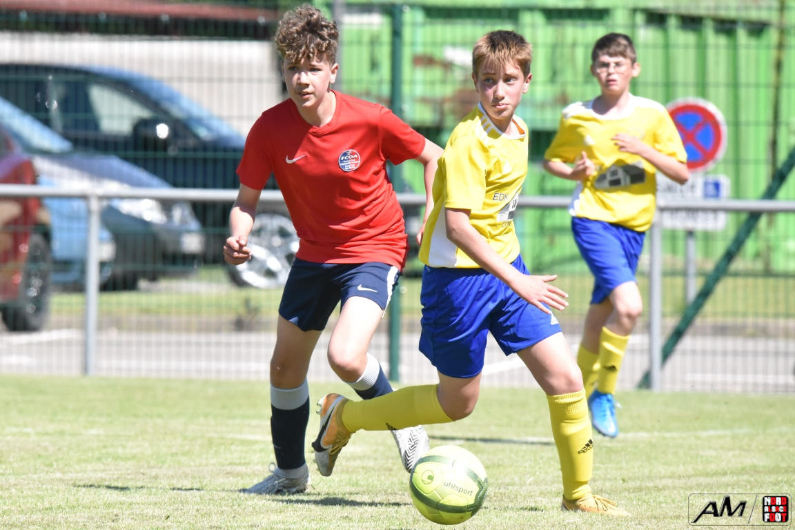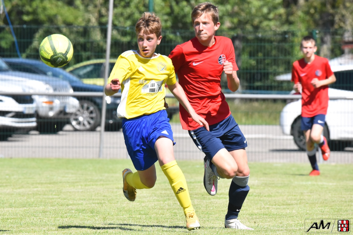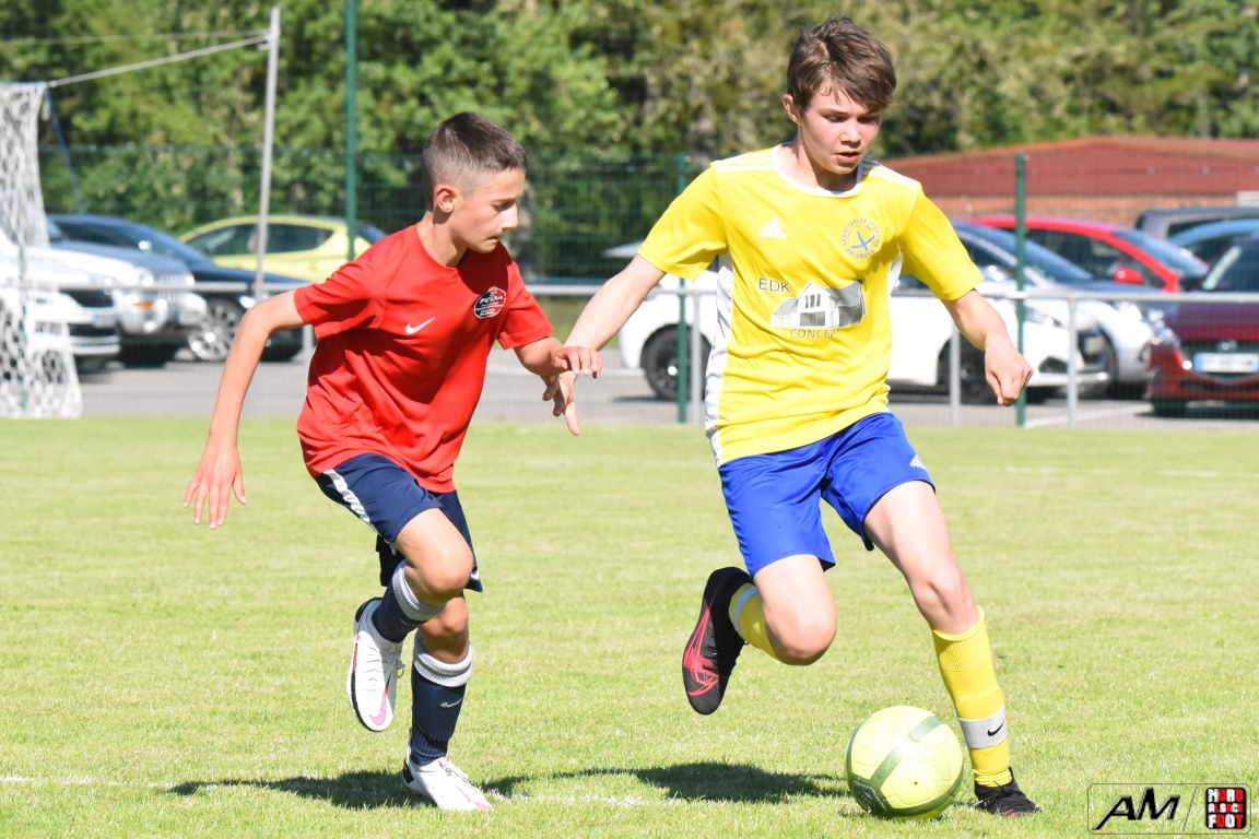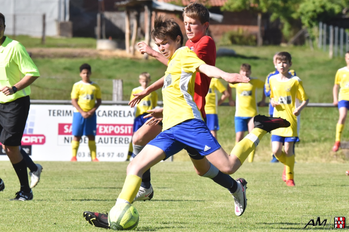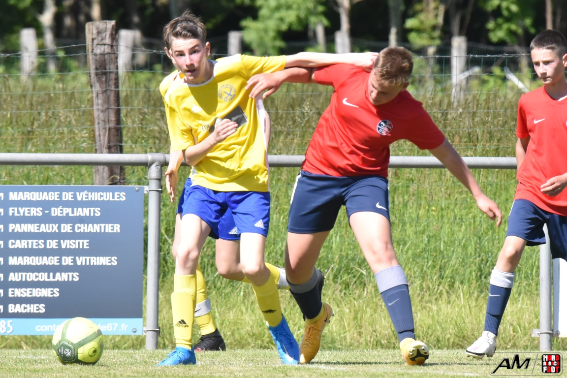 A l’occasion d’une première rencontre amicale post-COVID, les U15 de l’entente du Hattgau accueillait les U15 de l’entente des Vallons afin de jauger les forces en présence en vue de la prochaine saison. Après un premiers tiers-temps se soldant par un court avantage en faveur des locaux grâce à une réalisation signée Jacques Tom (10e), les rouges et bleus allaient doubler la mise à la 35e minute de jeu grâce à un doublé de Jacques Tom, les visiteurs réduisant ensuite la marque par l’intermédiaire de Lamar Mohamed (57e) avant que le troisième tiers-temps ne tourne à l’avantage des jaunes et bleus grâce à un doublé de Reeb Mathias (81e et 82e) agrémenté d’une réalisation signée Giroud Thibaut (88e) et, en toute fin de rencontre, une énième percussion dans l’axe de Jacques Tom se concrétisa par une réduction du score, cette dernière n’empêchant pas les jeunes Ohlungeois de s’imposer sur ce score de 3-4! Retrouvez, ci-dessous, quelques images de cette rencontre et, pour en apprécier le contenu, veuillez cliquer sur l’une d’entre-elles pour afficher le diaporama.